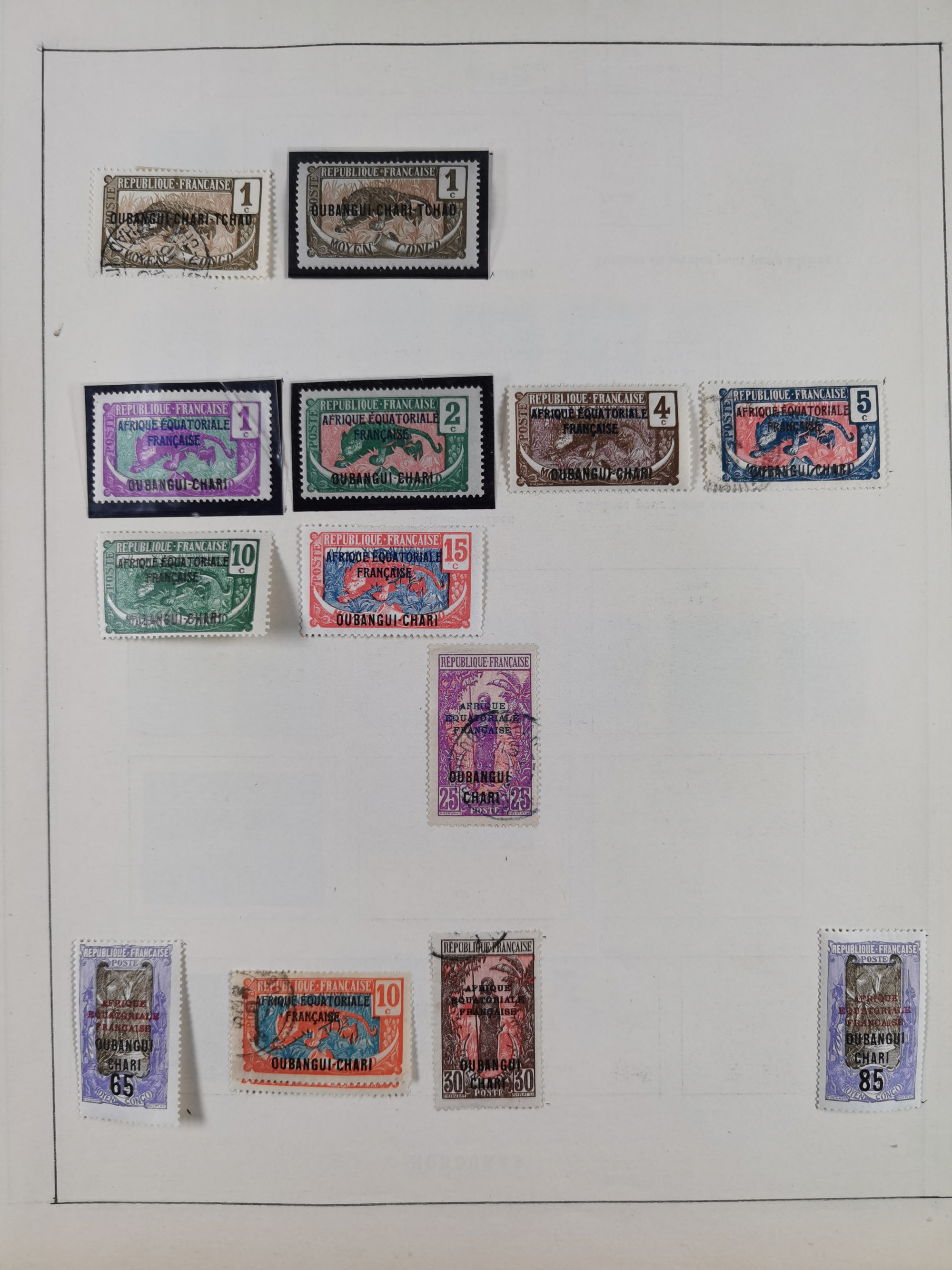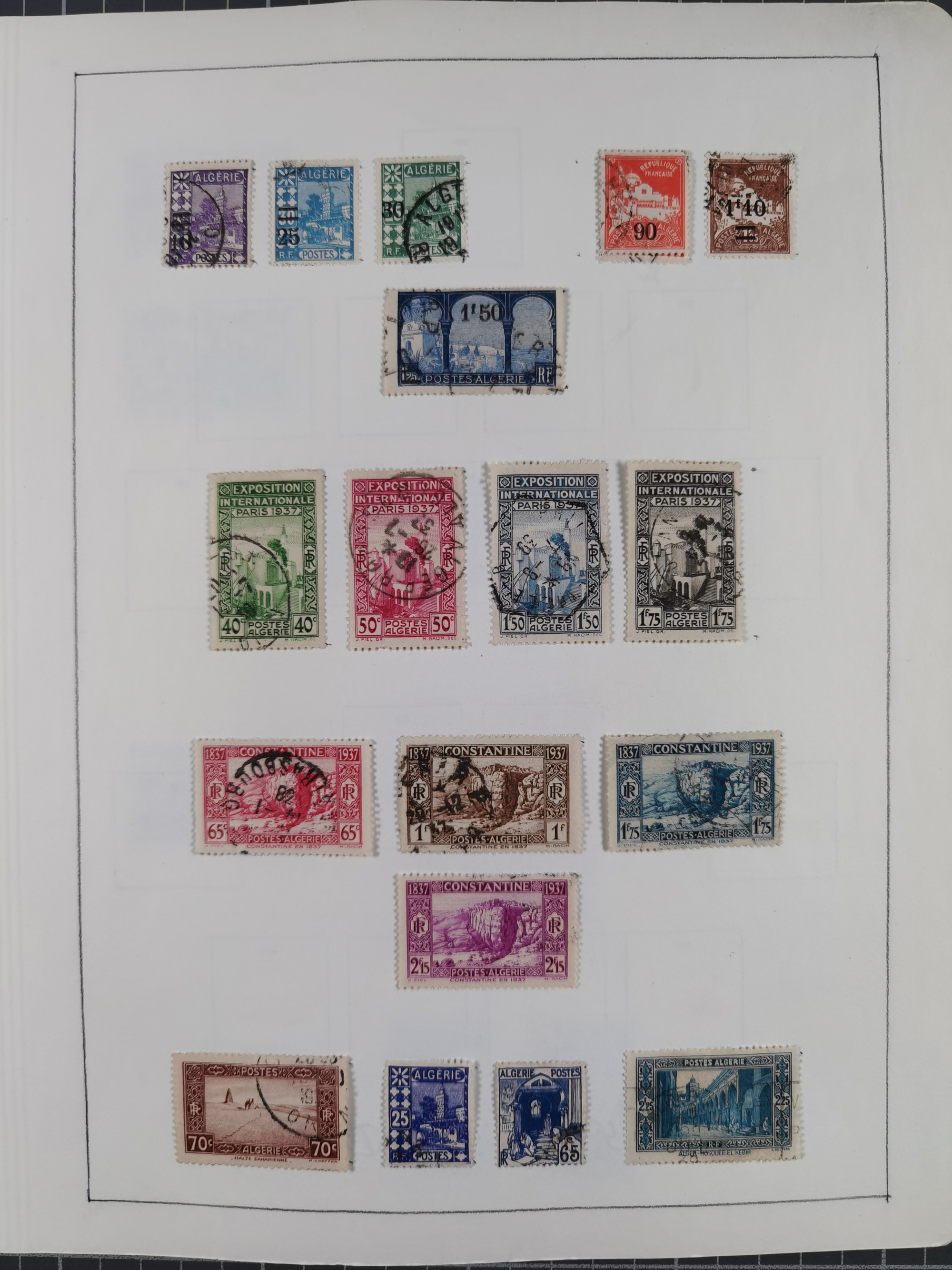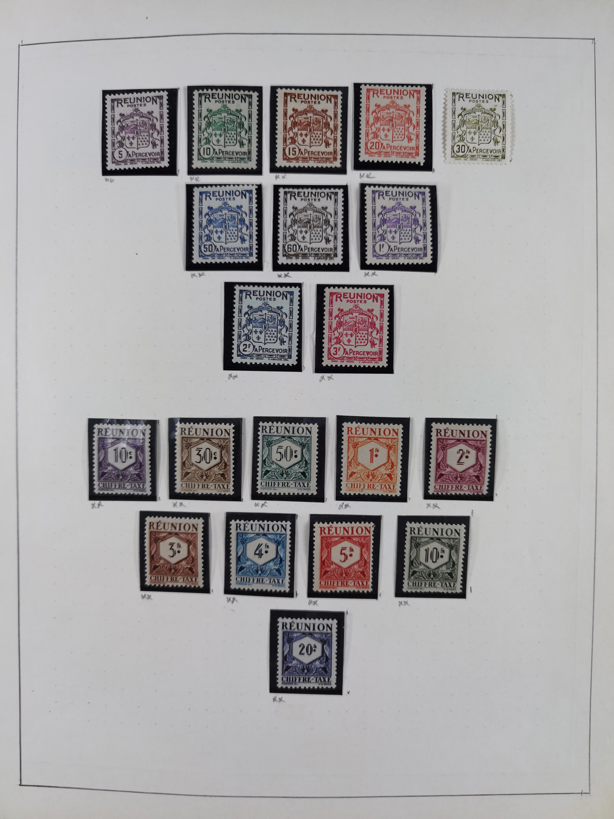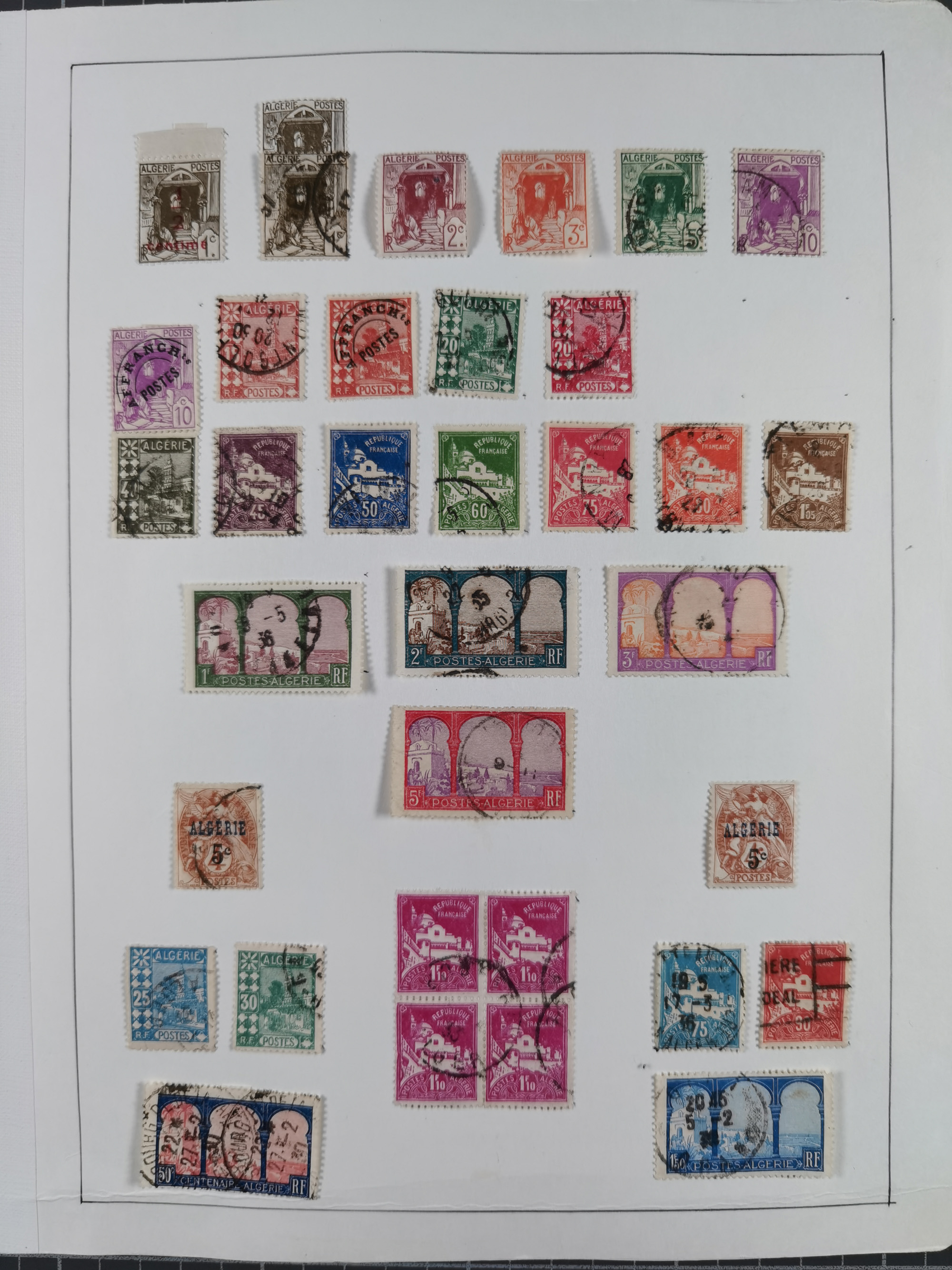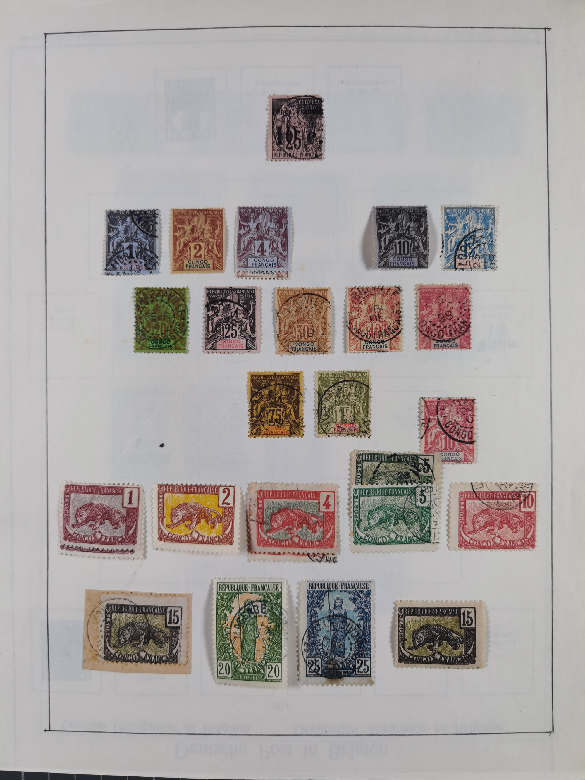 1895/1975 (ca)  unsued and used collection French Colonies and successor states, with stamps from a.o. Algeria, Dahomey, French Sudan, Obock, Gabon, Guinea, Cameroon, Madagascar with better overprint stamps, Réunion, Senegal, Somalia and Togo. Plus two page with the general issues 1859/86 incl. postage due, mostly in good condition