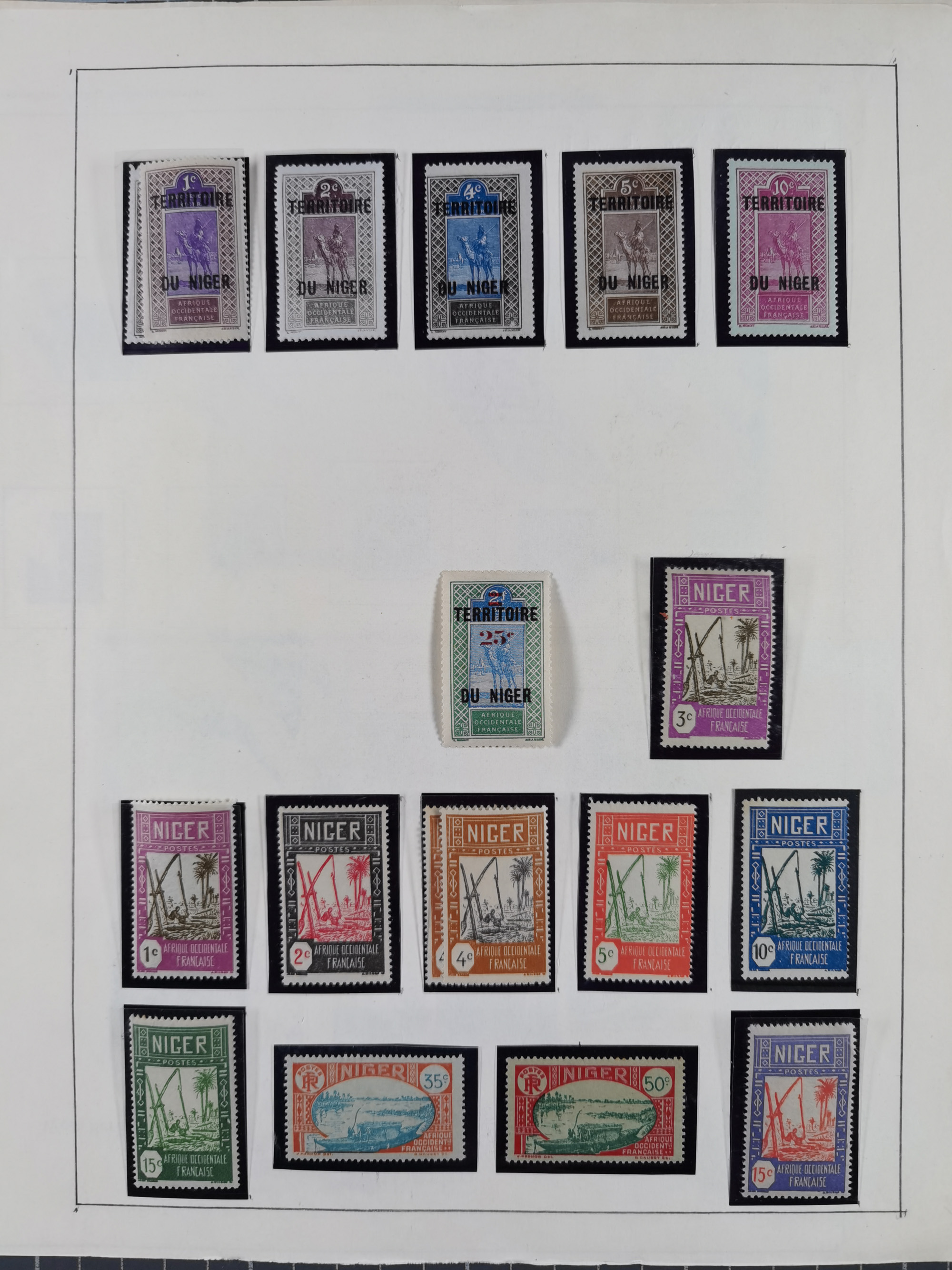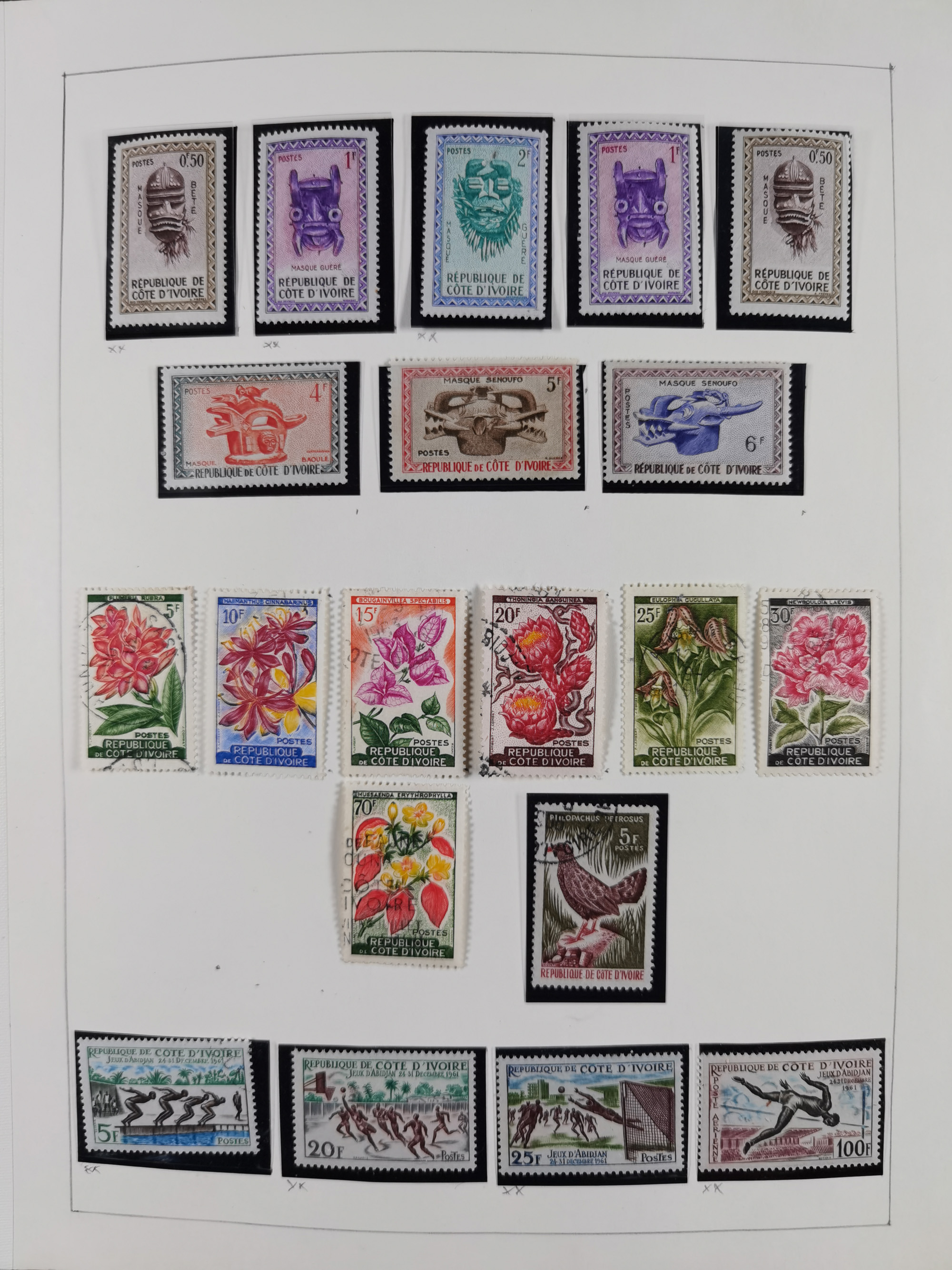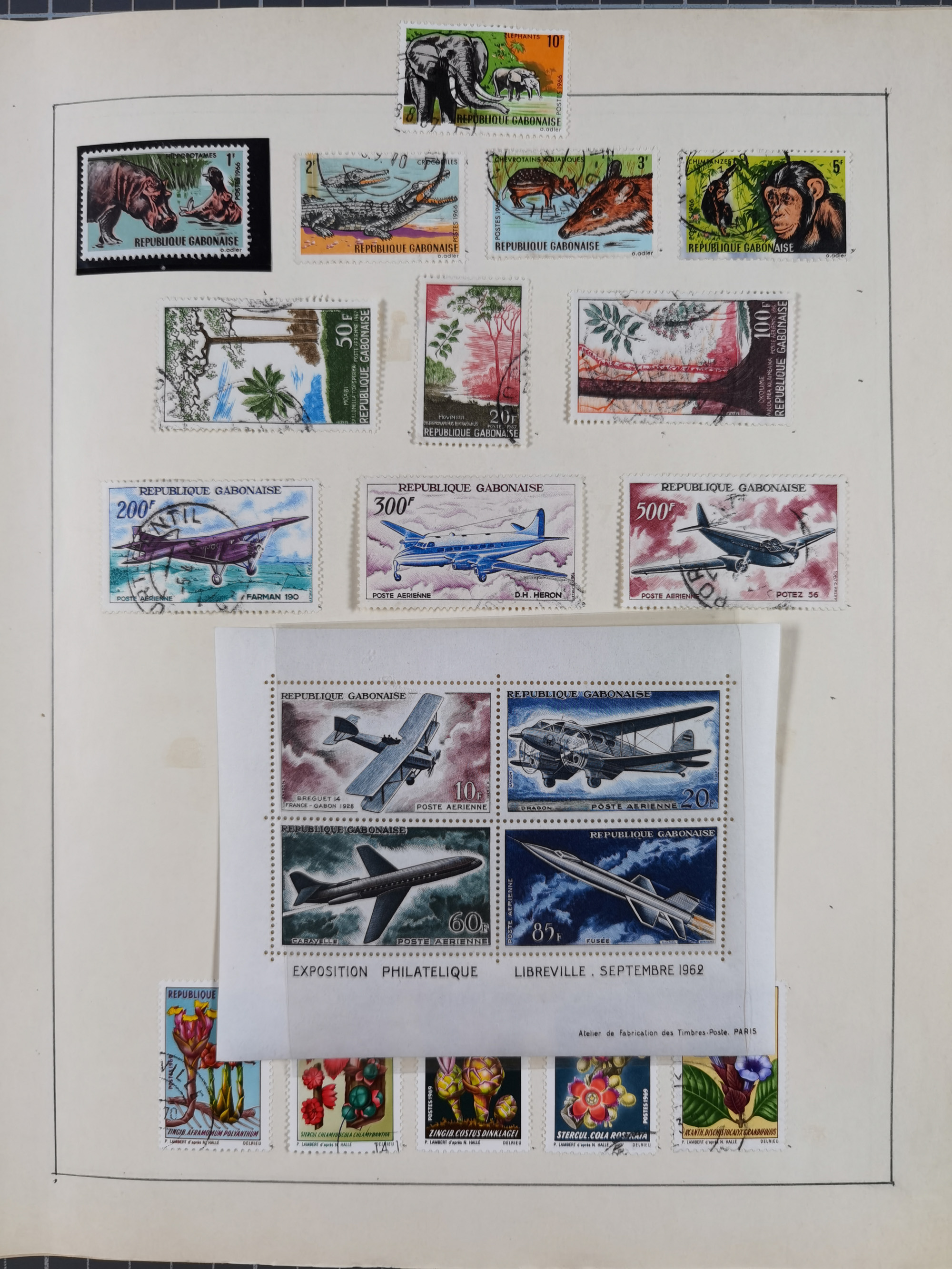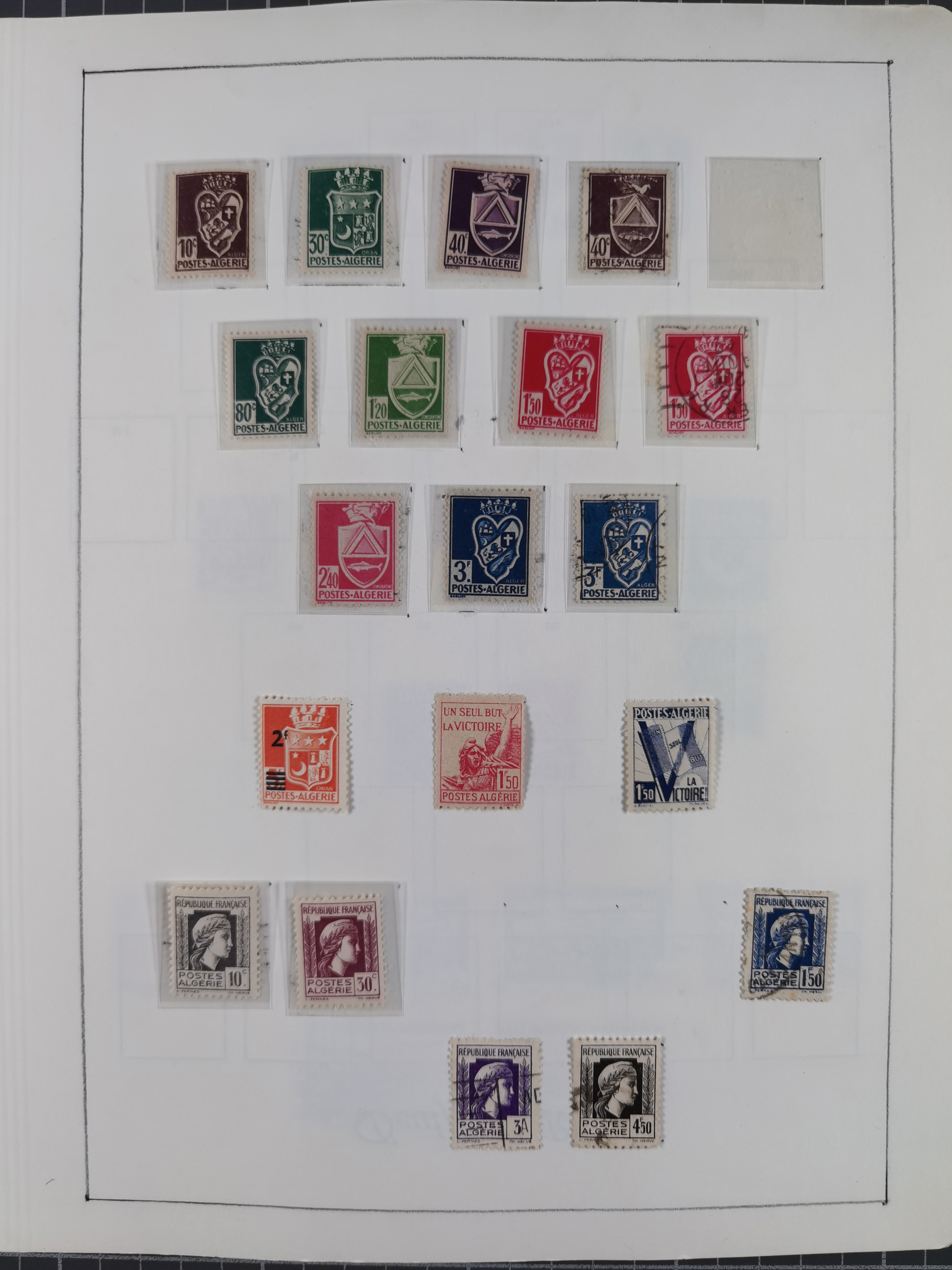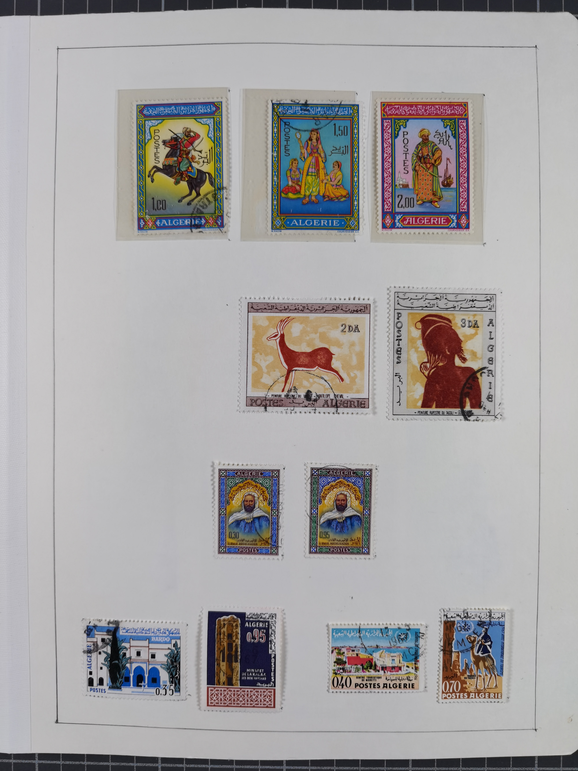 1895/1975 (ca)  unsued and used collection French Colonies and successor states, with stamps from a.o. Algeria, Dahomey, French Sudan, Obock, Gabon, Guinea, Cameroon, Madagascar with better overprint stamps, Réunion, Senegal, Somalia and Togo. Plus two page with the general issues 1859/86 incl. postage due, mostly in good condition