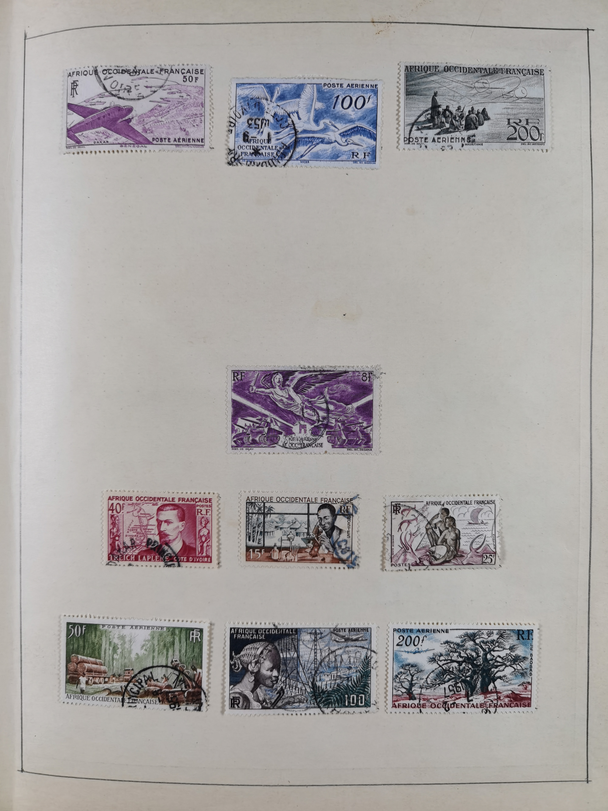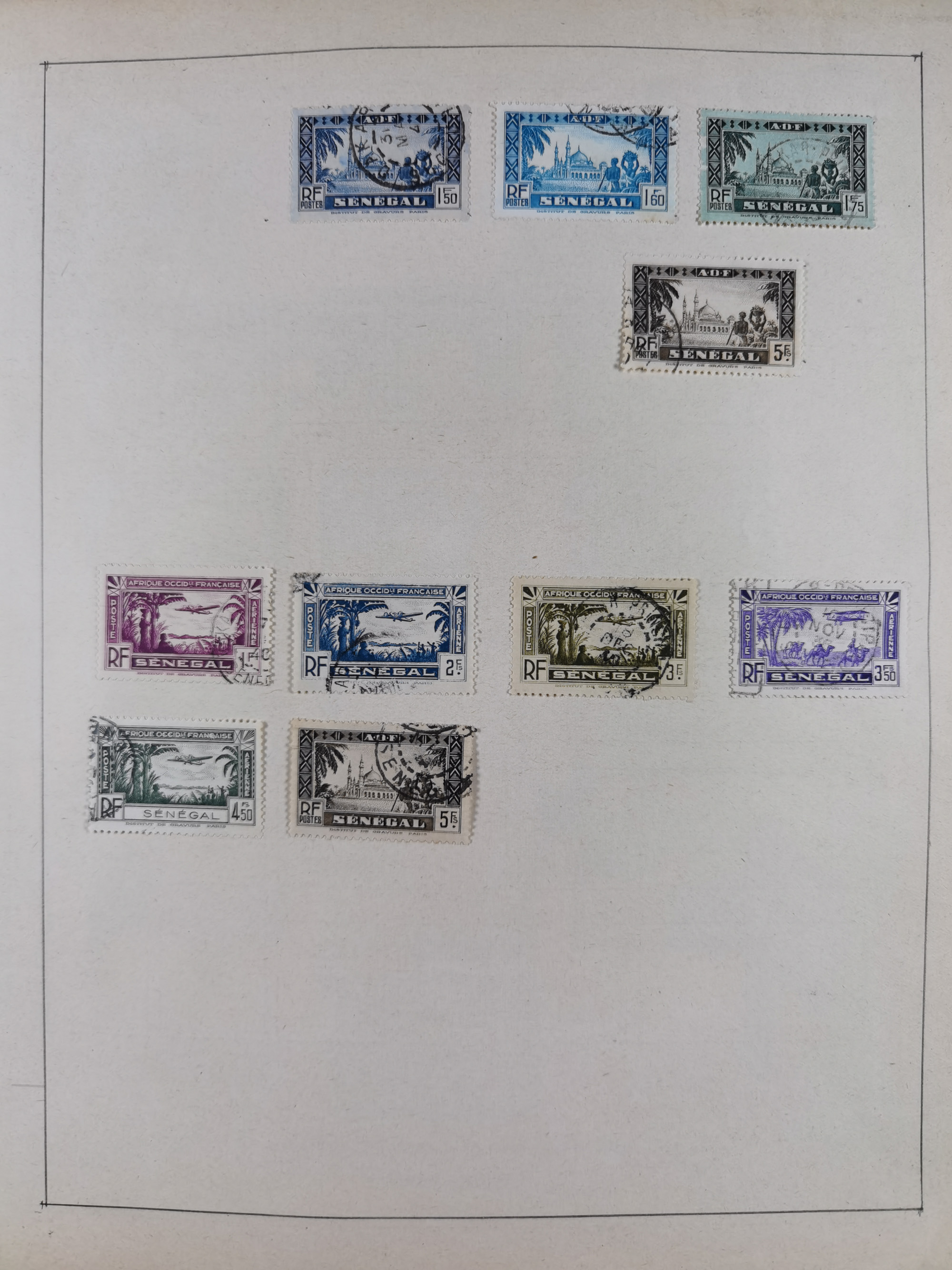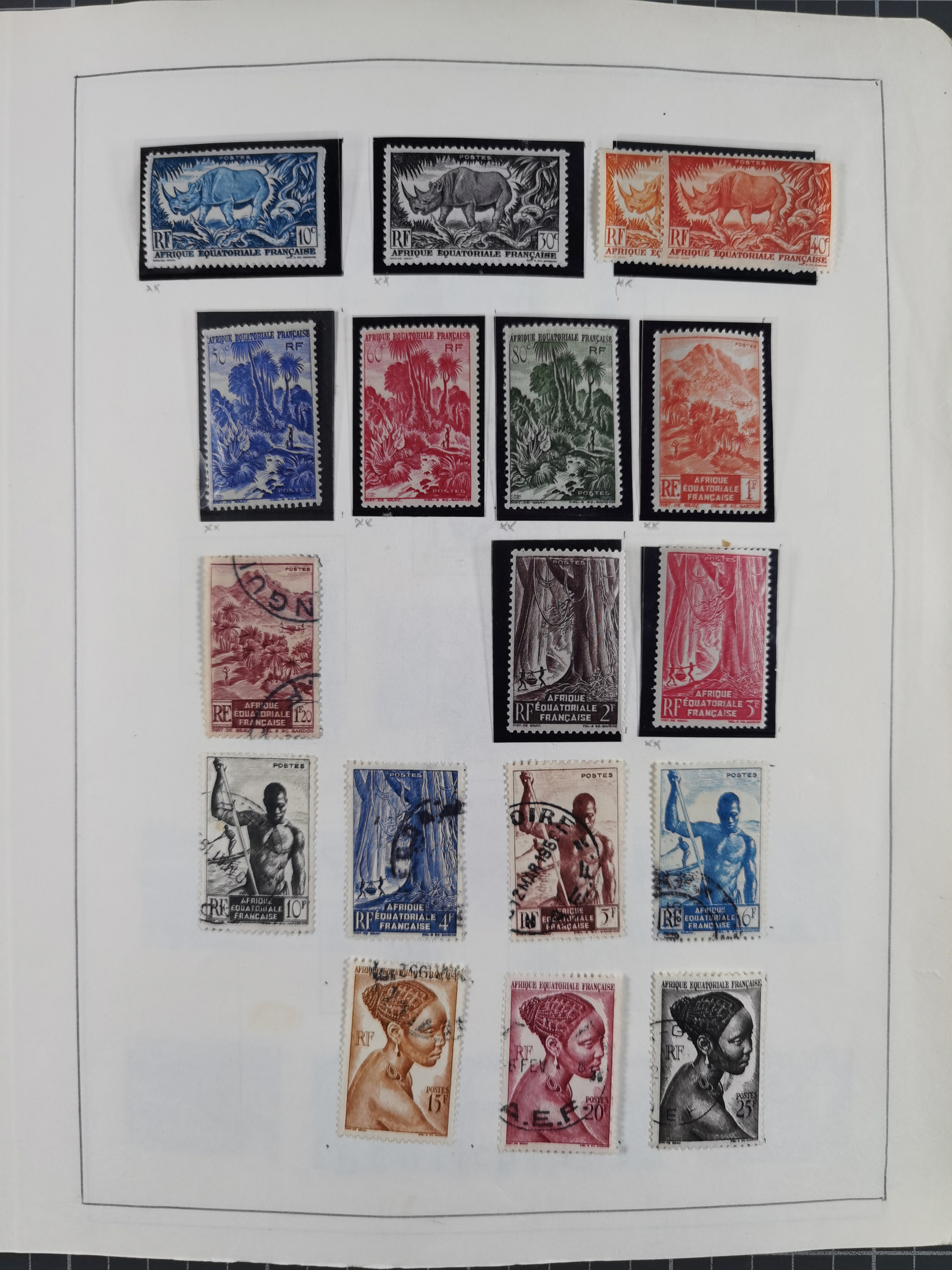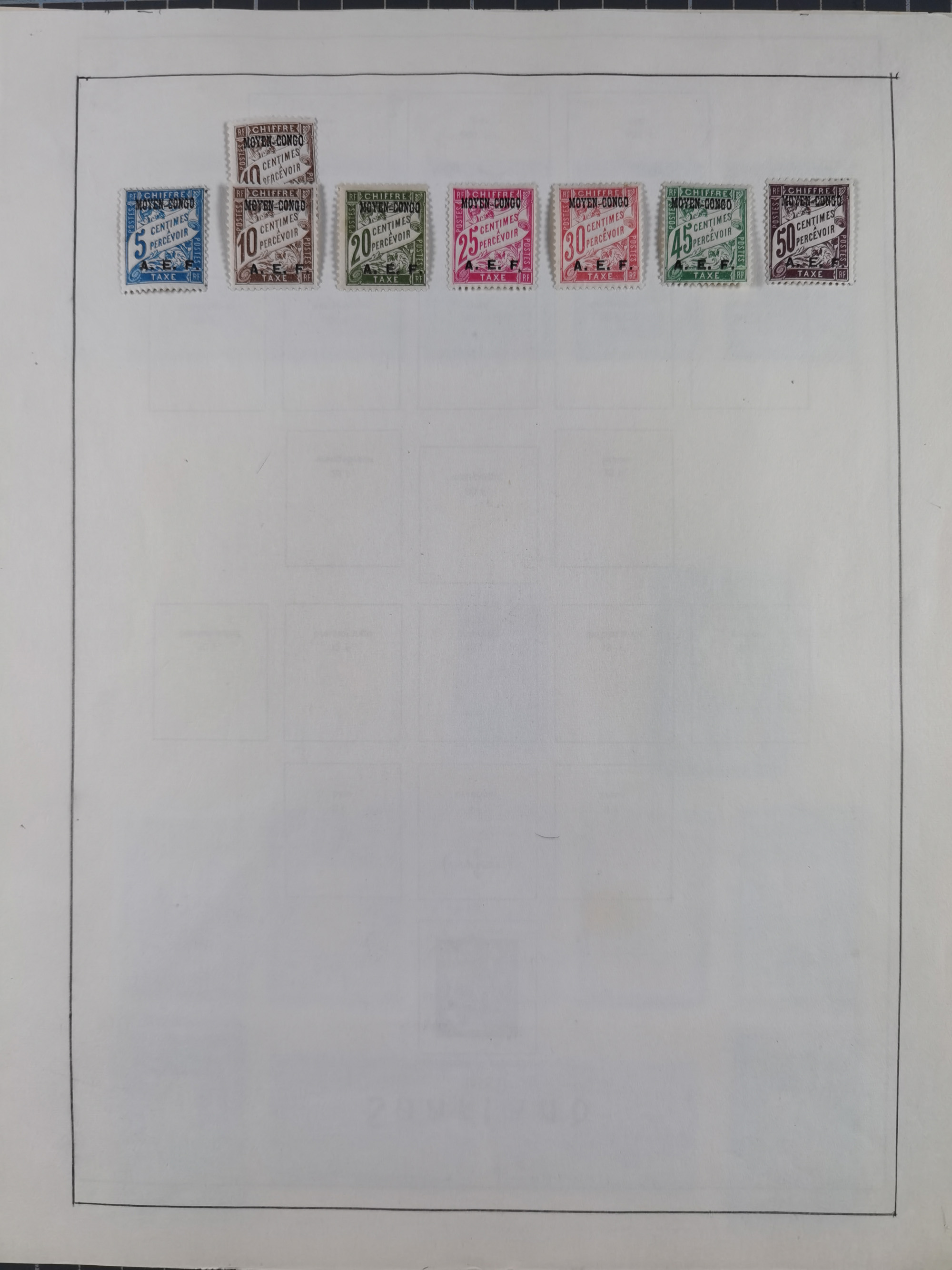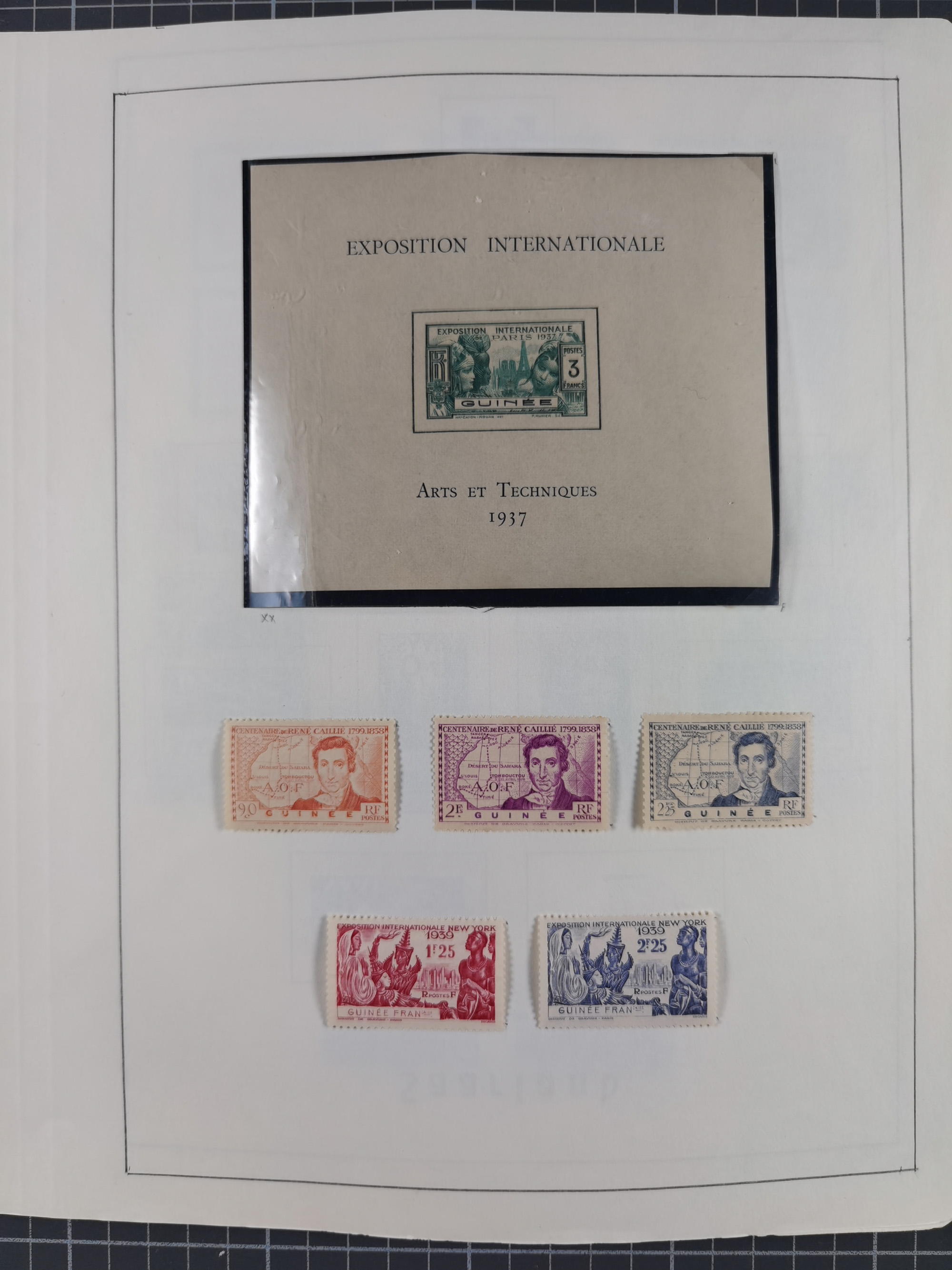 1895/1975 (ca)  unsued and used collection French Colonies and successor states, with stamps from a.o. Algeria, Dahomey, French Sudan, Obock, Gabon, Guinea, Cameroon, Madagascar with better overprint stamps, Réunion, Senegal, Somalia and Togo. Plus two page with the general issues 1859/86 incl. postage due, mostly in good condition