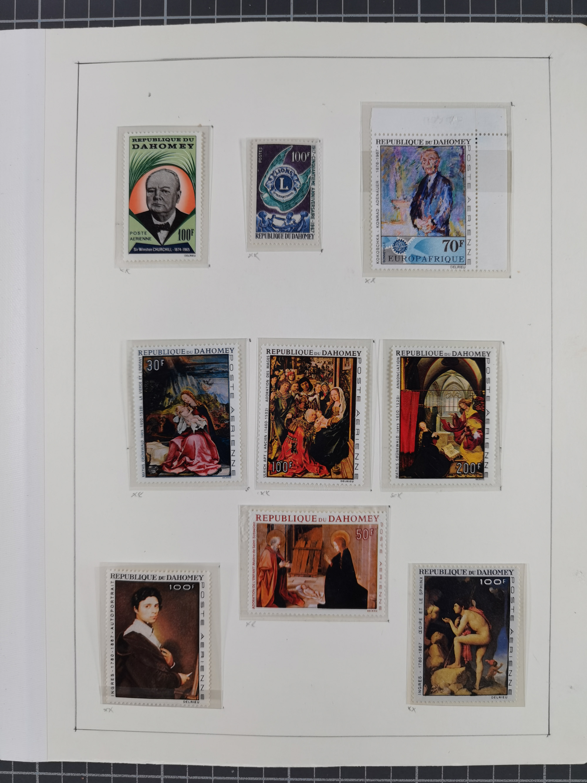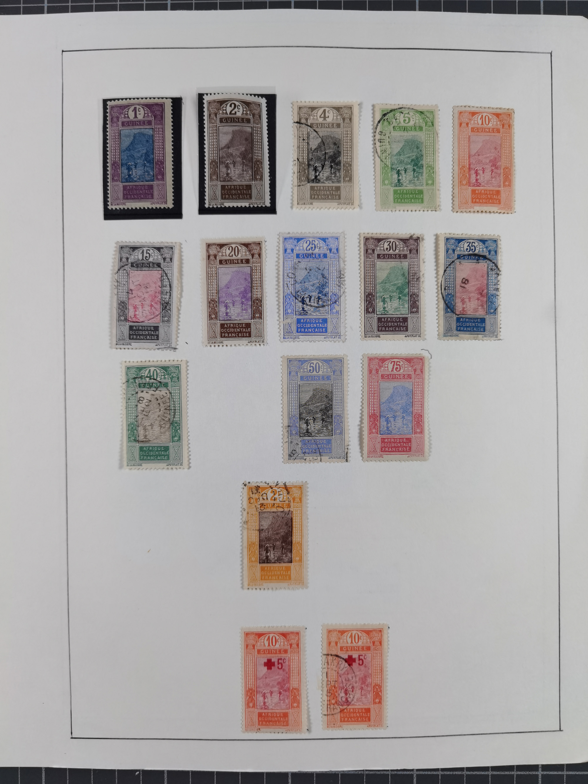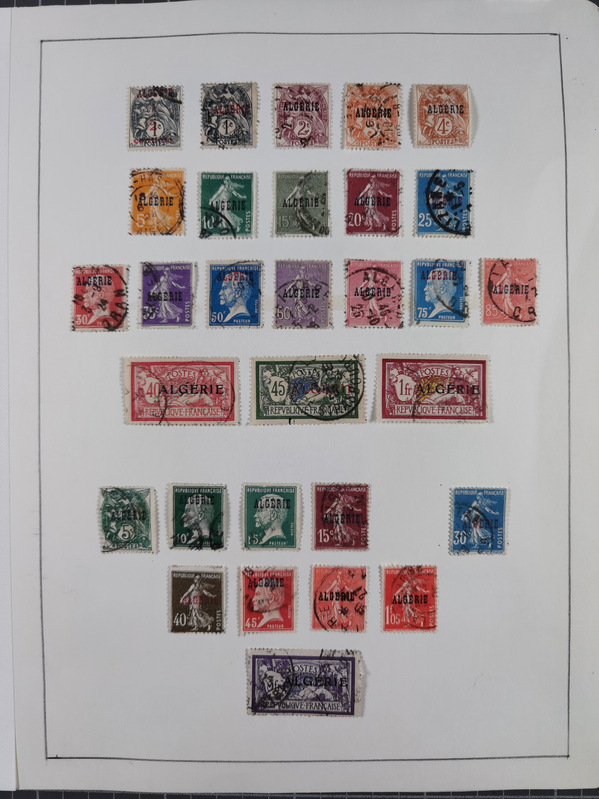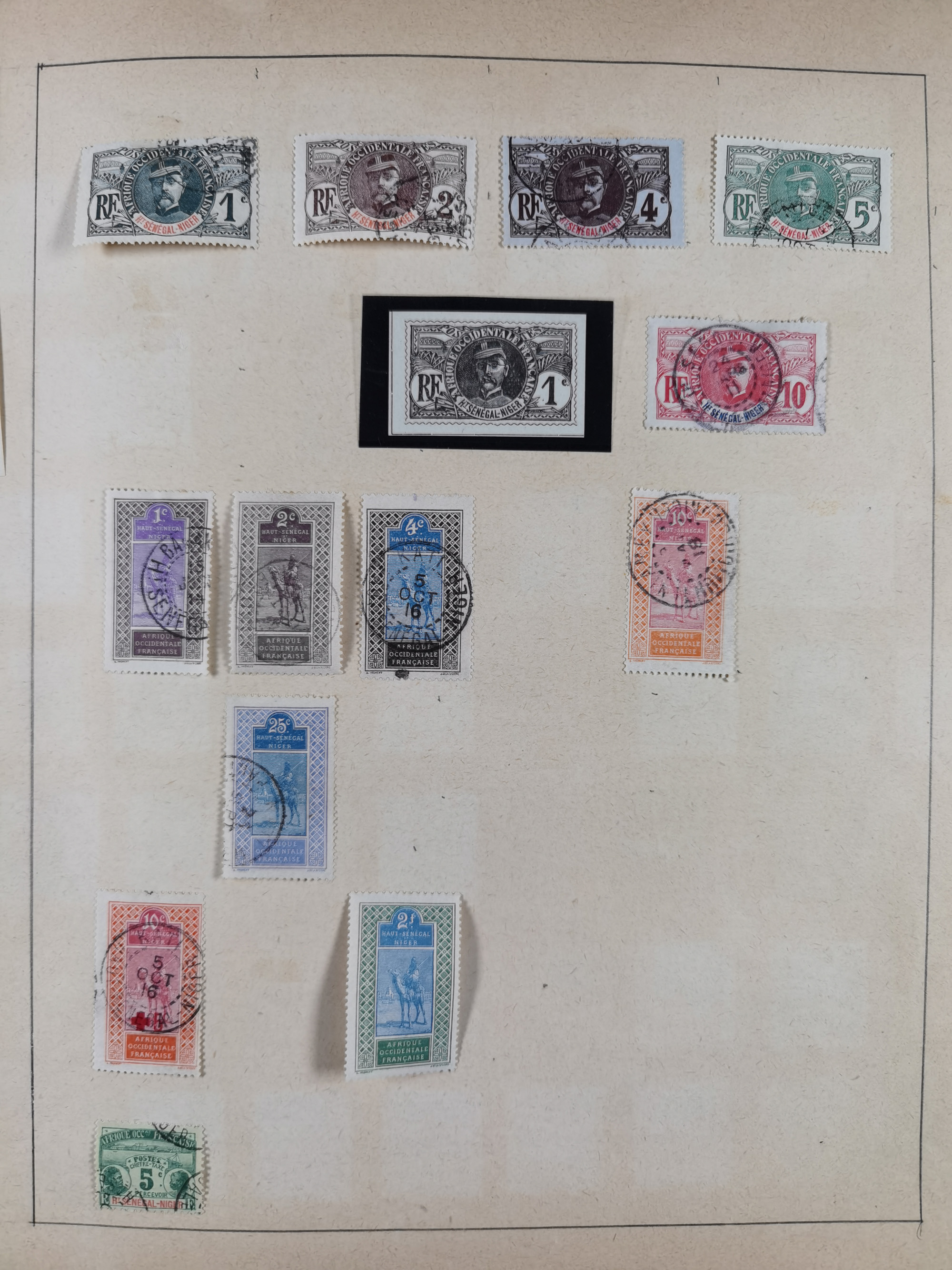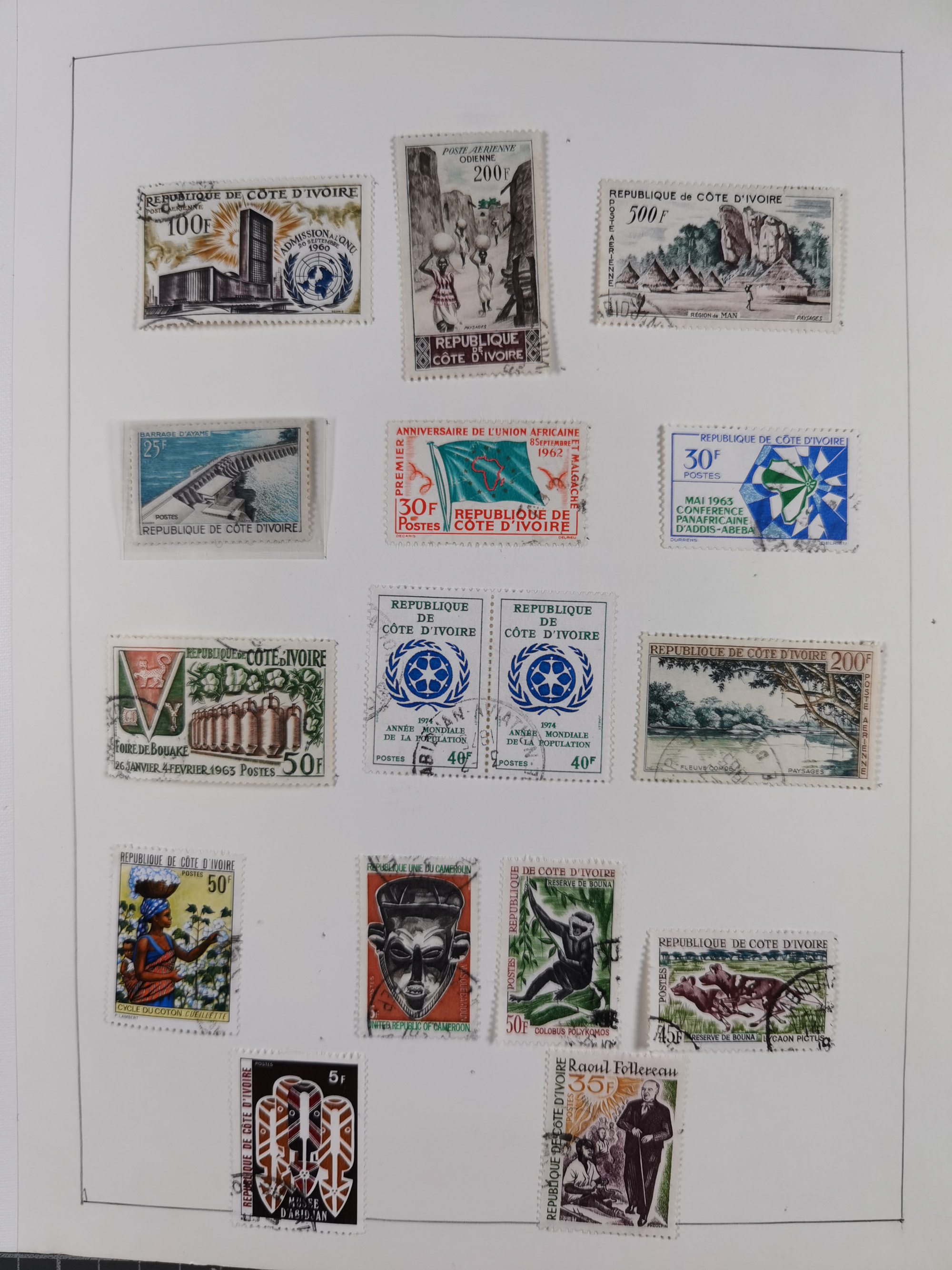 1895/1975 (ca)  unsued and used collection French Colonies and successor states, with stamps from a.o. Algeria, Dahomey, French Sudan, Obock, Gabon, Guinea, Cameroon, Madagascar with better overprint stamps, Réunion, Senegal, Somalia and Togo. Plus two page with the general issues 1859/86 incl. postage due, mostly in good condition