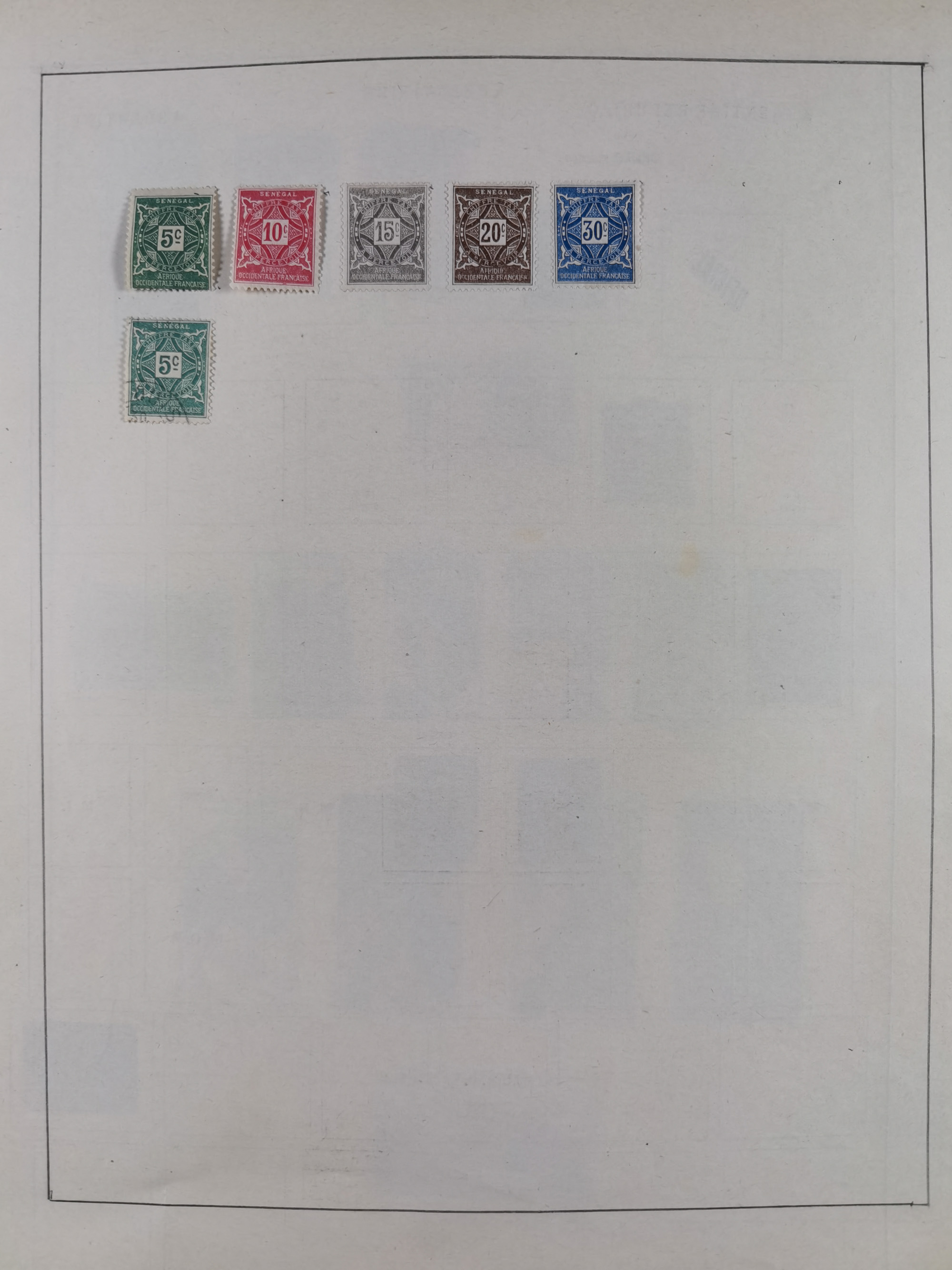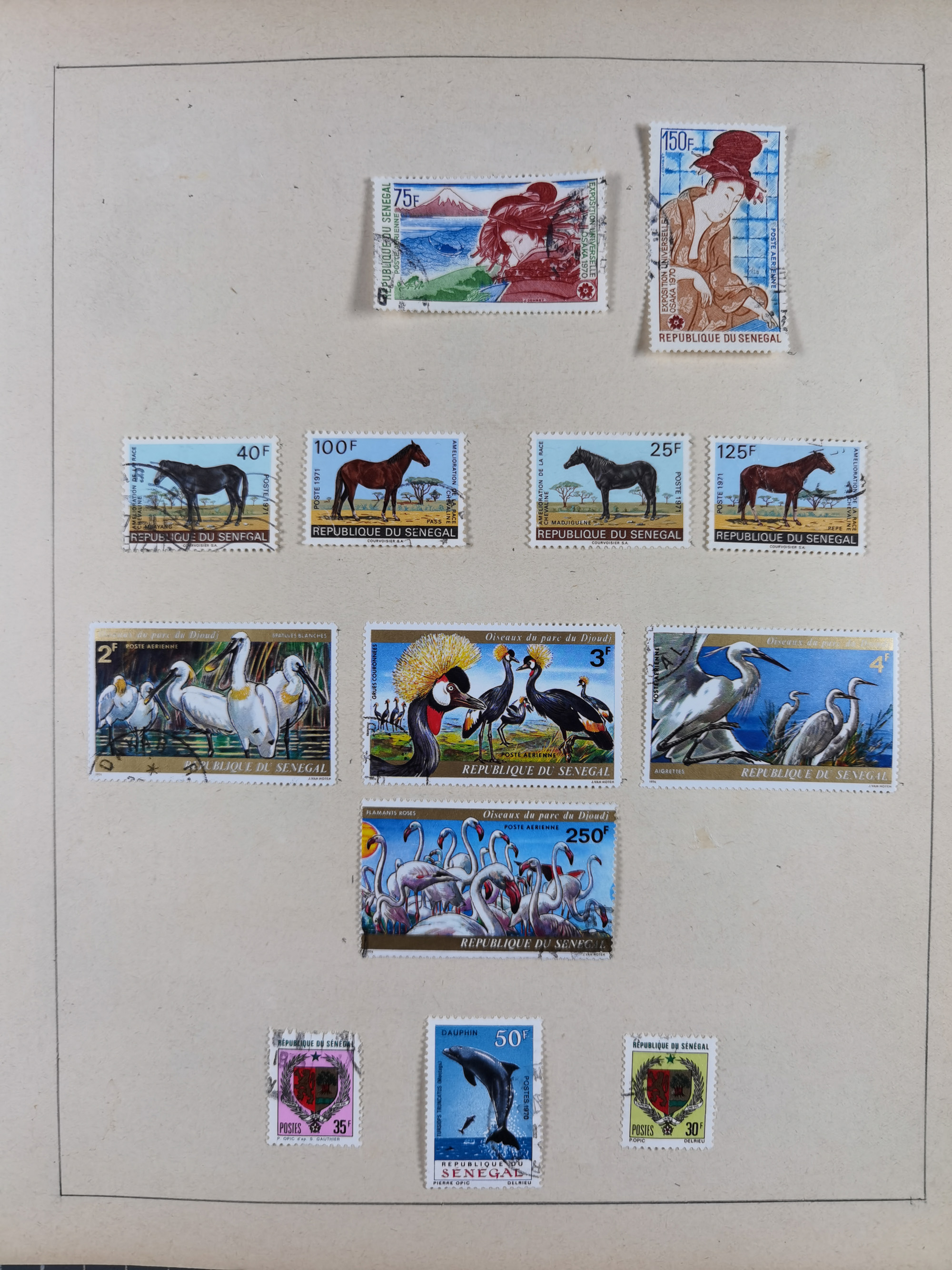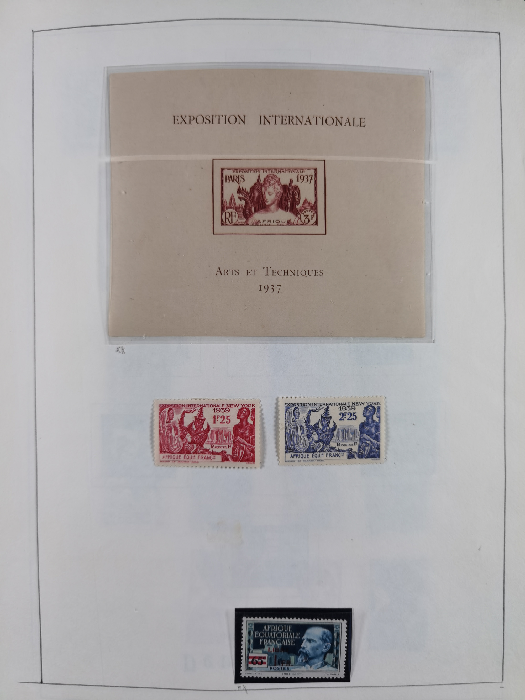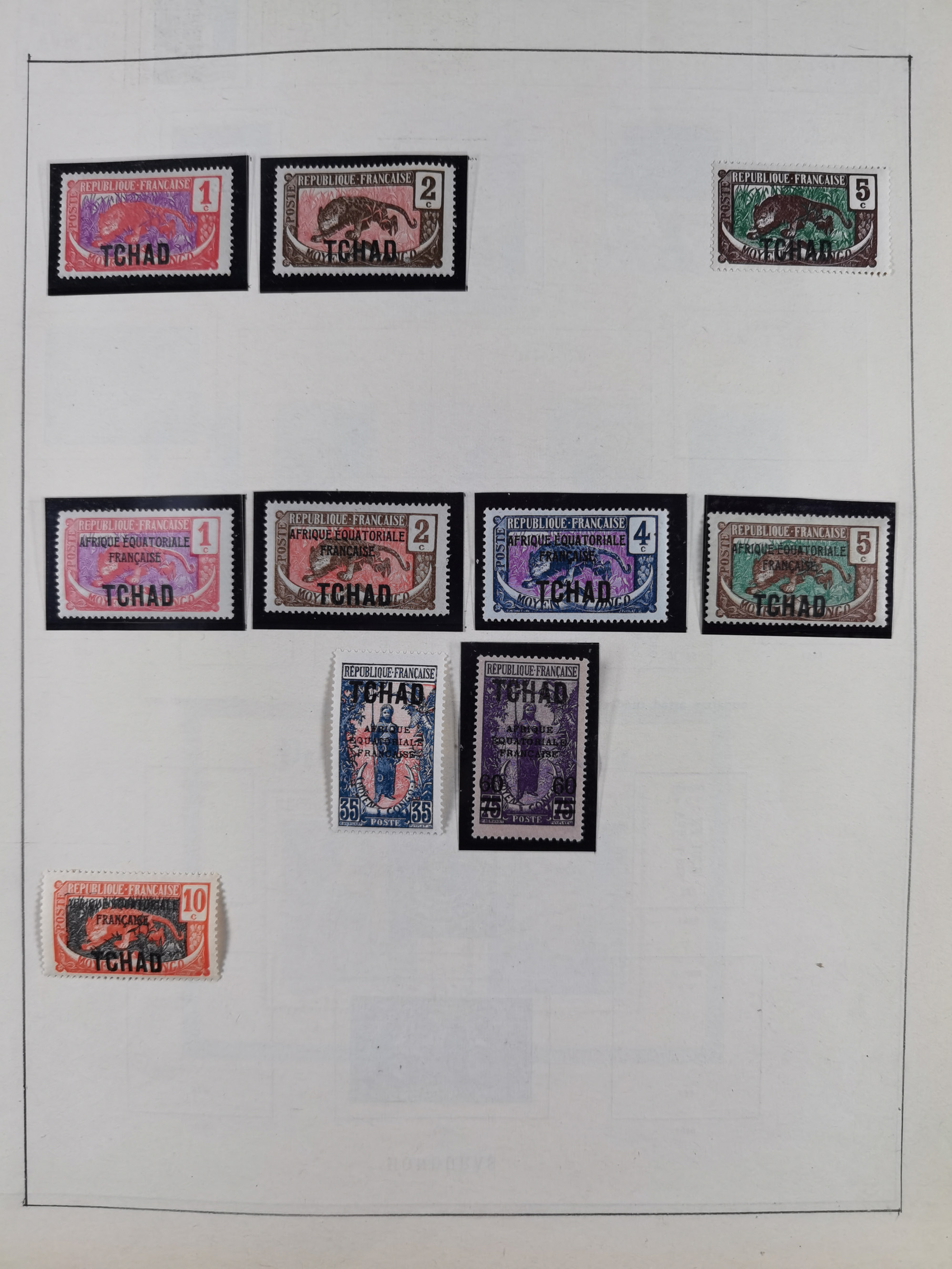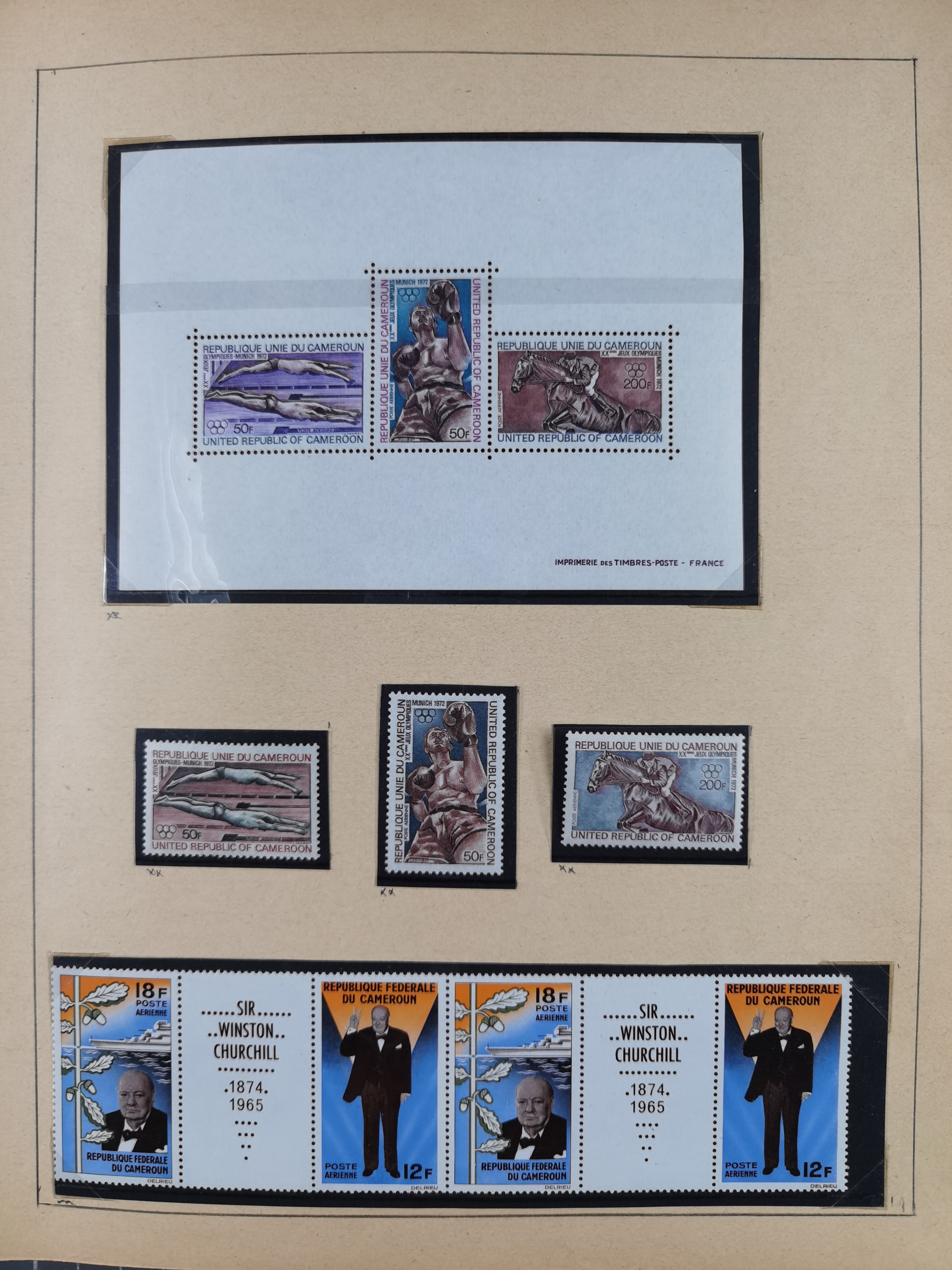 1895/1975 (ca)  unsued and used collection French Colonies and successor states, with stamps from a.o. Algeria, Dahomey, French Sudan, Obock, Gabon, Guinea, Cameroon, Madagascar with better overprint stamps, Réunion, Senegal, Somalia and Togo. Plus two page with the general issues 1859/86 incl. postage due, mostly in good condition