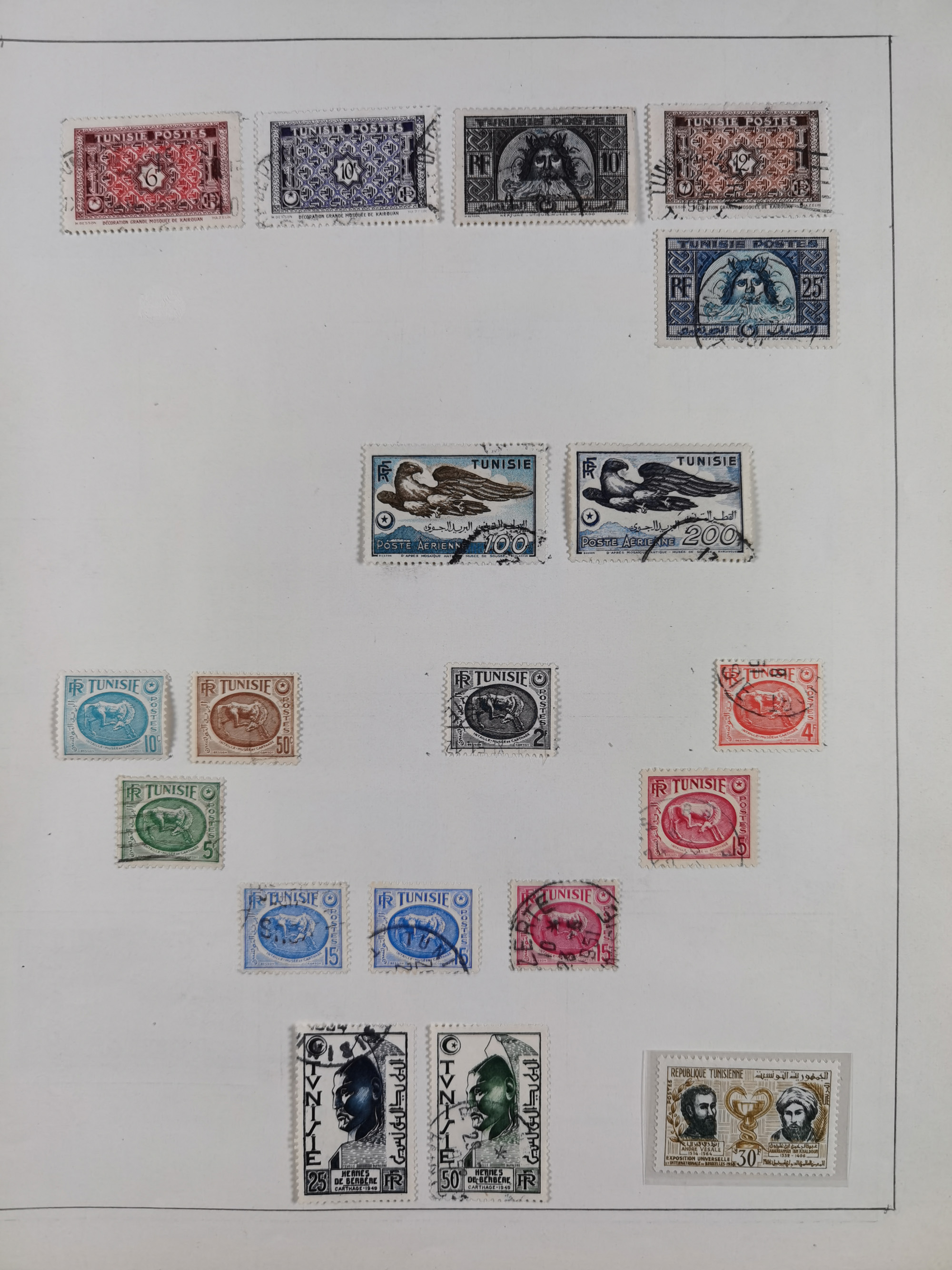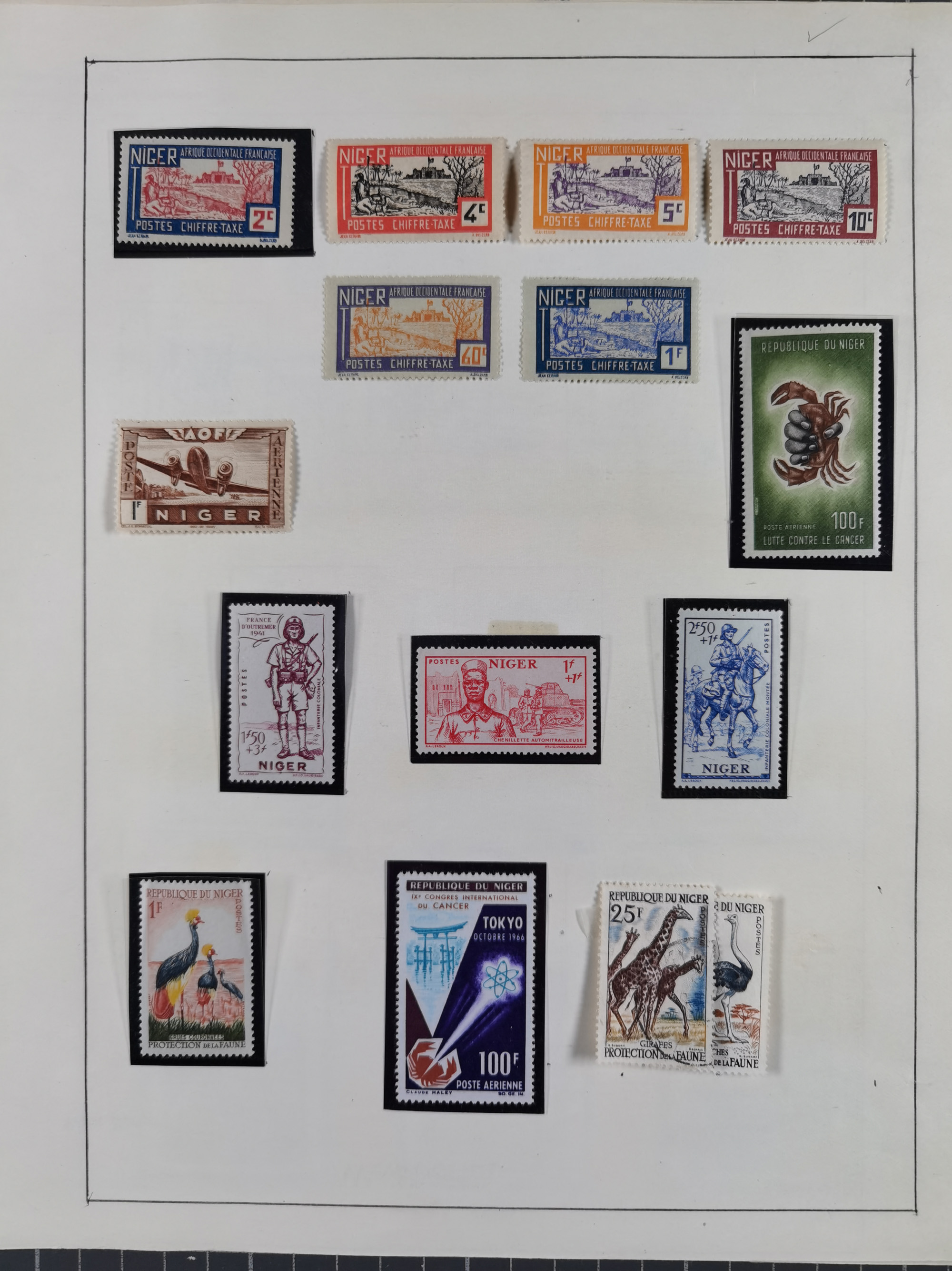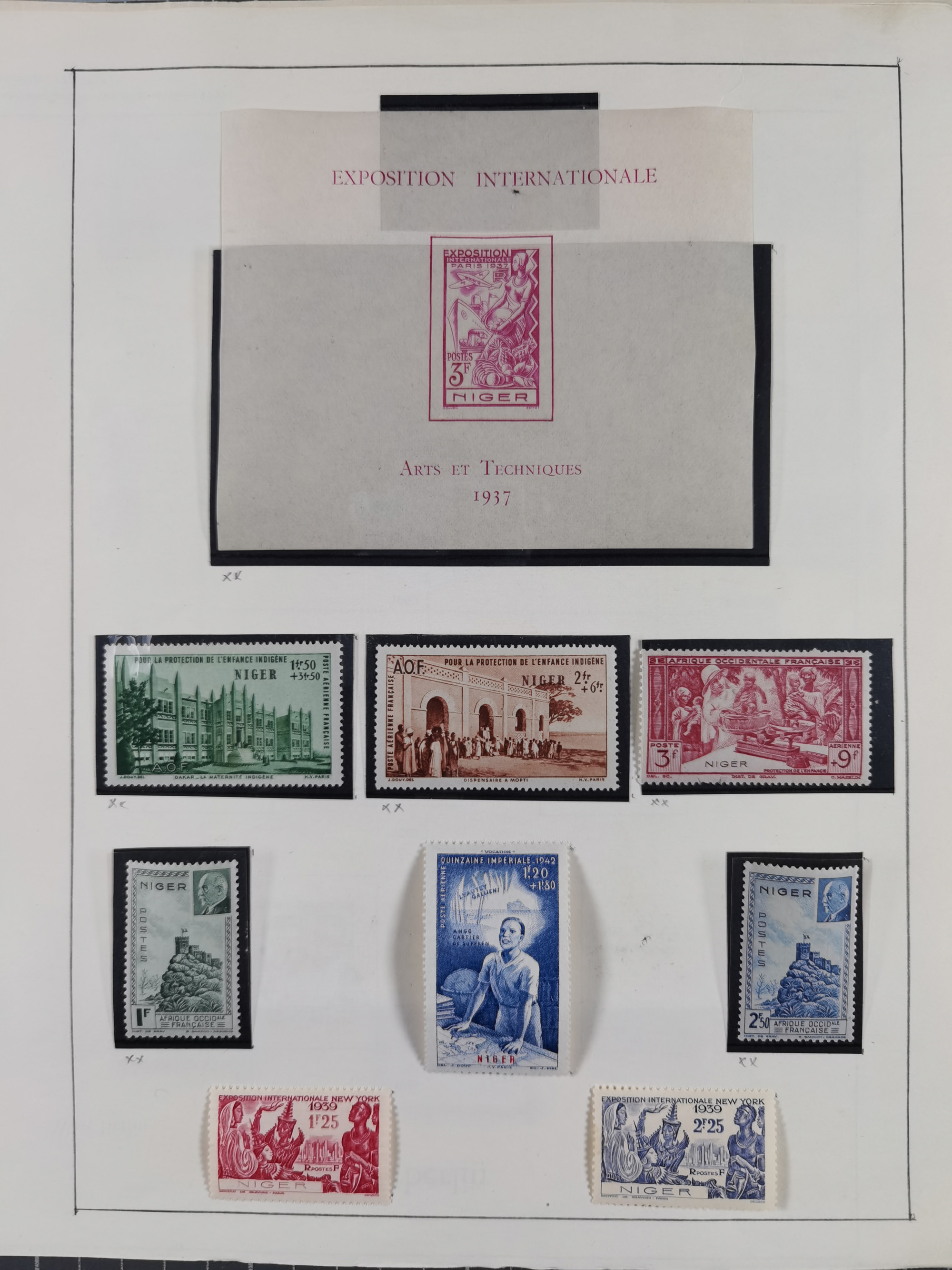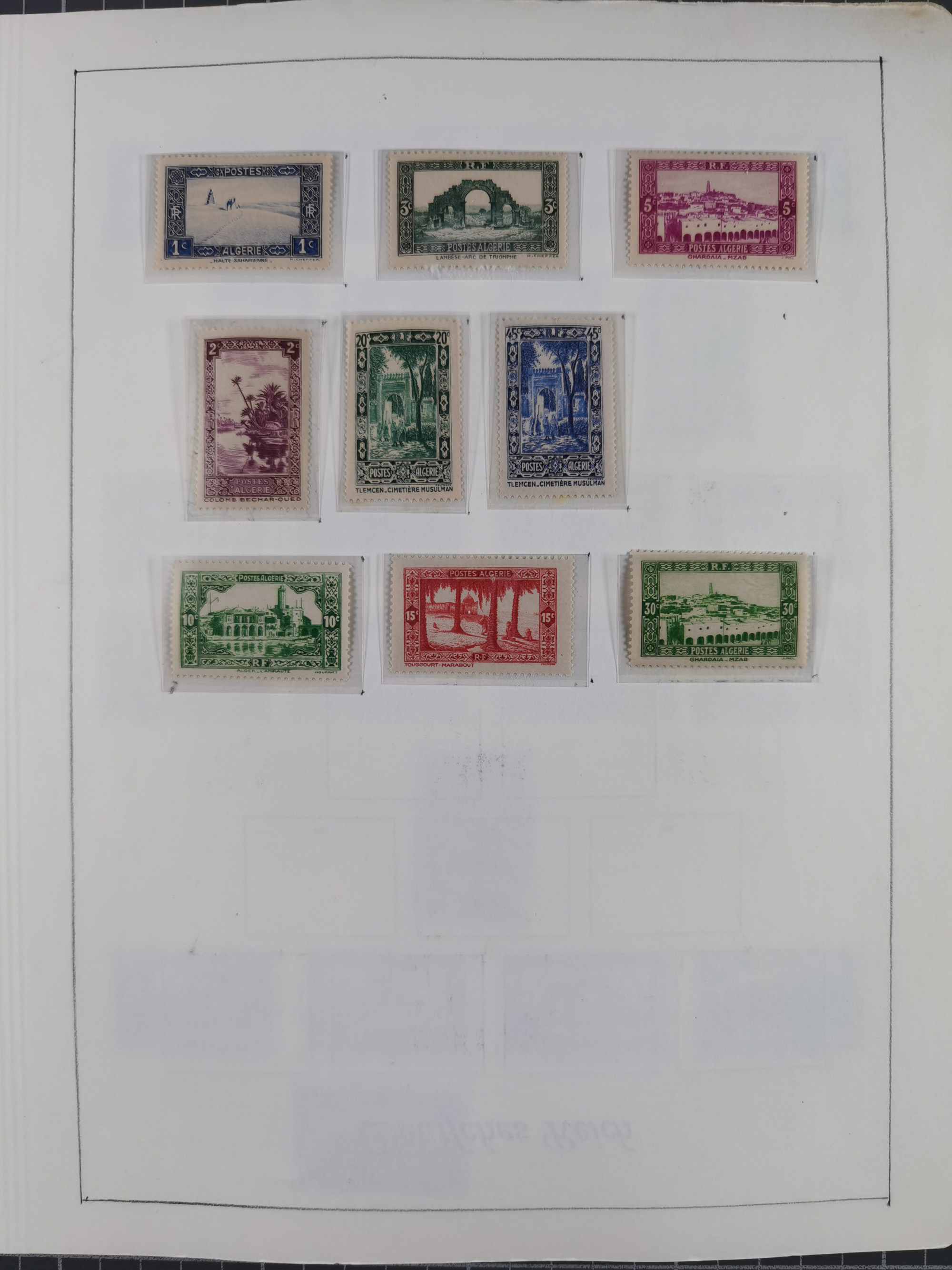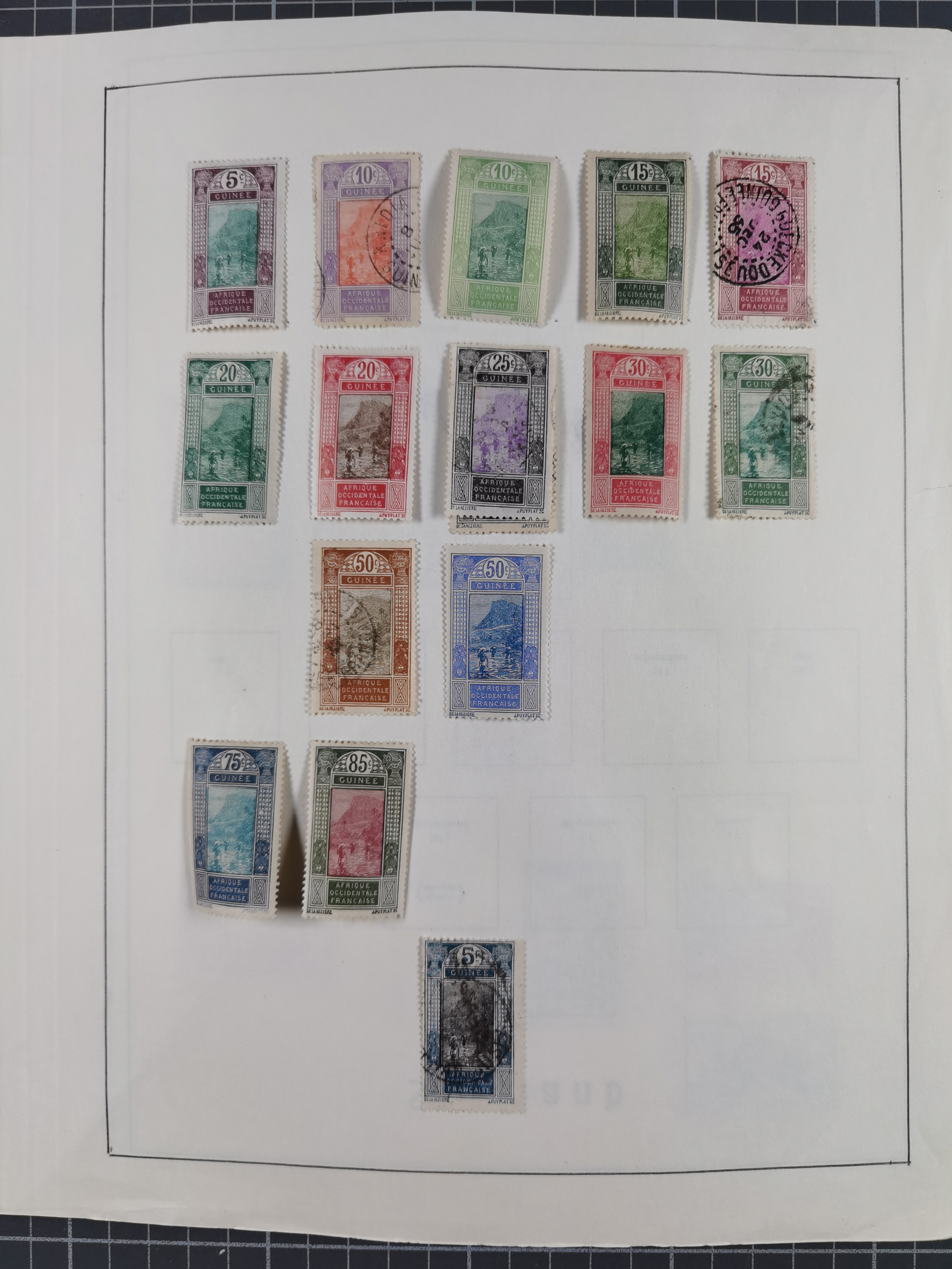 1895/1975 (ca)  unsued and used collection French Colonies and successor states, with stamps from a.o. Algeria, Dahomey, French Sudan, Obock, Gabon, Guinea, Cameroon, Madagascar with better overprint stamps, Réunion, Senegal, Somalia and Togo. Plus two page with the general issues 1859/86 incl. postage due, mostly in good condition
