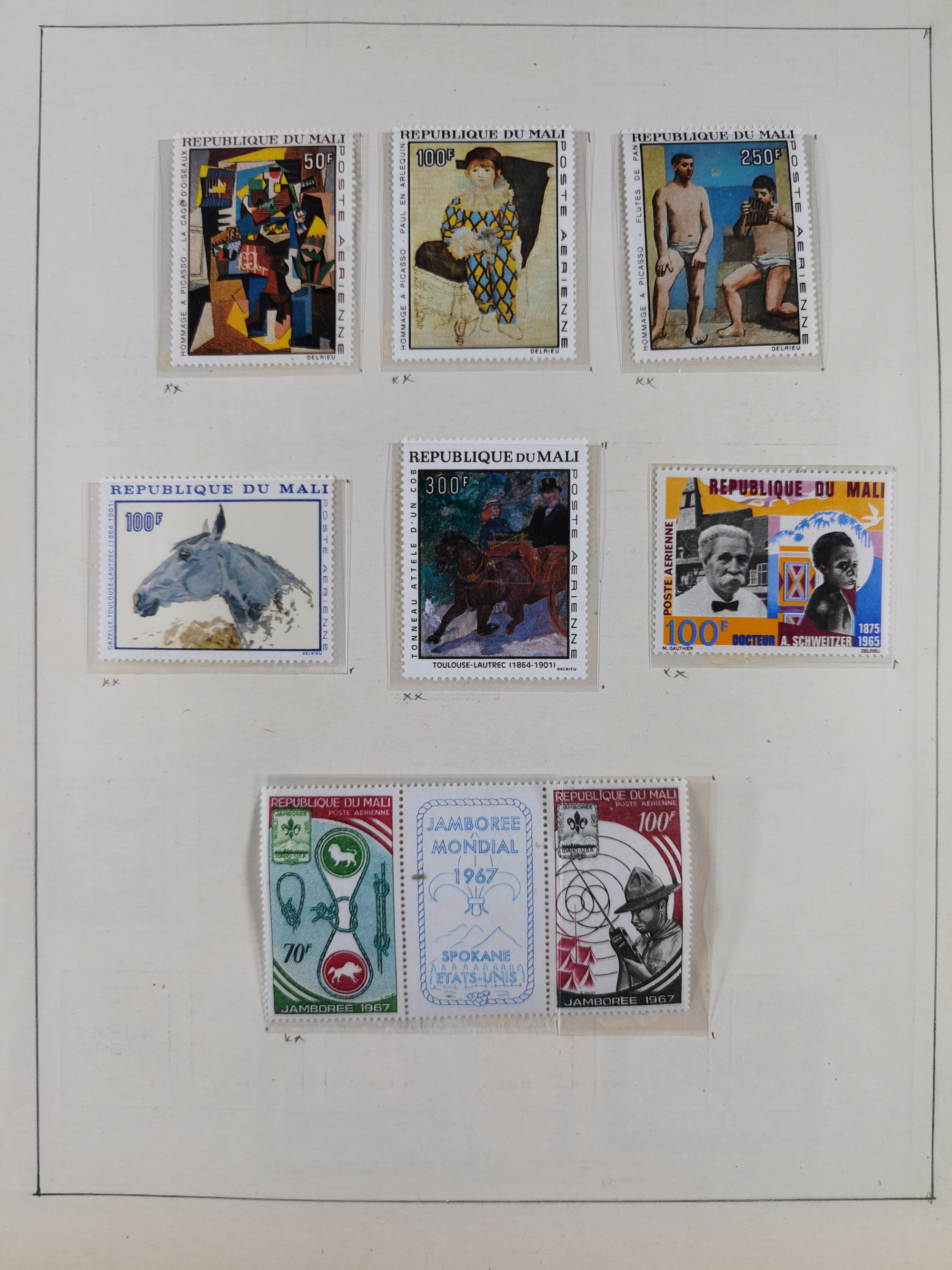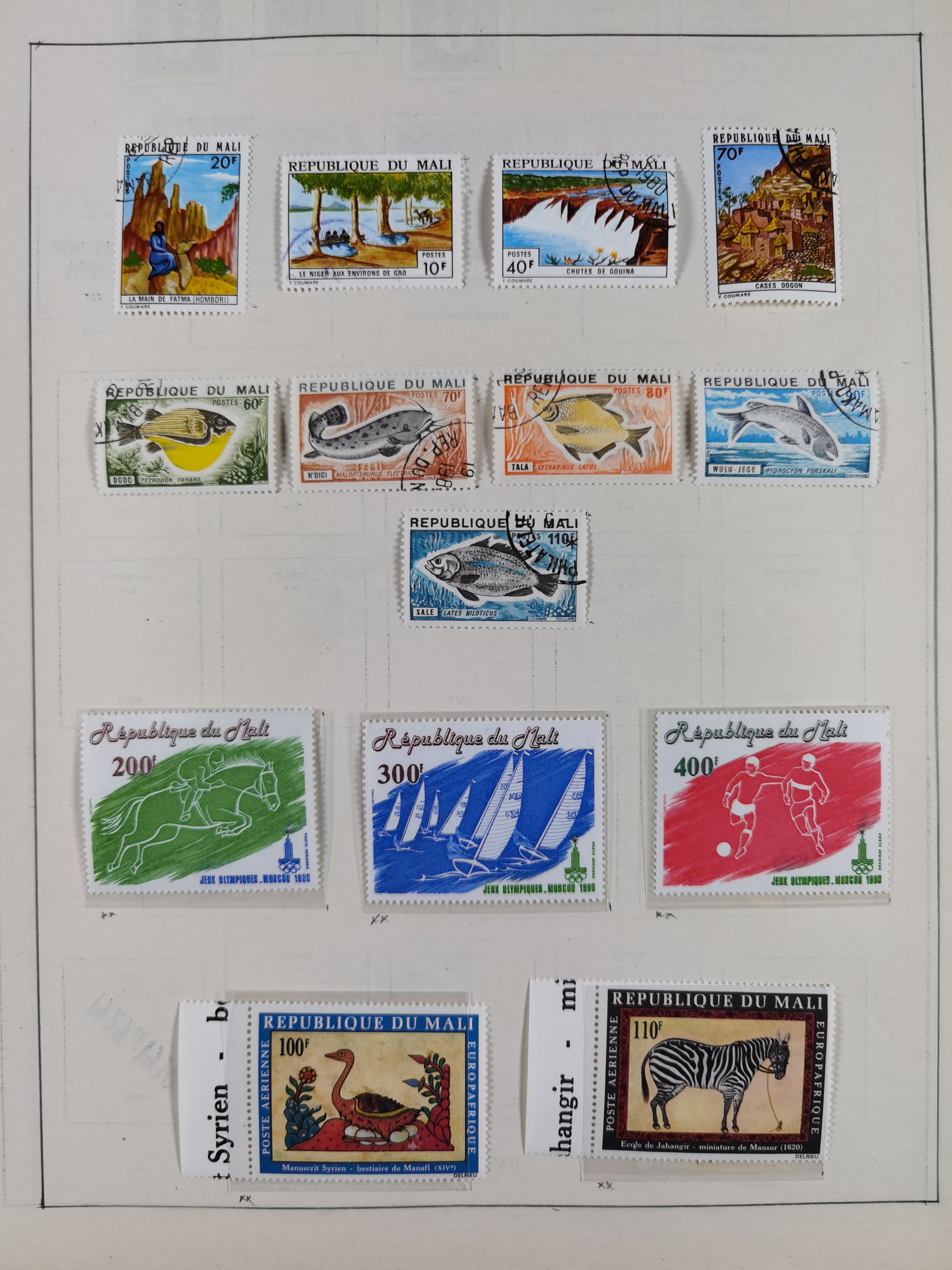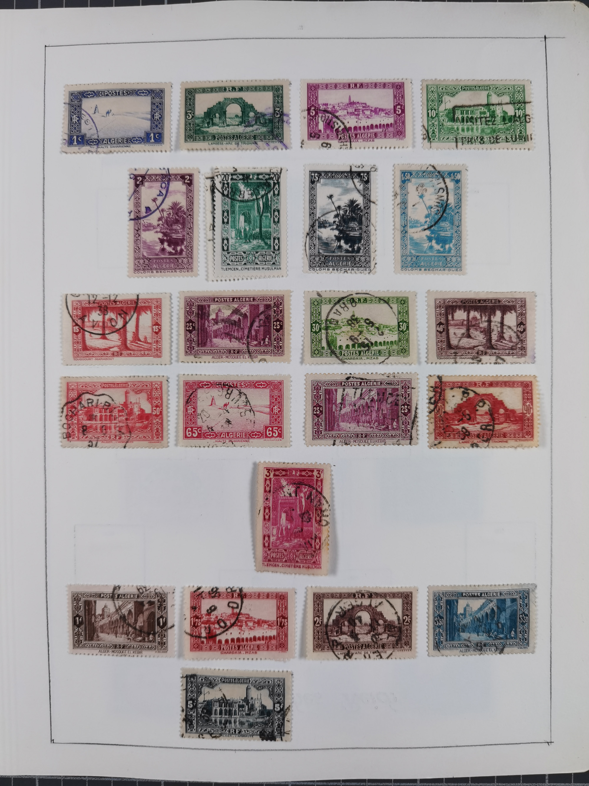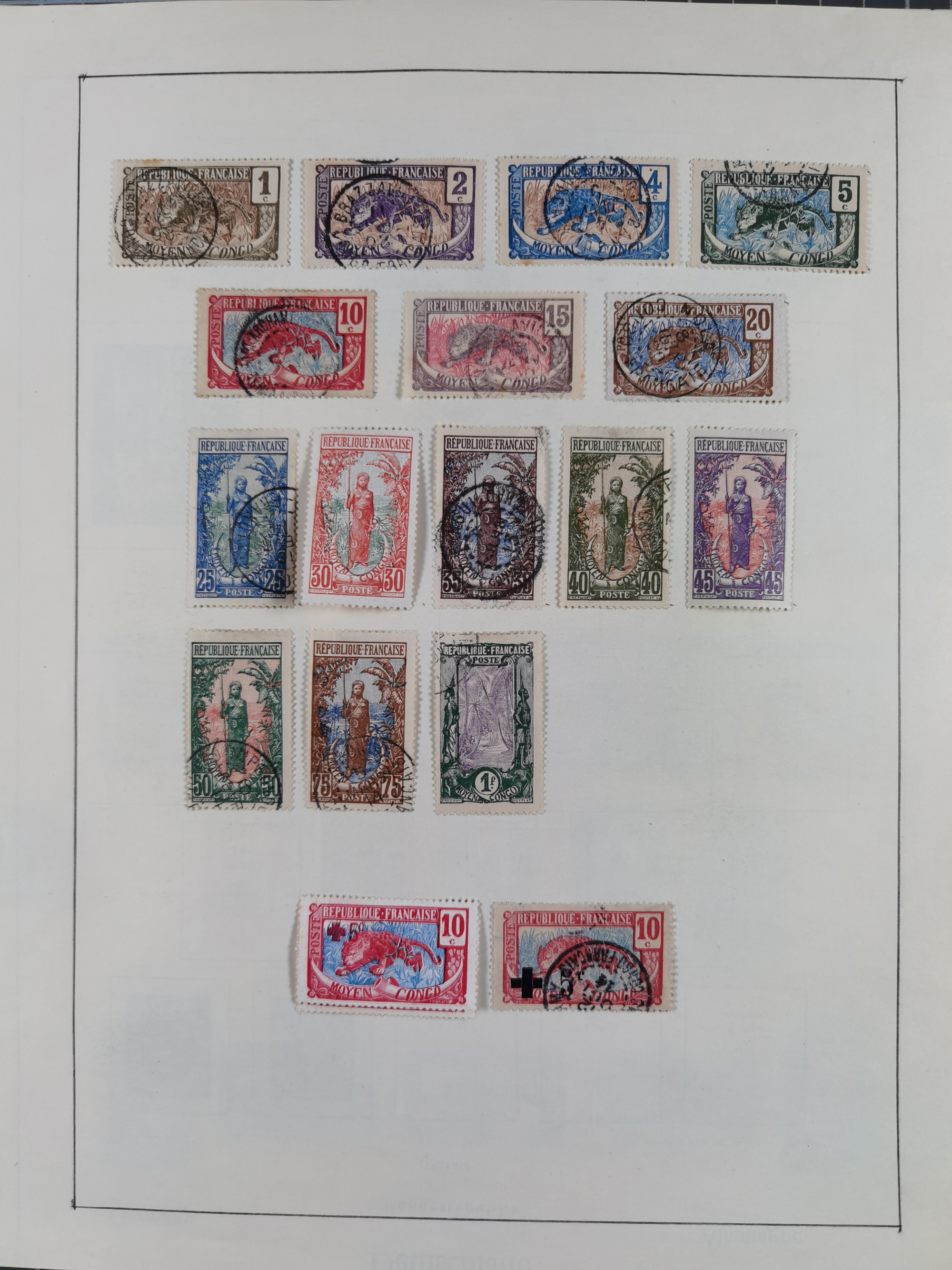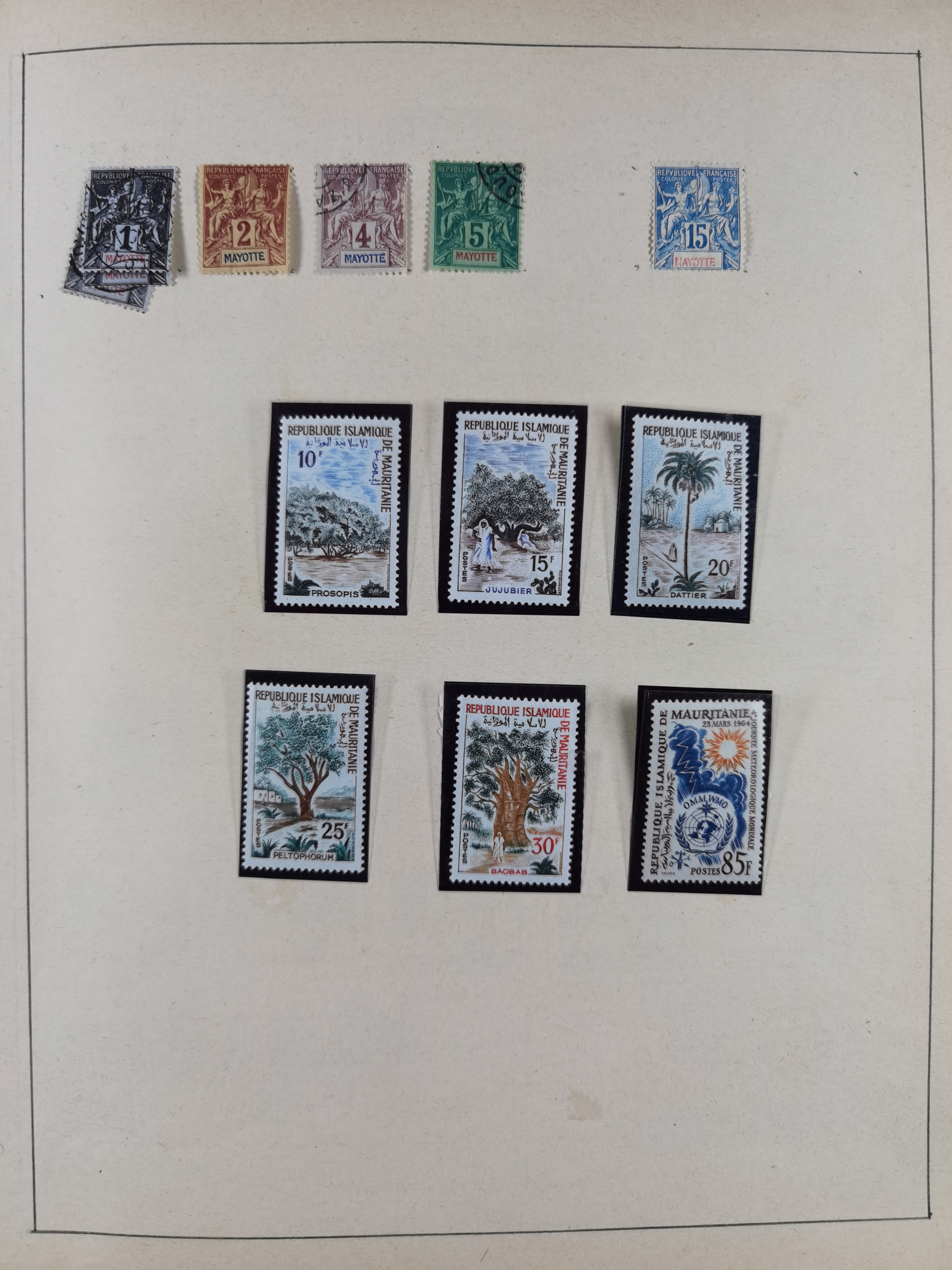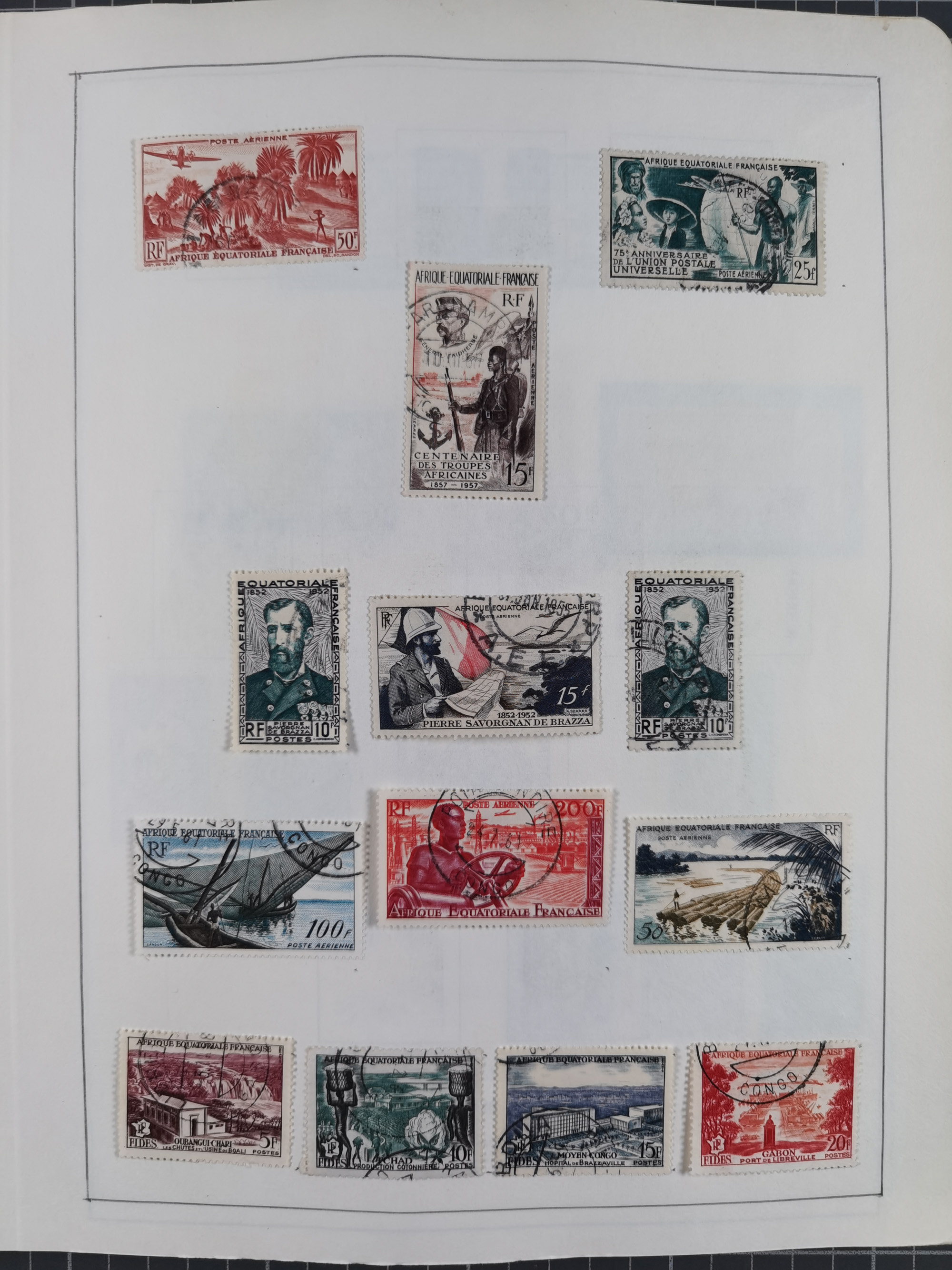 1895/1975 (ca)  unsued and used collection French Colonies and successor states, with stamps from a.o. Algeria, Dahomey, French Sudan, Obock, Gabon, Guinea, Cameroon, Madagascar with better overprint stamps, Réunion, Senegal, Somalia and Togo. Plus two page with the general issues 1859/86 incl. postage due, mostly in good condition