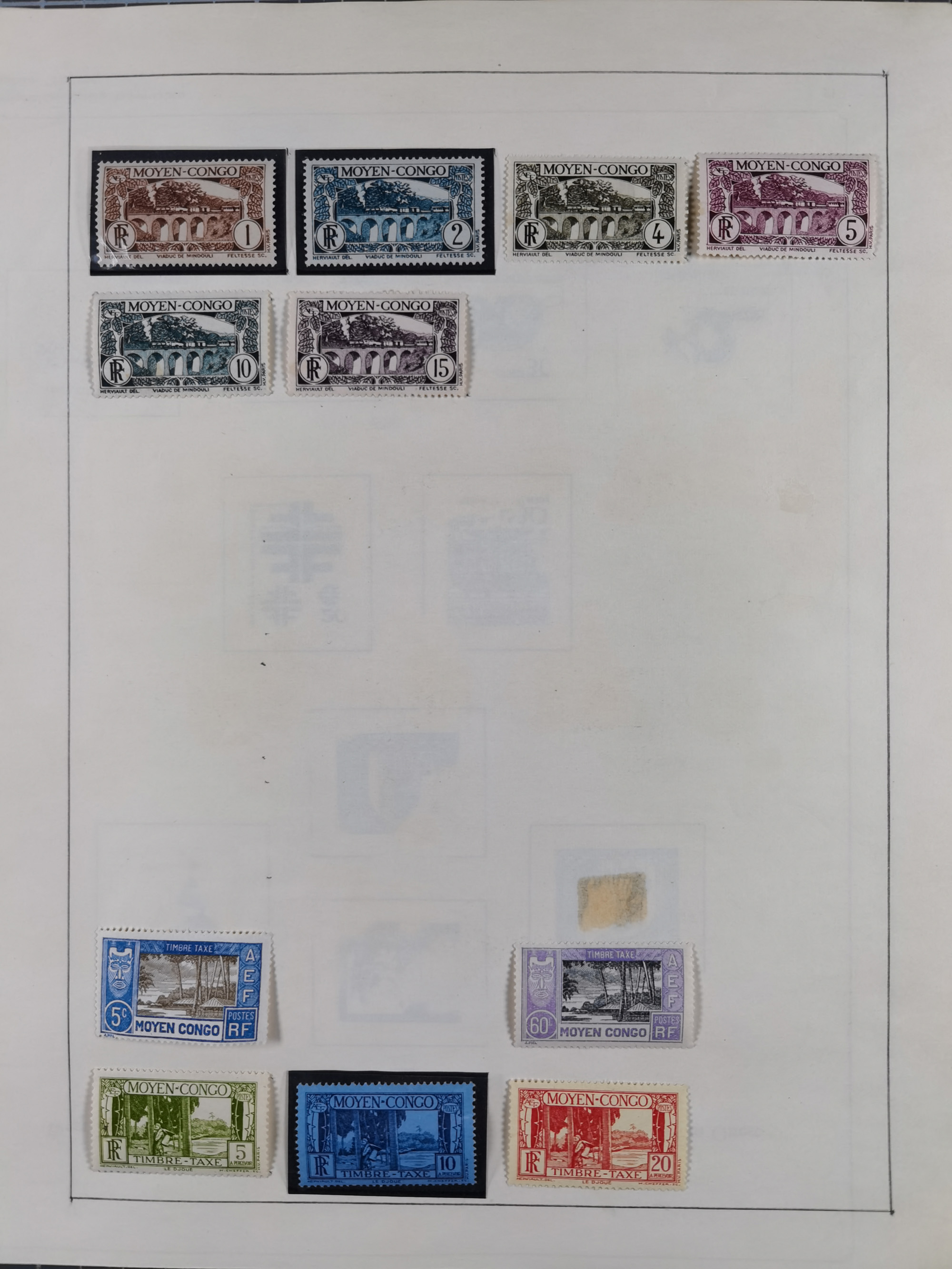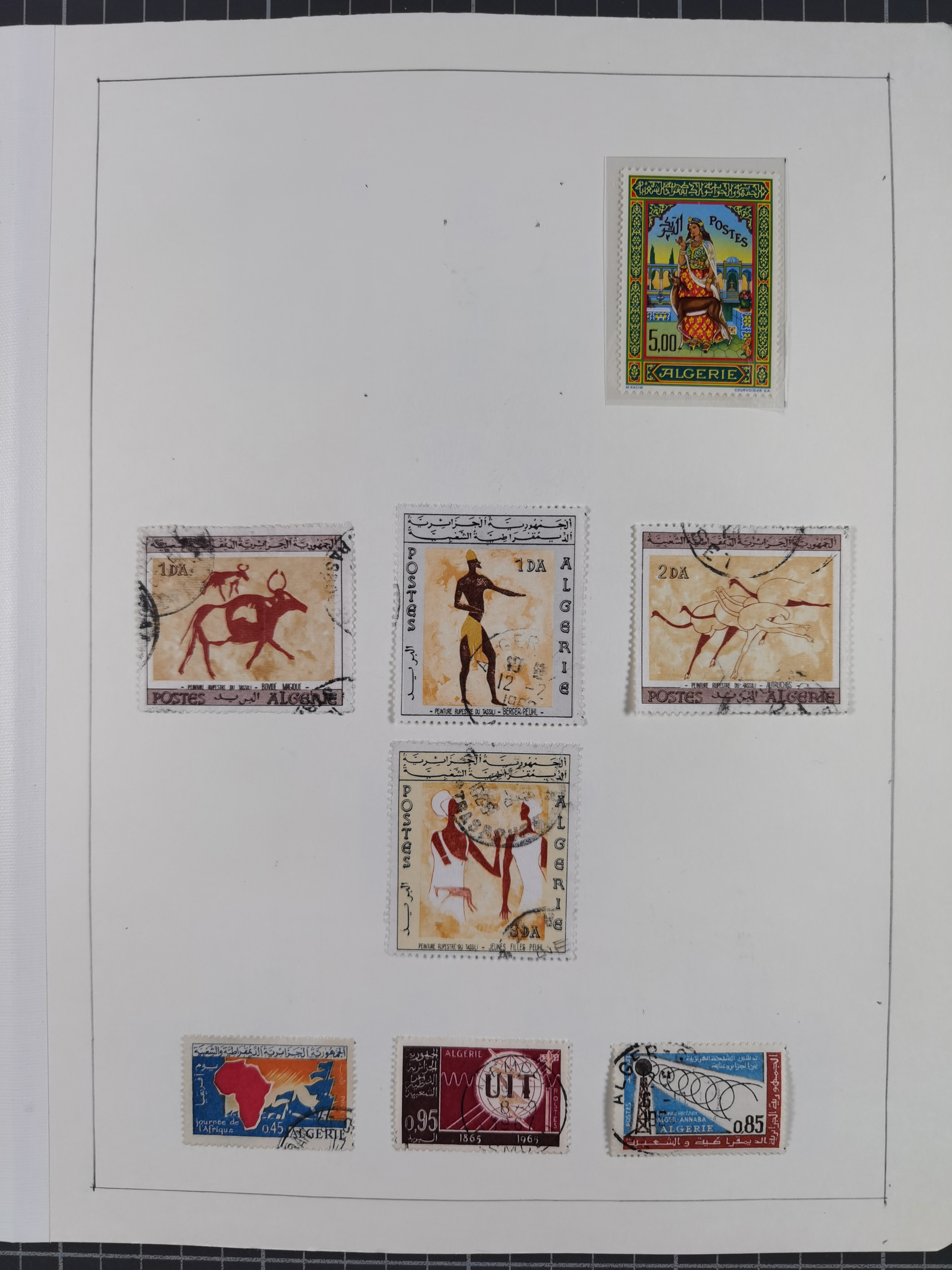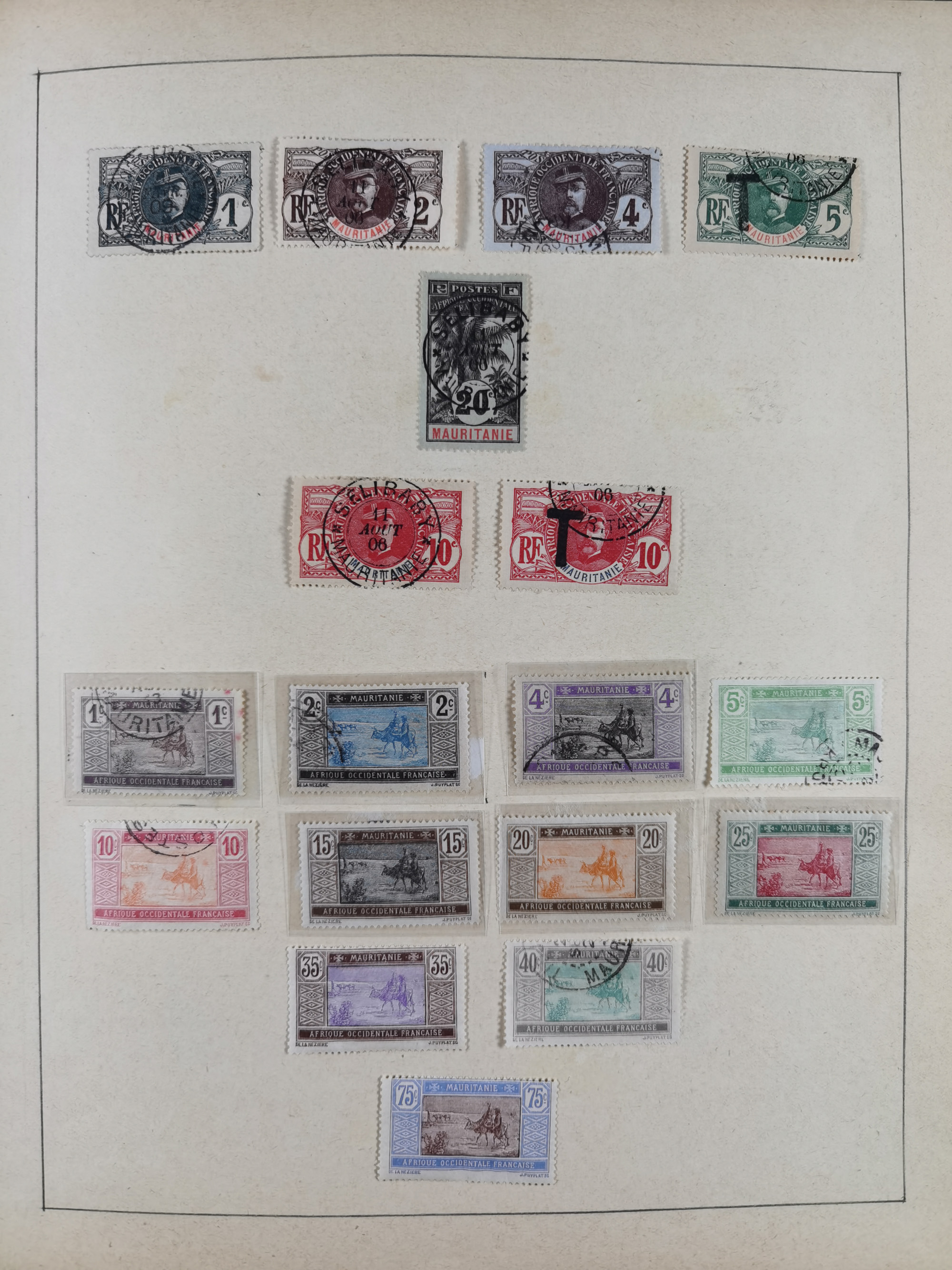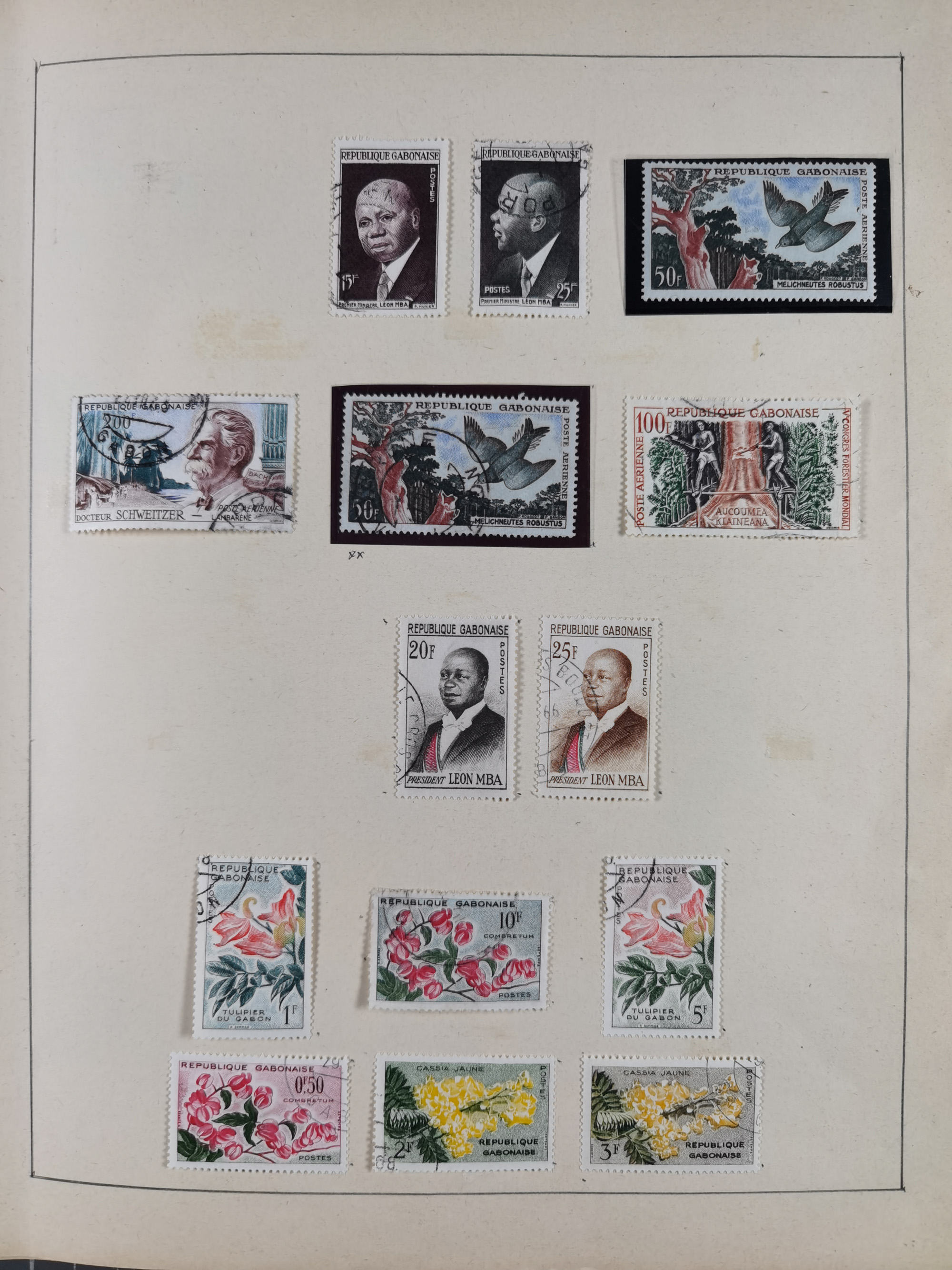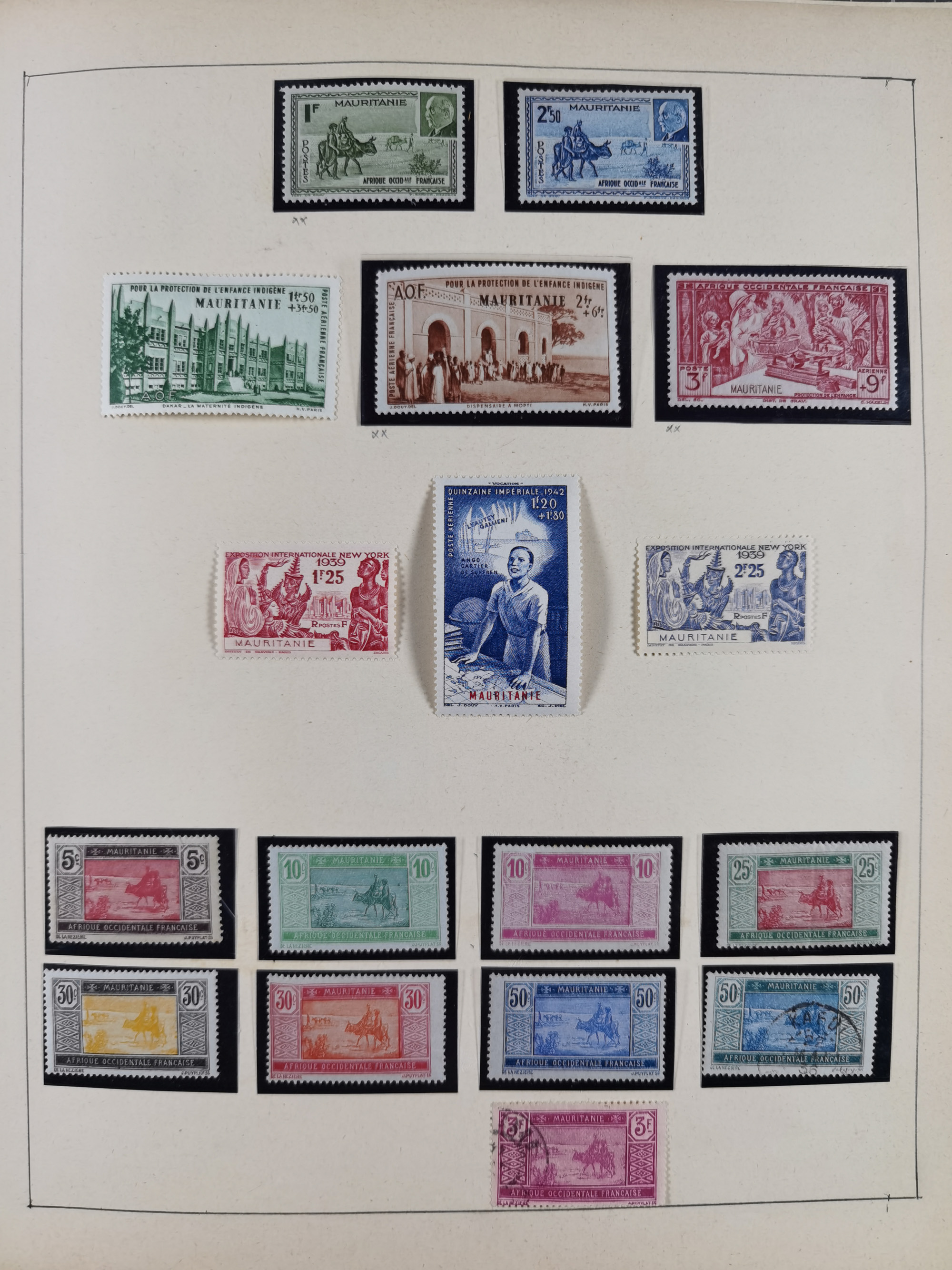 1895/1975 (ca)  unsued and used collection French Colonies and successor states, with stamps from a.o. Algeria, Dahomey, French Sudan, Obock, Gabon, Guinea, Cameroon, Madagascar with better overprint stamps, Réunion, Senegal, Somalia and Togo. Plus two page with the general issues 1859/86 incl. postage due, mostly in good condition