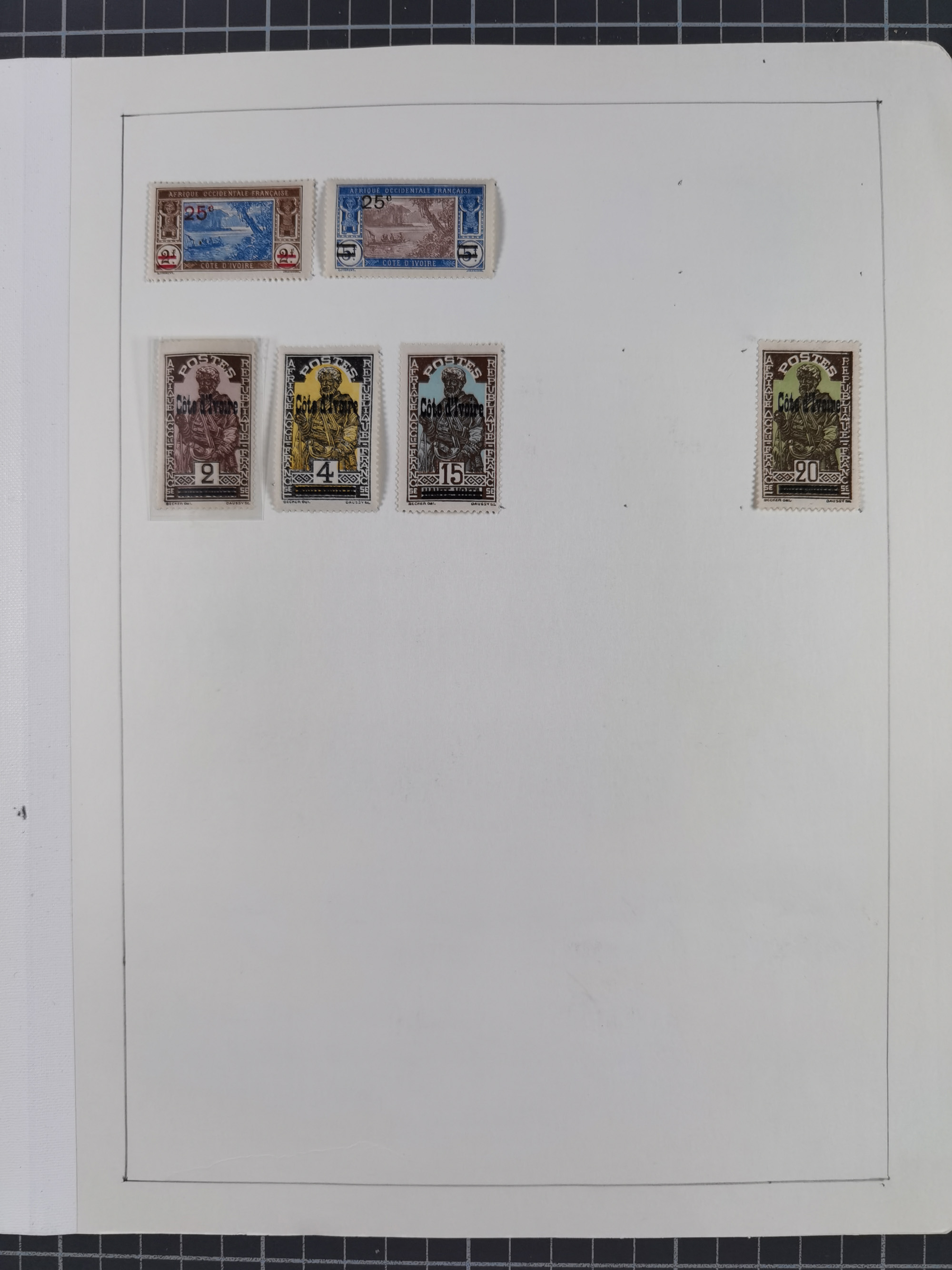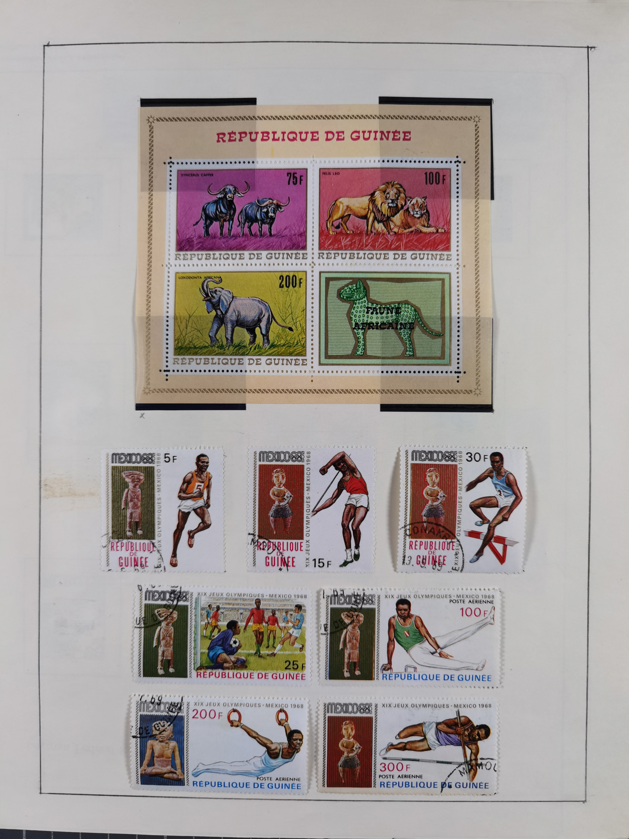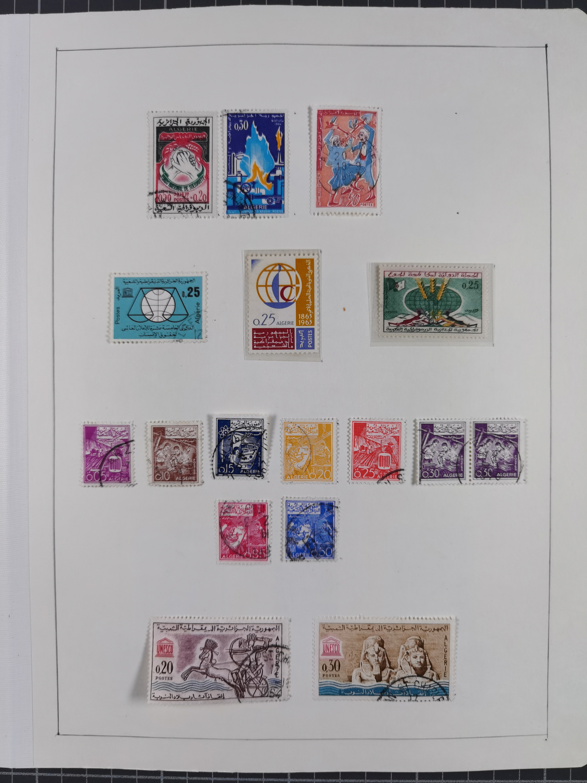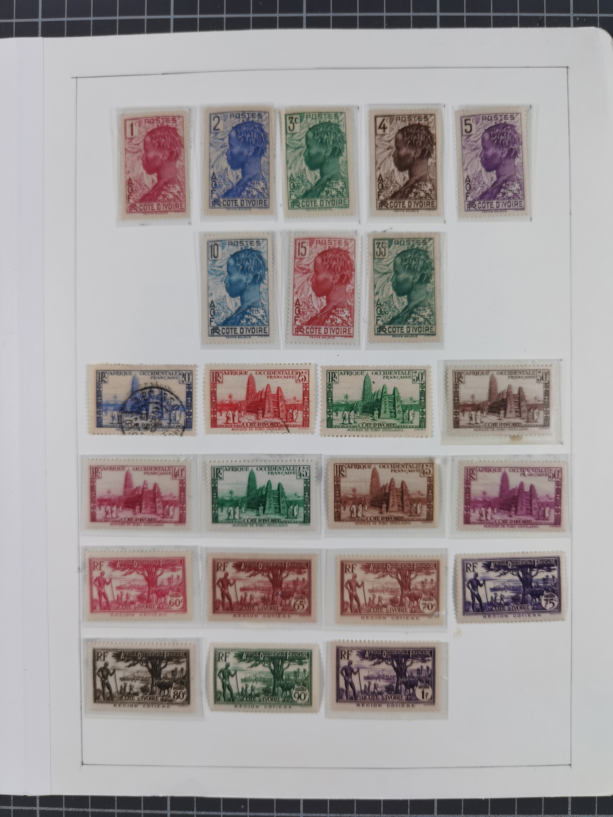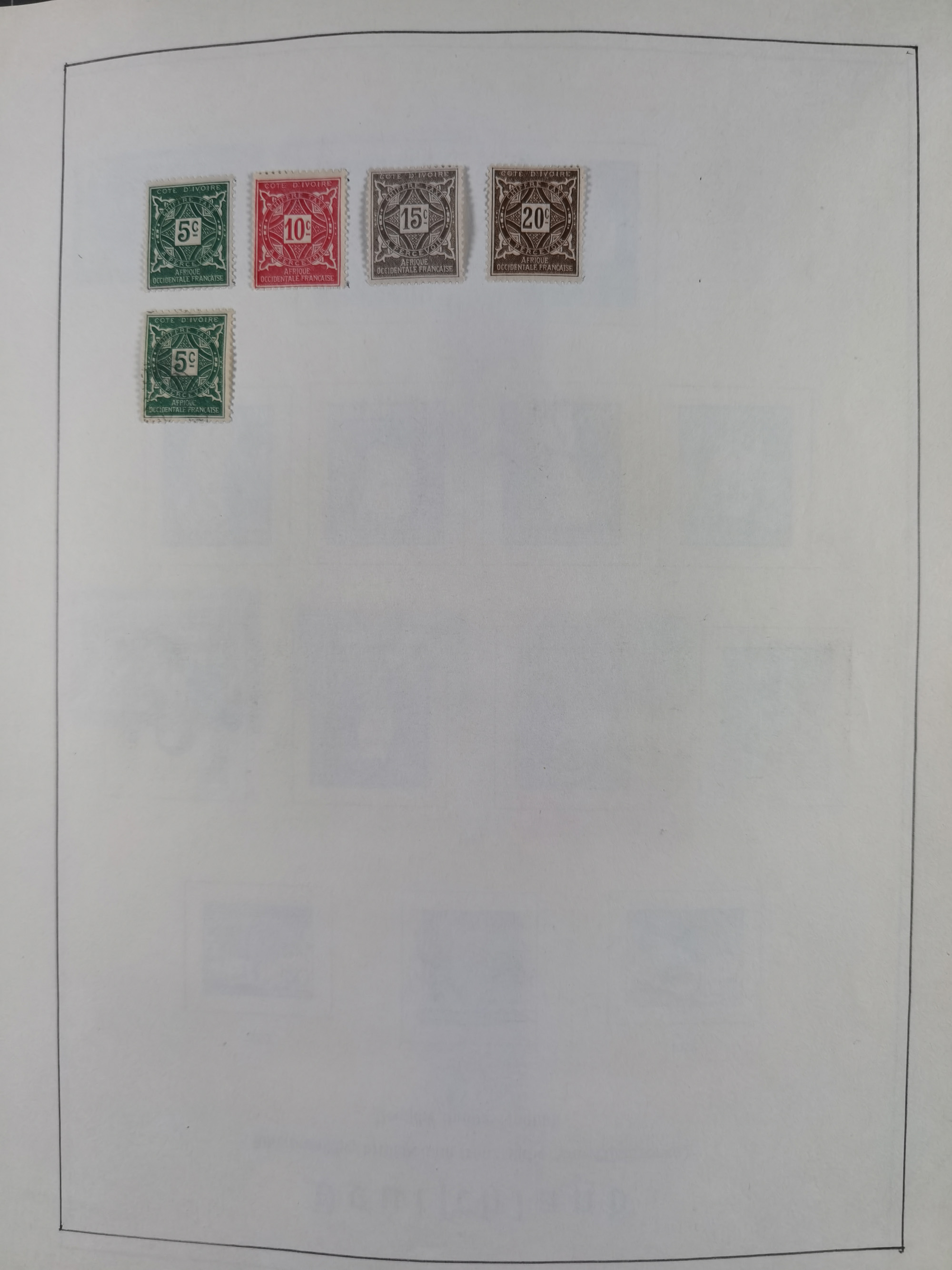 1895/1975 (ca)  unsued and used collection French Colonies and successor states, with stamps from a.o. Algeria, Dahomey, French Sudan, Obock, Gabon, Guinea, Cameroon, Madagascar with better overprint stamps, Réunion, Senegal, Somalia and Togo. Plus two page with the general issues 1859/86 incl. postage due, mostly in good condition