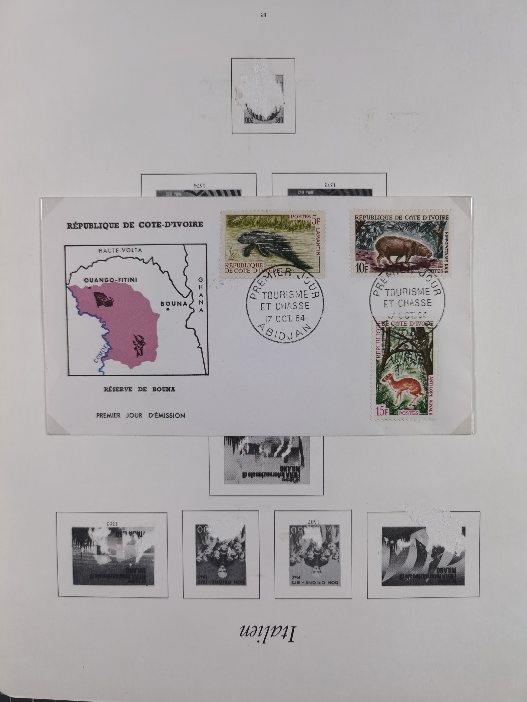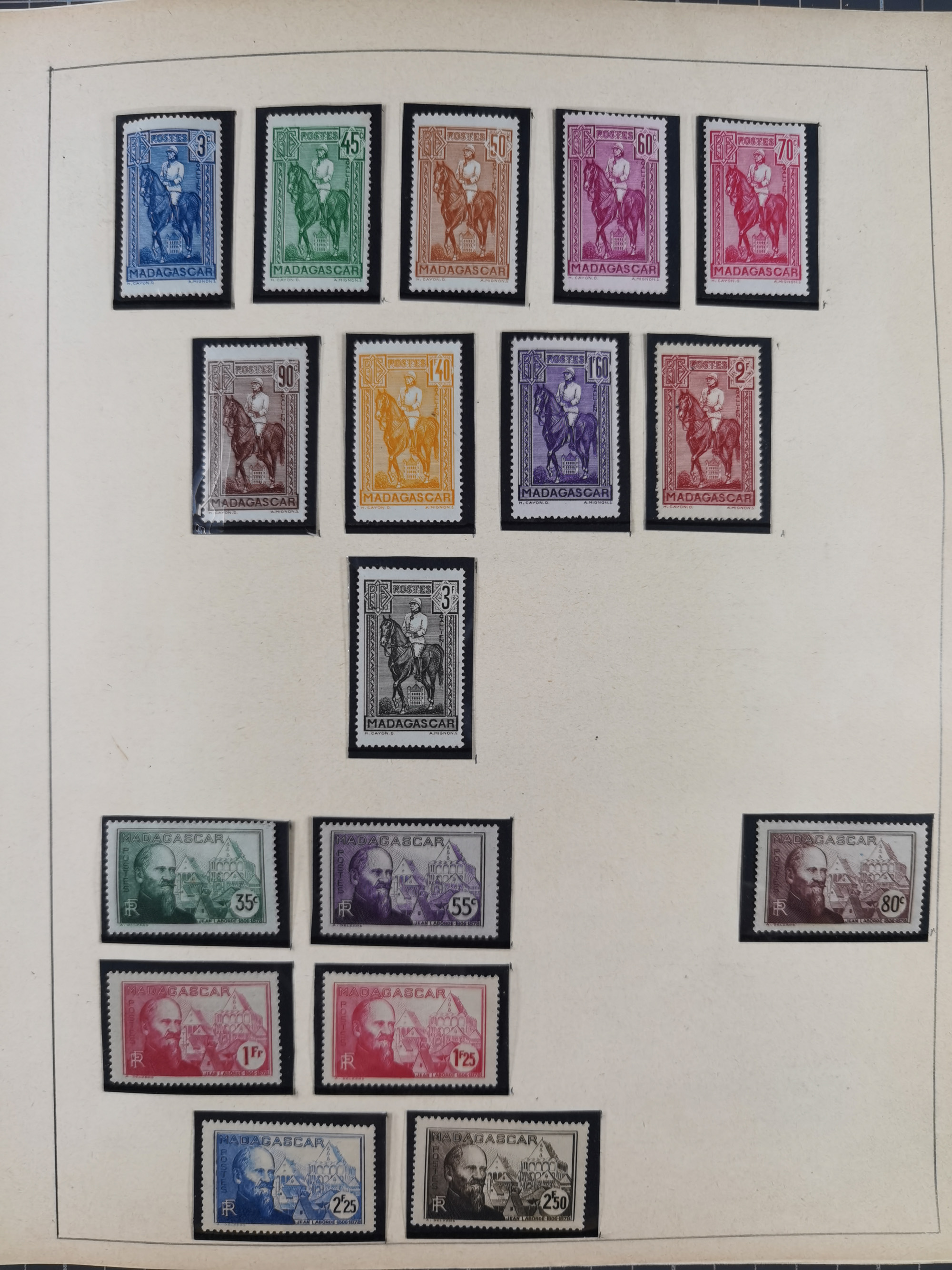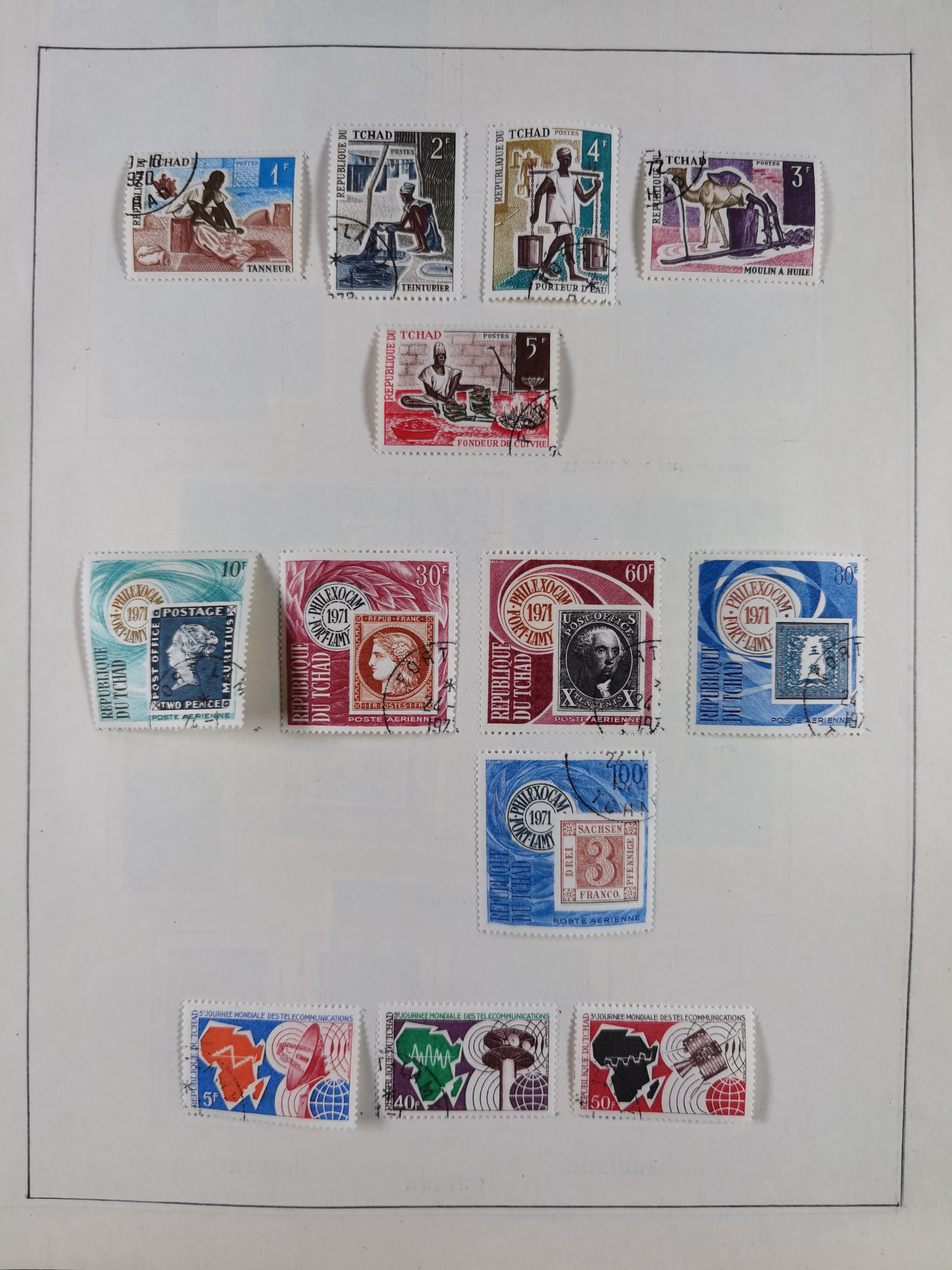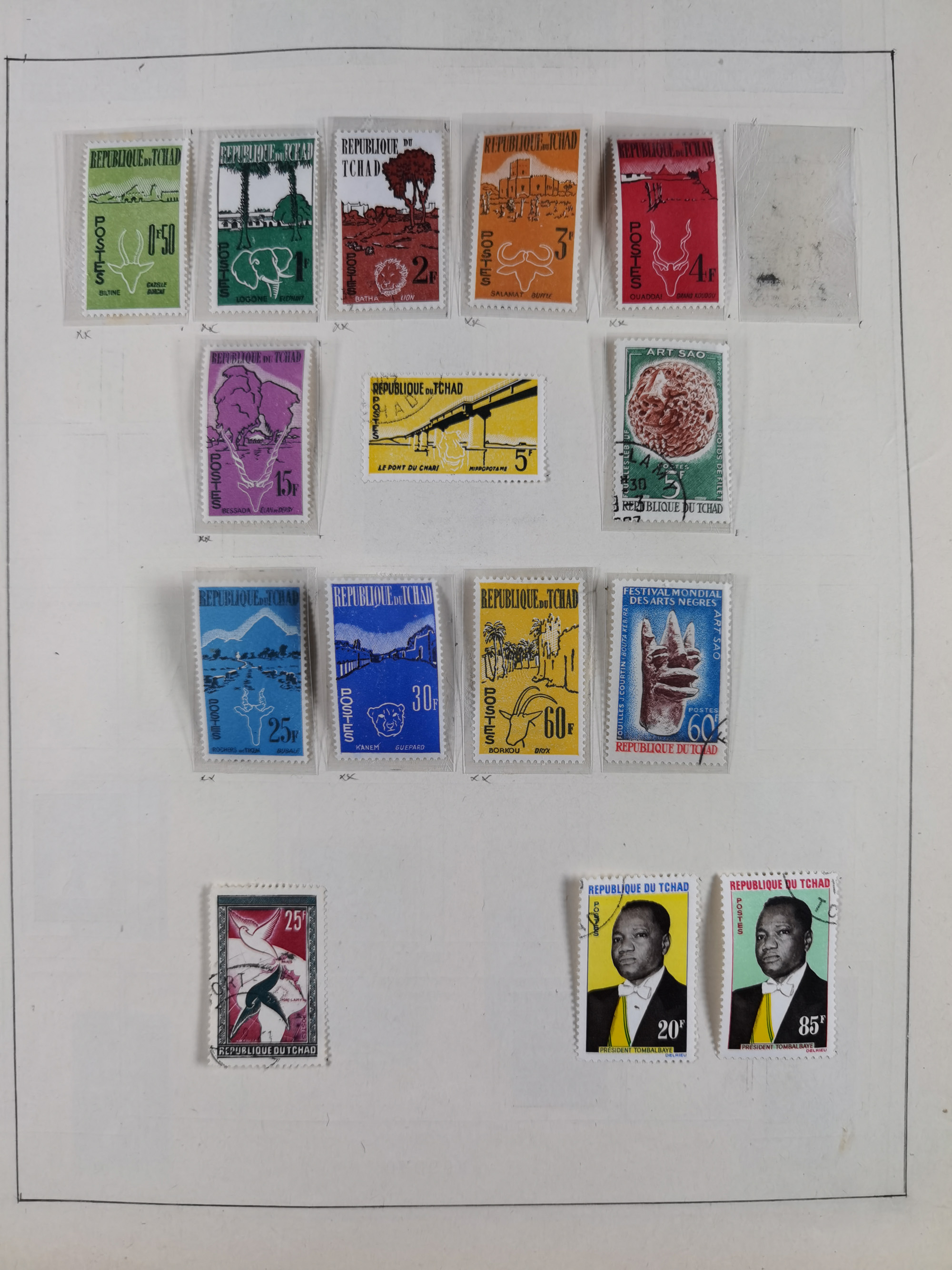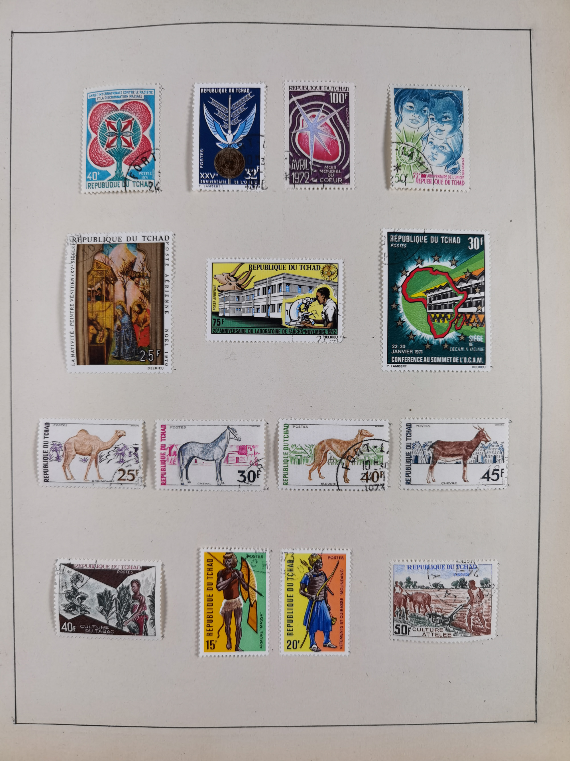 1895/1975 (ca)  unsued and used collection French Colonies and successor states, with stamps from a.o. Algeria, Dahomey, French Sudan, Obock, Gabon, Guinea, Cameroon, Madagascar with better overprint stamps, Réunion, Senegal, Somalia and Togo. Plus two page with the general issues 1859/86 incl. postage due, mostly in good condition