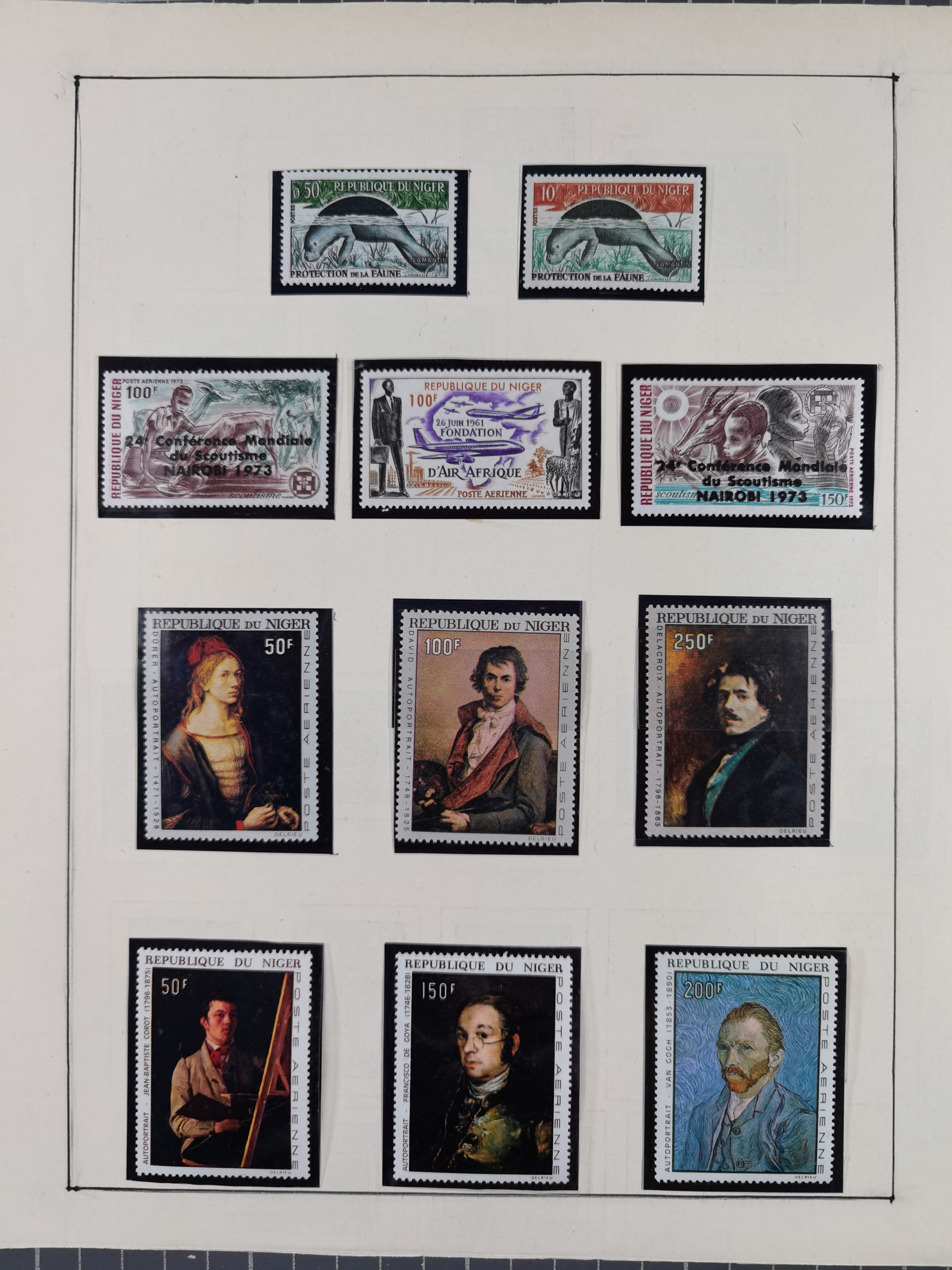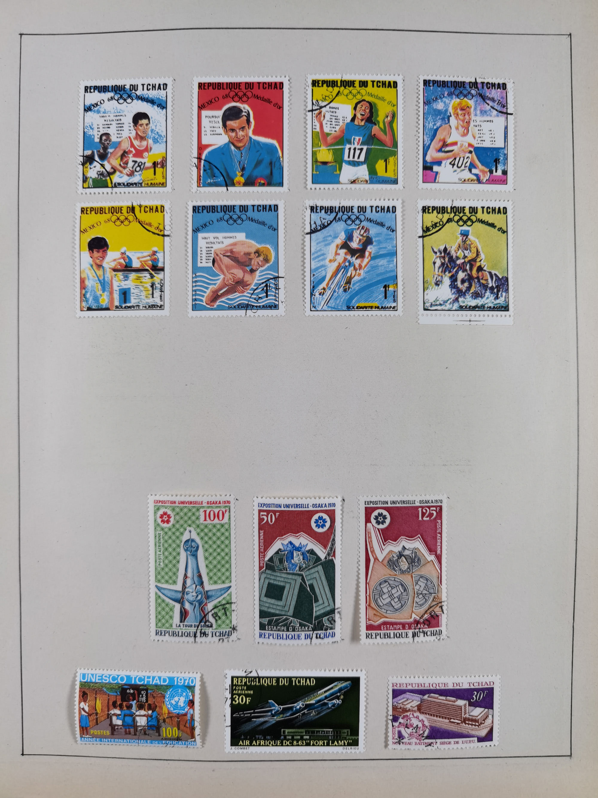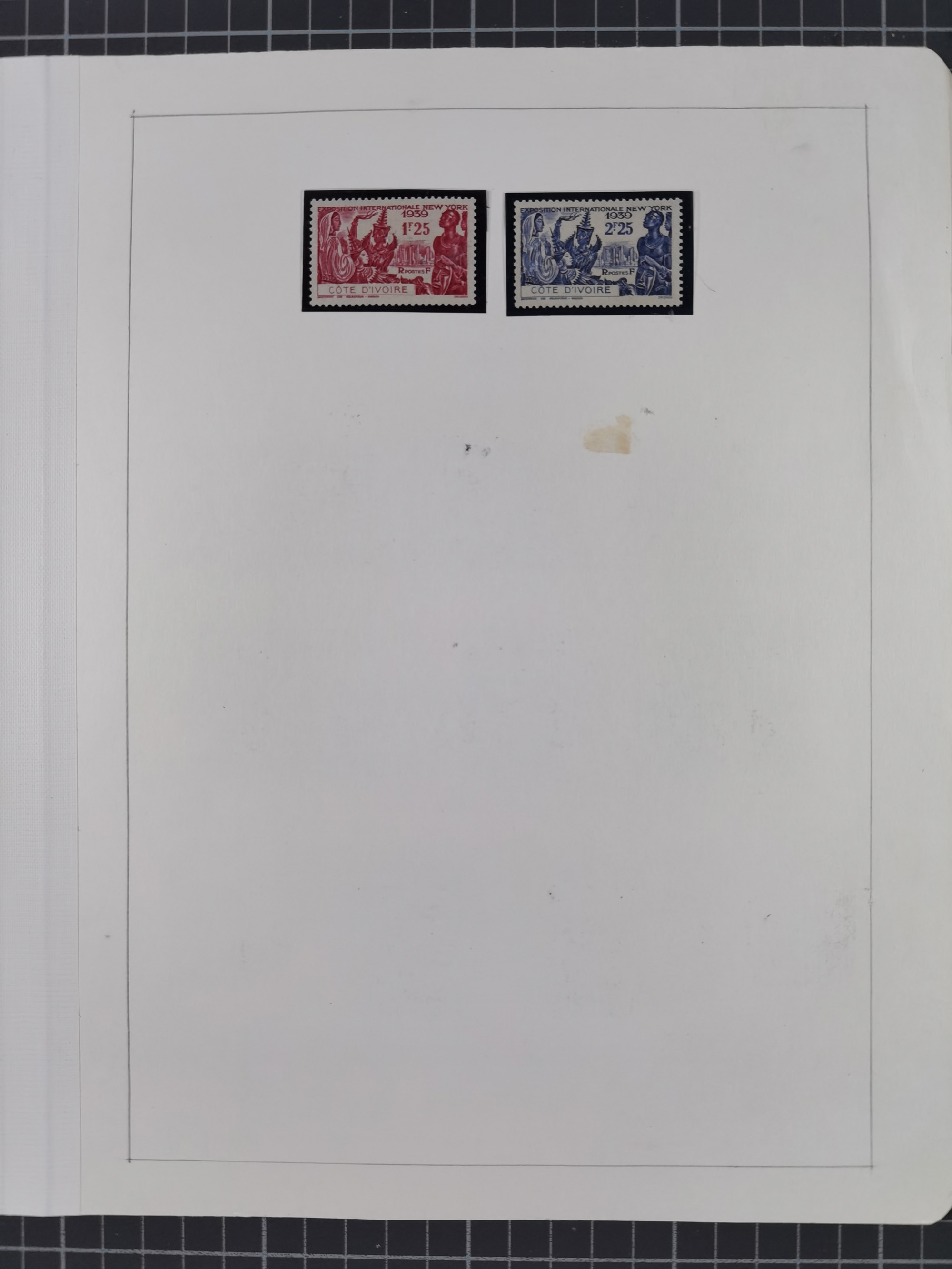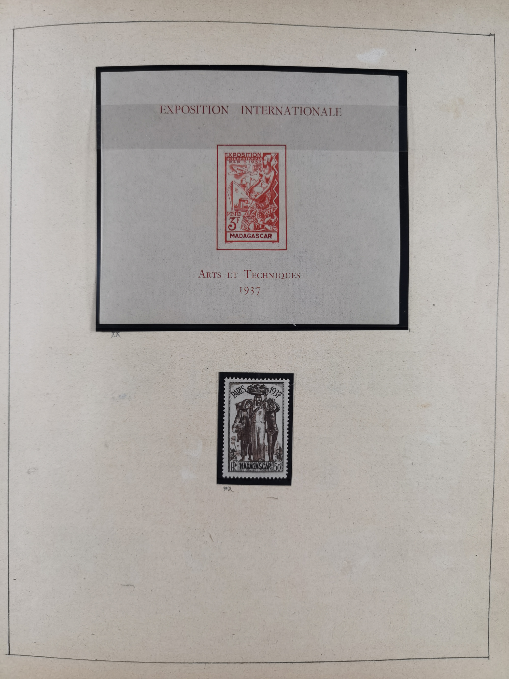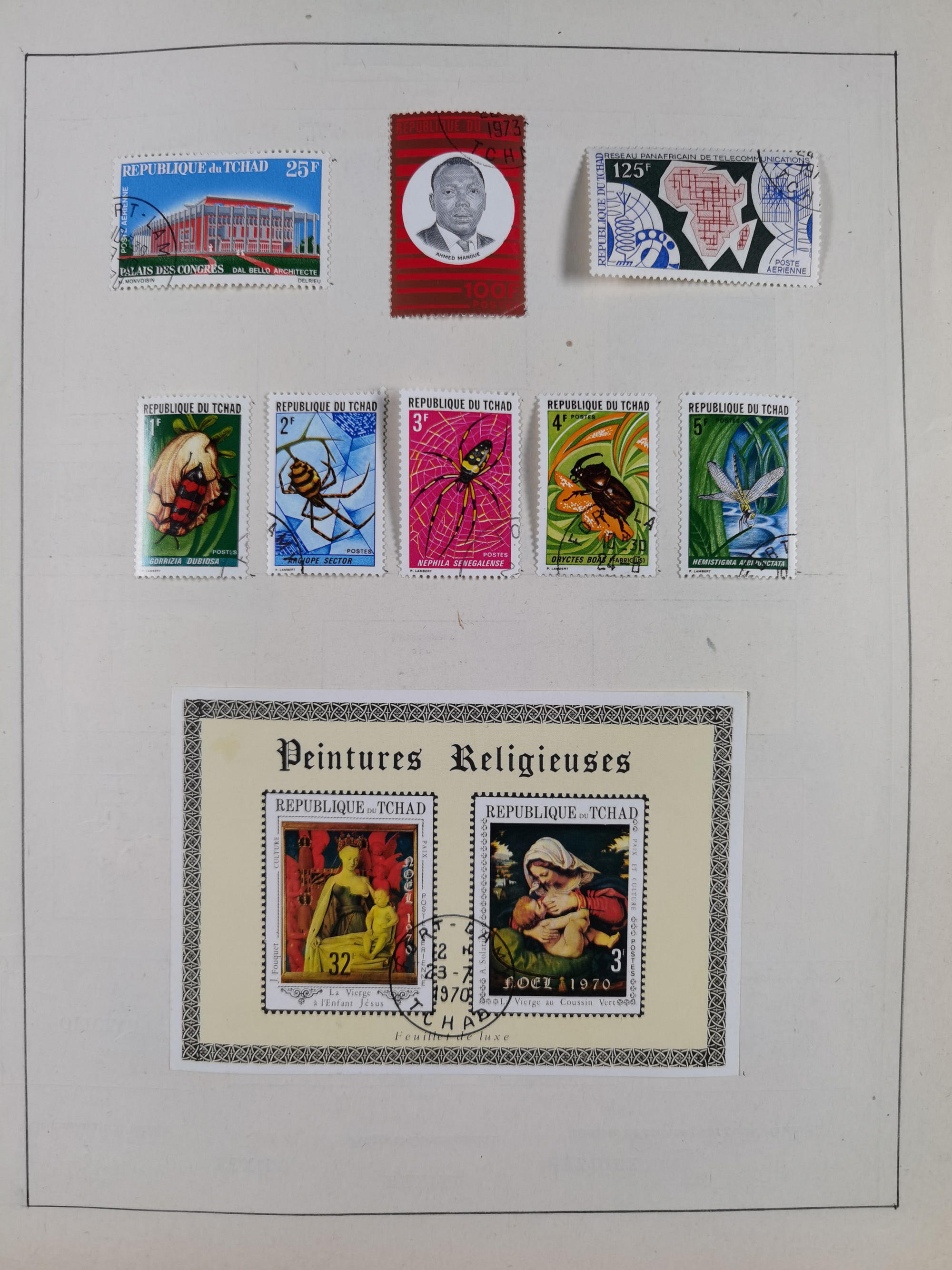 1895/1975 (ca)  unsued and used collection French Colonies and successor states, with stamps from a.o. Algeria, Dahomey, French Sudan, Obock, Gabon, Guinea, Cameroon, Madagascar with better overprint stamps, Réunion, Senegal, Somalia and Togo. Plus two page with the general issues 1859/86 incl. postage due, mostly in good condition