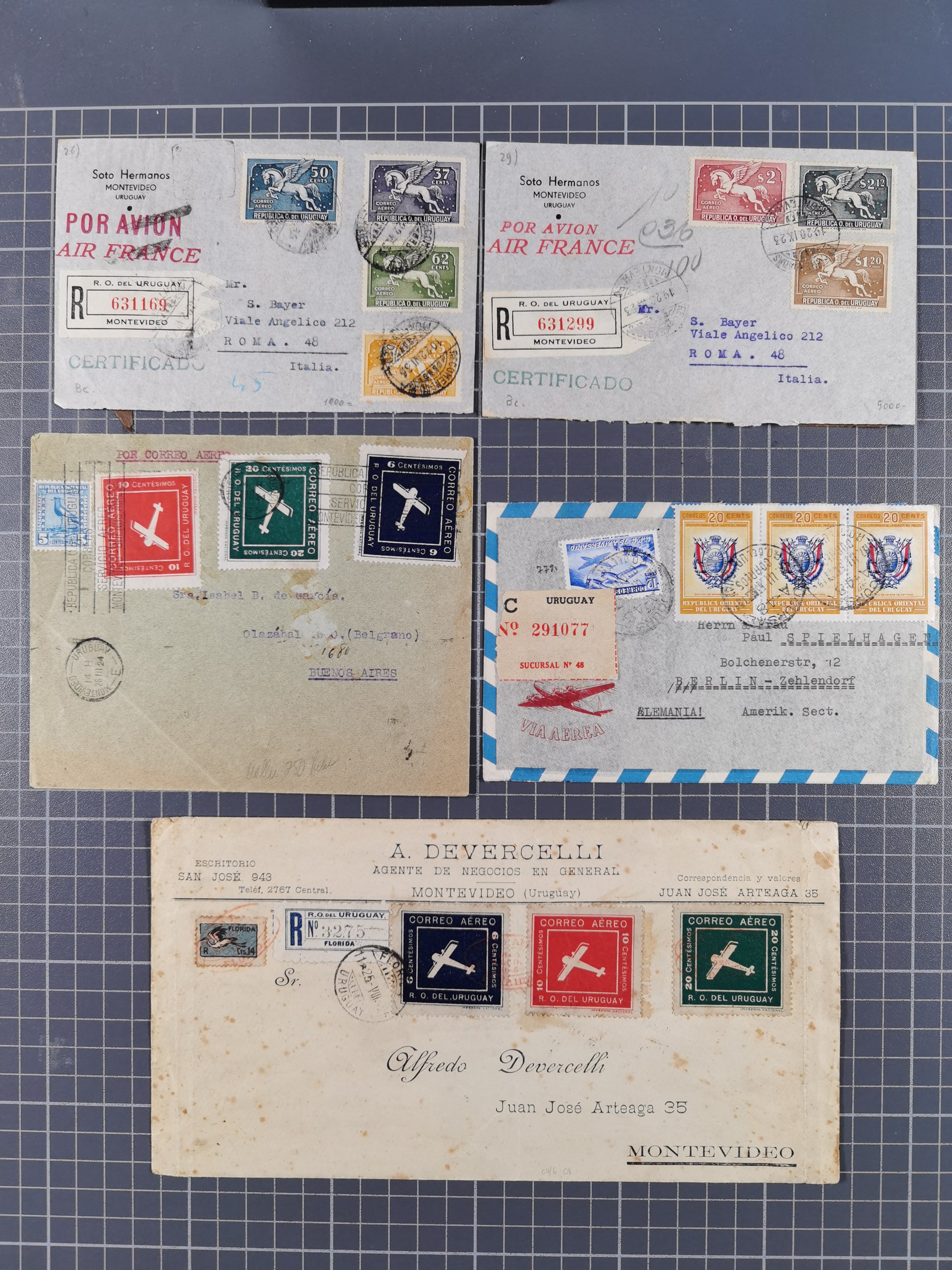 1924/40, 12 air mail covers, including Condor and Air France flights, two air mail sets 1924 on cover, high values up to $5 on cover to Italy, some faults and spots, mainly fine.