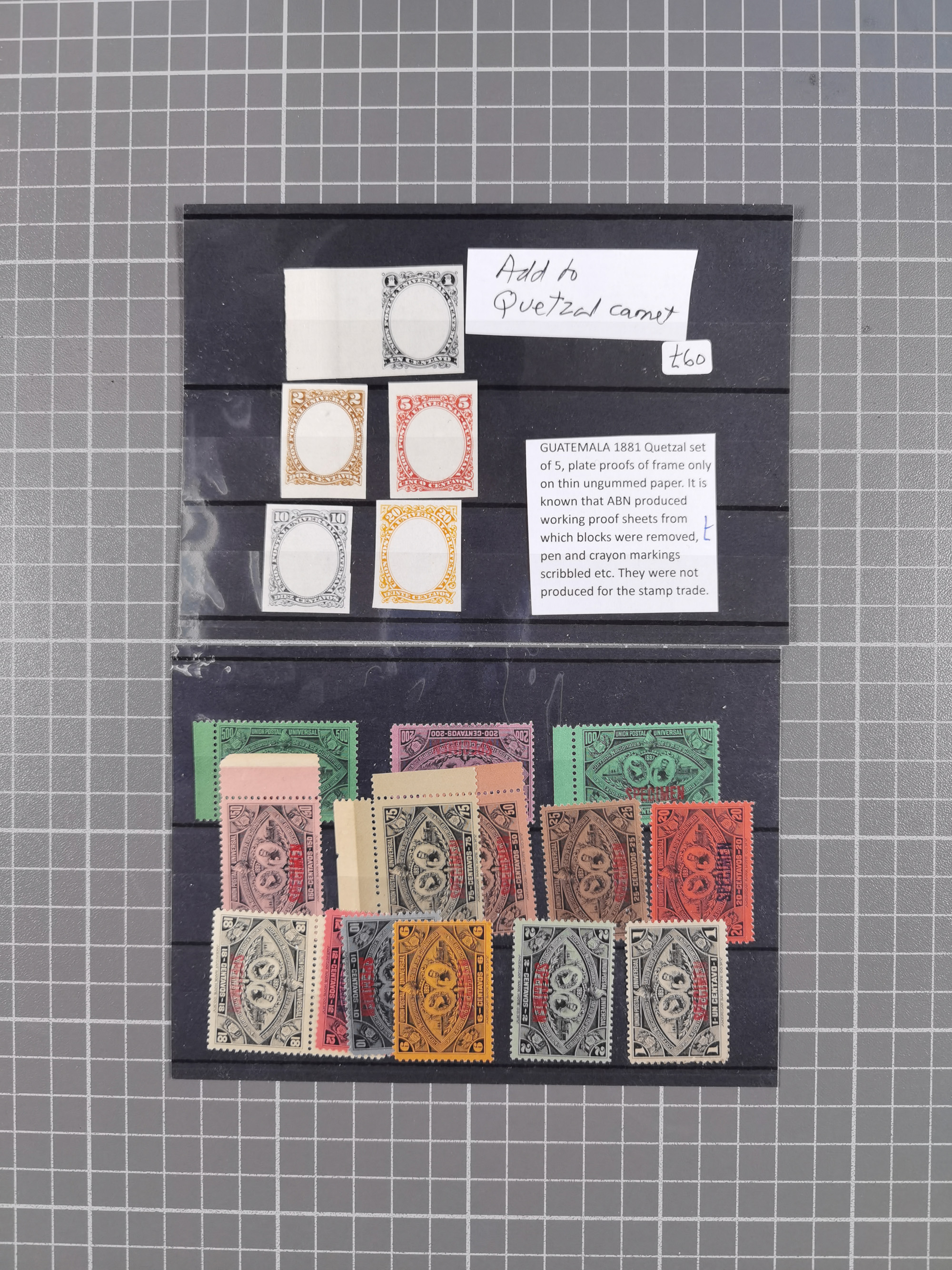 1878/86, mint never hinged/unused and used group, some better items throughout with Quetzal 1881 five plate proofs of frame only on thin ungummed paper (Mi.-Nr. 21P-25P), 1897 Exhibition set complete with red overprint “SPECIMEN”, also a selection of postmarks on used stamps including on Indian Women, etc., except for the occasional fault, overall in good condition