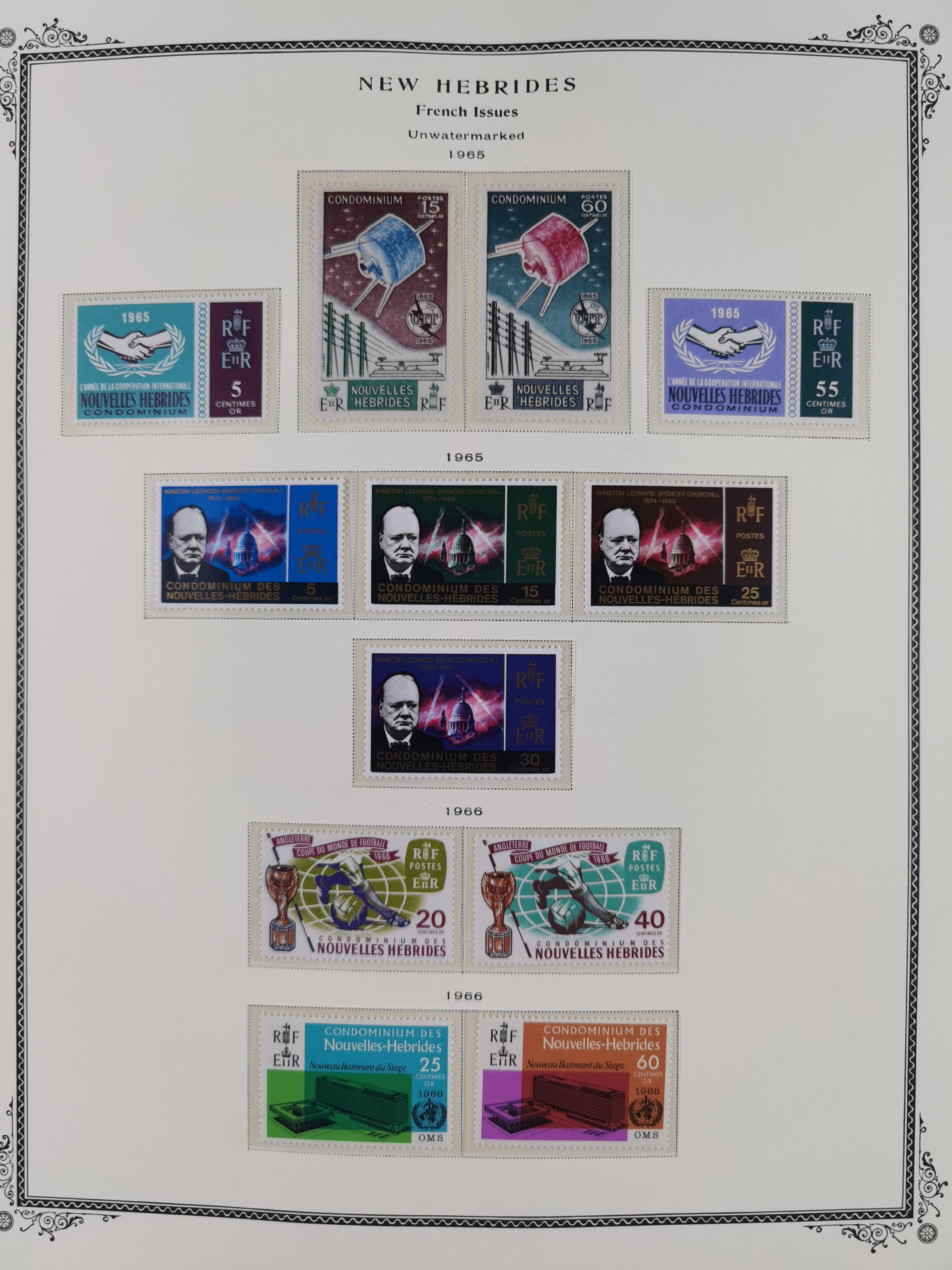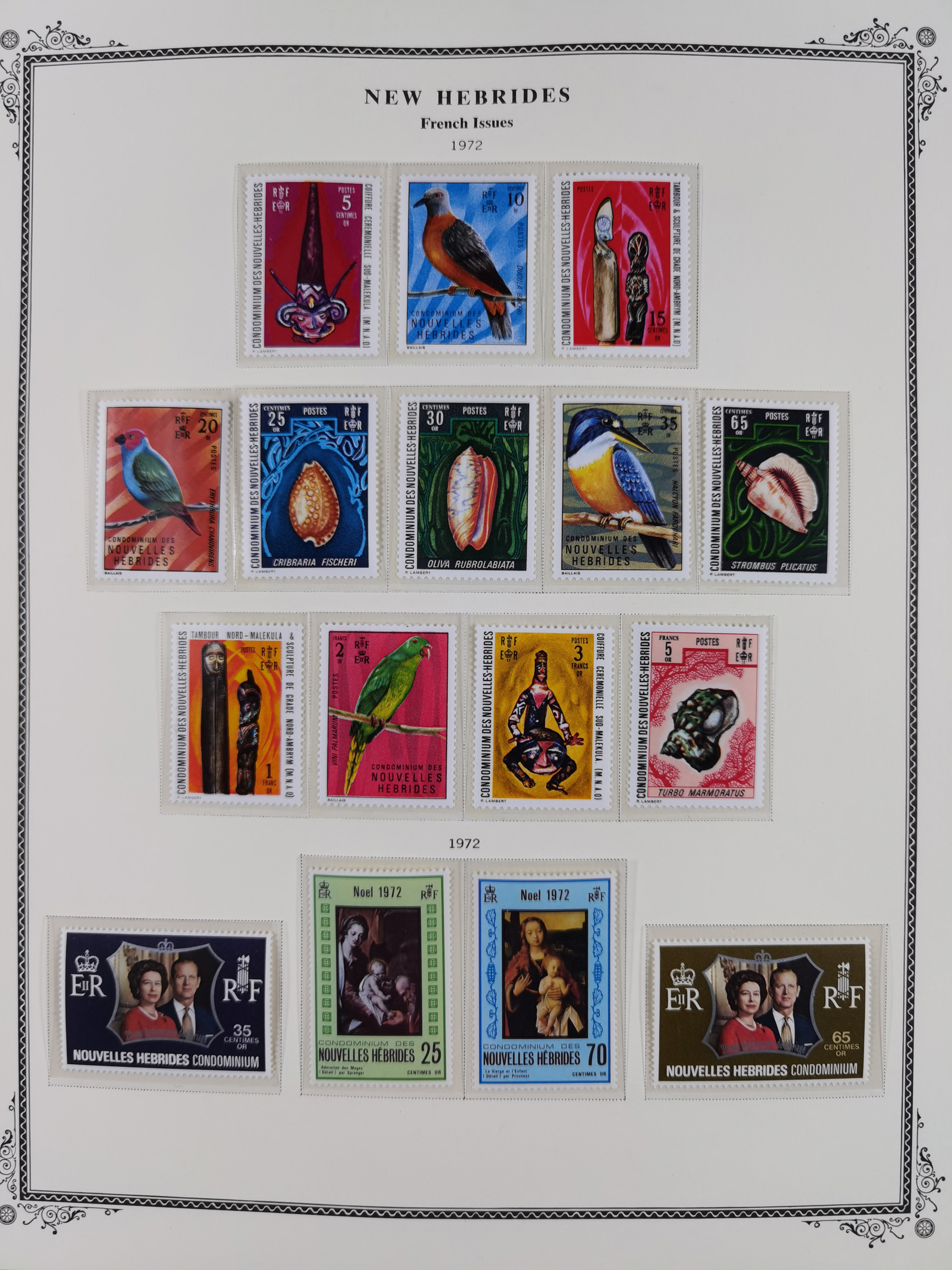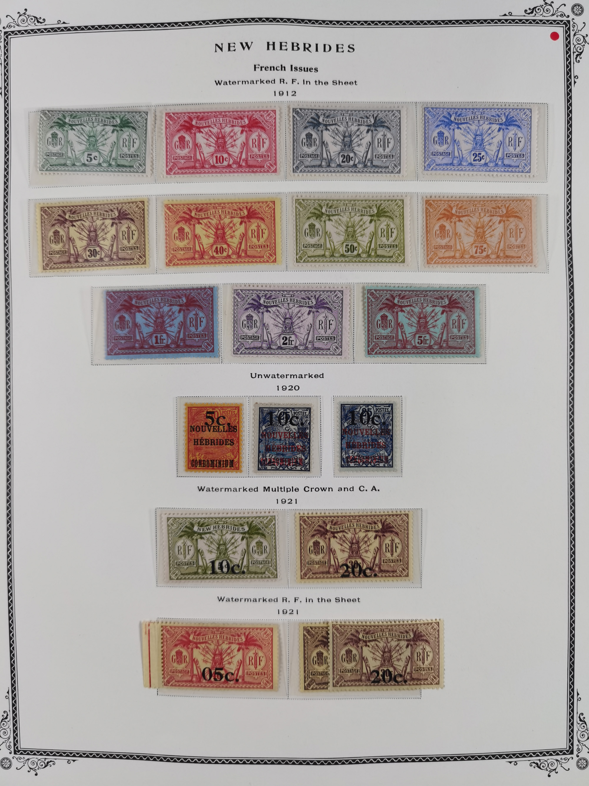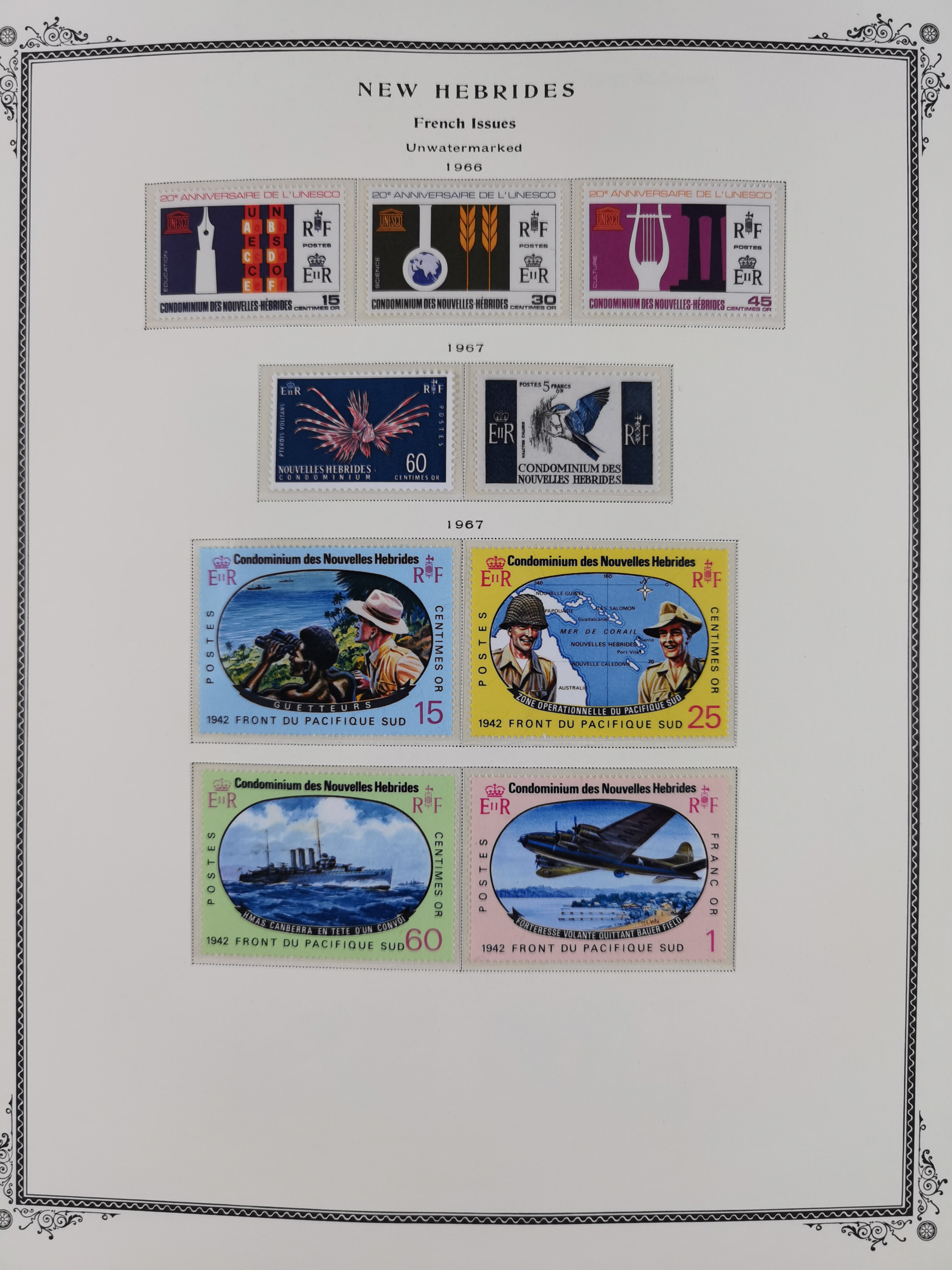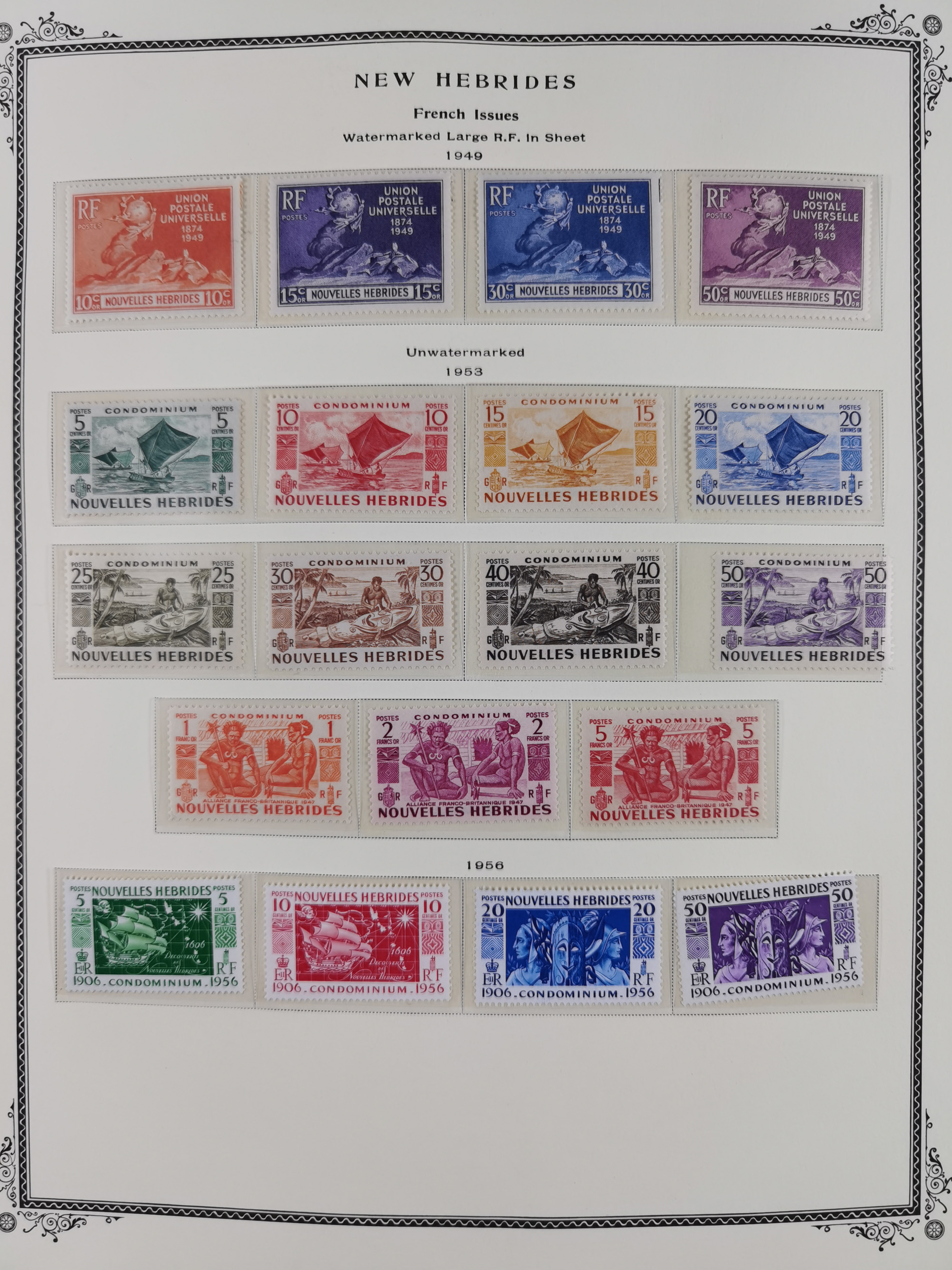 1851/2020, from 1912 to 2020 mint never hinged in the beginning somewhat incomplete and from 1974 onwards in the main catalogue numbers apparently complete collection in three Scott albums. The years 1997 until 2018 originate from unfilled yearbooks. As well as a mostly used duplicates stock starting 1851 in nine big stock books. Good condition, in five large cartons