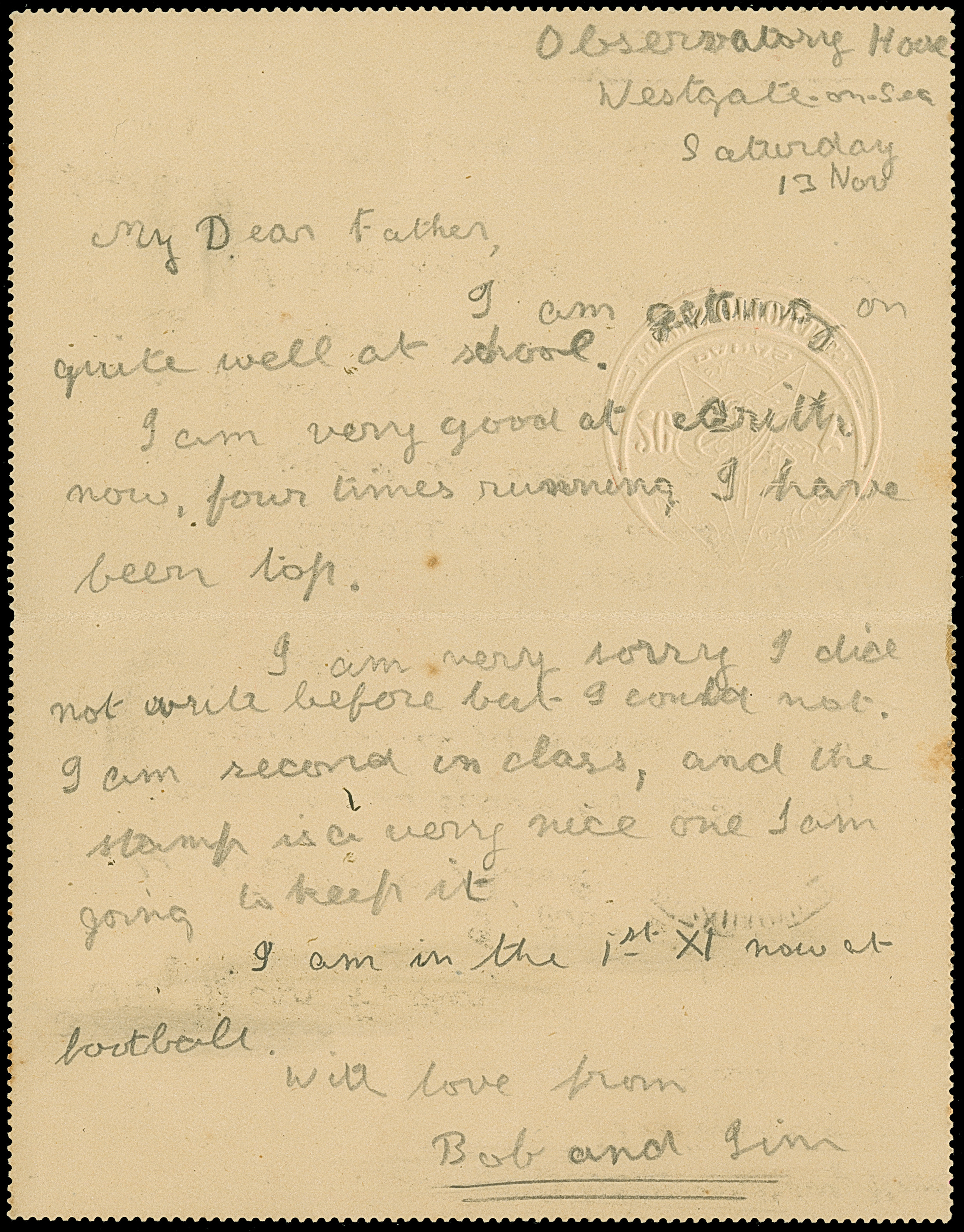 1923, Turkey 20 para postal stationery reply part, overprinted "IRAQ IN BRITISH OCCUPATION 1 An" cancelled by WESTGATE ON SEA 14/NO/20 KENT c.d.s., hex. postage due “T/20 D.R.” and “OVERLAND POSTAGE DUE A/2” alongside, addressed to "Col. S.G.Leslie Ordnance Base Depot Majil Basra" (written by his sons) and forewarded to Ordnance Advanced Basra by red pen, arrival mark on reverse. A very scarce usage of this reply part from England, no other recorded in PROFI archive