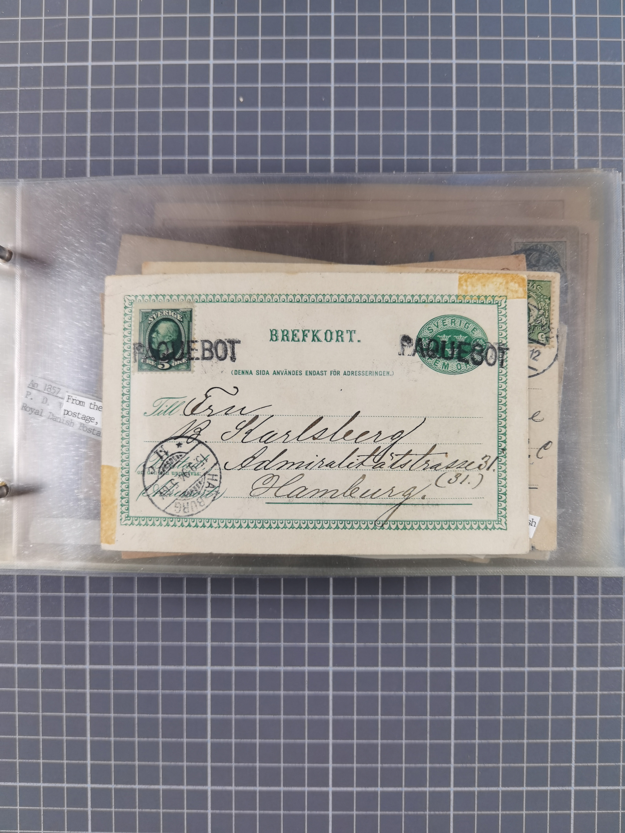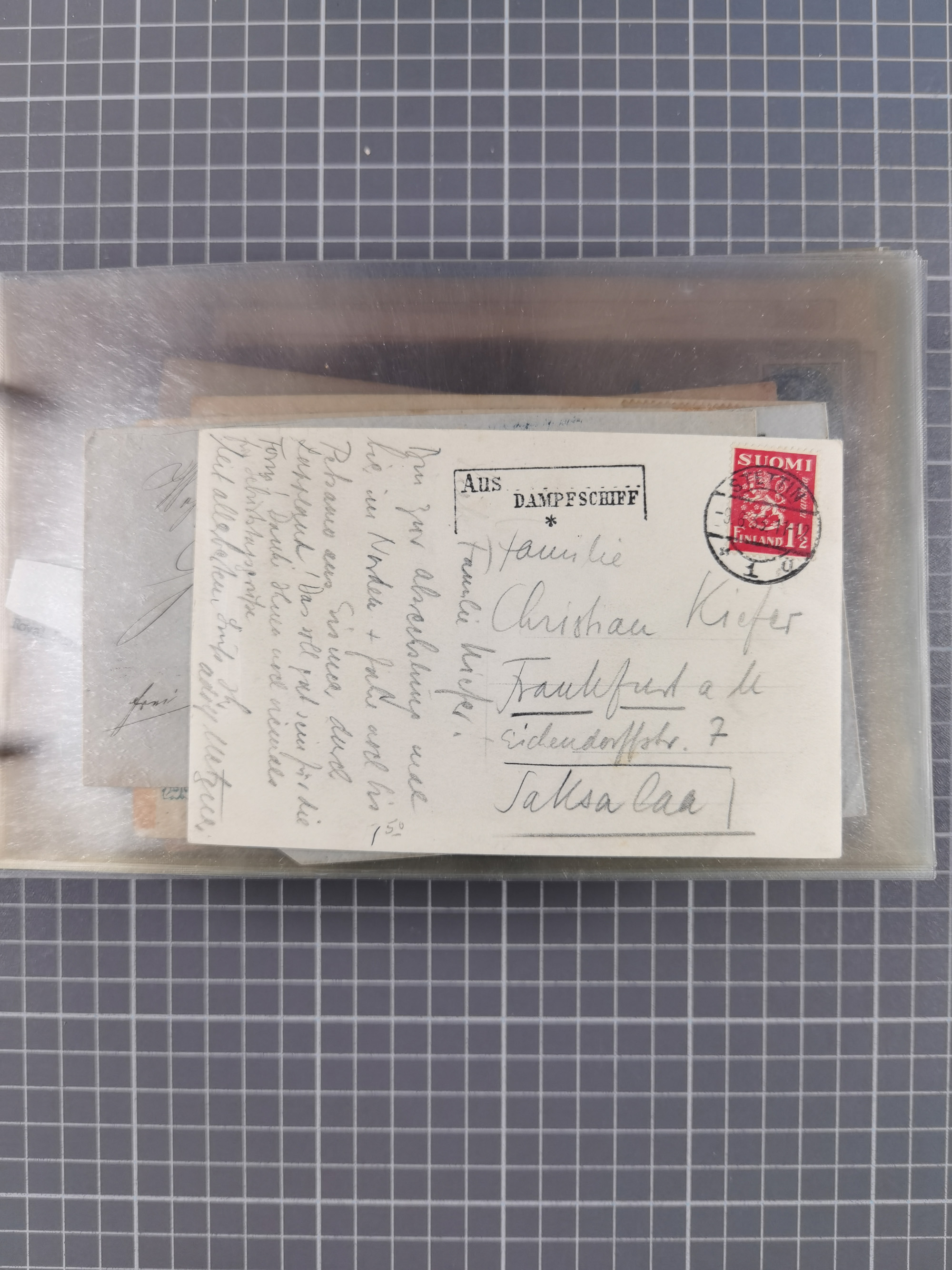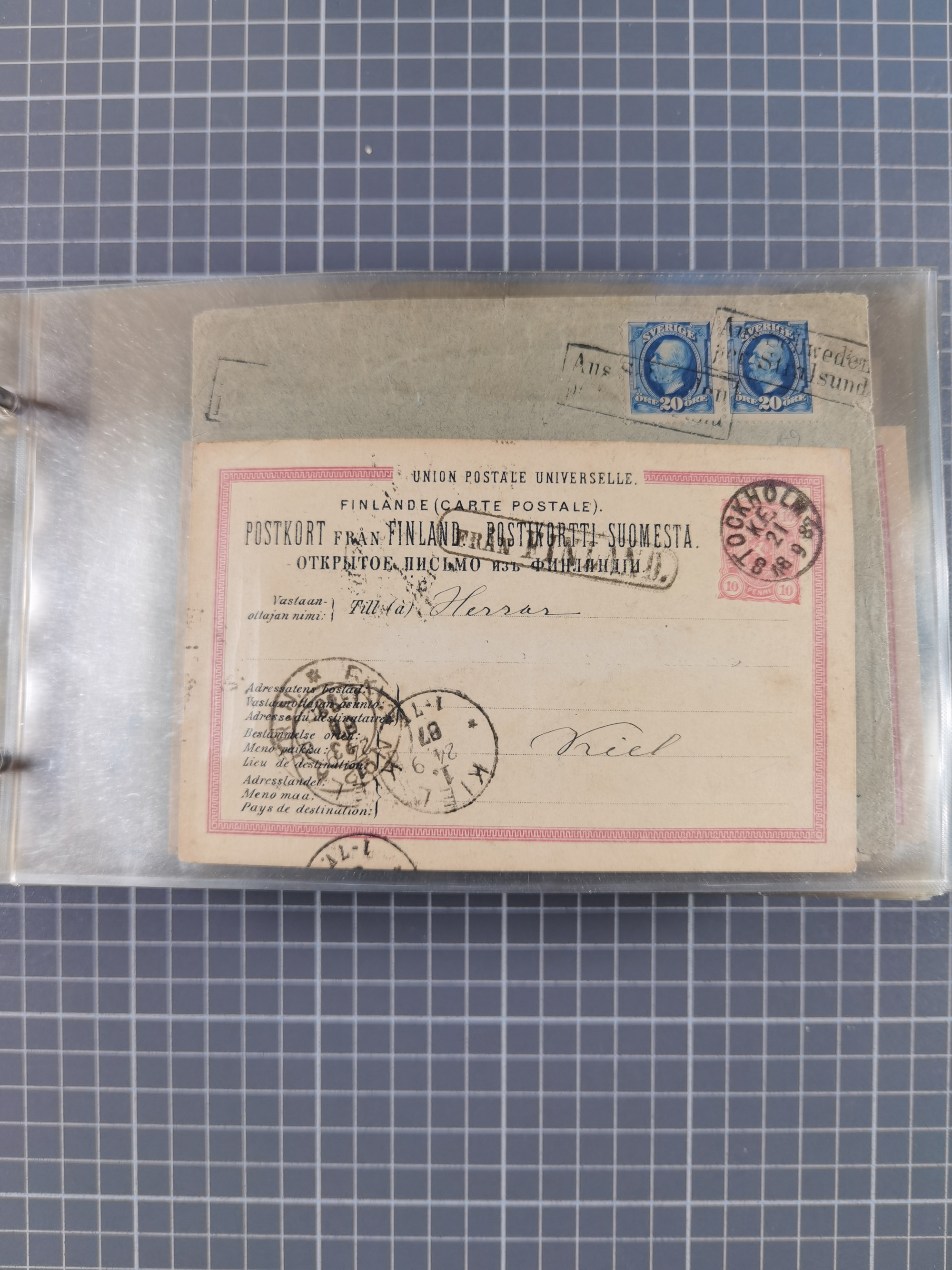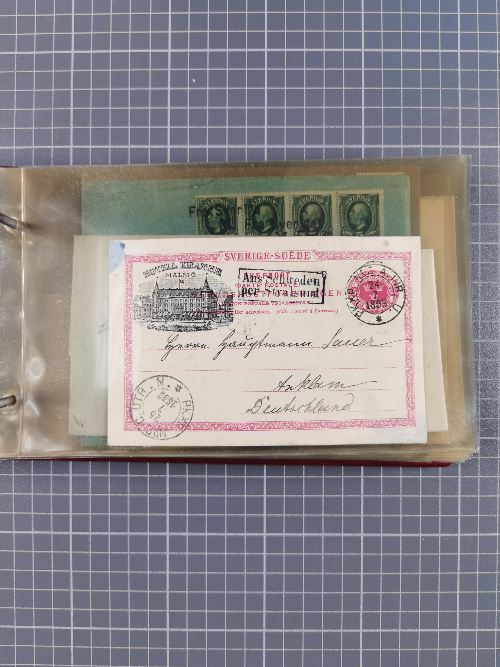 1853/1970 (ca.), interessante Sammlung “Schiffspost der Ostsee” mit Schwerpunkt bei den Anlandungsstempeln, ca 130 Briefe, Karten und GSK sowie einigen Briefstücken und losen Marken mit u.a. GSK 1874 mit Ra3 “AUS WOLLIN PER DAMPFSCHIFF 5.10.74”, GSK 1893 mit Ra2" Aus Schweden per Stralsund", Ansichtskarte 1909 mit Ra3 “KPSOR-KIEL…No. 4 20/3” und Brief aus Dänemark 1939 mit L1 “Fra Borholm”. Die Erhaltung ist zum Teil fehlerhaft, dabei viel Post aus dem Bedarf, ex Steinmeyer