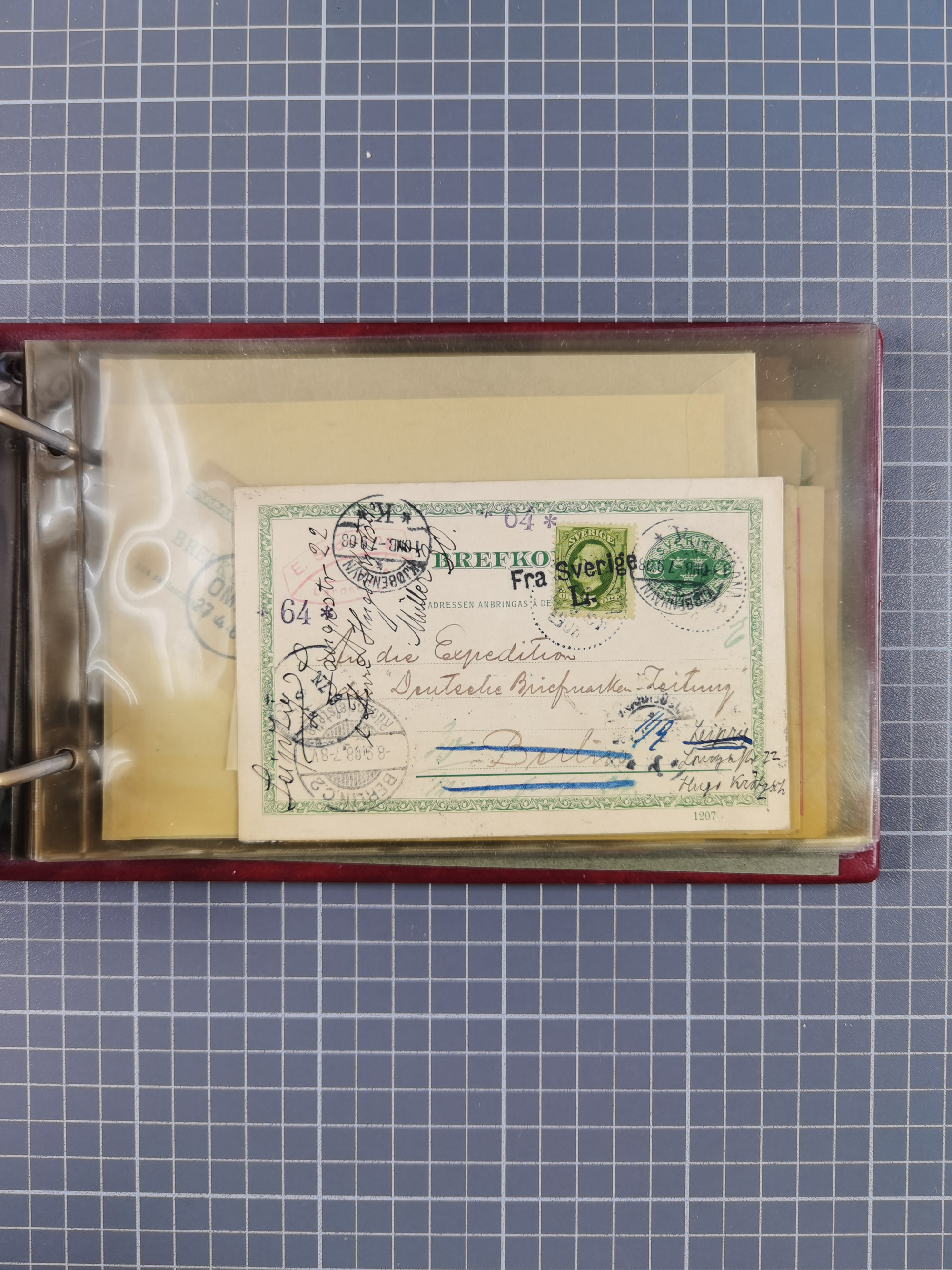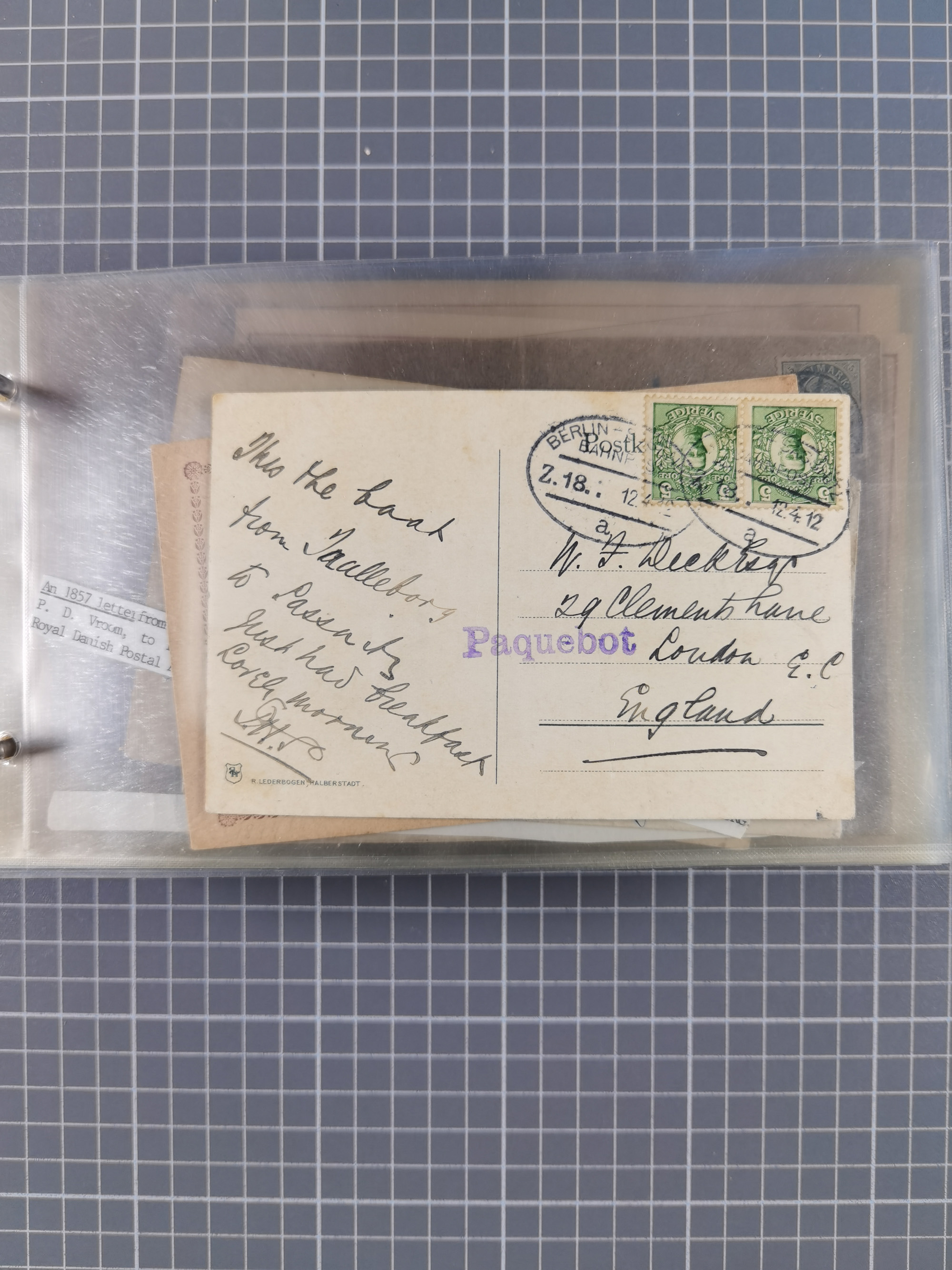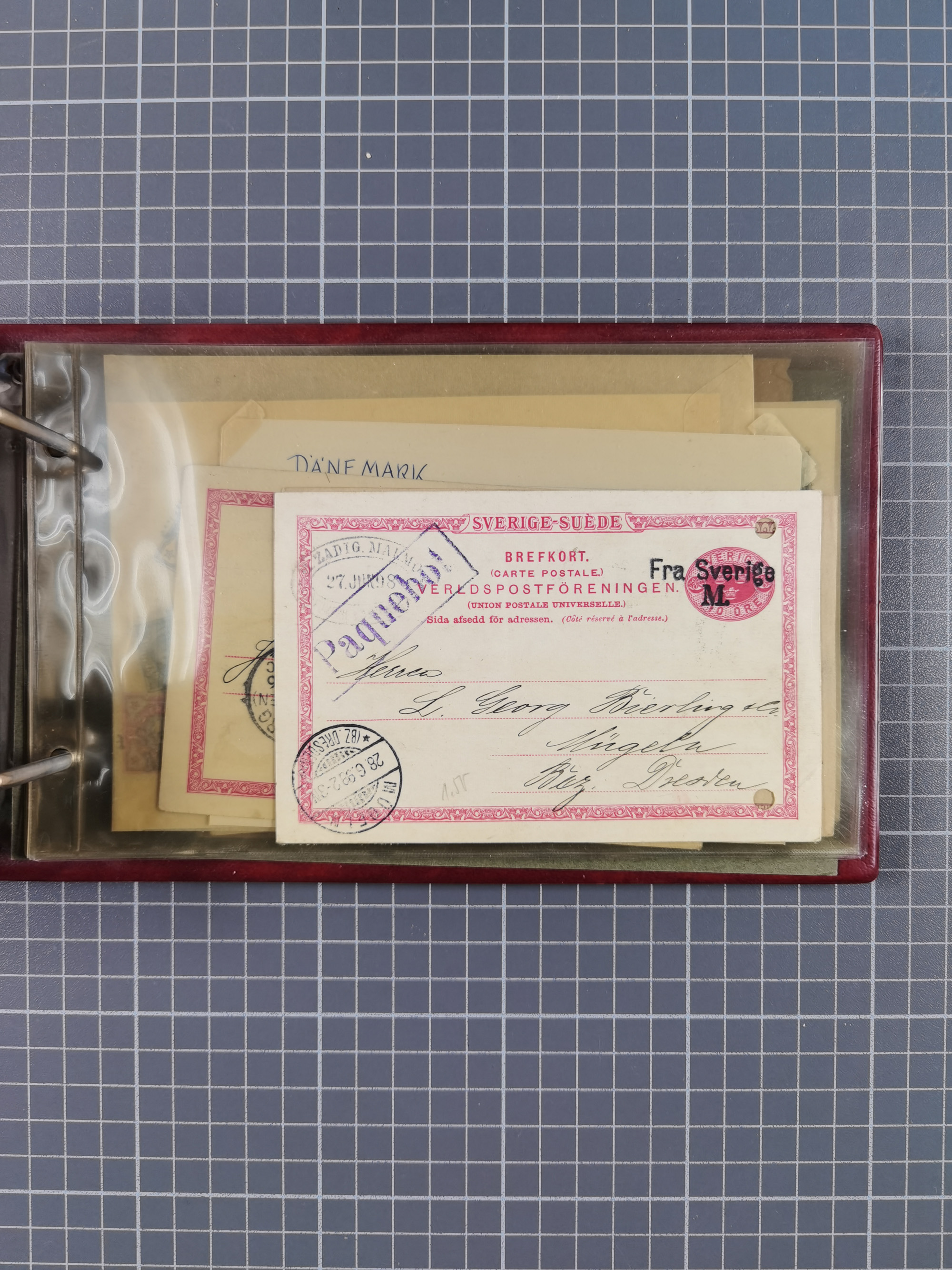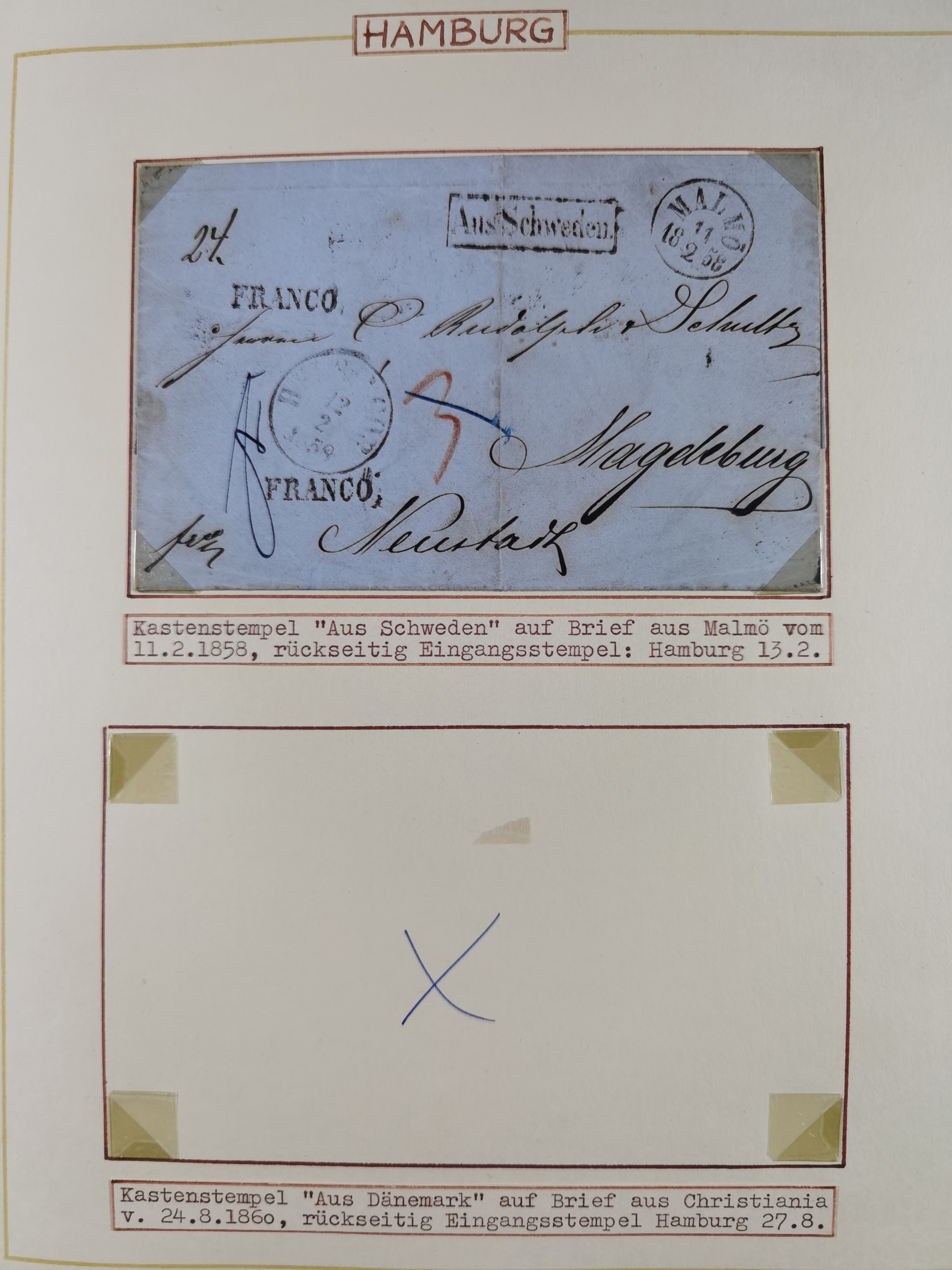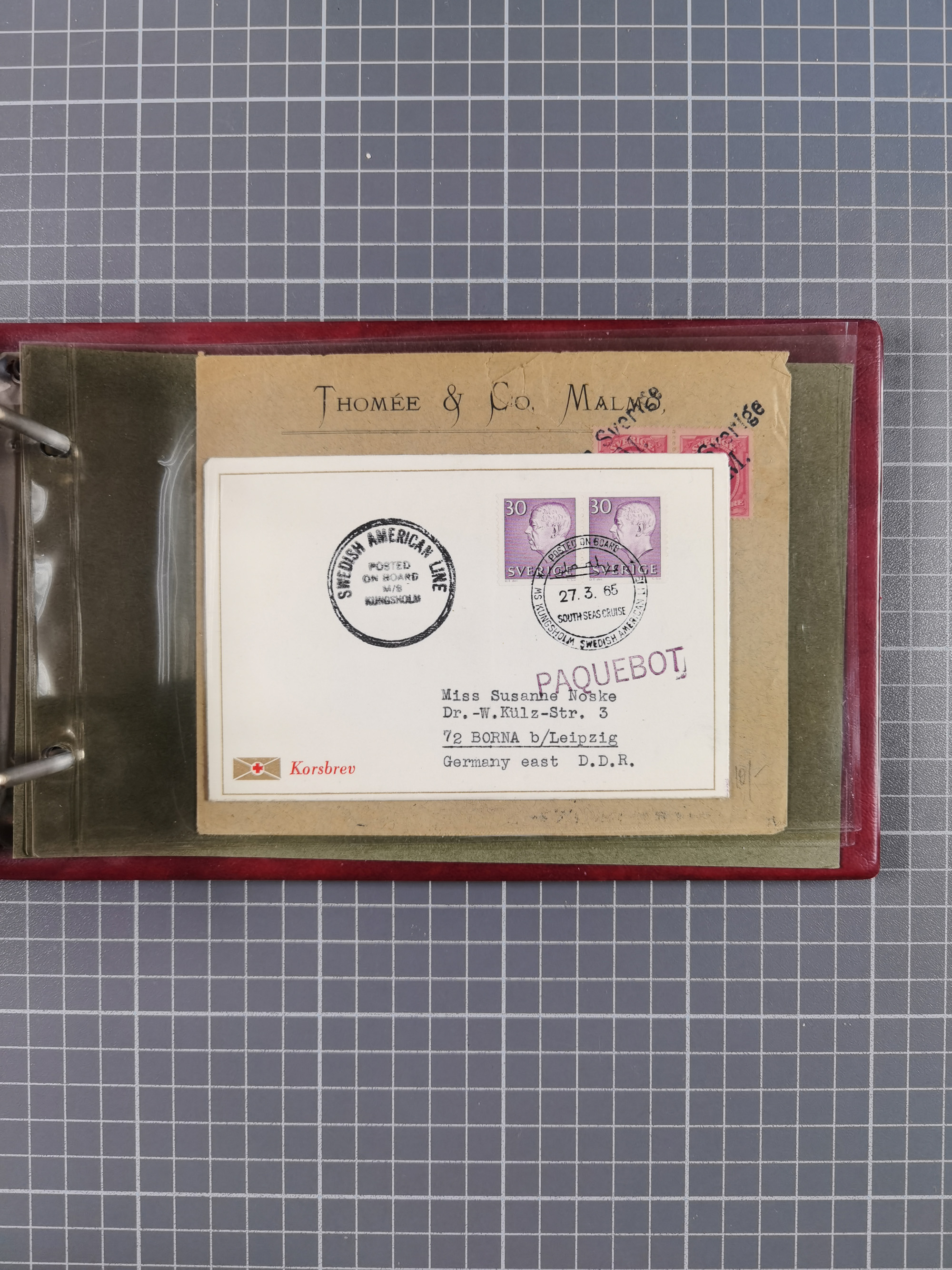 1829/1970 (ca.), interessanter Bestand mit über 100 Briefen, Karten und Ganzsachen inkl. Belege mit handschriftlichen Leitvermerken bzw. Leitstempeln und Transitstempeln. Schwerpunkt vor 1945 mit u.a. komplettem Faltbrief 1829 aus Russland mit L1 “'Russie” nach Triest, frankierte Postkarte Österreich 1905 mit Stempel “CARNIOLIA OE. LLOYD”, dänischer Stempel “KORSOR-KIEÖ…No4” klar auf Postkarte 1907 mit Germania 10 Pfg. sowie viele Pauebot-Stempel. Dazu Frankreich GSU 15 C. mit Zufrankatur und rotem Zudruck mit Flagge “North German Lloyd Bremen…..”, meist in guter Erhaltung, ex Steinmeyer