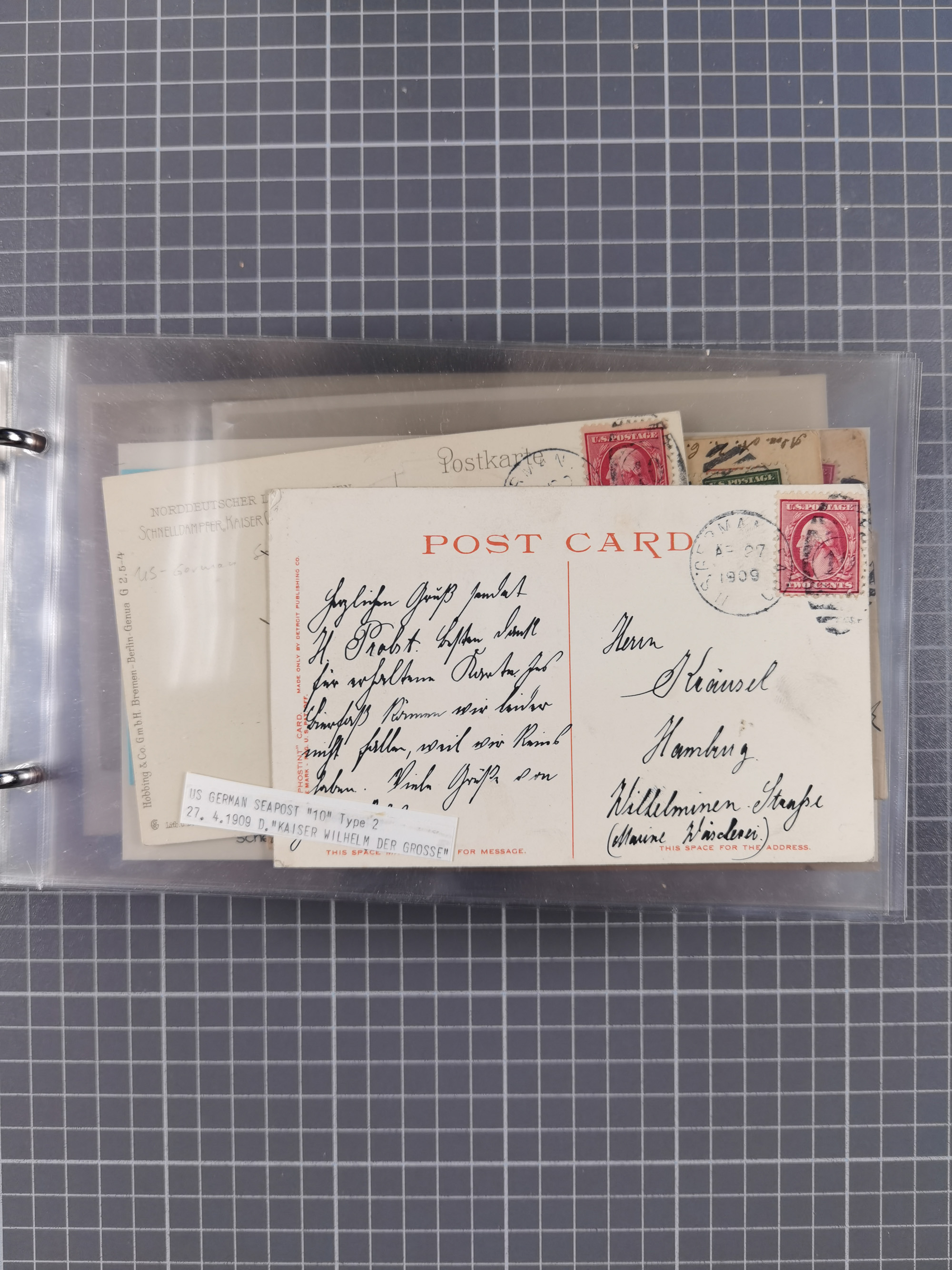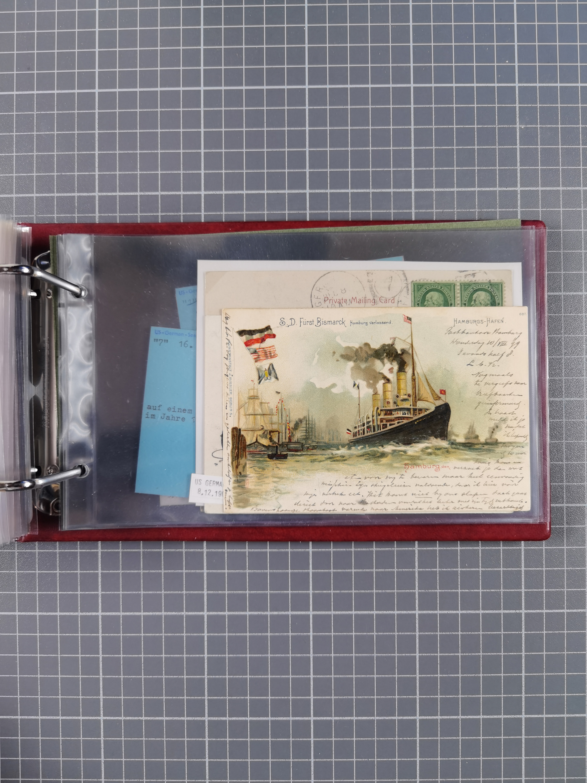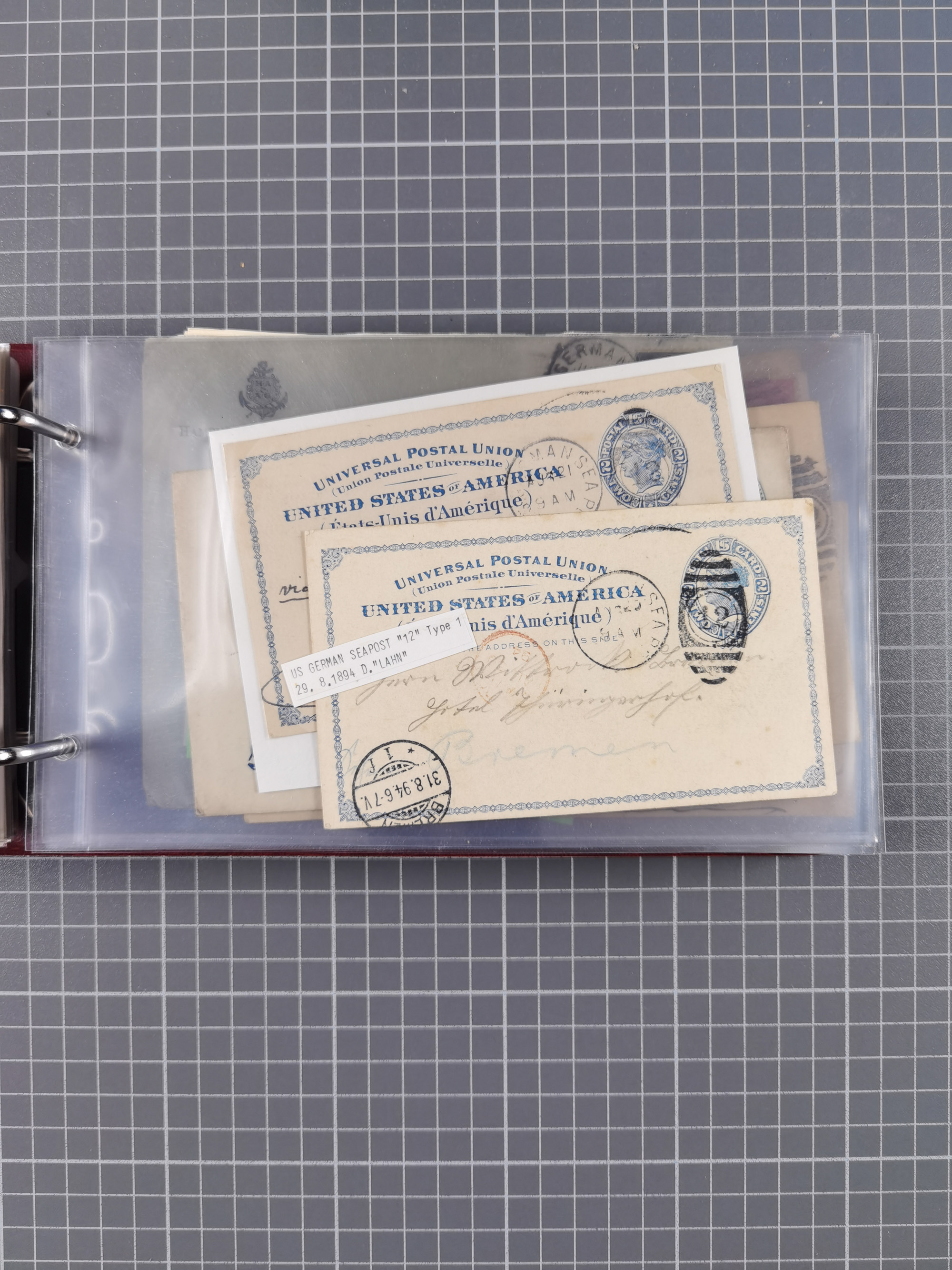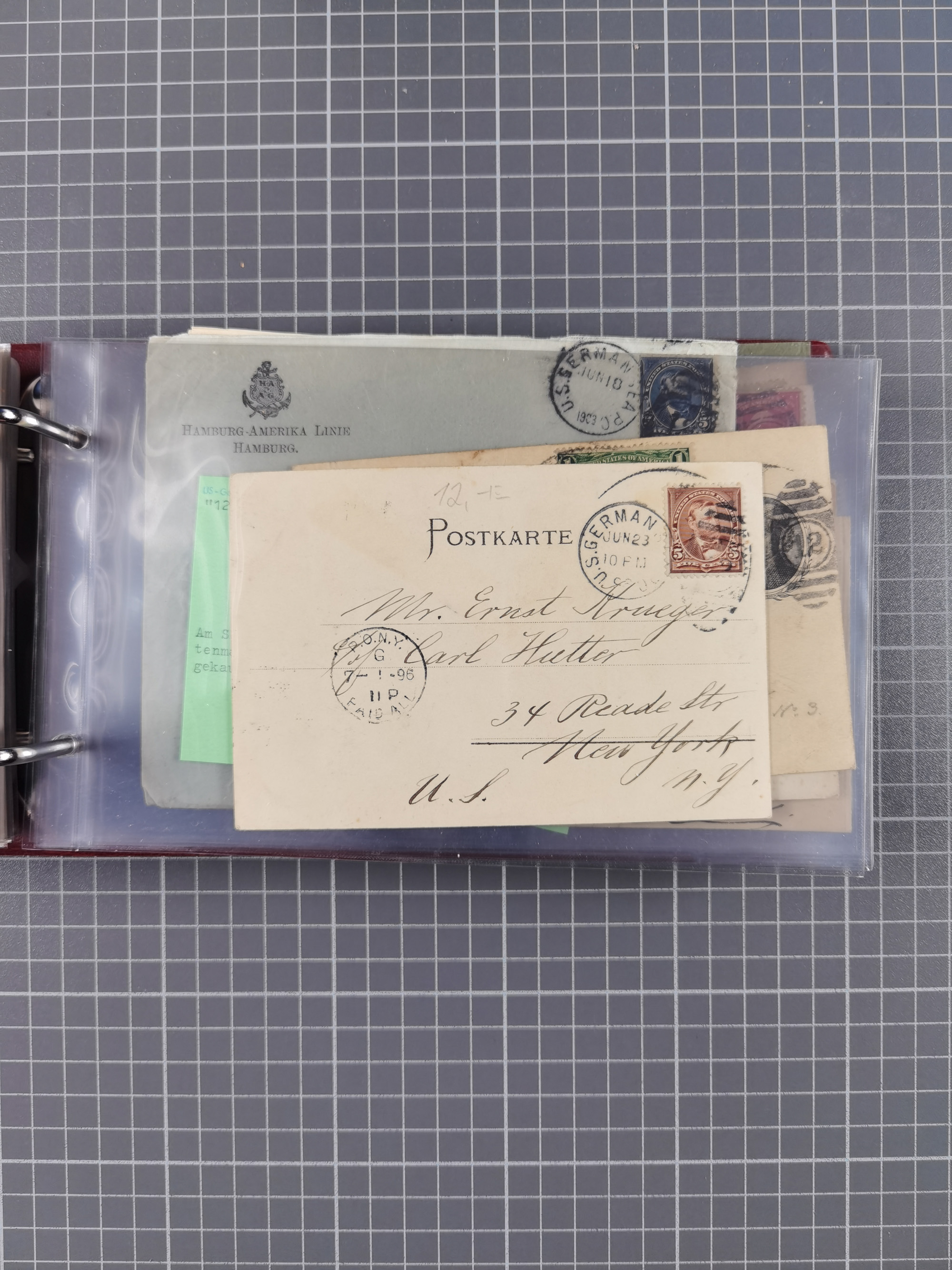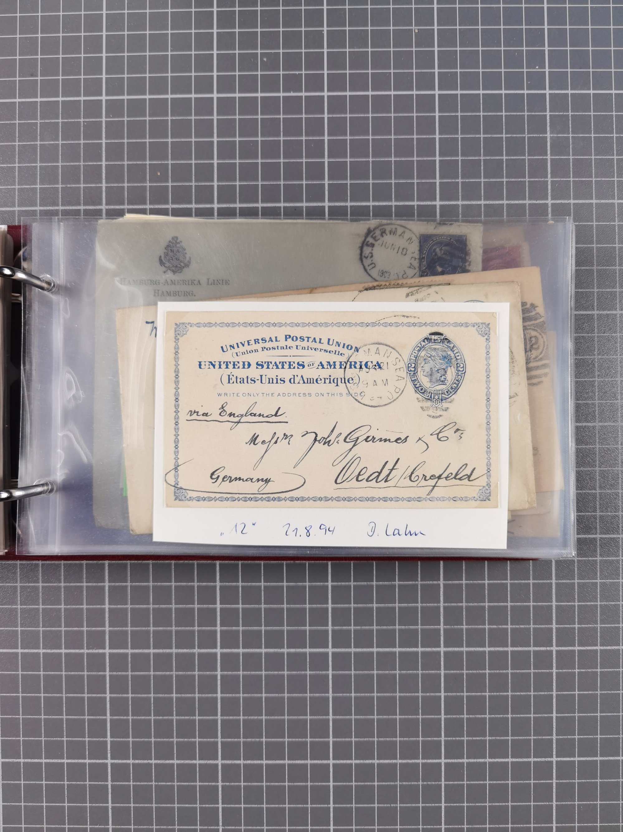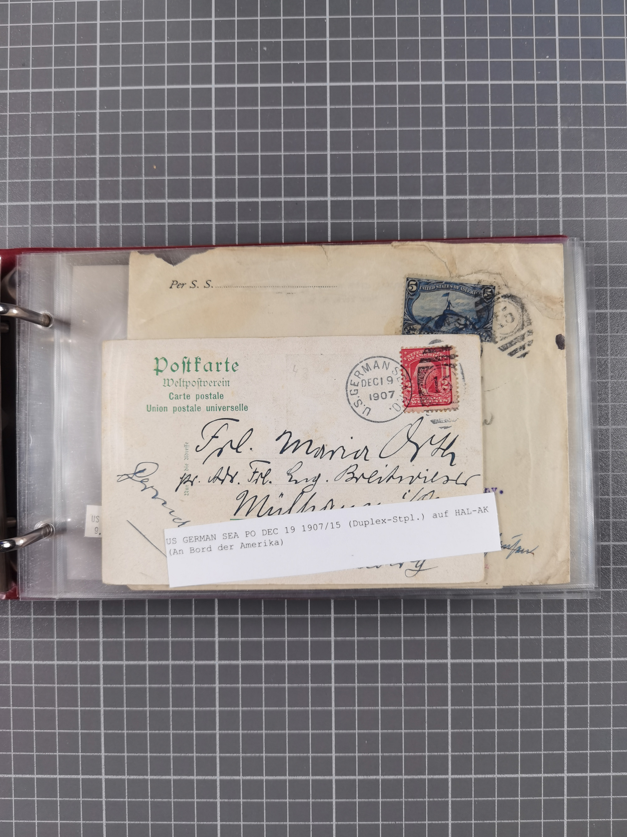 1892/1939, umfangreiche Sammlung “U.S. GERMAN SEA POST” mit ca. 400 Briefen, Karten und Ganzsachen, Schwerpunkt vor 1920 mit den Dublex-Stempeln mit Nr. 1-16, dabei verschiedene Verwendungen mit besseren (u.a. auf Briefen/Karten vom D. Reich), 1 R-GSU und weiteren Besonderheiten. Dazu noch einige Schiffs-Ansichtskarten, bei vielen Belegen mit Vermerken zu den Schiffen usw. und meist in guter Erhaltung. Eine in diesem Umfang seltene Sammlung in sechs Alben, ex Steinmeyer