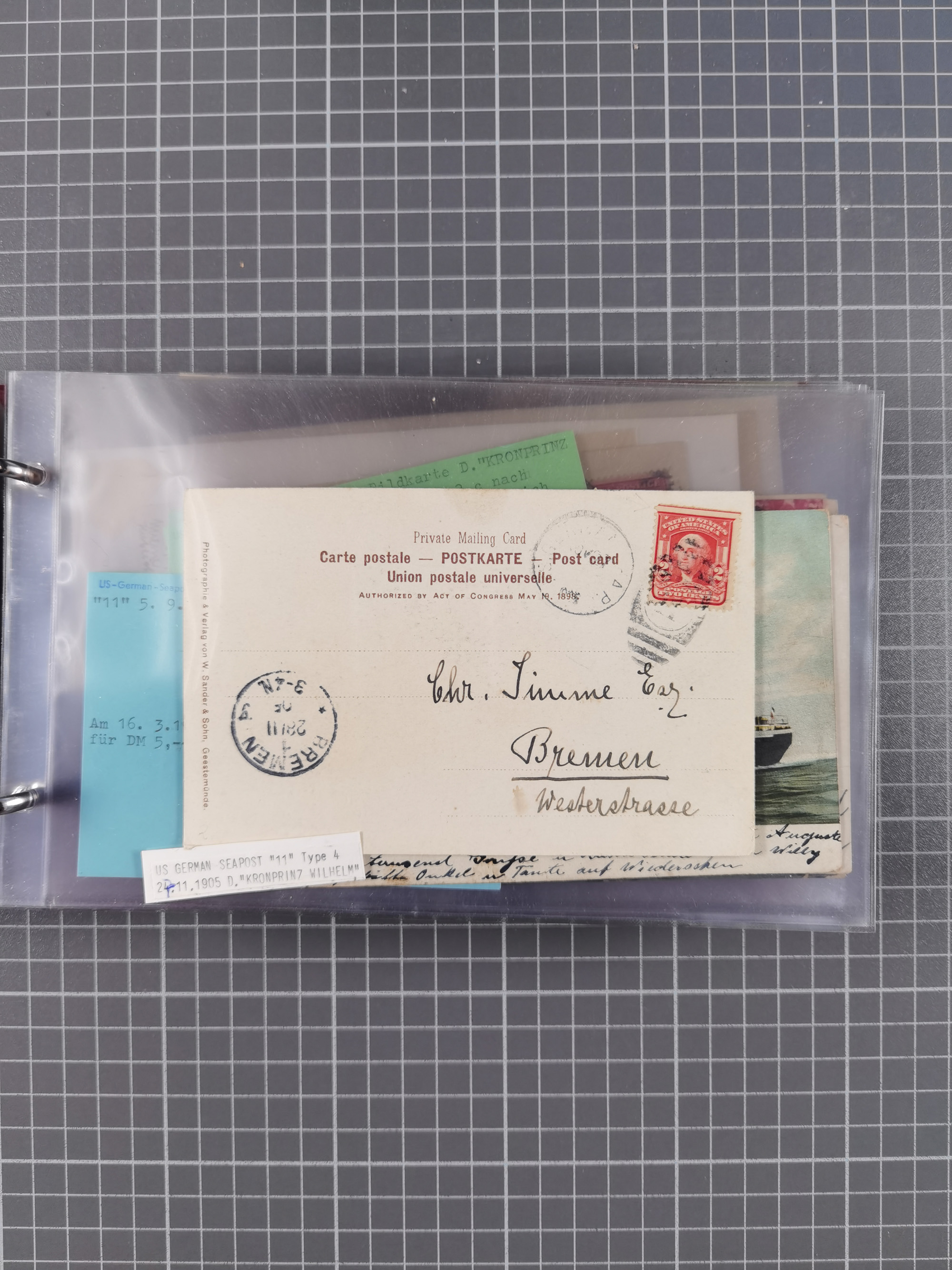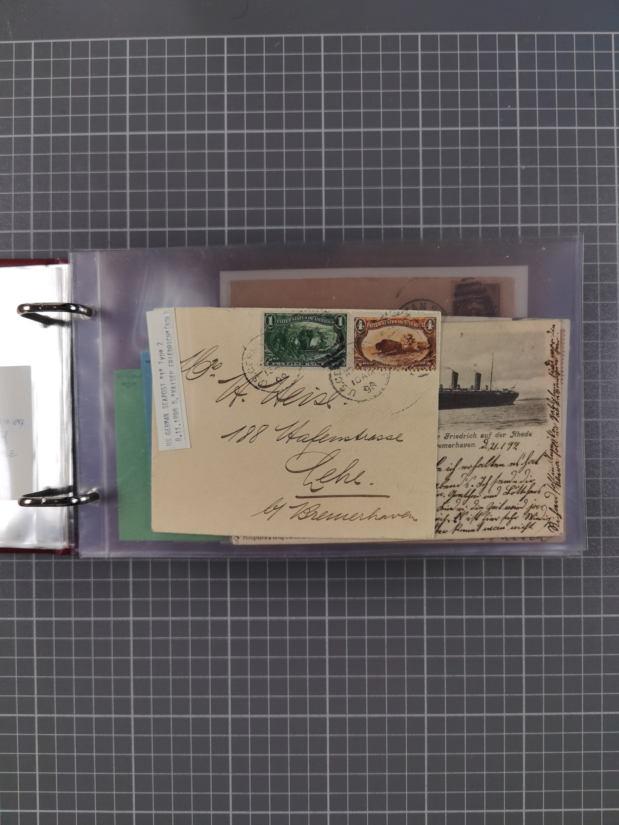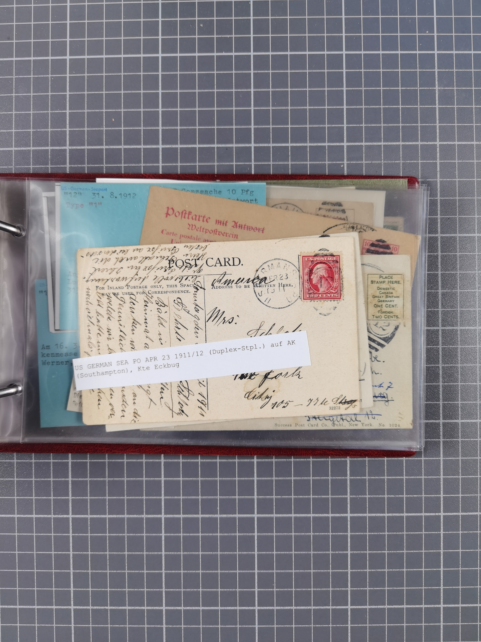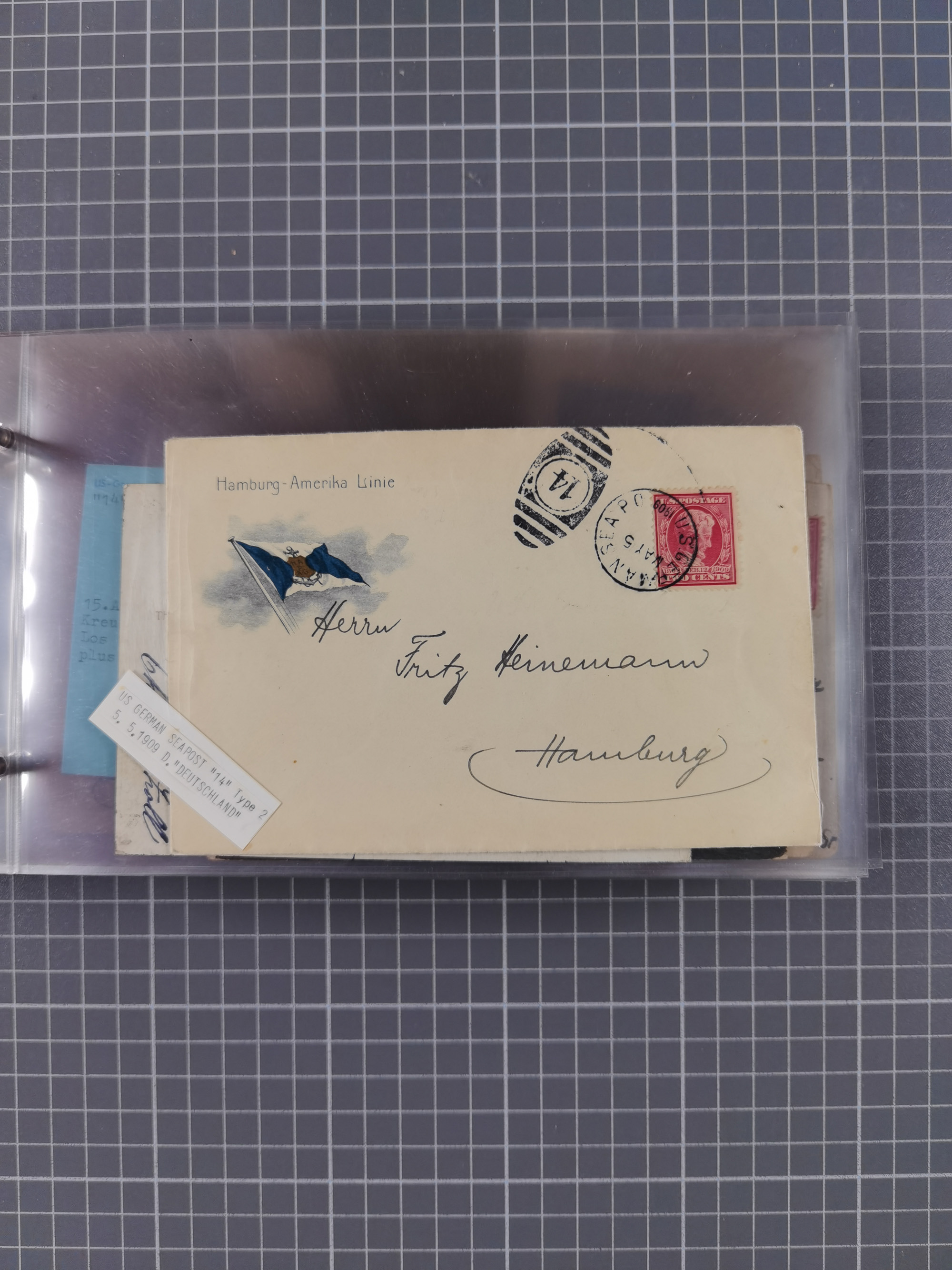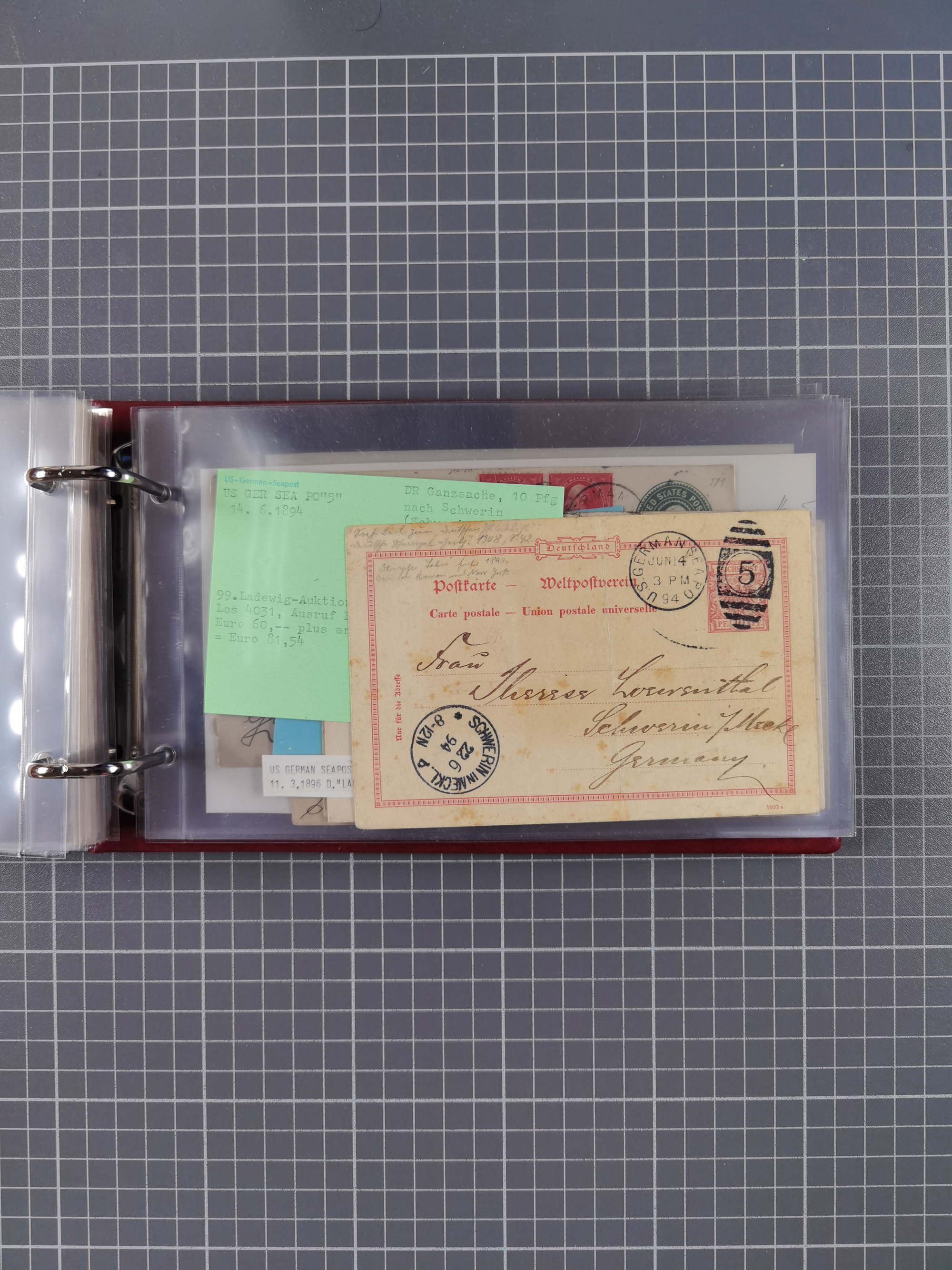 1892/1939, umfangreiche Sammlung “U.S. GERMAN SEA POST” mit ca. 400 Briefen, Karten und Ganzsachen, Schwerpunkt vor 1920 mit den Dublex-Stempeln mit Nr. 1-16, dabei verschiedene Verwendungen mit besseren (u.a. auf Briefen/Karten vom D. Reich), 1 R-GSU und weiteren Besonderheiten. Dazu noch einige Schiffs-Ansichtskarten, bei vielen Belegen mit Vermerken zu den Schiffen usw. und meist in guter Erhaltung. Eine in diesem Umfang seltene Sammlung in sechs Alben, ex Steinmeyer