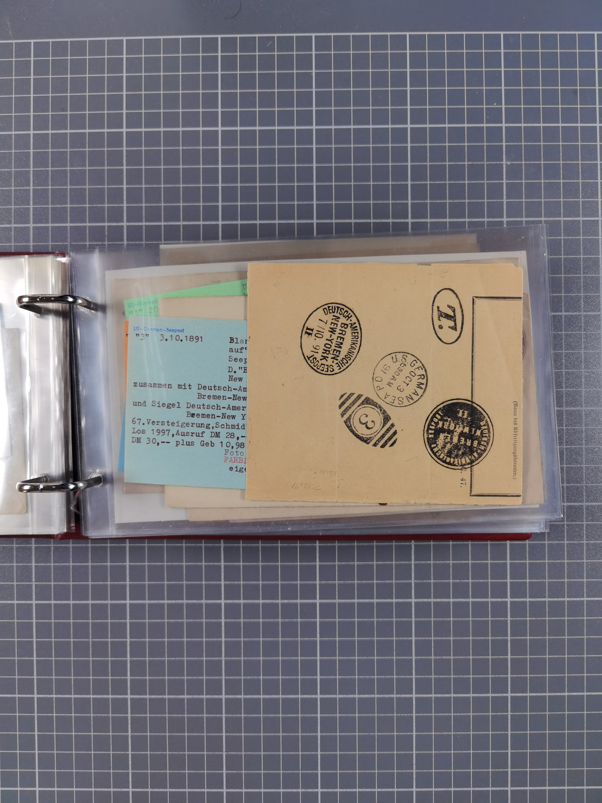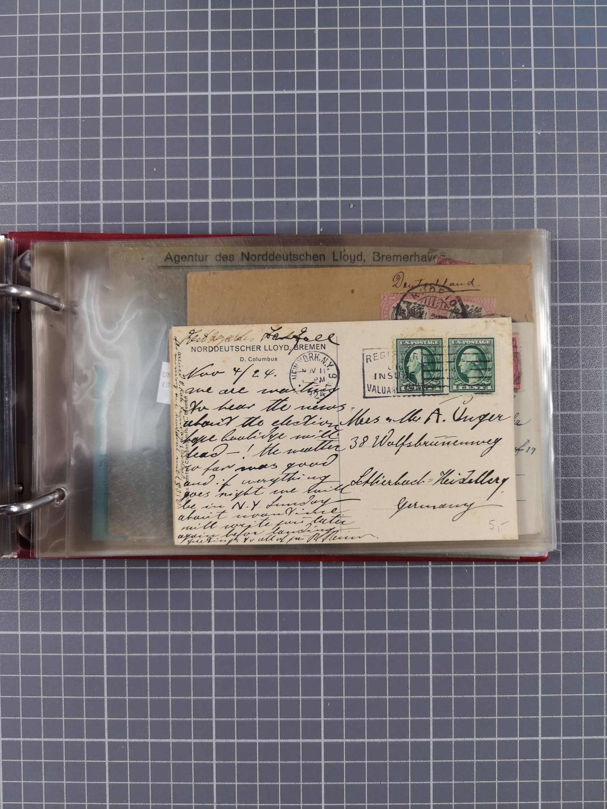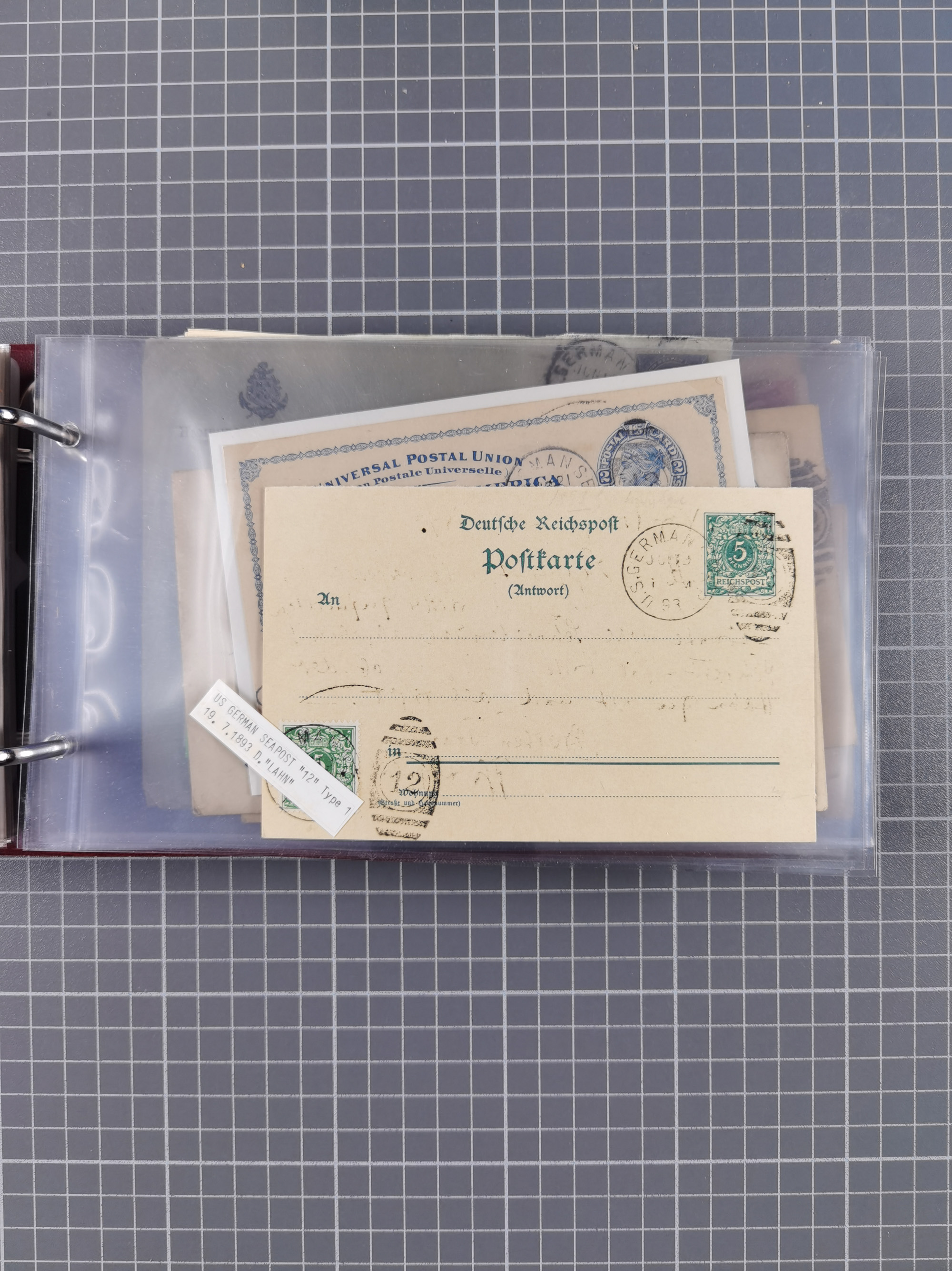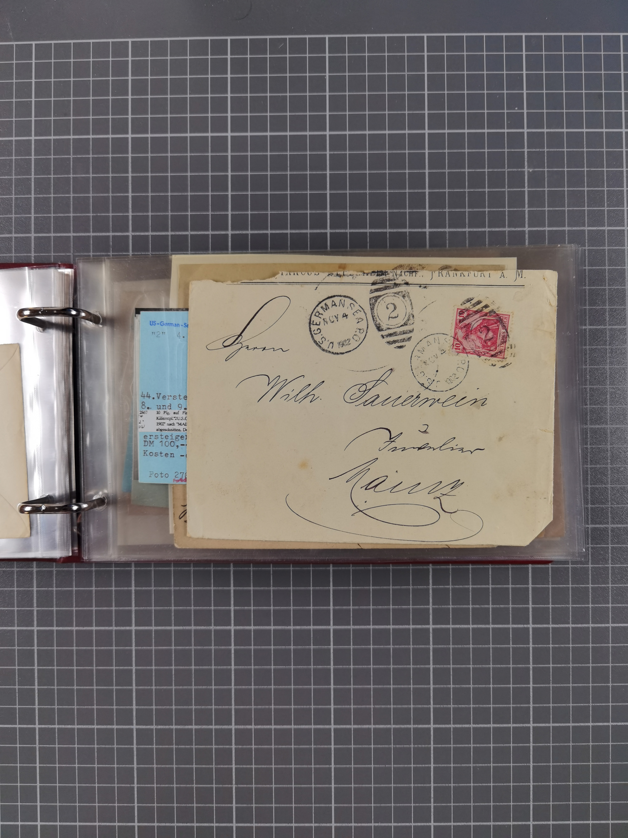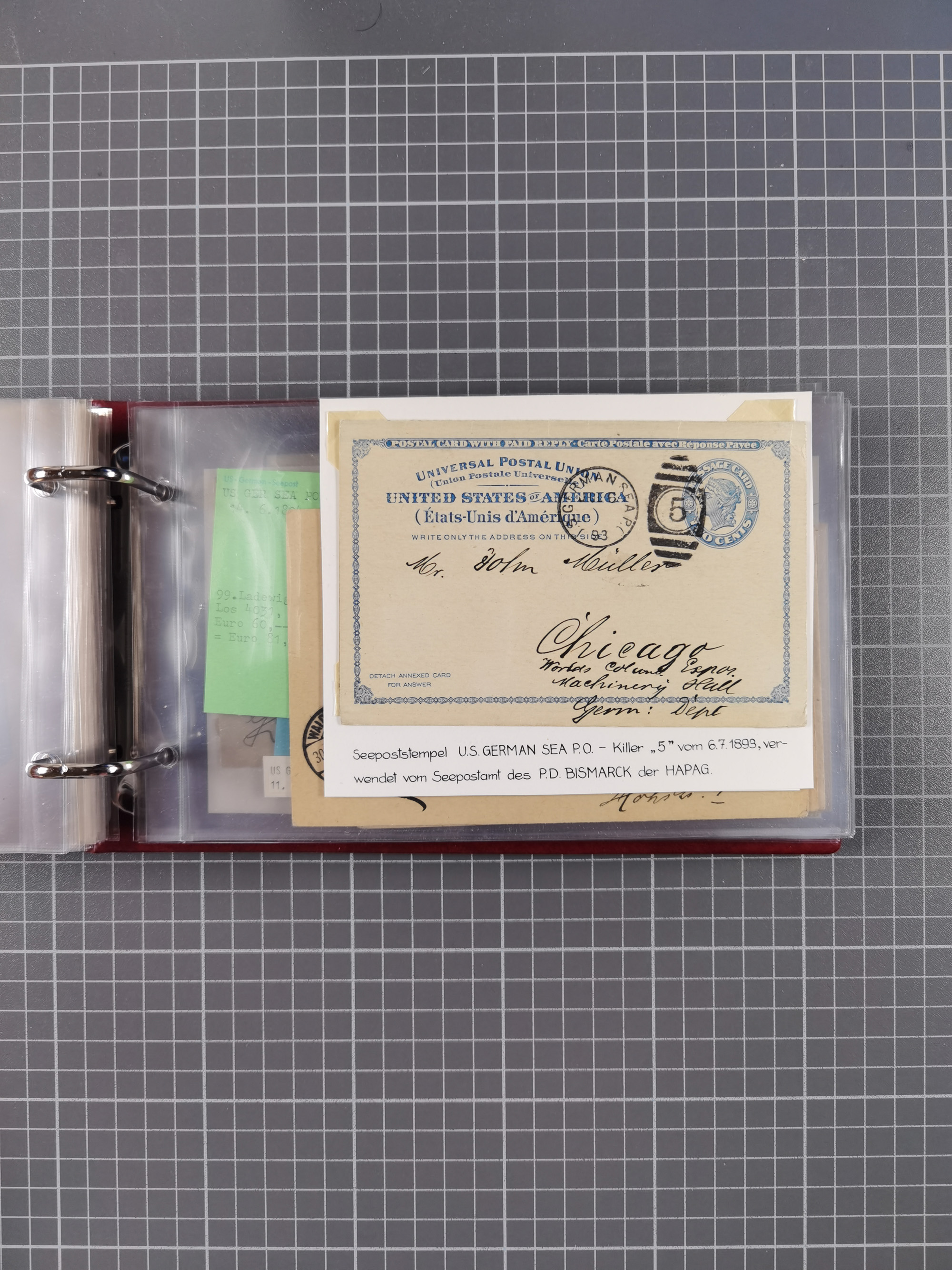 1892/1939, umfangreiche Sammlung “U.S. GERMAN SEA POST” mit ca. 400 Briefen, Karten und Ganzsachen, Schwerpunkt vor 1920 mit den Dublex-Stempeln mit Nr. 1-16, dabei verschiedene Verwendungen mit besseren (u.a. auf Briefen/Karten vom D. Reich), 1 R-GSU und weiteren Besonderheiten. Dazu noch einige Schiffs-Ansichtskarten, bei vielen Belegen mit Vermerken zu den Schiffen usw. und meist in guter Erhaltung. Eine in diesem Umfang seltene Sammlung in sechs Alben, ex Steinmeyer