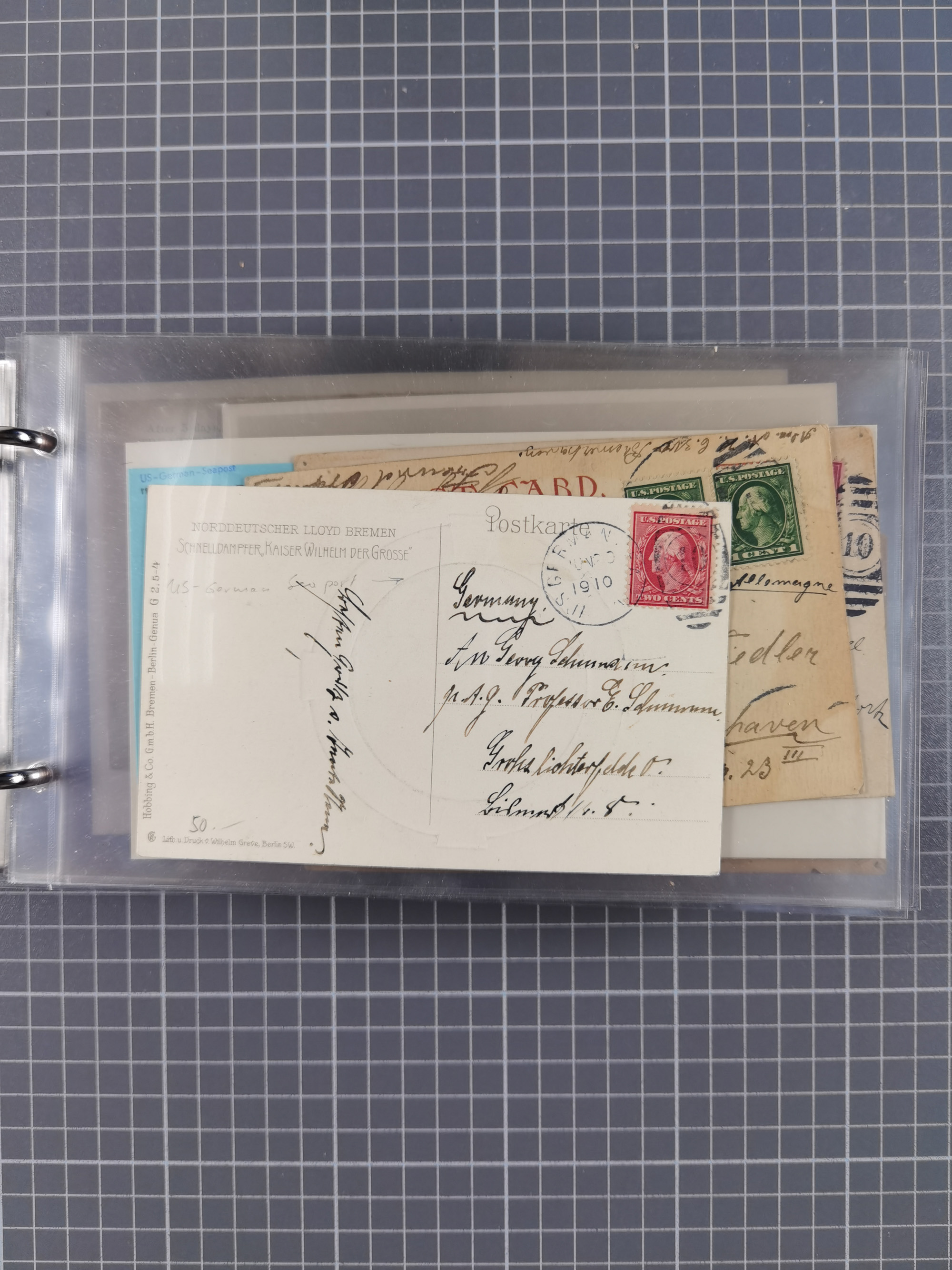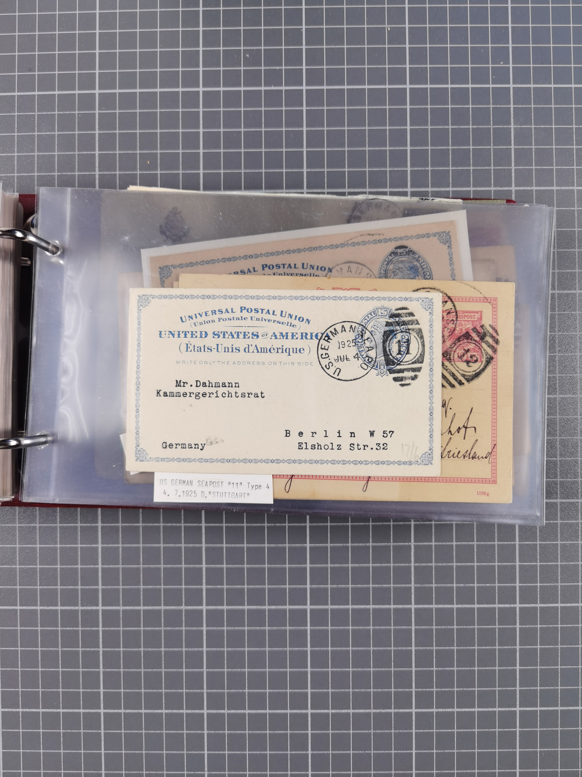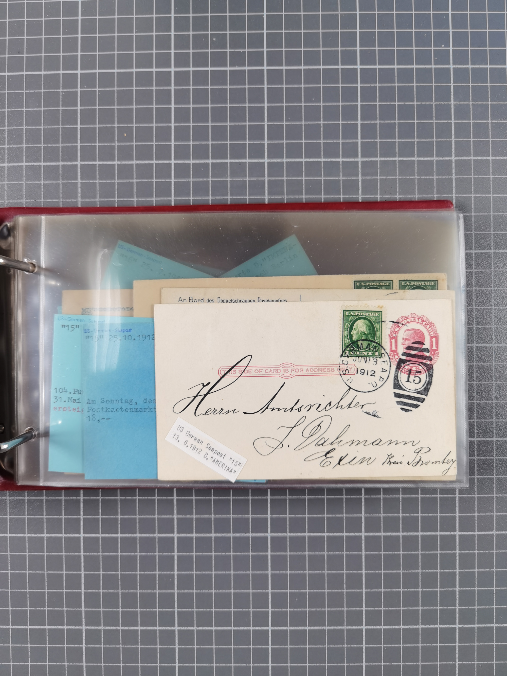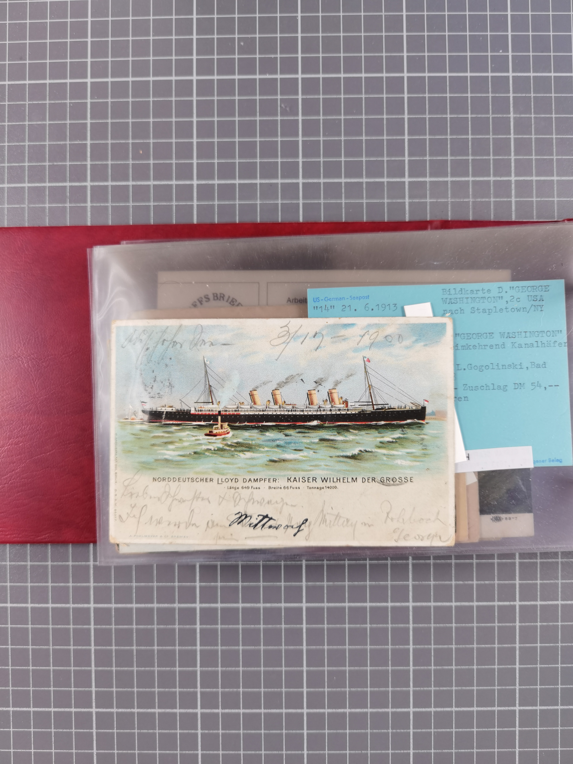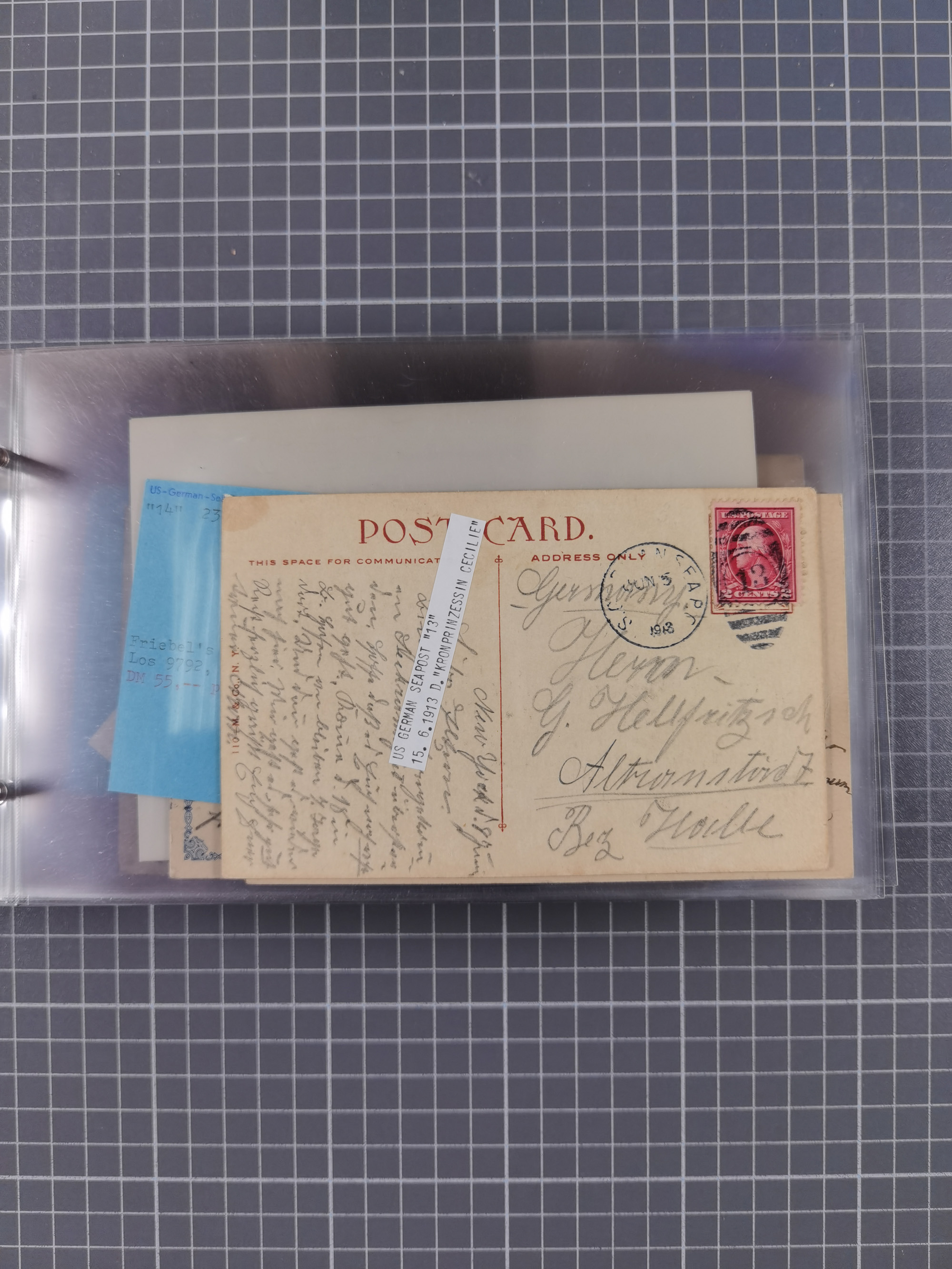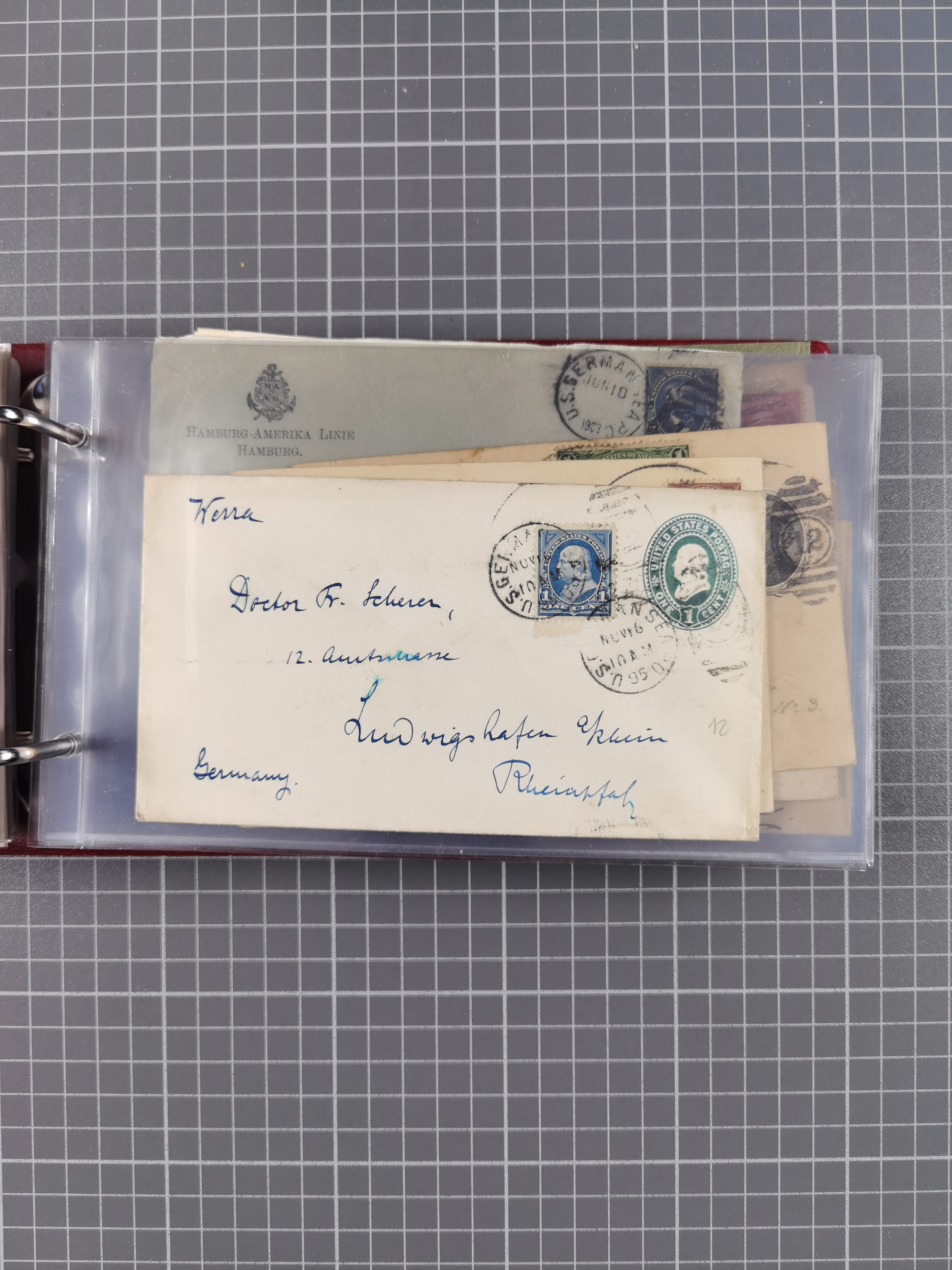 1892/1939, umfangreiche Sammlung “U.S. GERMAN SEA POST” mit ca. 400 Briefen, Karten und Ganzsachen, Schwerpunkt vor 1920 mit den Dublex-Stempeln mit Nr. 1-16, dabei verschiedene Verwendungen mit besseren (u.a. auf Briefen/Karten vom D. Reich), 1 R-GSU und weiteren Besonderheiten. Dazu noch einige Schiffs-Ansichtskarten, bei vielen Belegen mit Vermerken zu den Schiffen usw. und meist in guter Erhaltung. Eine in diesem Umfang seltene Sammlung in sechs Alben, ex Steinmeyer