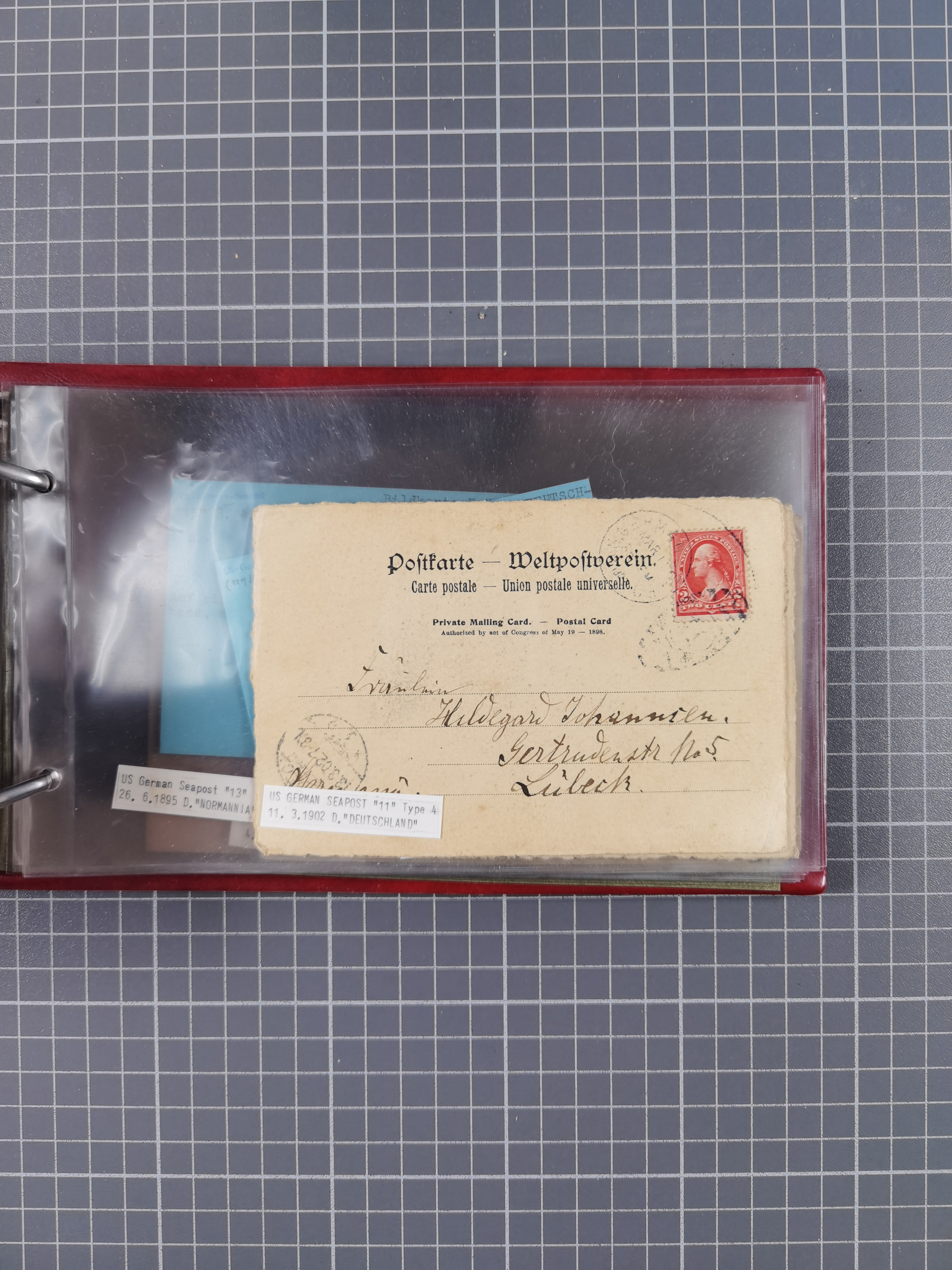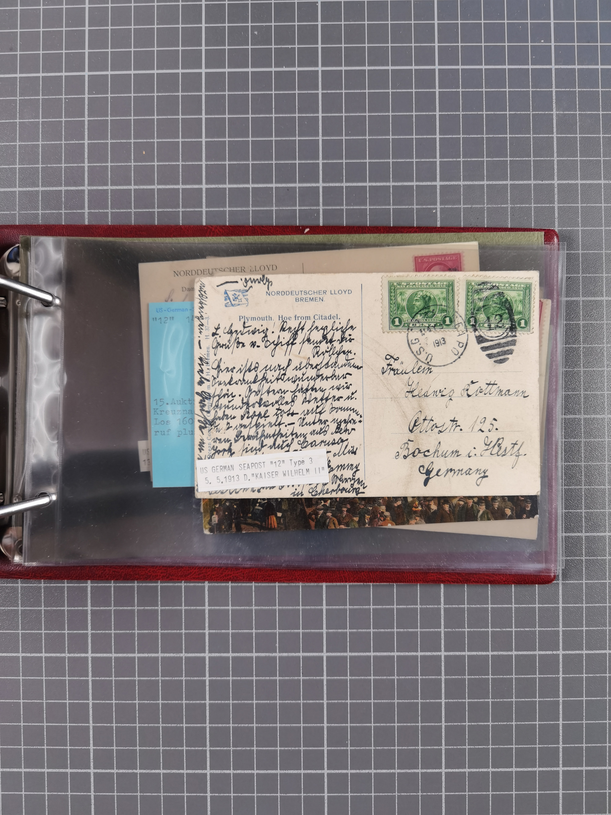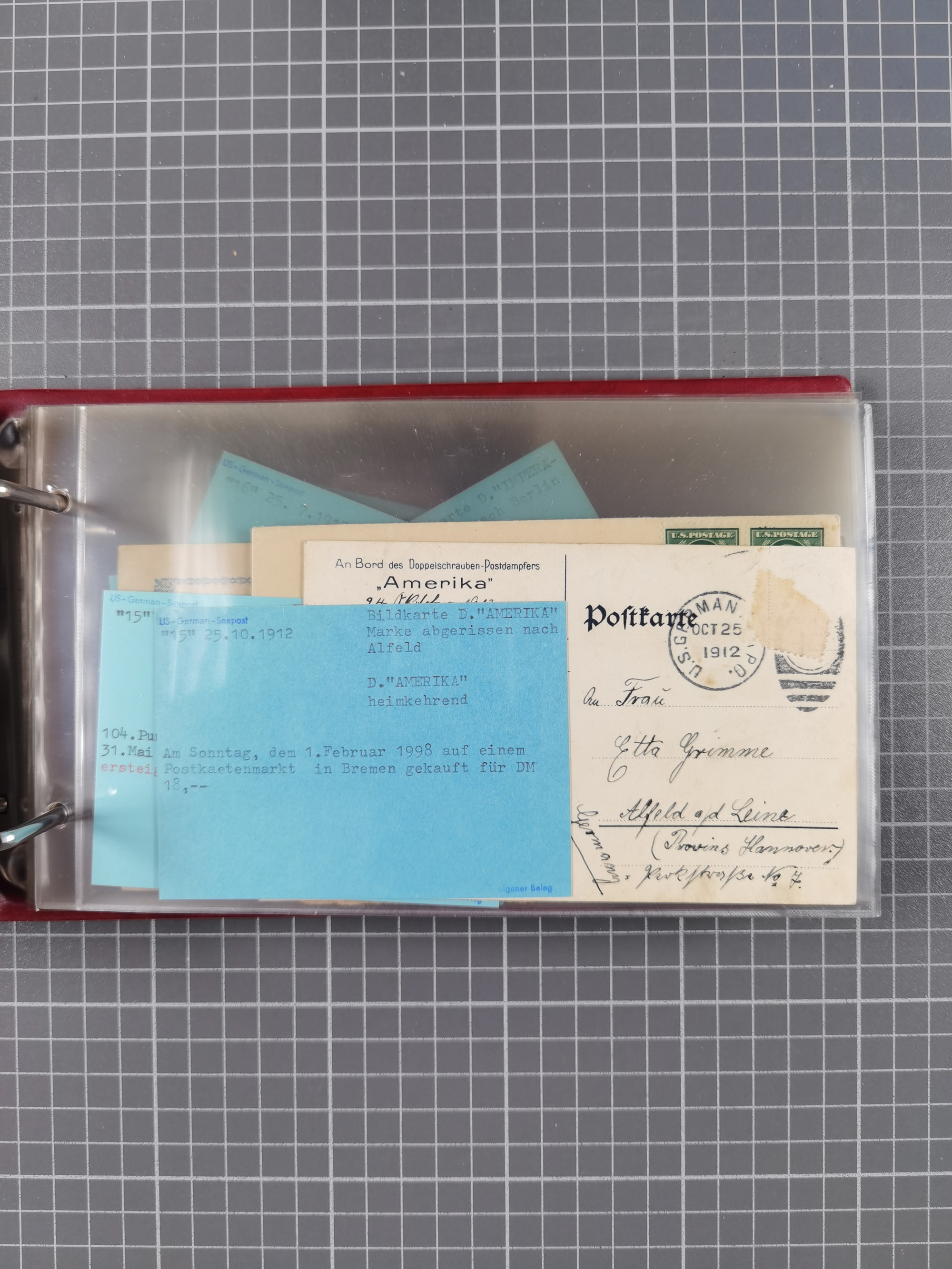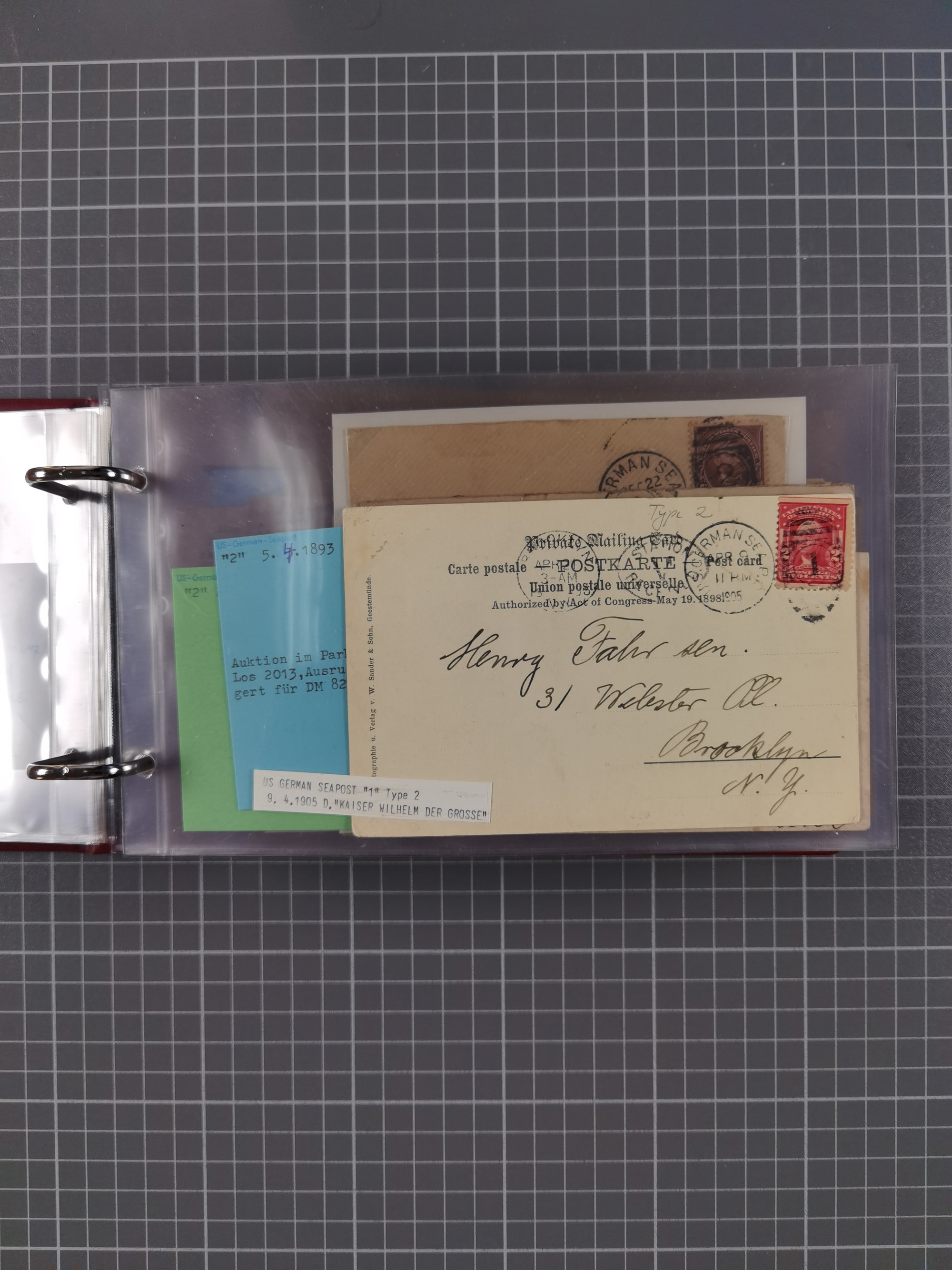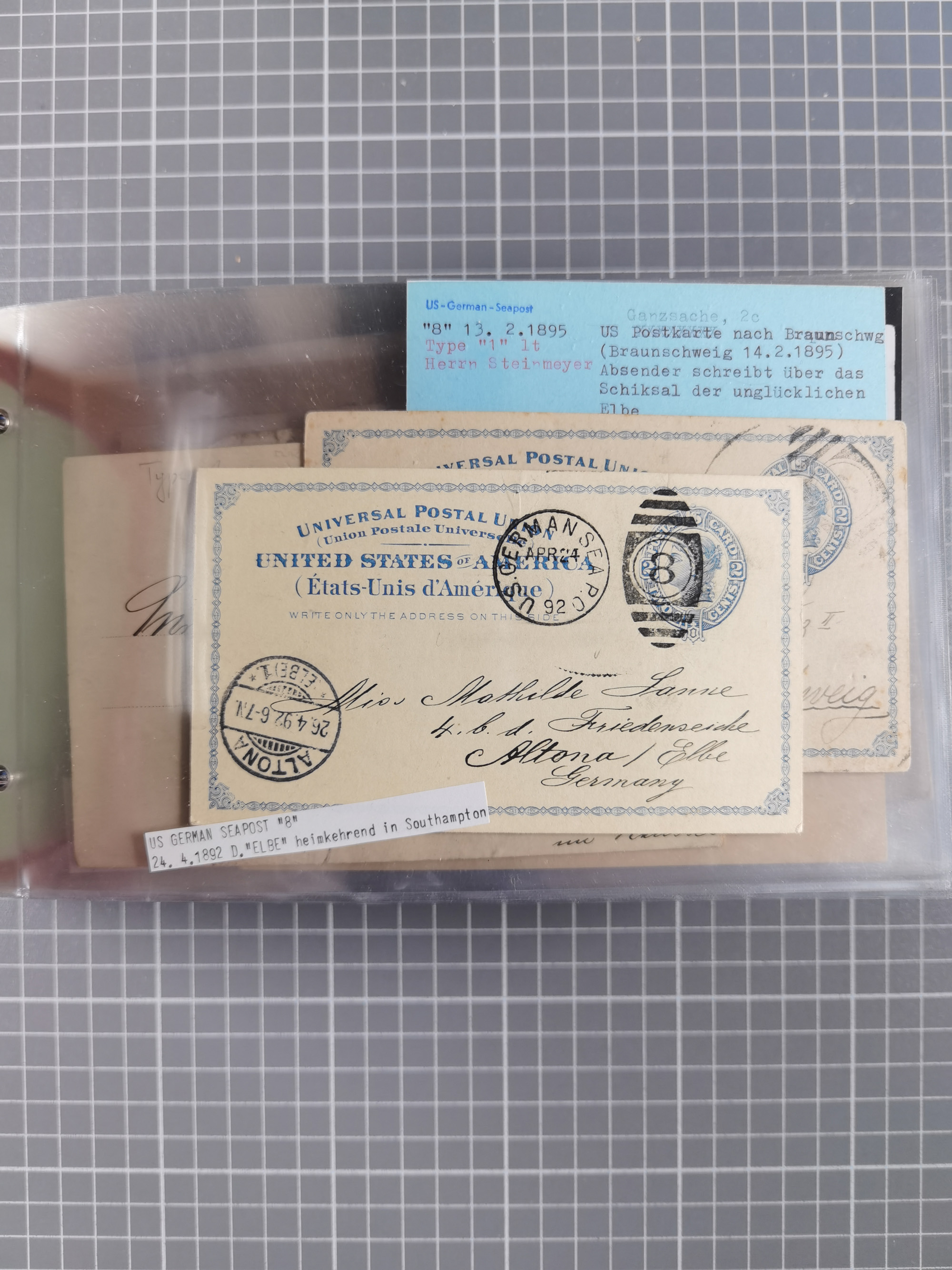1892/1939, umfangreiche Sammlung “U.S. GERMAN SEA POST” mit ca. 400 Briefen, Karten und Ganzsachen, Schwerpunkt vor 1920 mit den Dublex-Stempeln mit Nr. 1-16, dabei verschiedene Verwendungen mit besseren (u.a. auf Briefen/Karten vom D. Reich), 1 R-GSU und weiteren Besonderheiten. Dazu noch einige Schiffs-Ansichtskarten, bei vielen Belegen mit Vermerken zu den Schiffen usw. und meist in guter Erhaltung. Eine in diesem Umfang seltene Sammlung in sechs Alben, ex Steinmeyer