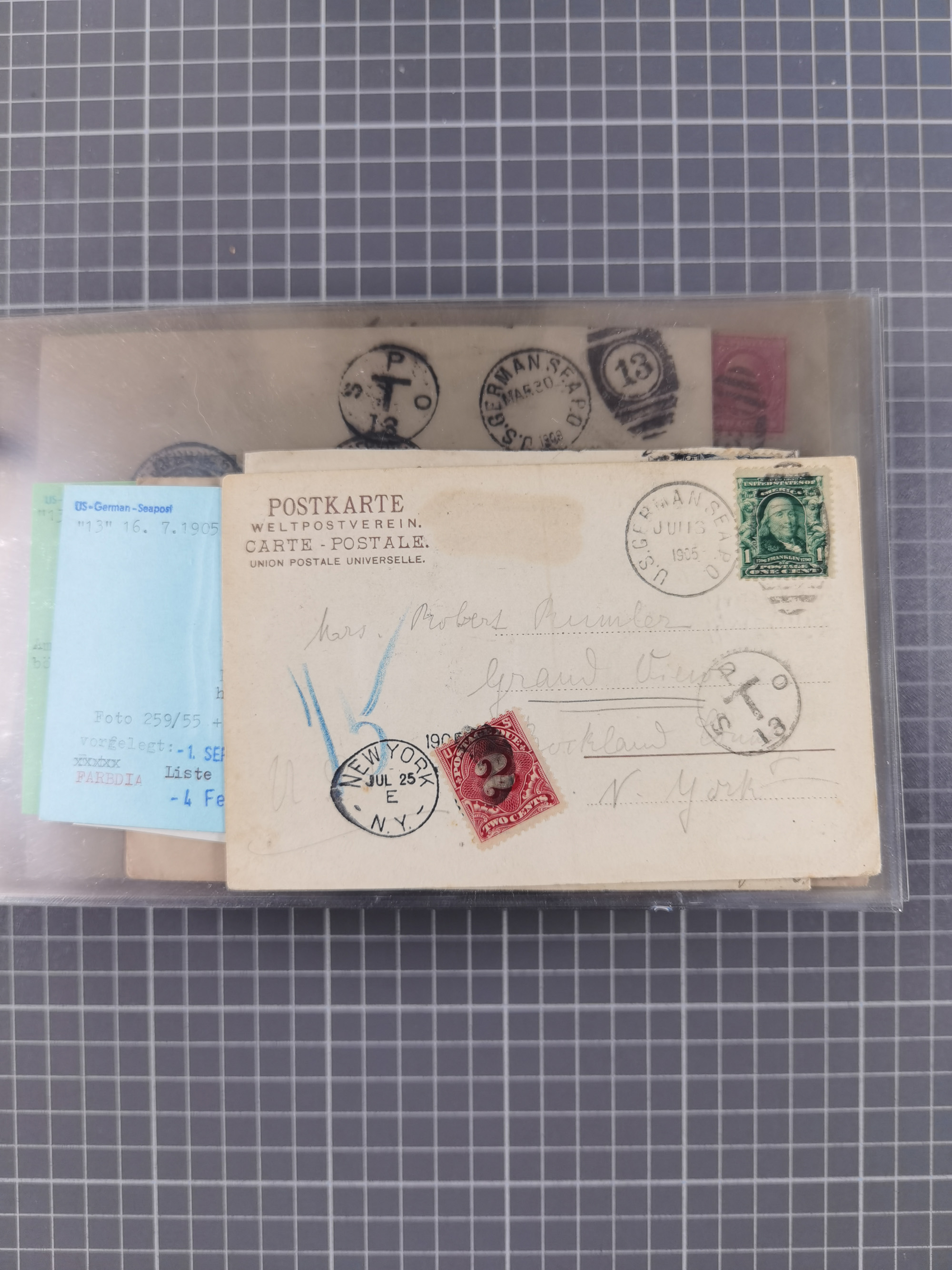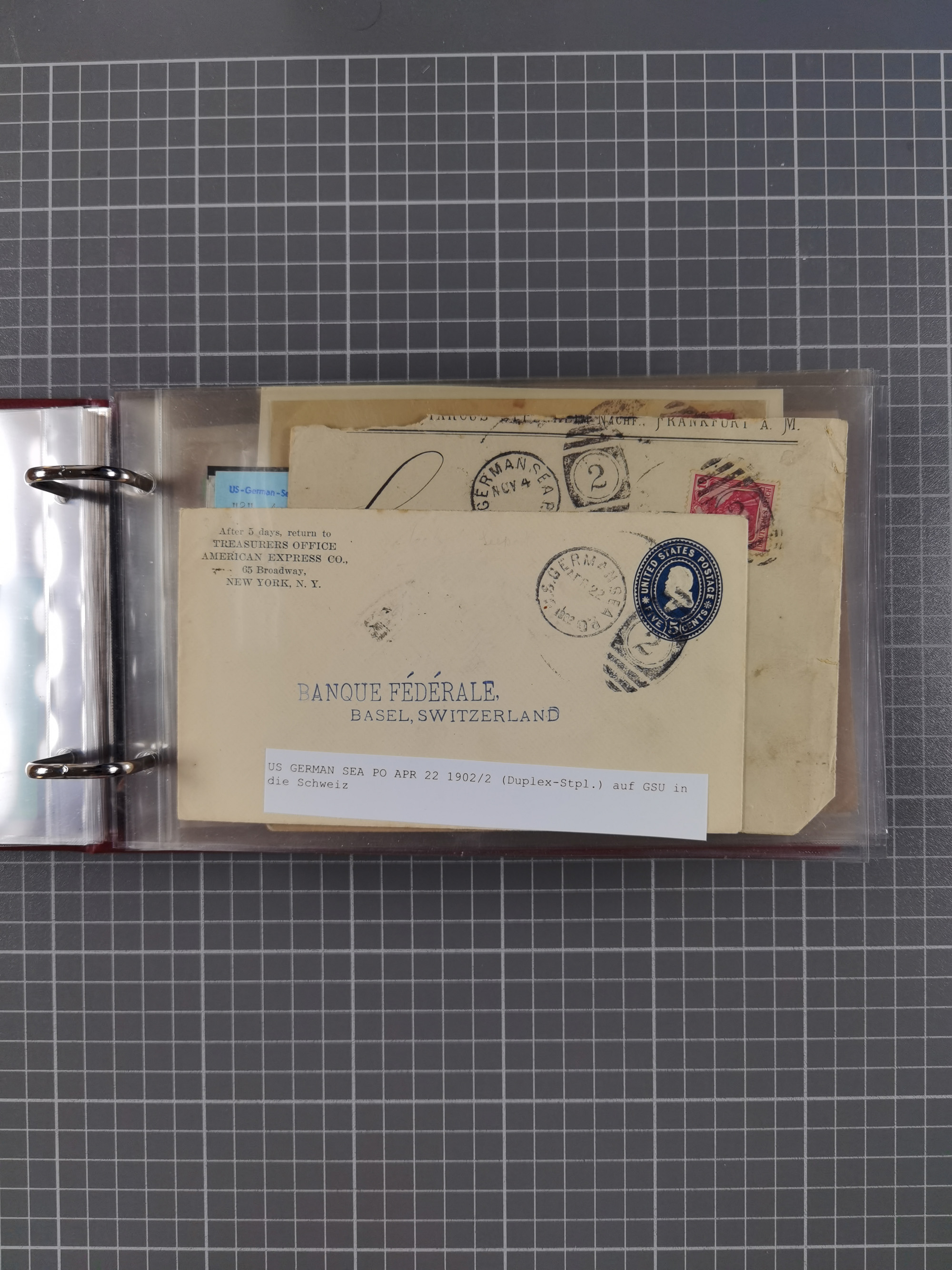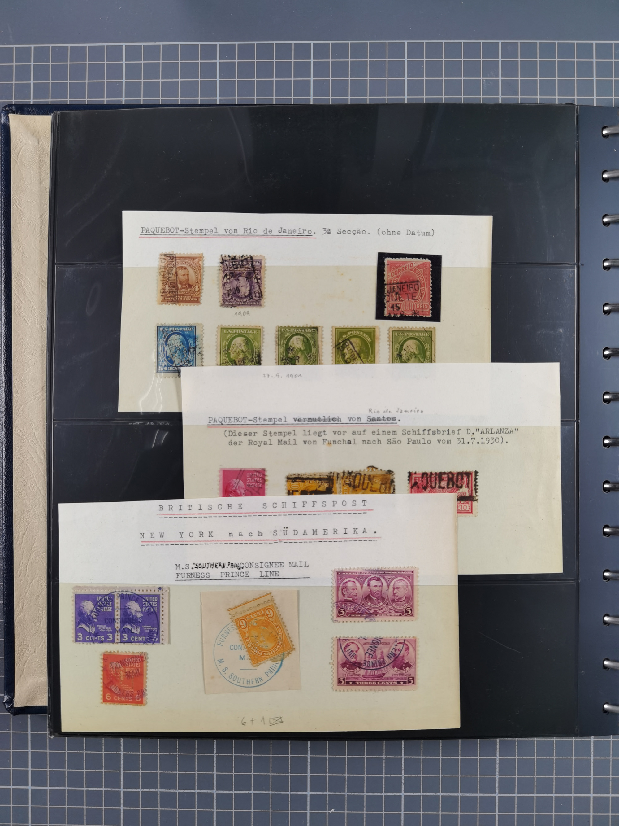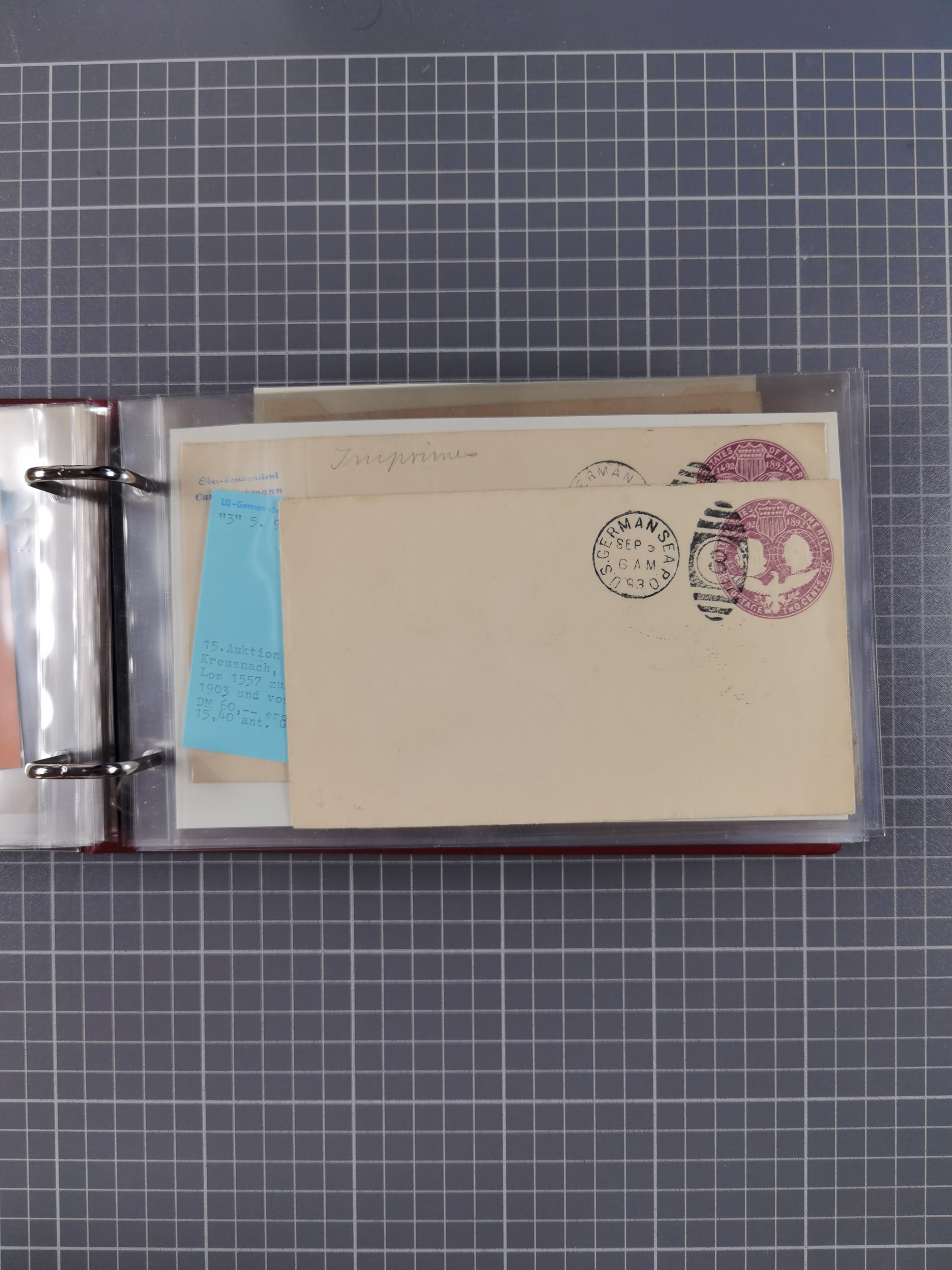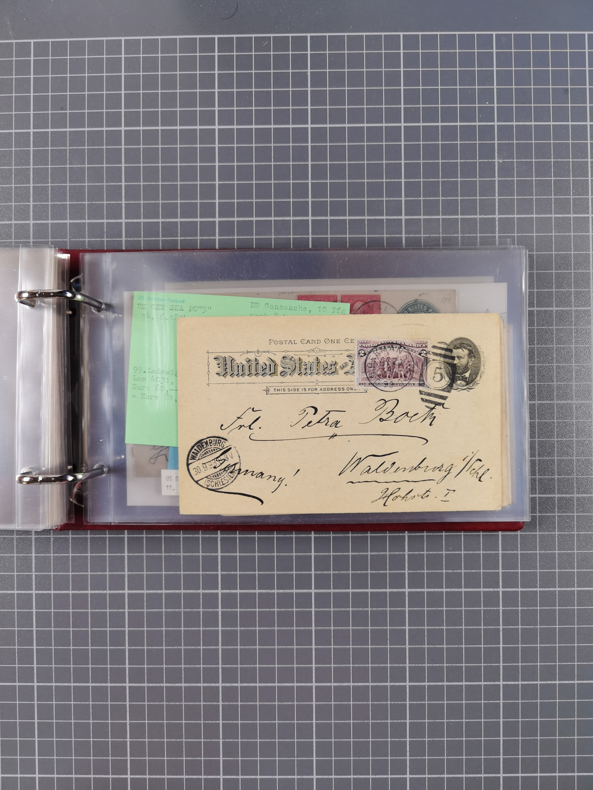 1892/1939, umfangreiche Sammlung “U.S. GERMAN SEA POST” mit ca. 400 Briefen, Karten und Ganzsachen, Schwerpunkt vor 1920 mit den Dublex-Stempeln mit Nr. 1-16, dabei verschiedene Verwendungen mit besseren (u.a. auf Briefen/Karten vom D. Reich), 1 R-GSU und weiteren Besonderheiten. Dazu noch einige Schiffs-Ansichtskarten, bei vielen Belegen mit Vermerken zu den Schiffen usw. und meist in guter Erhaltung. Eine in diesem Umfang seltene Sammlung in sechs Alben, ex Steinmeyer