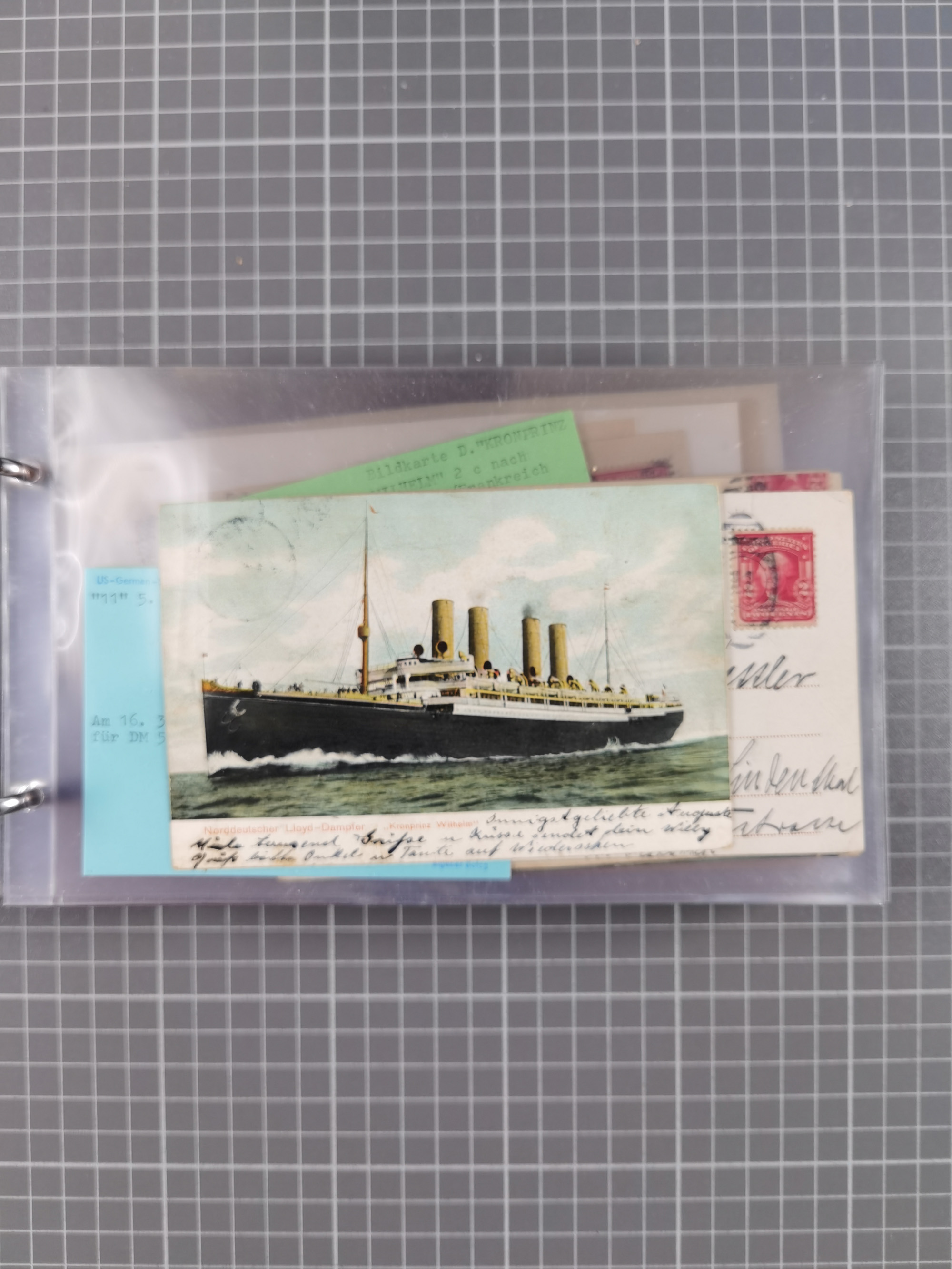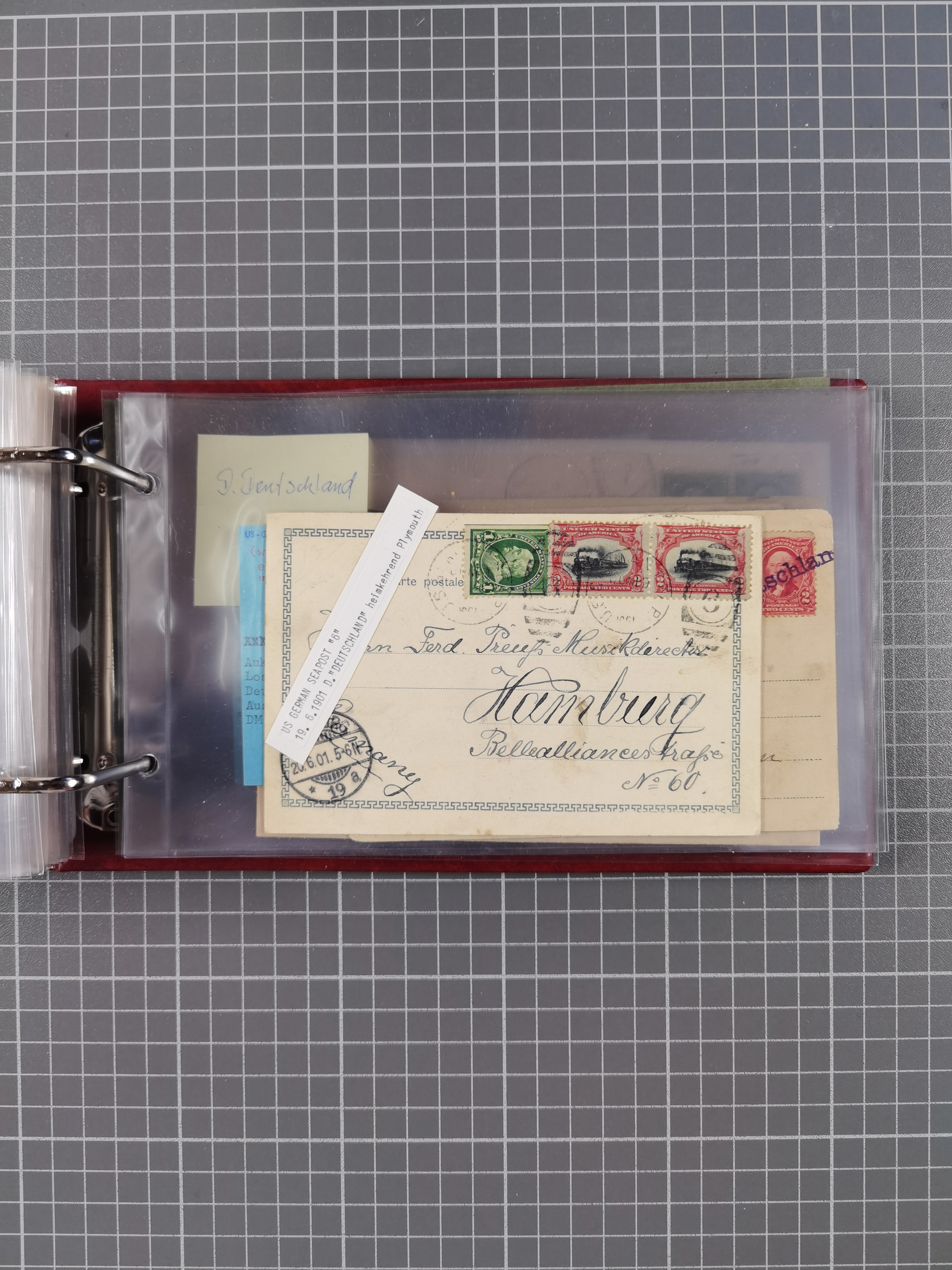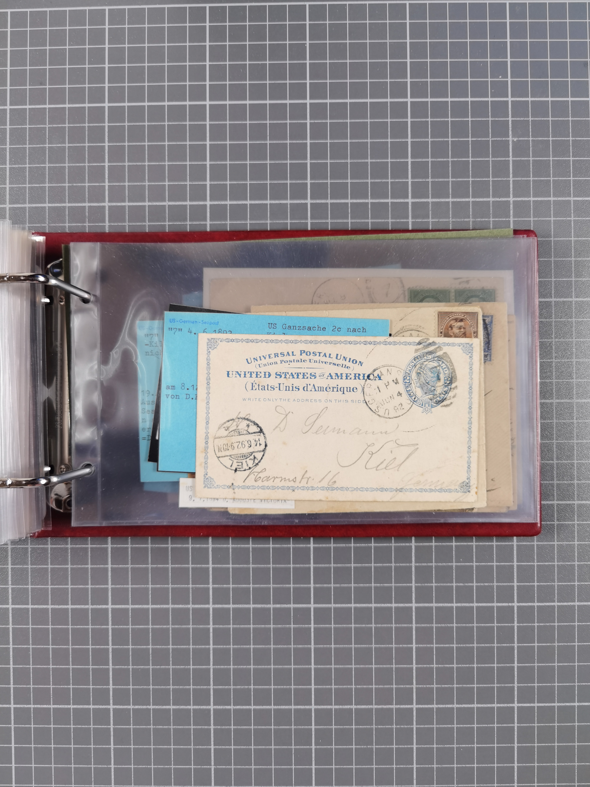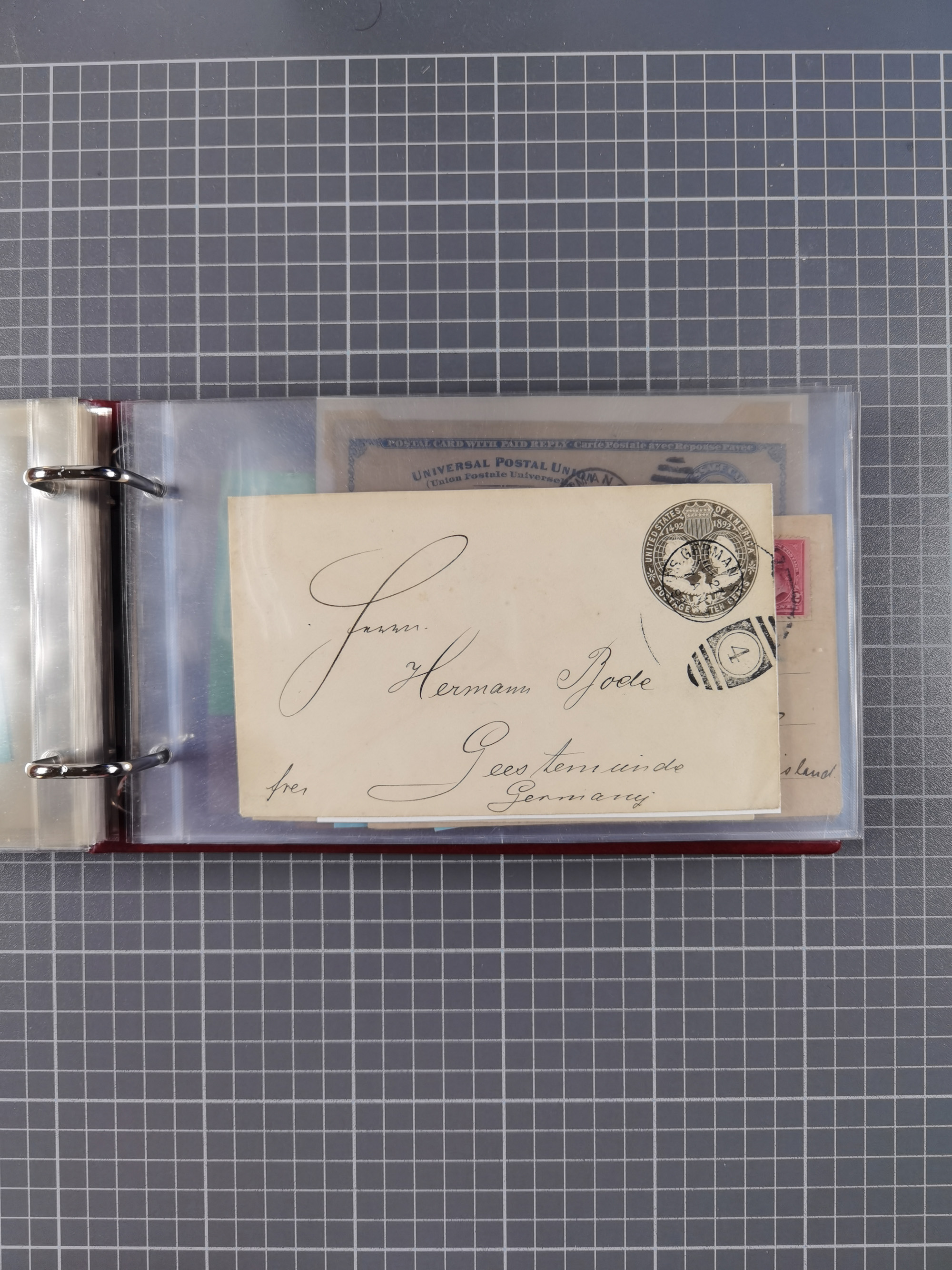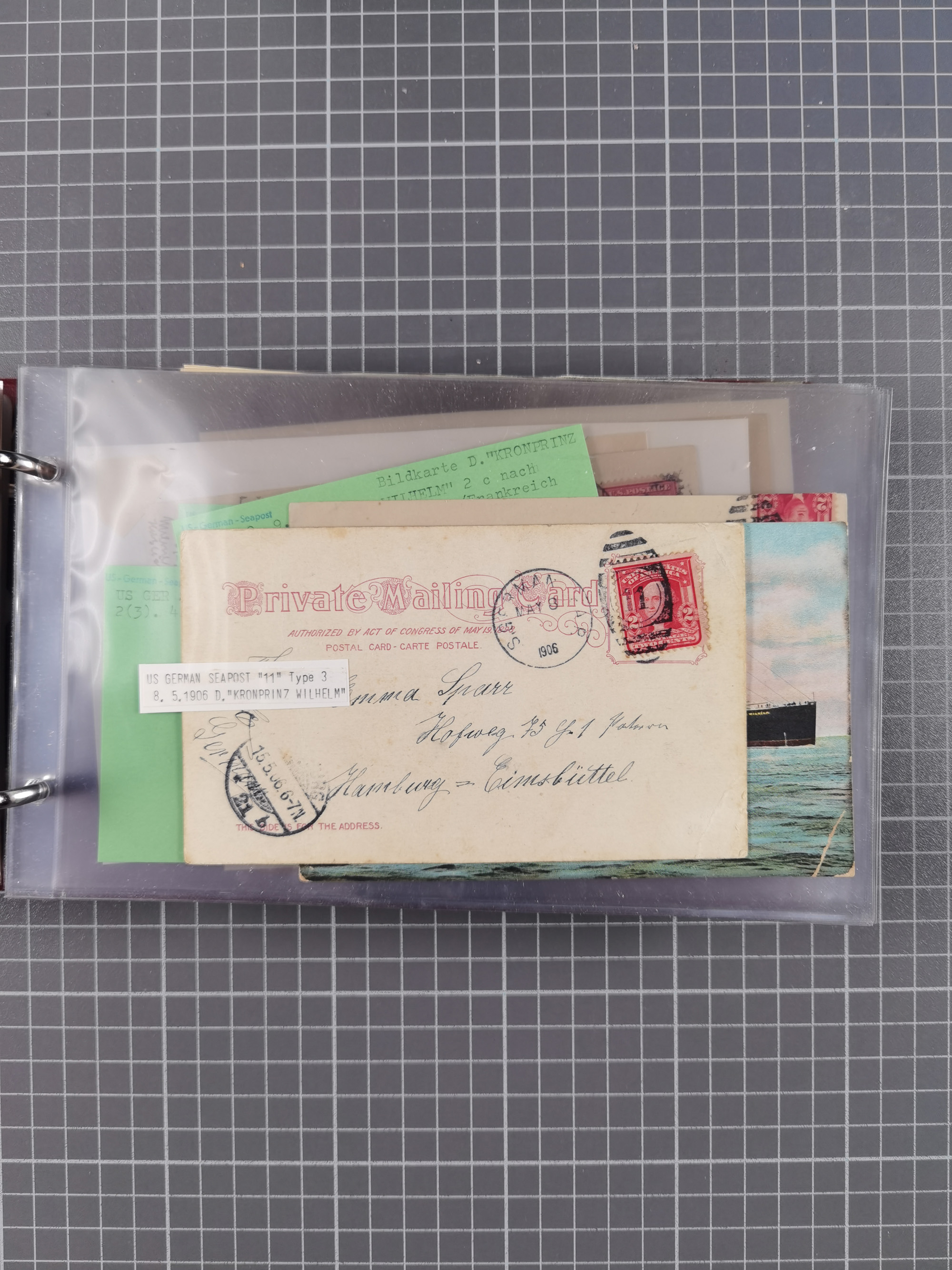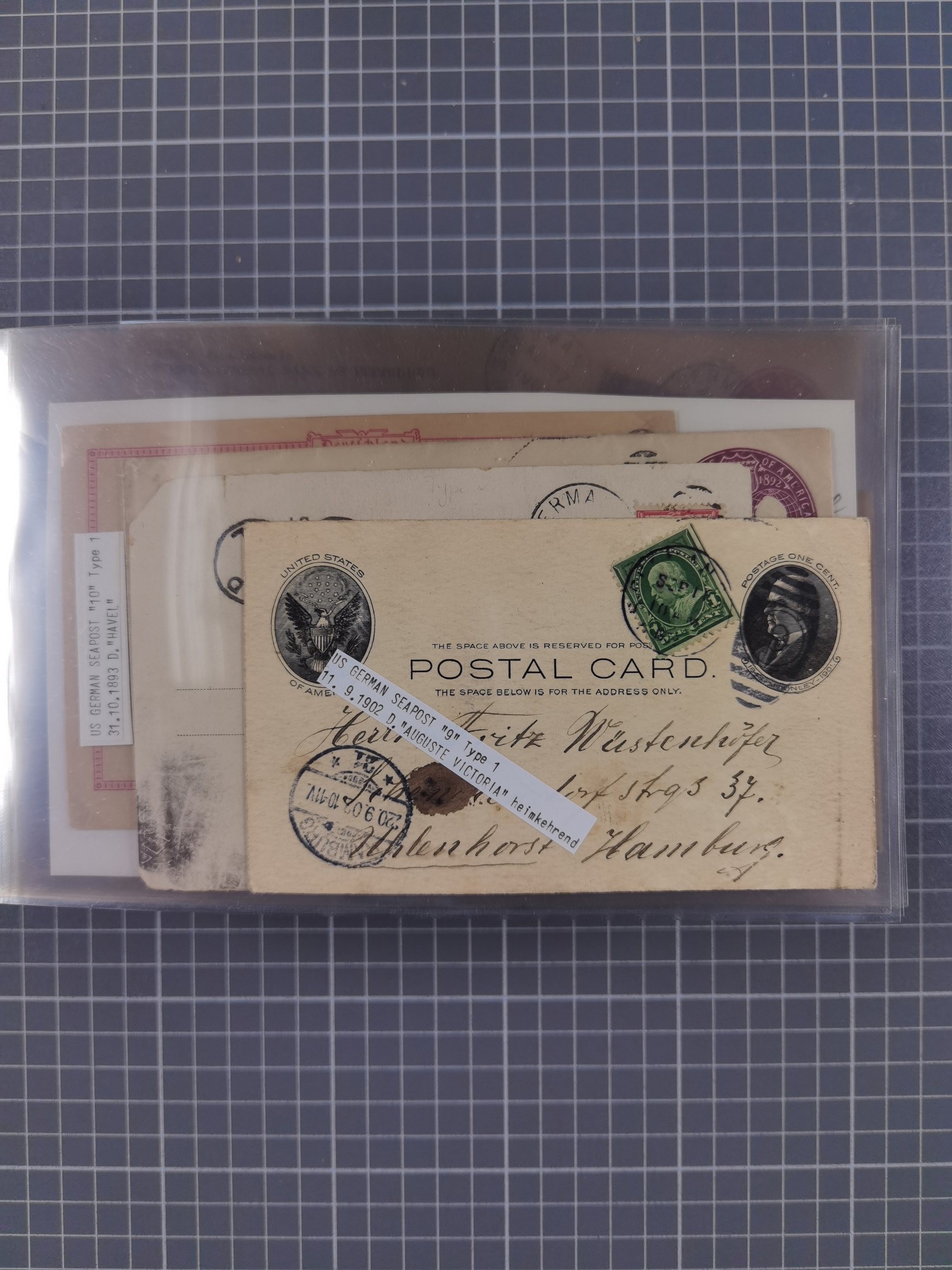 1892/1939, umfangreiche Sammlung “U.S. GERMAN SEA POST” mit ca. 400 Briefen, Karten und Ganzsachen, Schwerpunkt vor 1920 mit den Dublex-Stempeln mit Nr. 1-16, dabei verschiedene Verwendungen mit besseren (u.a. auf Briefen/Karten vom D. Reich), 1 R-GSU und weiteren Besonderheiten. Dazu noch einige Schiffs-Ansichtskarten, bei vielen Belegen mit Vermerken zu den Schiffen usw. und meist in guter Erhaltung. Eine in diesem Umfang seltene Sammlung in sechs Alben, ex Steinmeyer