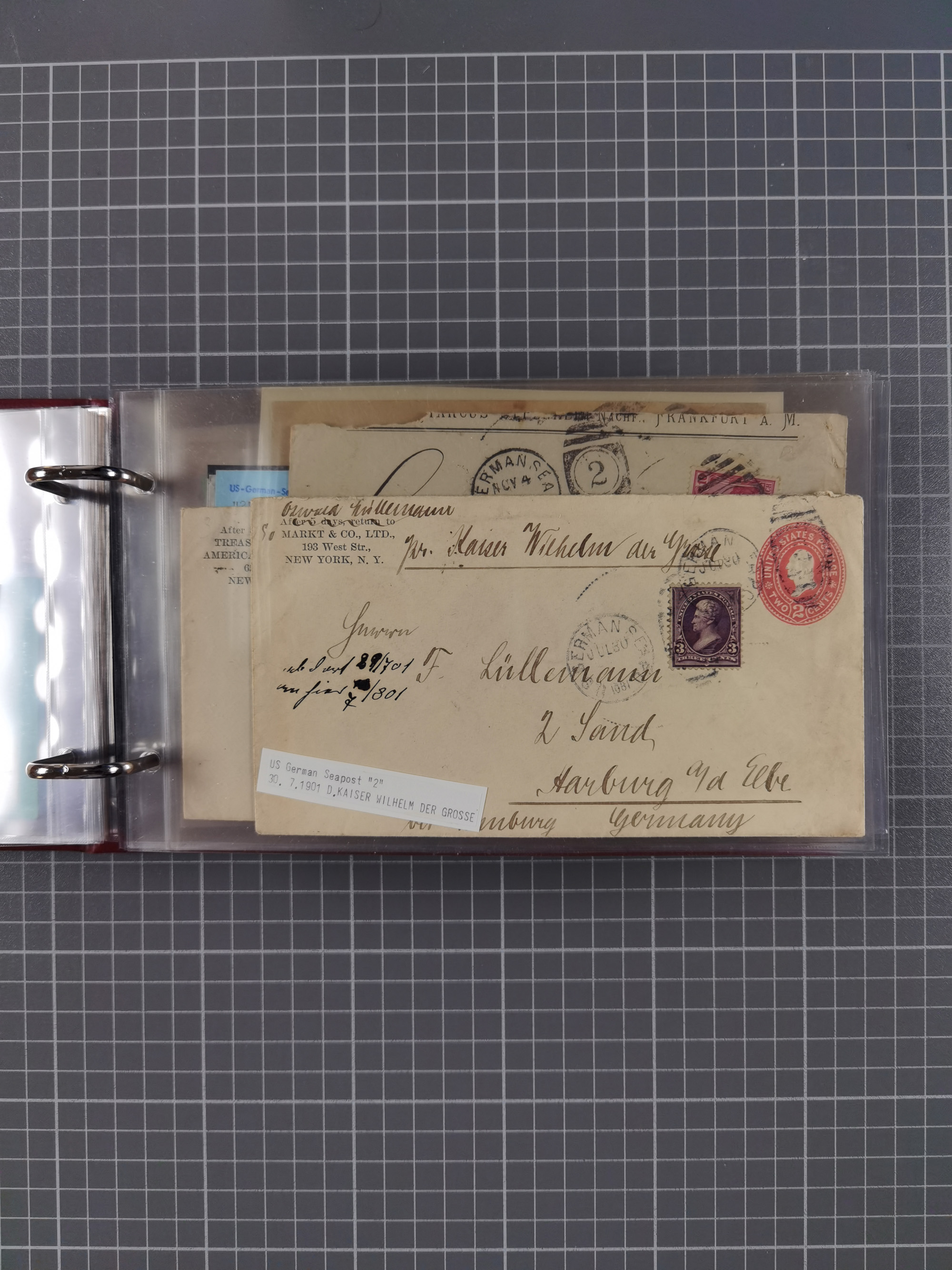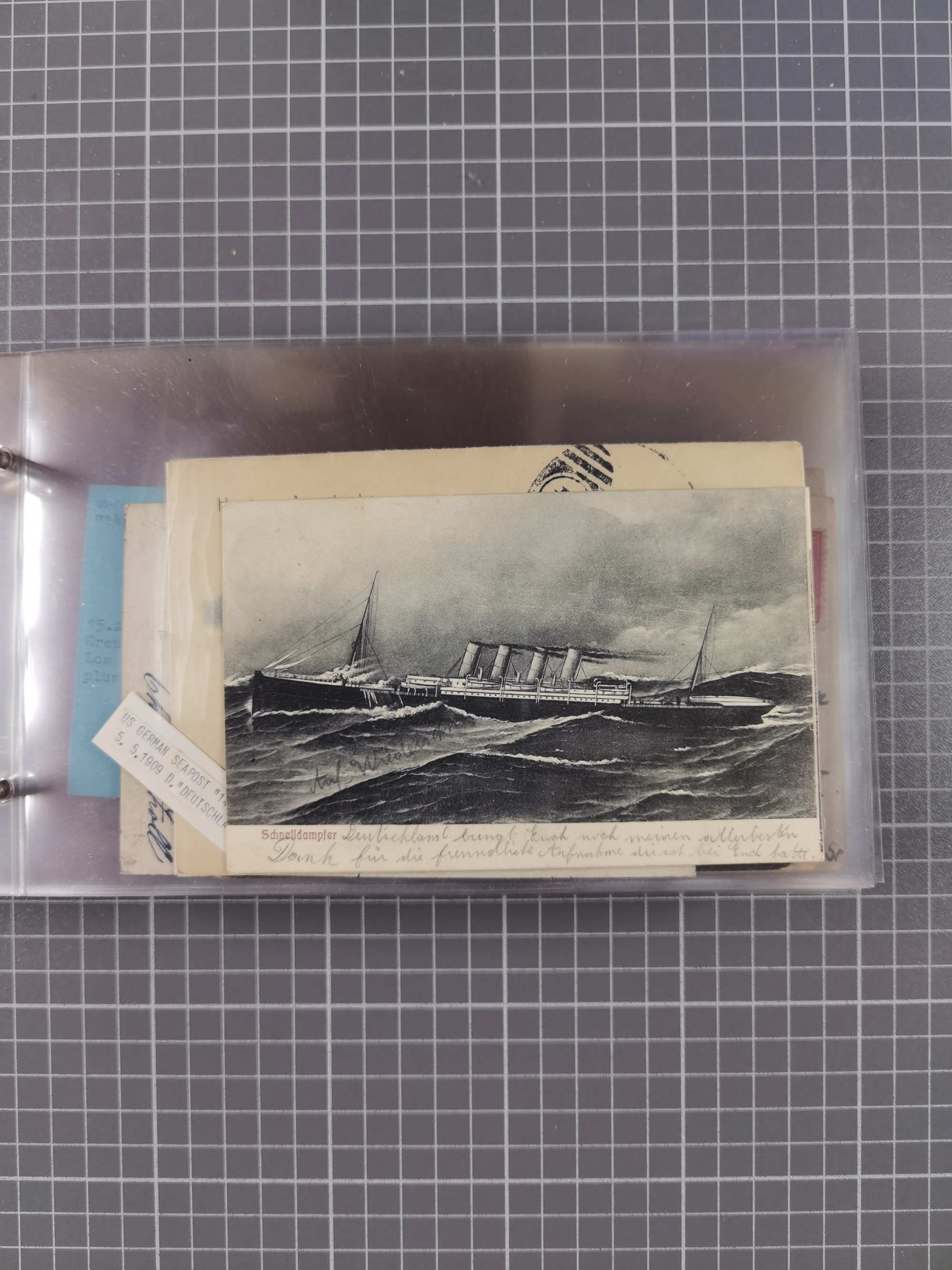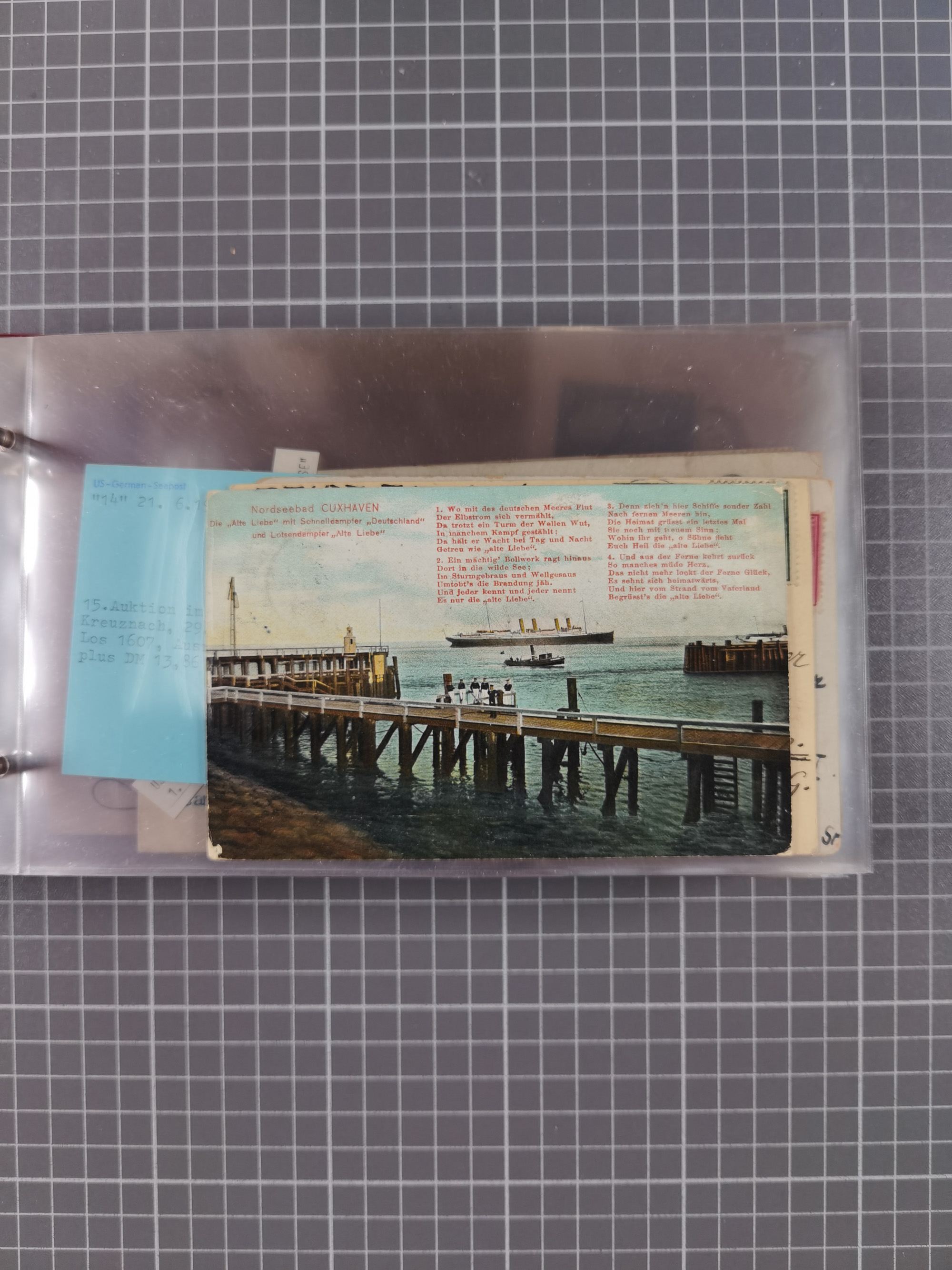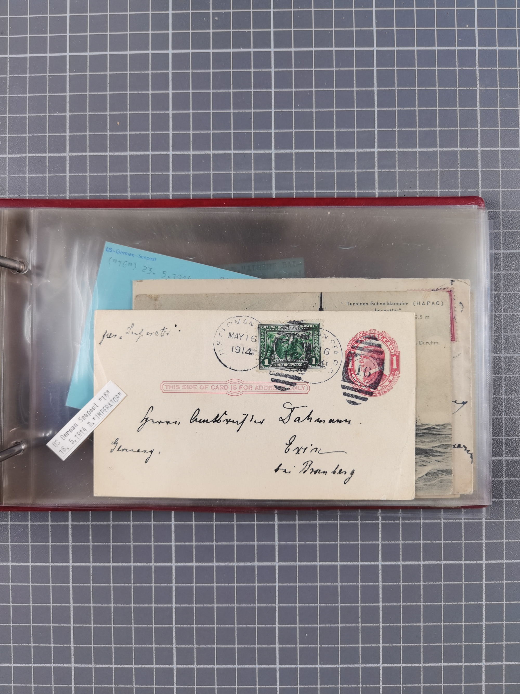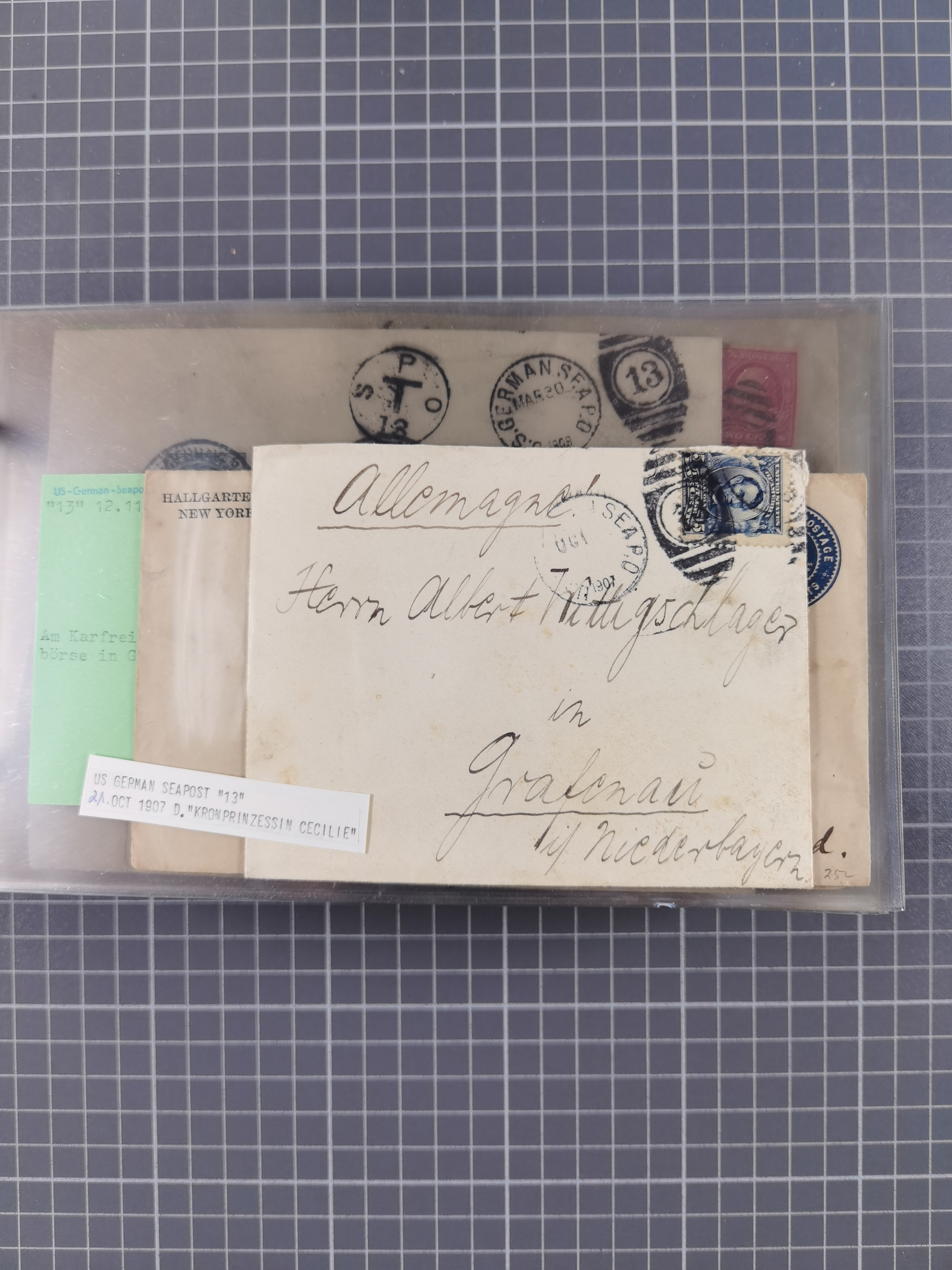 1892/1939, umfangreiche Sammlung “U.S. GERMAN SEA POST” mit ca. 400 Briefen, Karten und Ganzsachen, Schwerpunkt vor 1920 mit den Dublex-Stempeln mit Nr. 1-16, dabei verschiedene Verwendungen mit besseren (u.a. auf Briefen/Karten vom D. Reich), 1 R-GSU und weiteren Besonderheiten. Dazu noch einige Schiffs-Ansichtskarten, bei vielen Belegen mit Vermerken zu den Schiffen usw. und meist in guter Erhaltung. Eine in diesem Umfang seltene Sammlung in sechs Alben, ex Steinmeyer