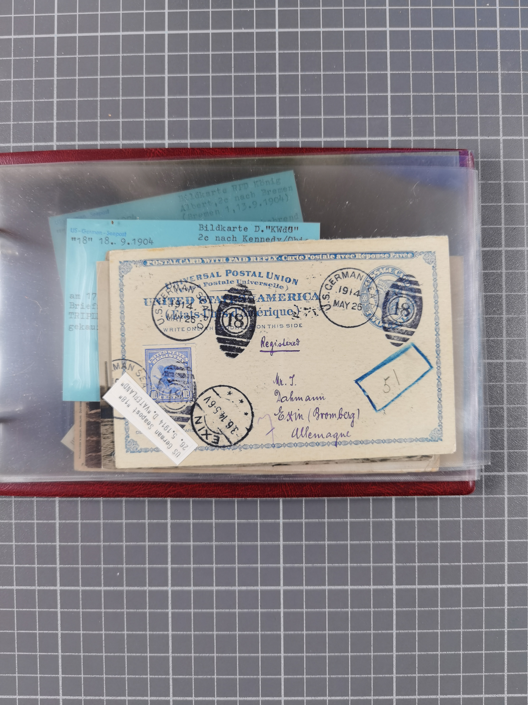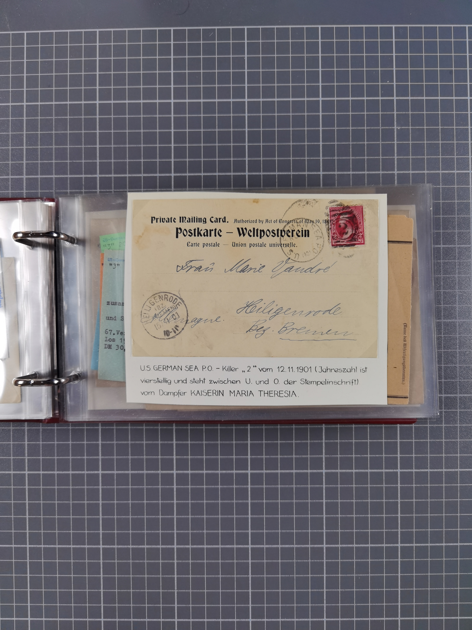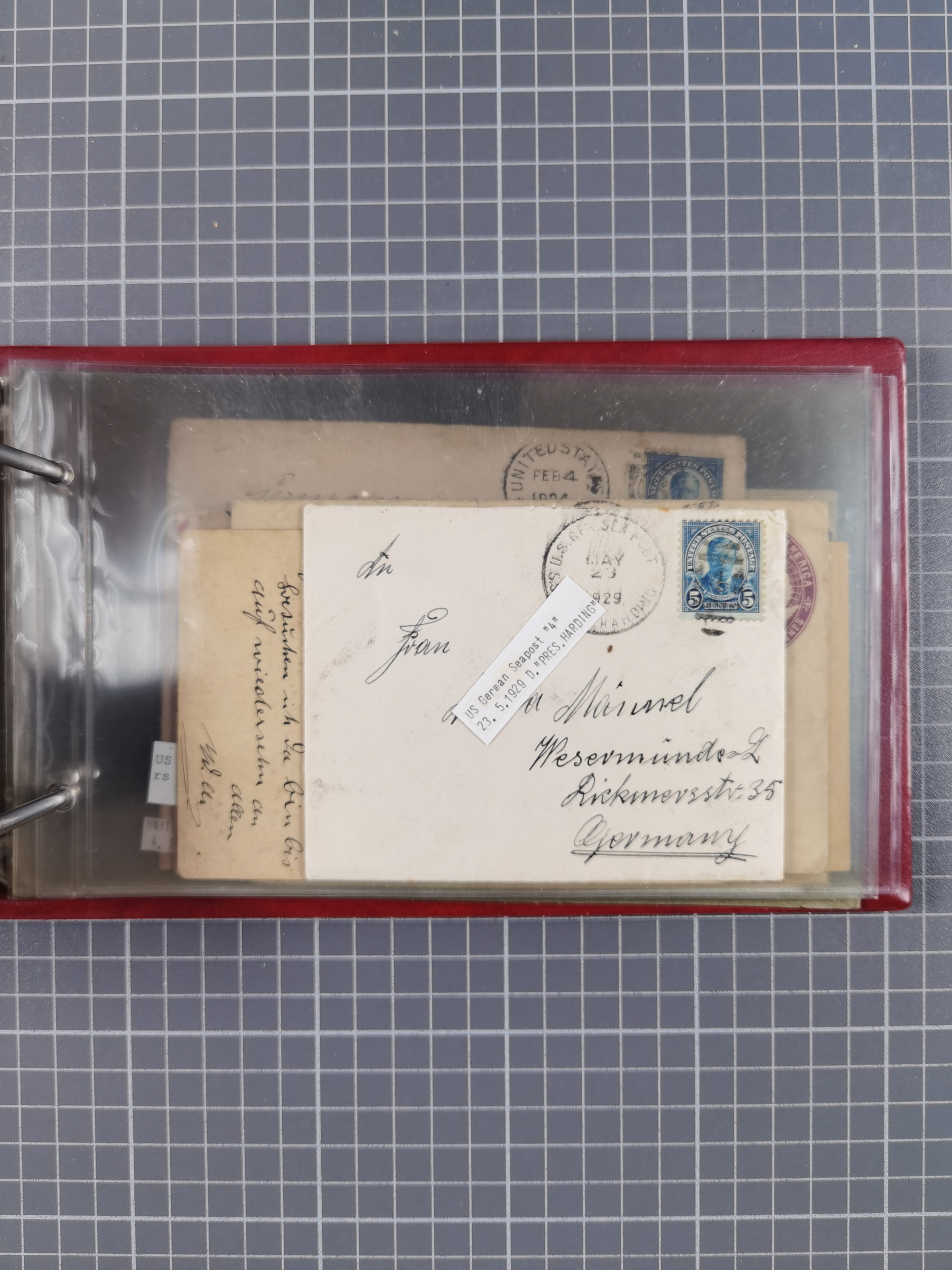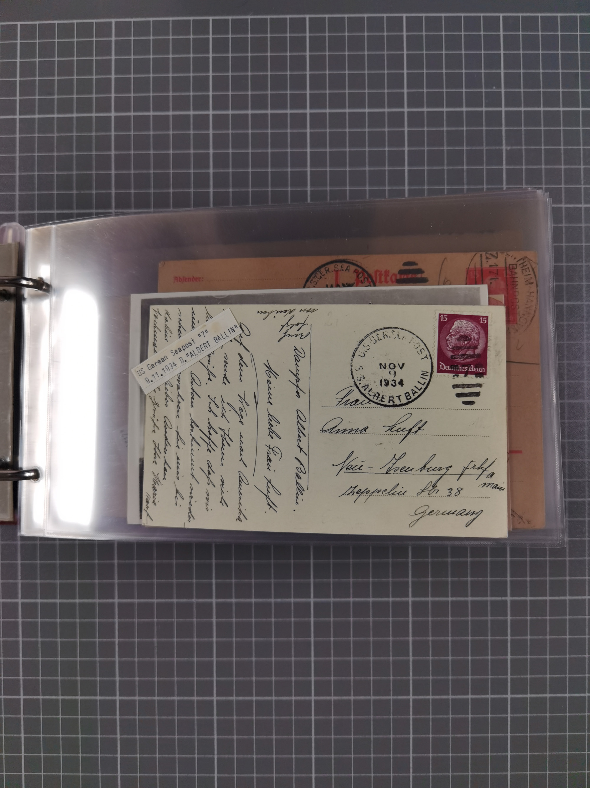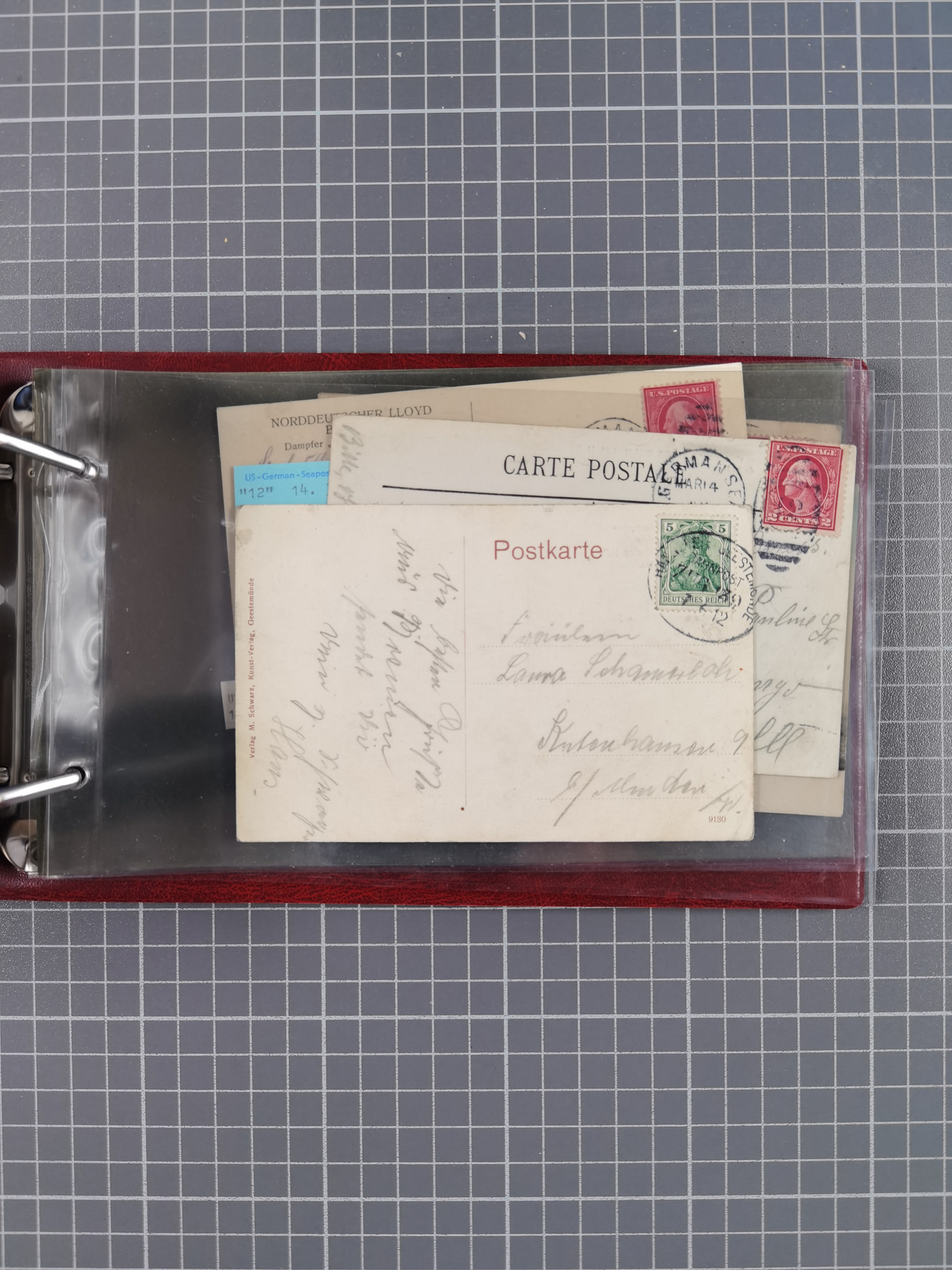 1892/1939, umfangreiche Sammlung “U.S. GERMAN SEA POST” mit ca. 400 Briefen, Karten und Ganzsachen, Schwerpunkt vor 1920 mit den Dublex-Stempeln mit Nr. 1-16, dabei verschiedene Verwendungen mit besseren (u.a. auf Briefen/Karten vom D. Reich), 1 R-GSU und weiteren Besonderheiten. Dazu noch einige Schiffs-Ansichtskarten, bei vielen Belegen mit Vermerken zu den Schiffen usw. und meist in guter Erhaltung. Eine in diesem Umfang seltene Sammlung in sechs Alben, ex Steinmeyer