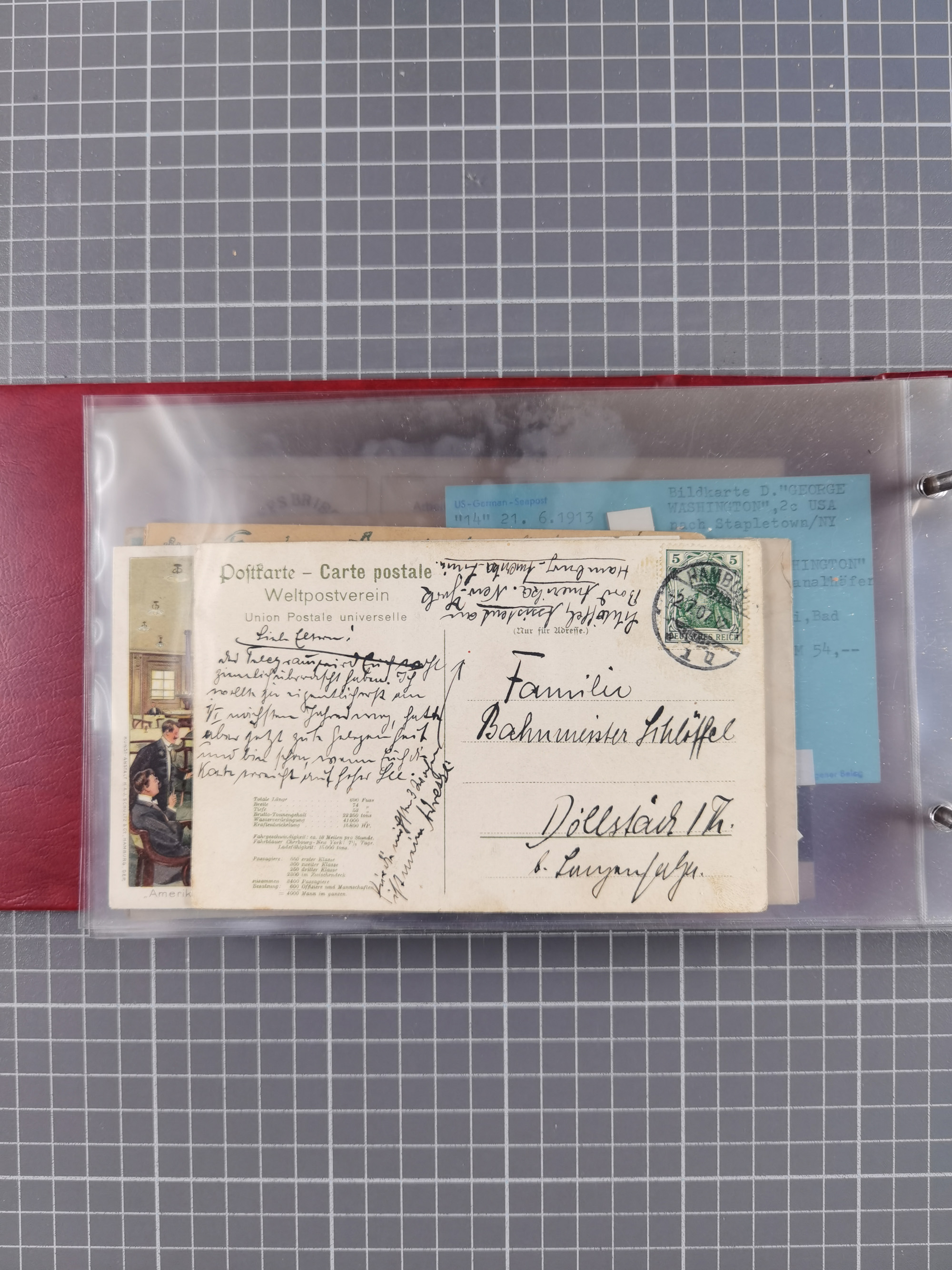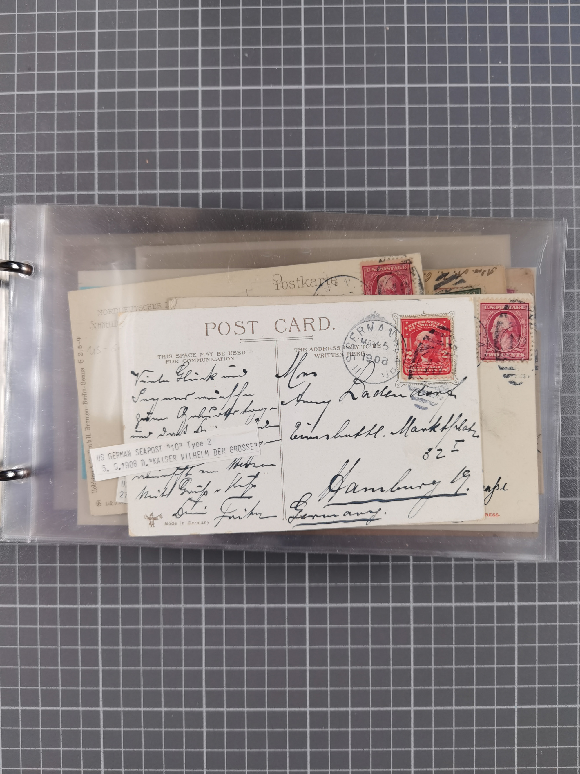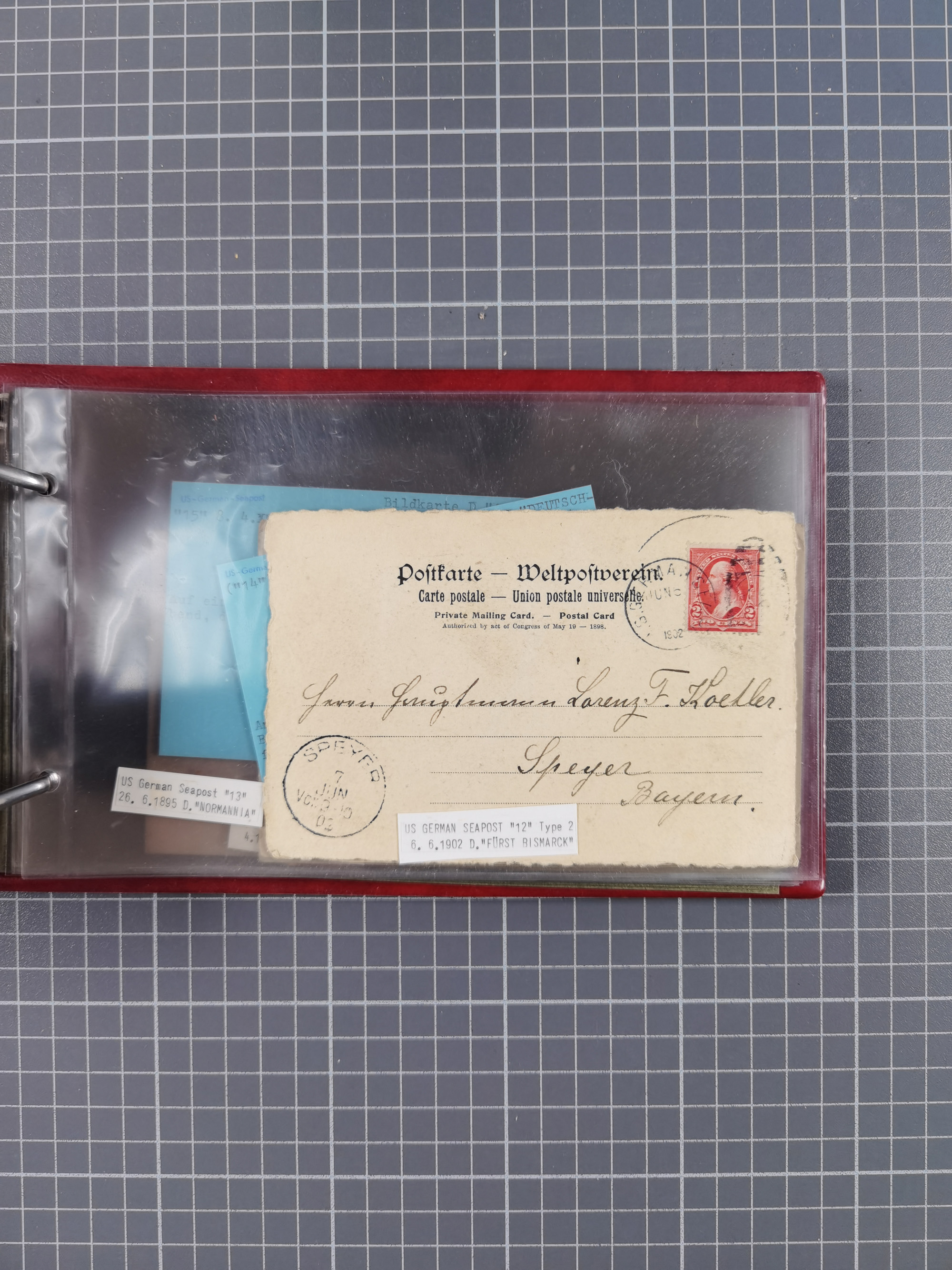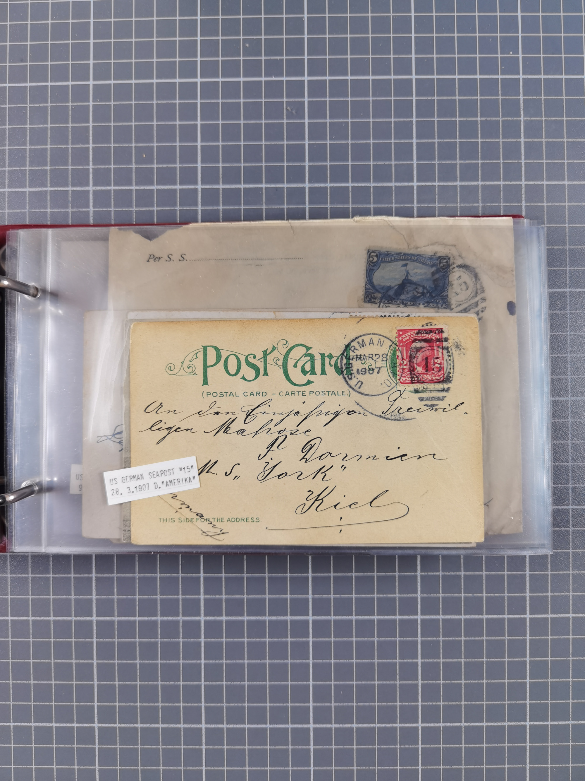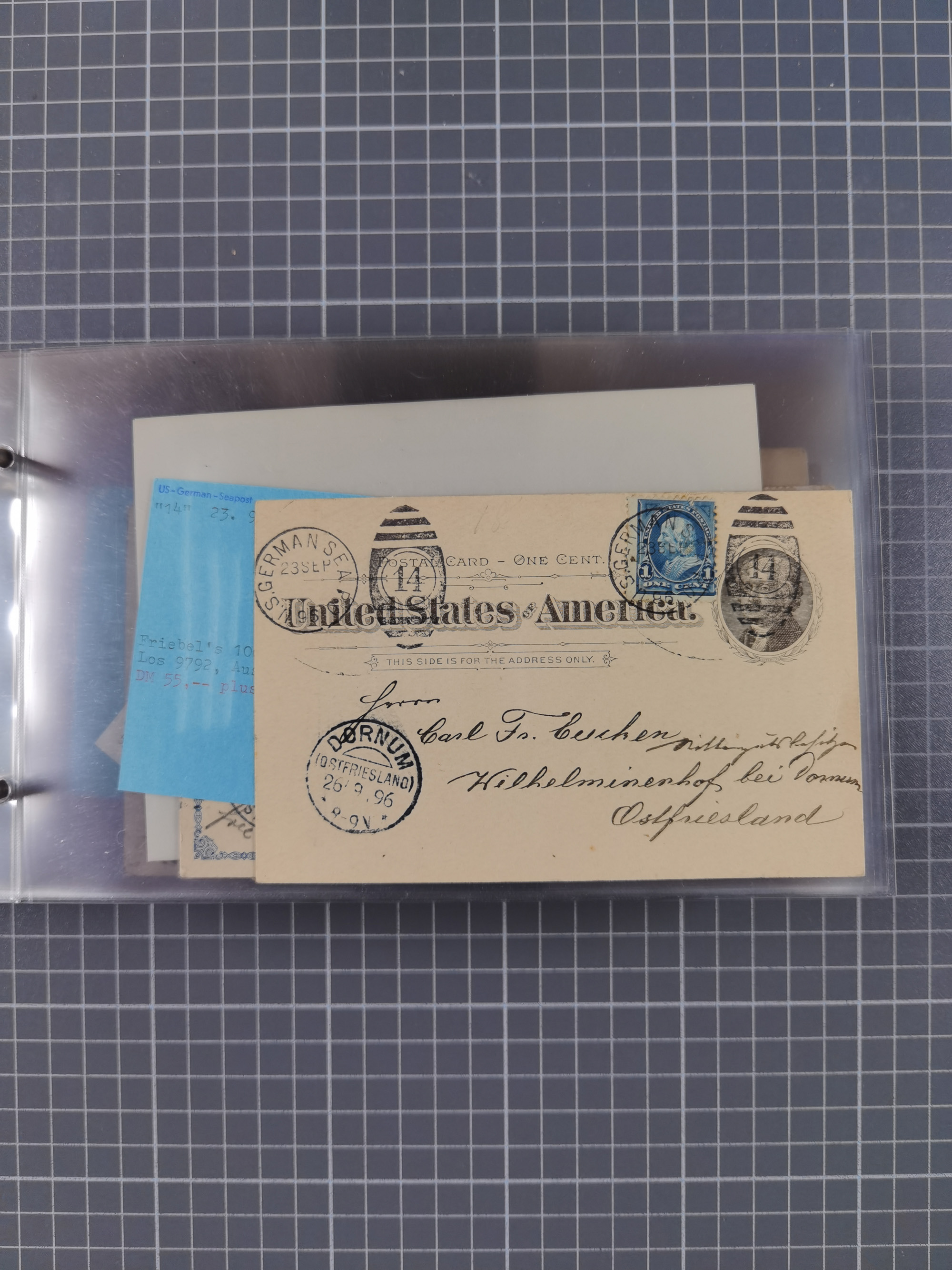 1892/1939, umfangreiche Sammlung “U.S. GERMAN SEA POST” mit ca. 400 Briefen, Karten und Ganzsachen, Schwerpunkt vor 1920 mit den Dublex-Stempeln mit Nr. 1-16, dabei verschiedene Verwendungen mit besseren (u.a. auf Briefen/Karten vom D. Reich), 1 R-GSU und weiteren Besonderheiten. Dazu noch einige Schiffs-Ansichtskarten, bei vielen Belegen mit Vermerken zu den Schiffen usw. und meist in guter Erhaltung. Eine in diesem Umfang seltene Sammlung in sechs Alben, ex Steinmeyer