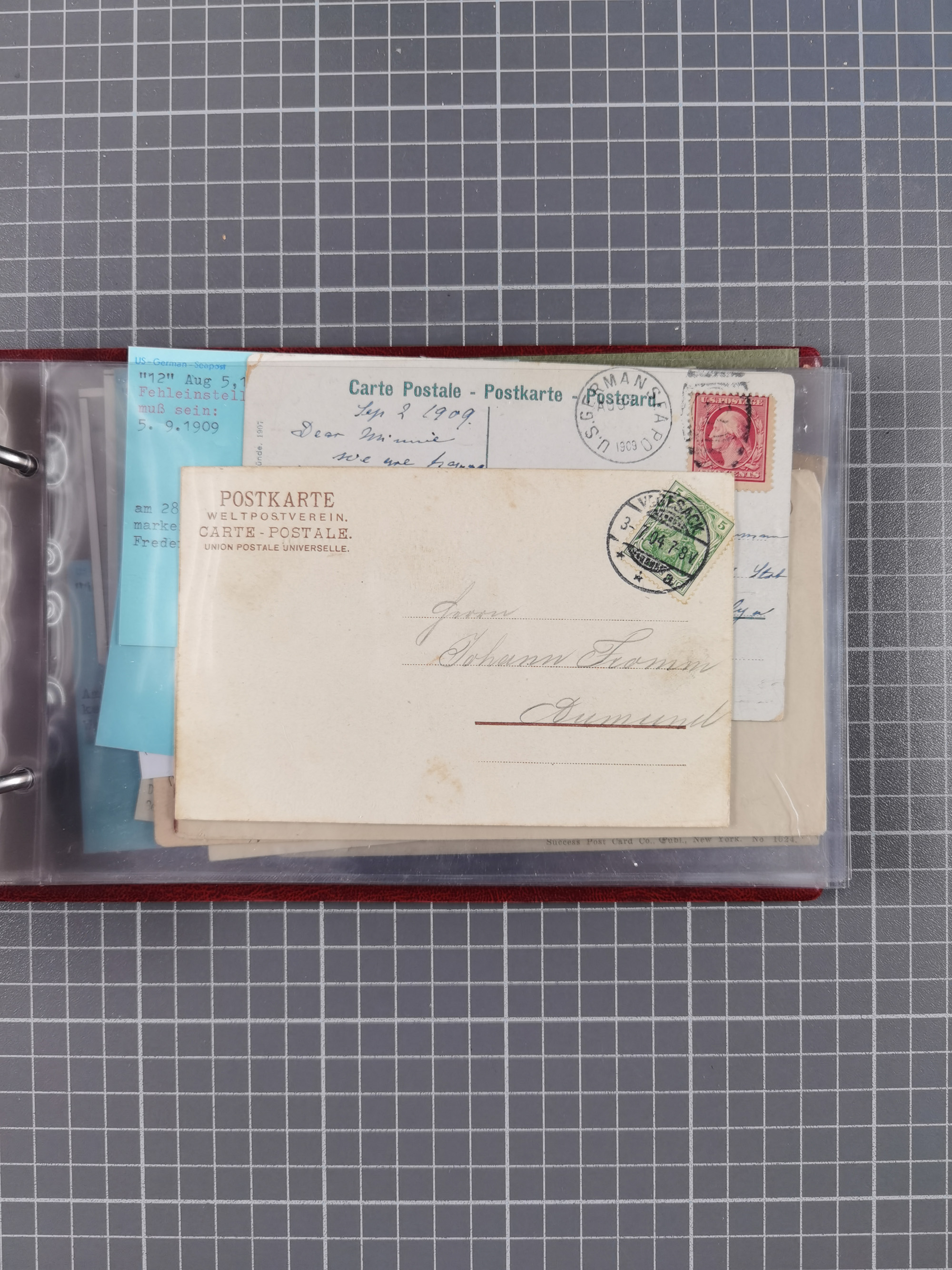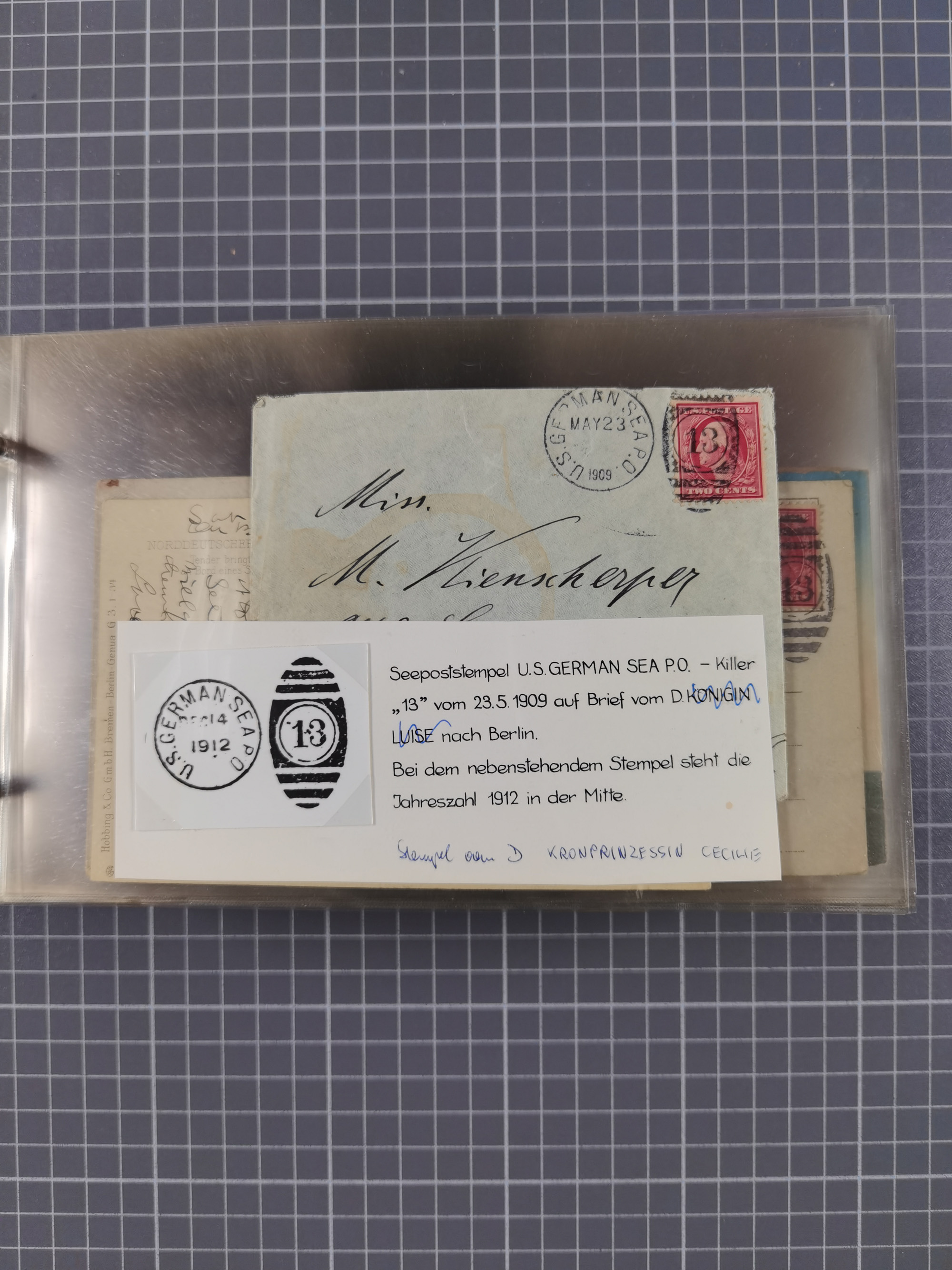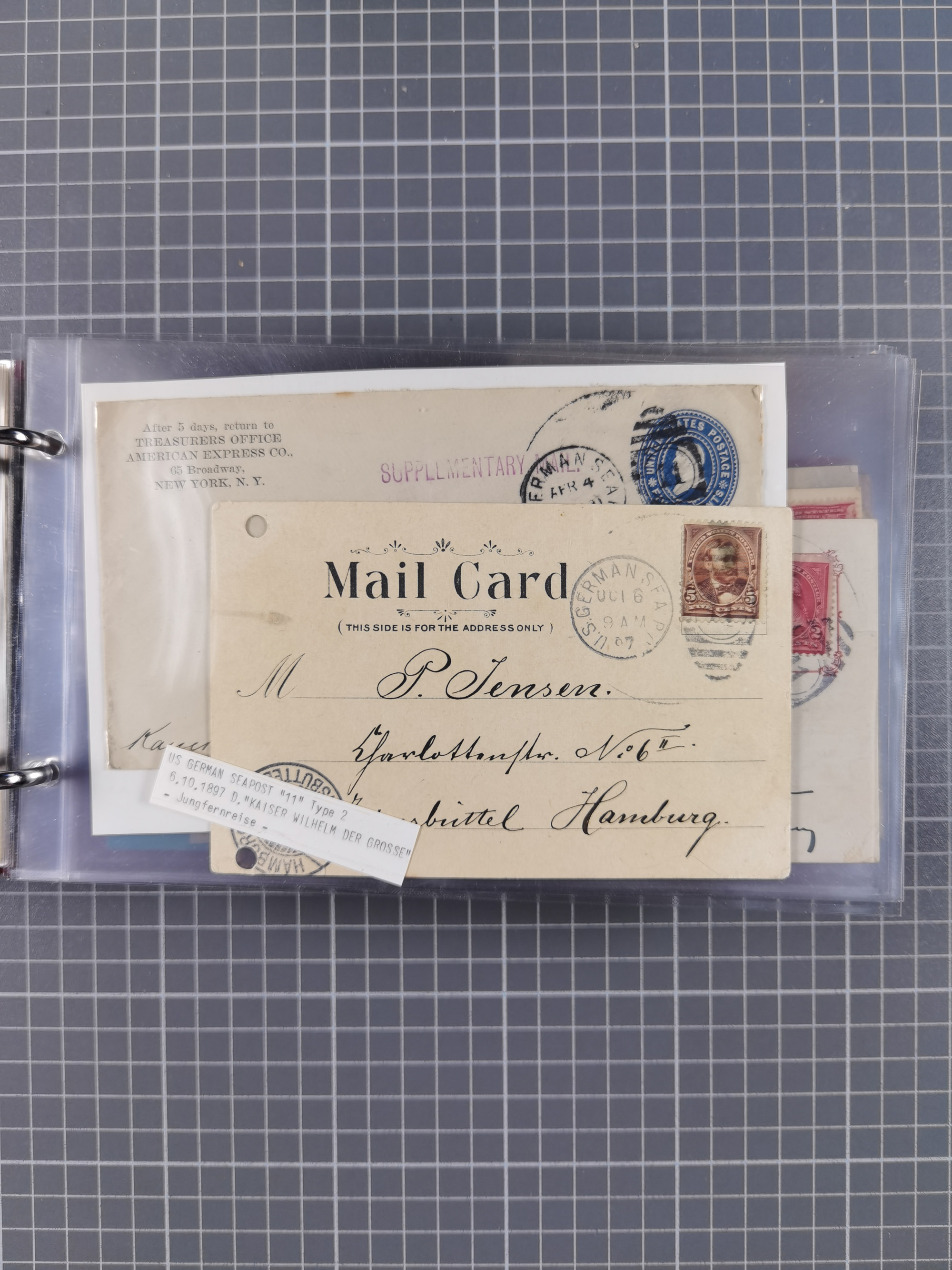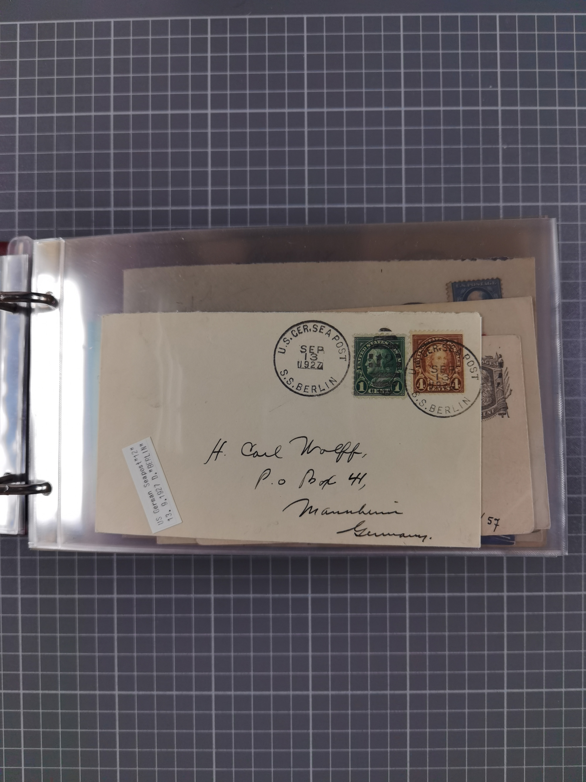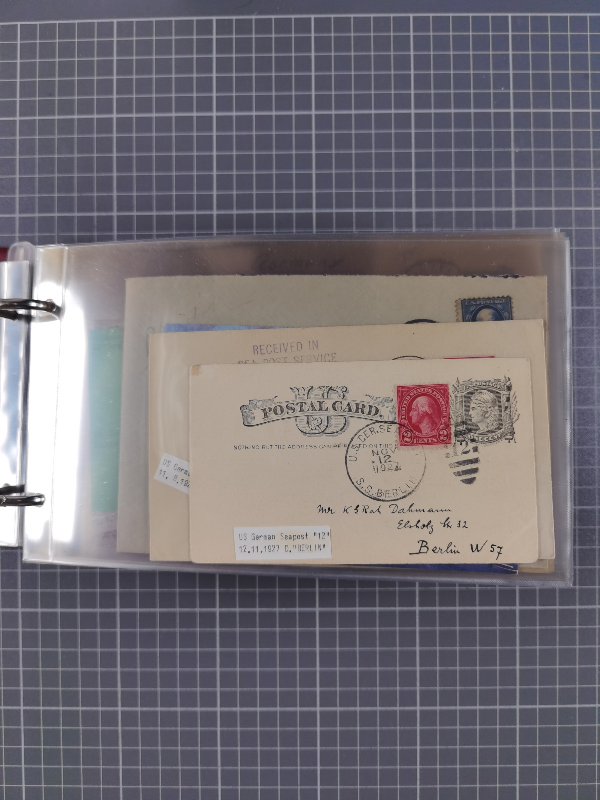 1892/1939, umfangreiche Sammlung “U.S. GERMAN SEA POST” mit ca. 400 Briefen, Karten und Ganzsachen, Schwerpunkt vor 1920 mit den Dublex-Stempeln mit Nr. 1-16, dabei verschiedene Verwendungen mit besseren (u.a. auf Briefen/Karten vom D. Reich), 1 R-GSU und weiteren Besonderheiten. Dazu noch einige Schiffs-Ansichtskarten, bei vielen Belegen mit Vermerken zu den Schiffen usw. und meist in guter Erhaltung. Eine in diesem Umfang seltene Sammlung in sechs Alben, ex Steinmeyer