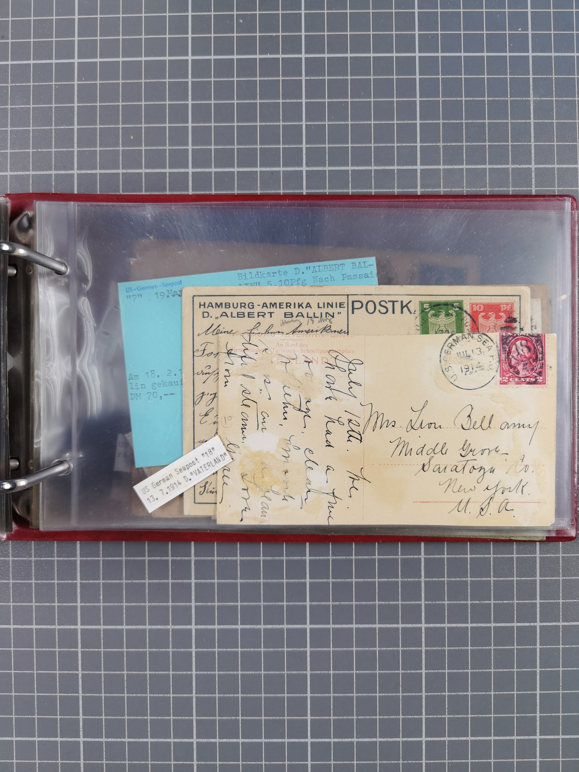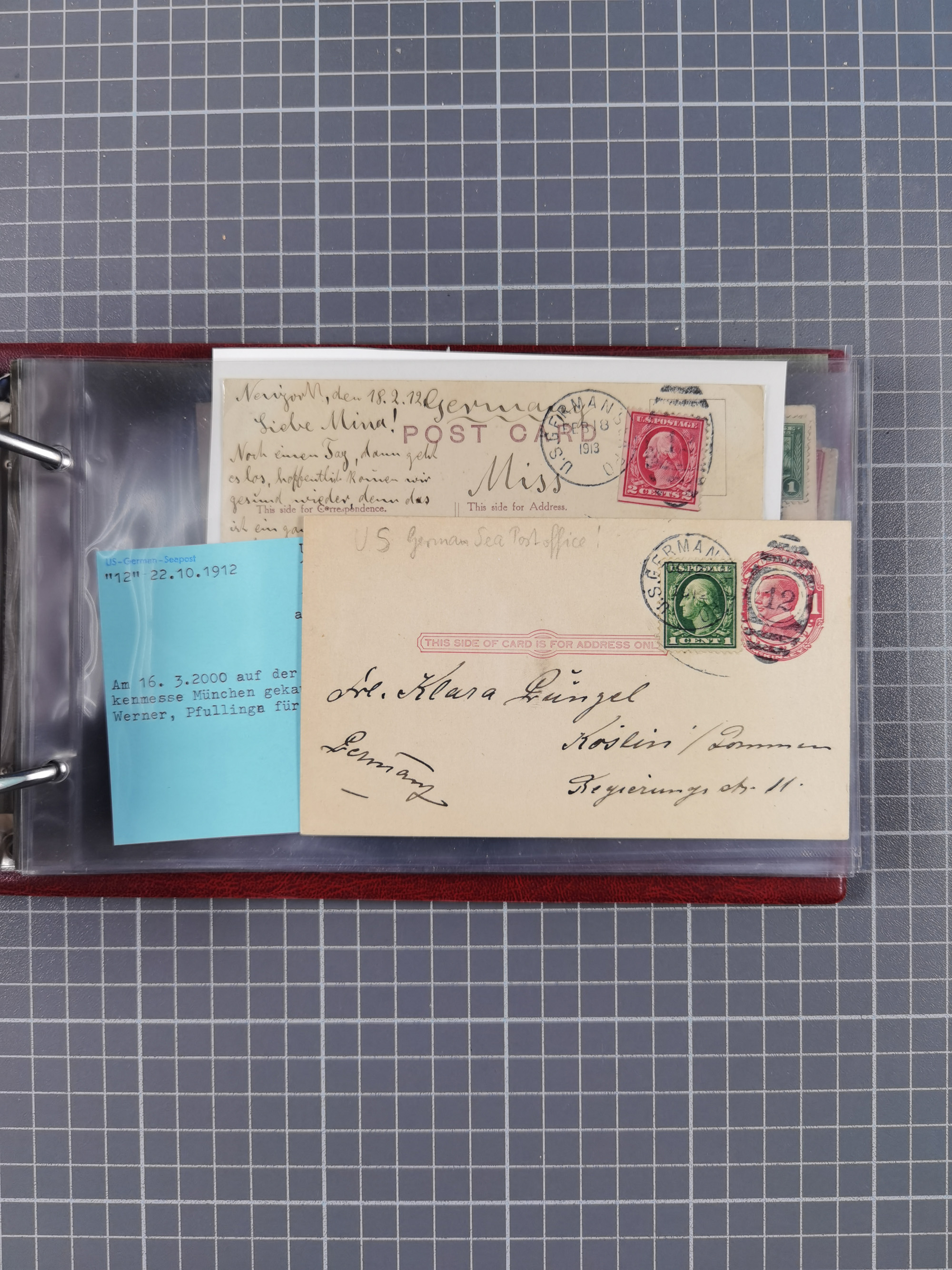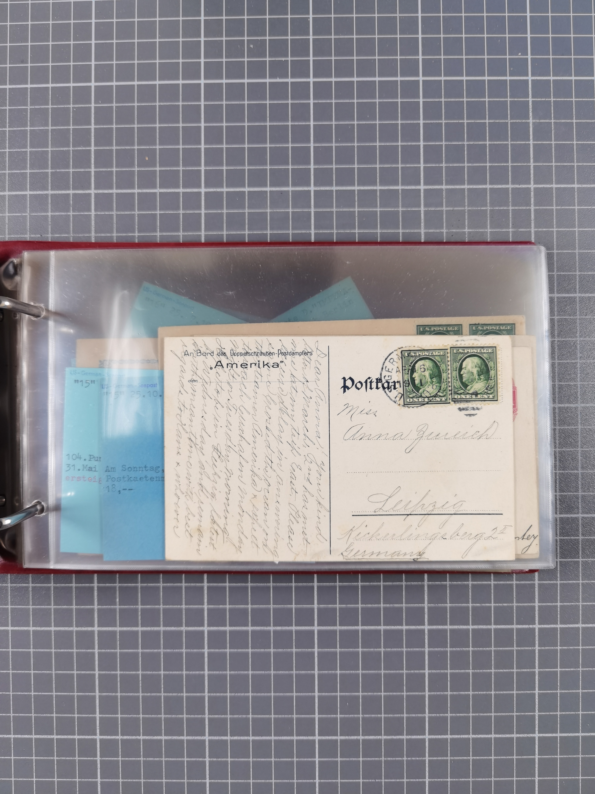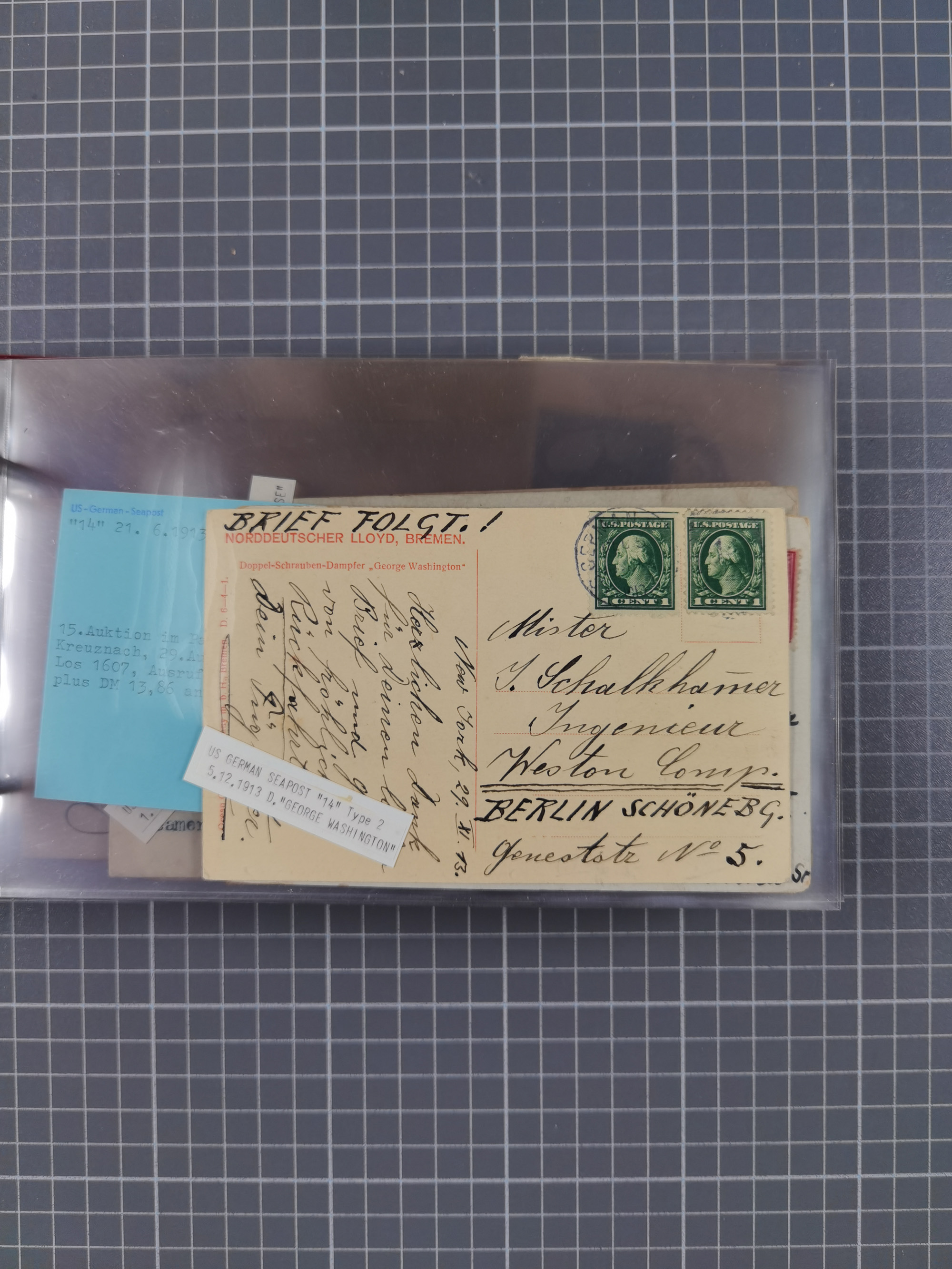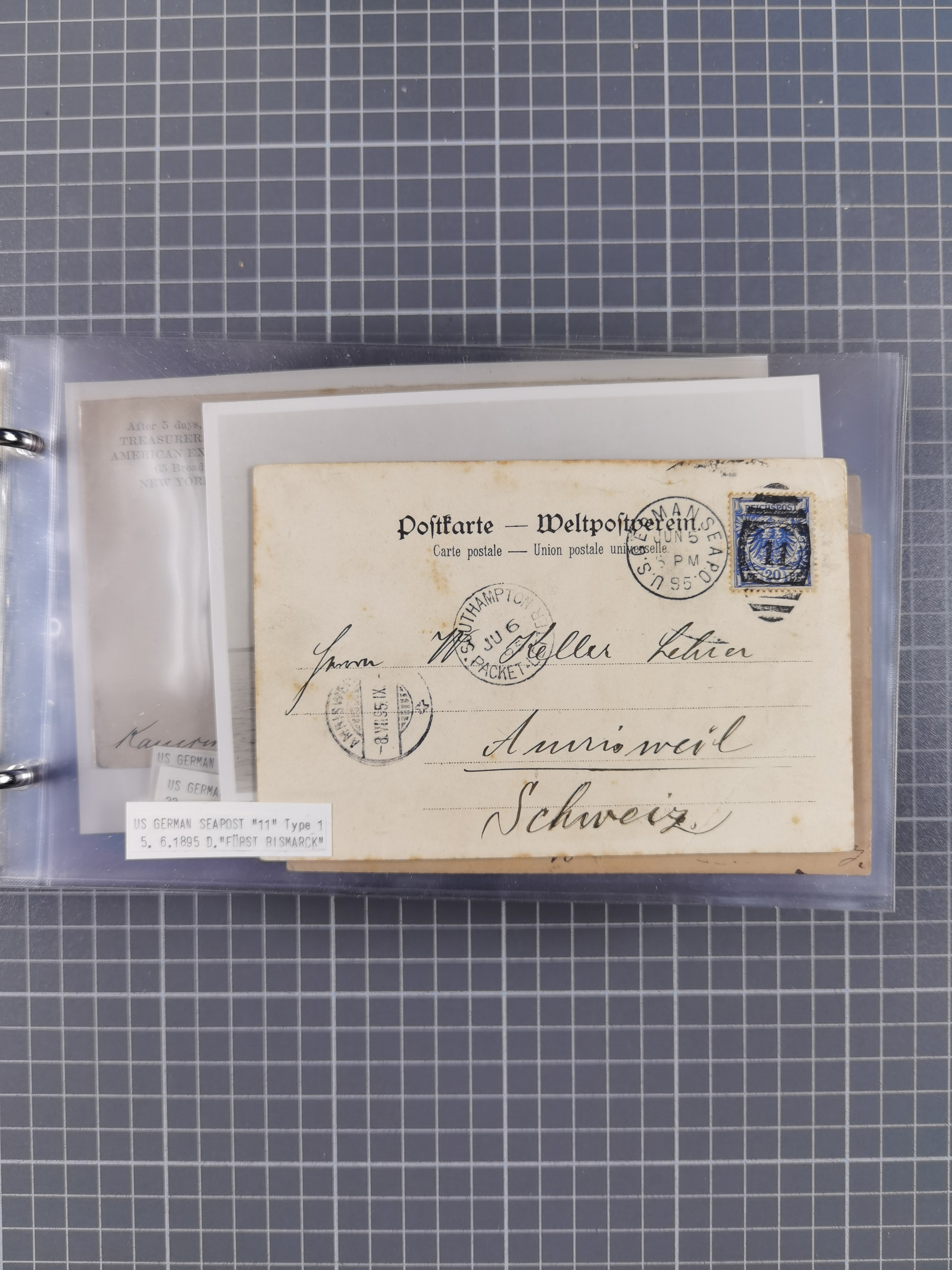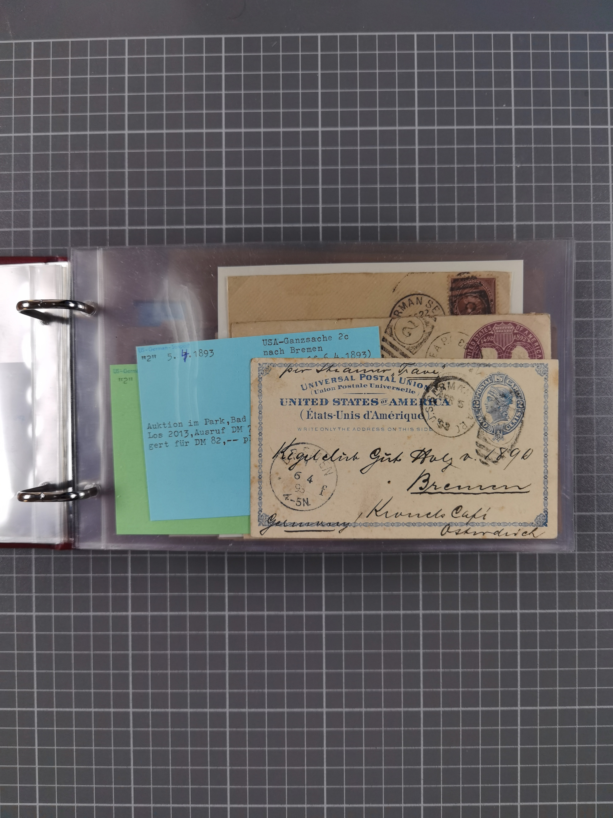 1892/1939, umfangreiche Sammlung “U.S. GERMAN SEA POST” mit ca. 400 Briefen, Karten und Ganzsachen, Schwerpunkt vor 1920 mit den Dublex-Stempeln mit Nr. 1-16, dabei verschiedene Verwendungen mit besseren (u.a. auf Briefen/Karten vom D. Reich), 1 R-GSU und weiteren Besonderheiten. Dazu noch einige Schiffs-Ansichtskarten, bei vielen Belegen mit Vermerken zu den Schiffen usw. und meist in guter Erhaltung. Eine in diesem Umfang seltene Sammlung in sechs Alben, ex Steinmeyer