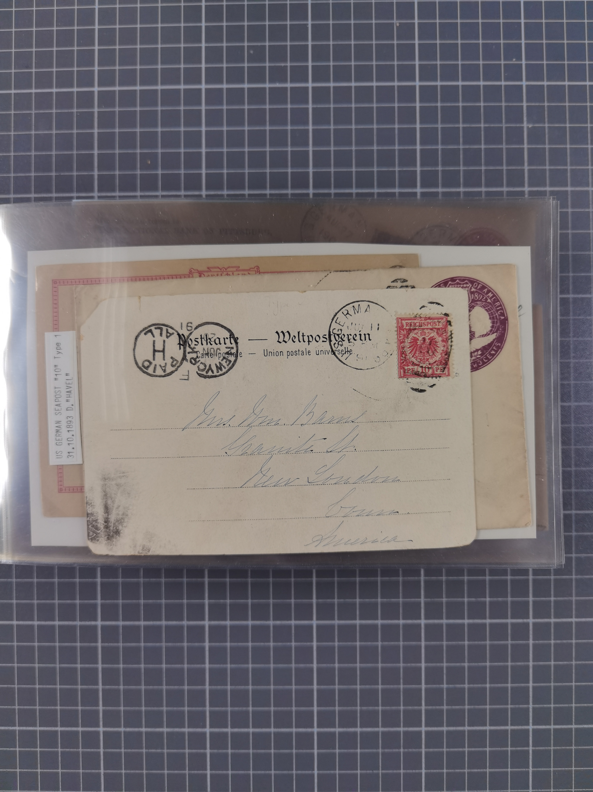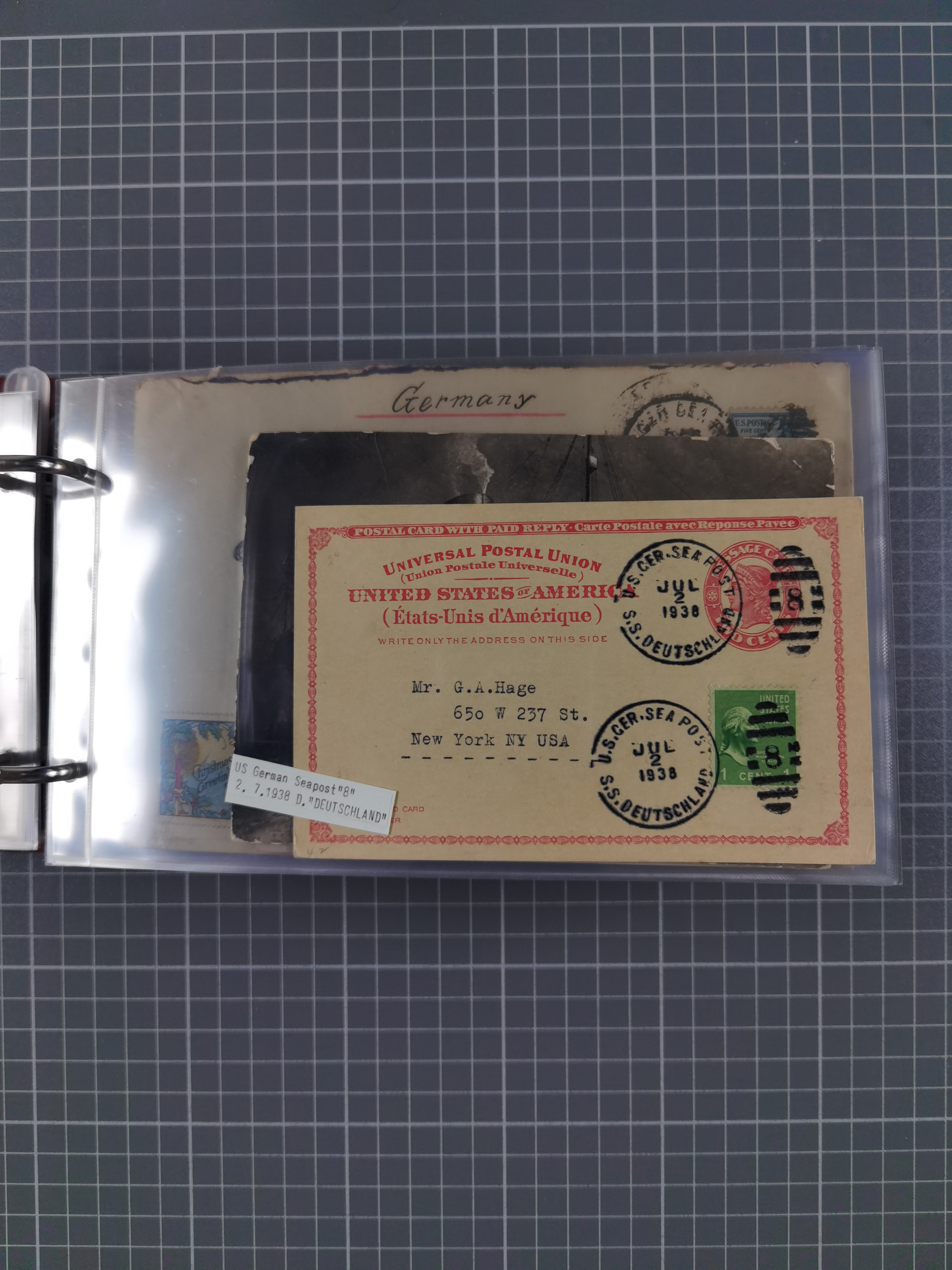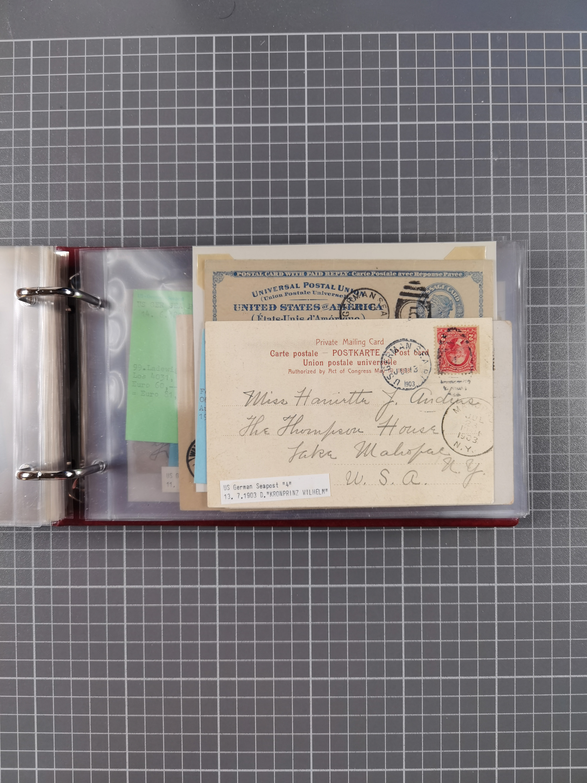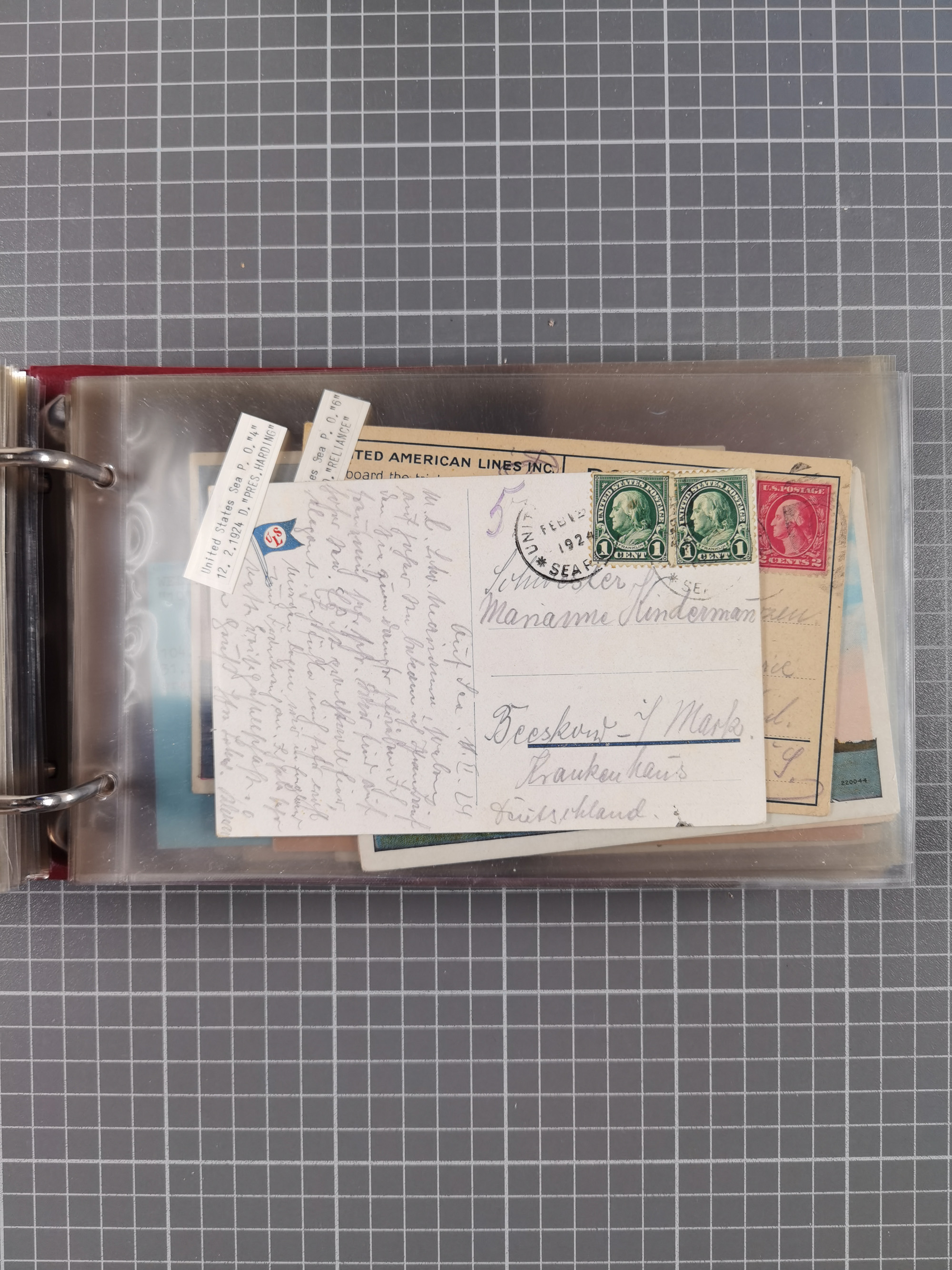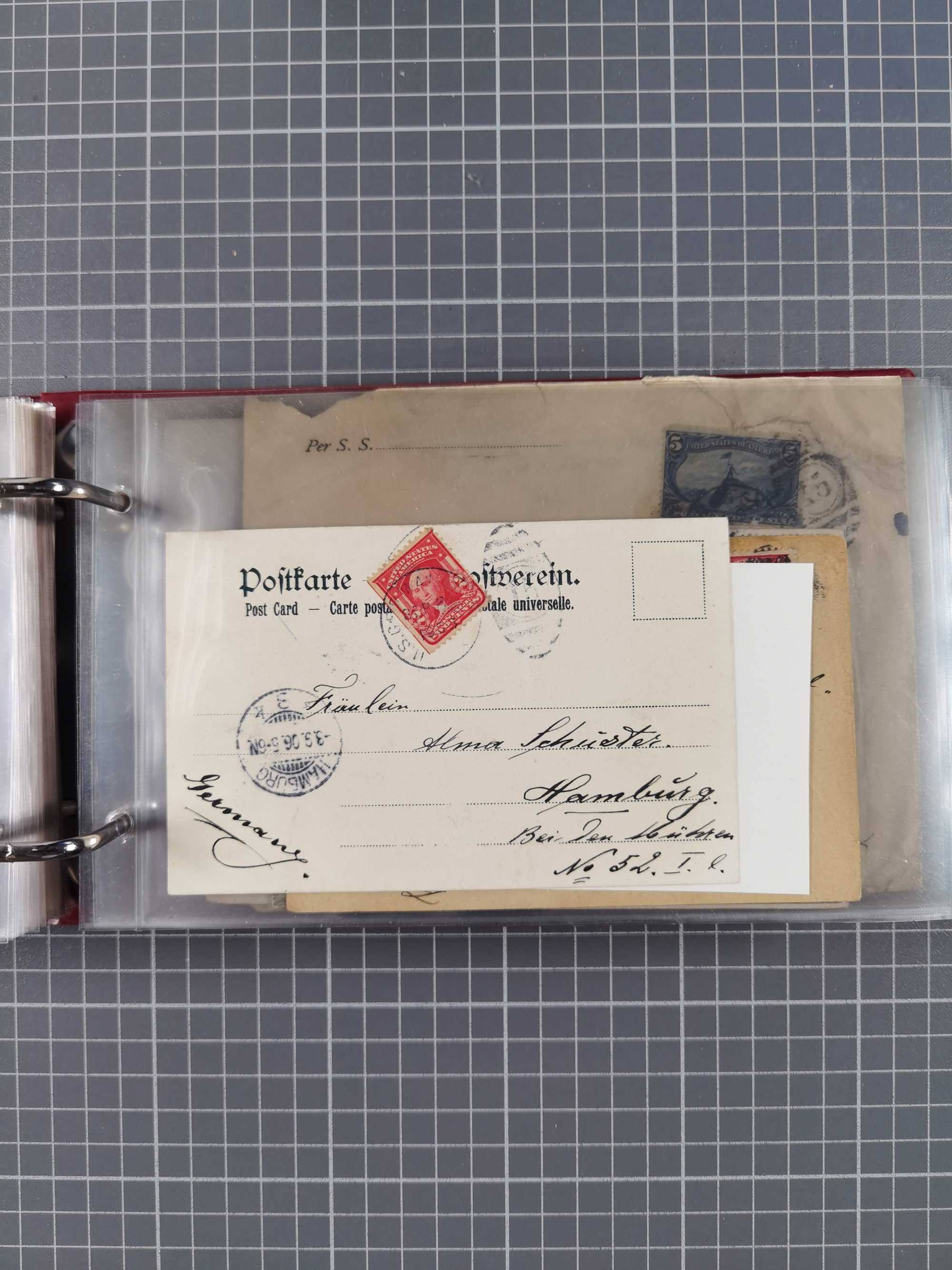 1892/1939, umfangreiche Sammlung “U.S. GERMAN SEA POST” mit ca. 400 Briefen, Karten und Ganzsachen, Schwerpunkt vor 1920 mit den Dublex-Stempeln mit Nr. 1-16, dabei verschiedene Verwendungen mit besseren (u.a. auf Briefen/Karten vom D. Reich), 1 R-GSU und weiteren Besonderheiten. Dazu noch einige Schiffs-Ansichtskarten, bei vielen Belegen mit Vermerken zu den Schiffen usw. und meist in guter Erhaltung. Eine in diesem Umfang seltene Sammlung in sechs Alben, ex Steinmeyer