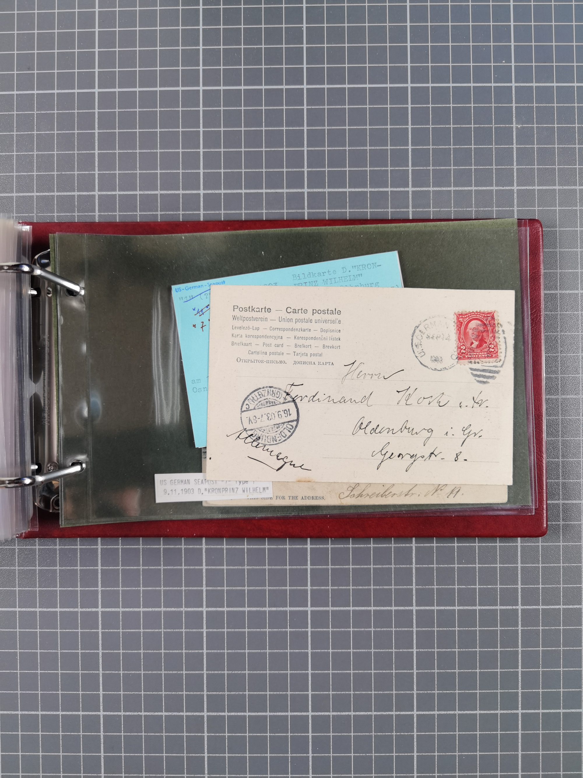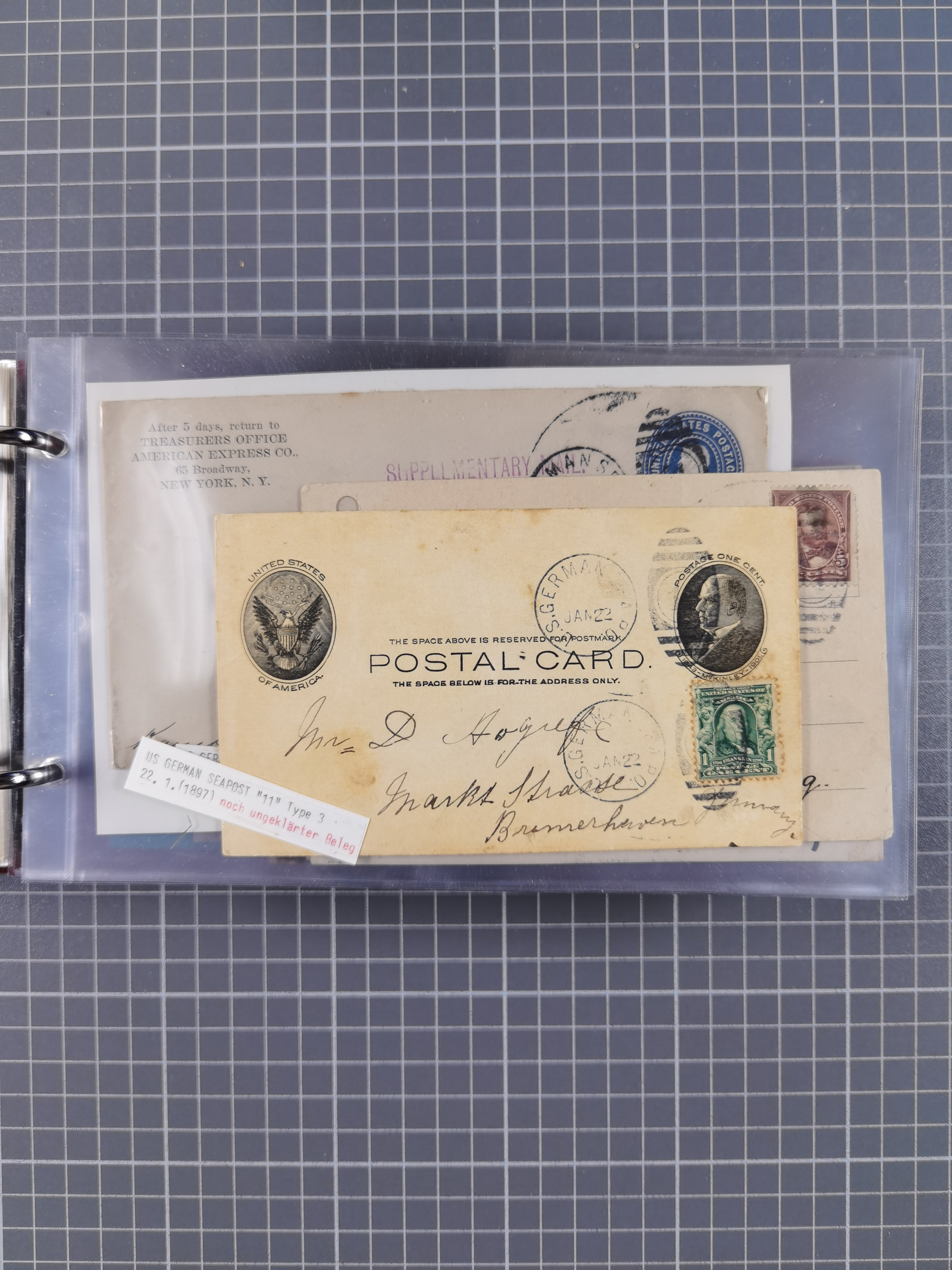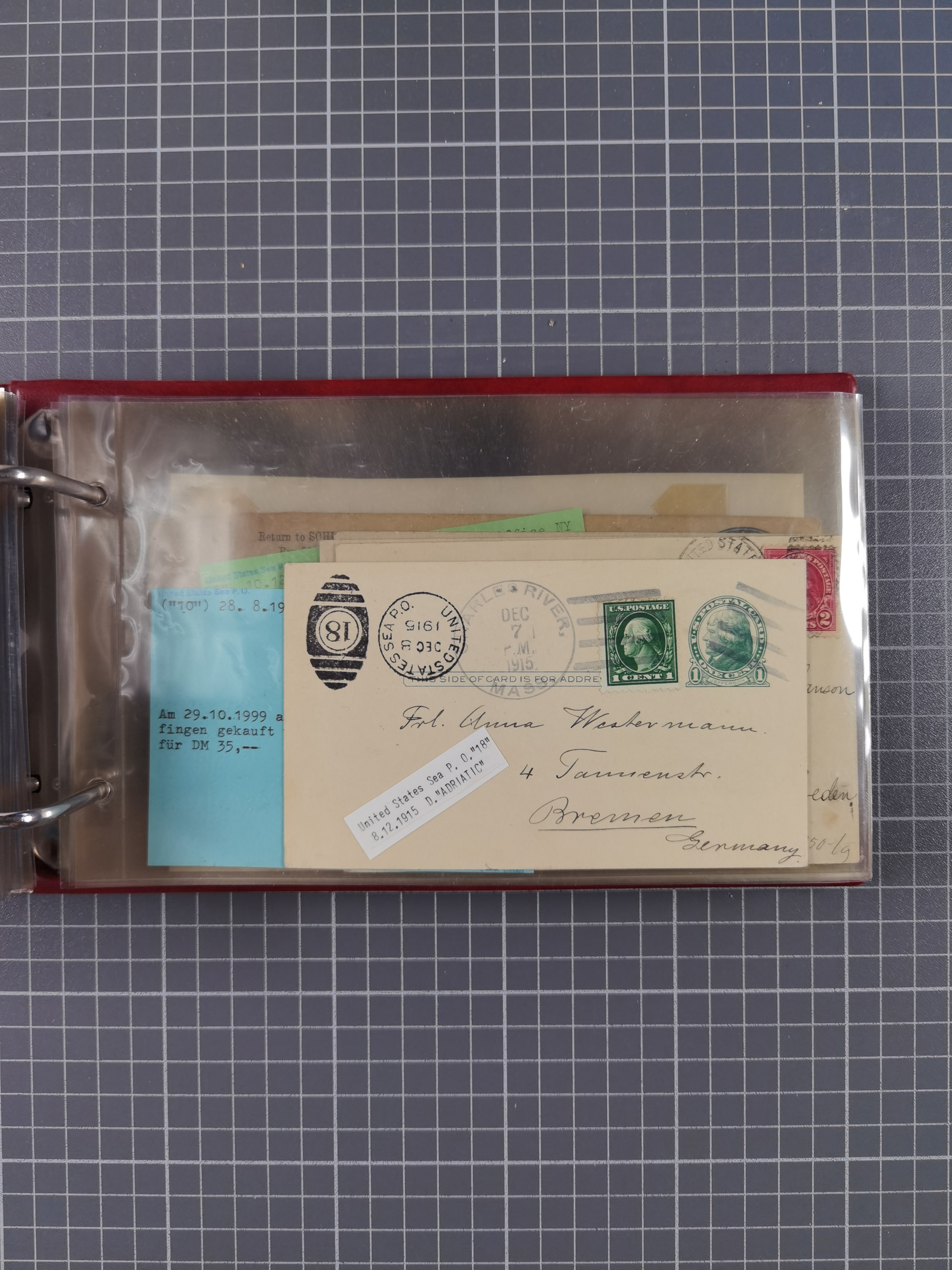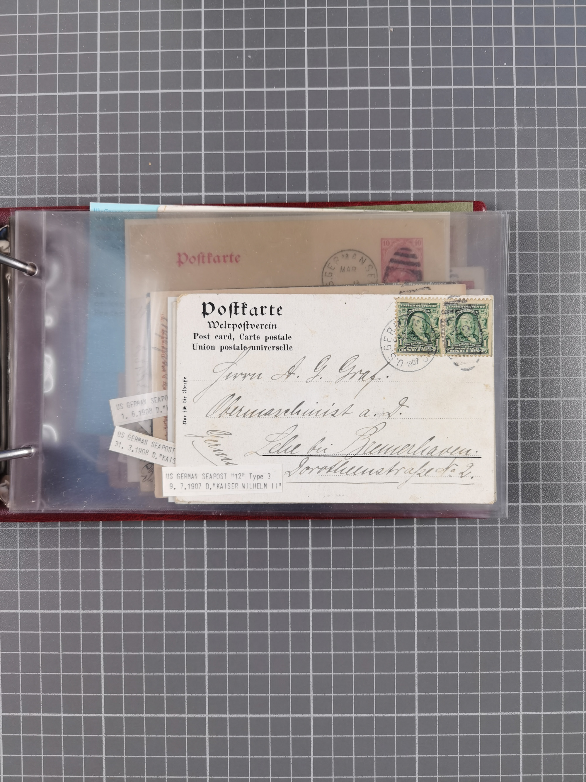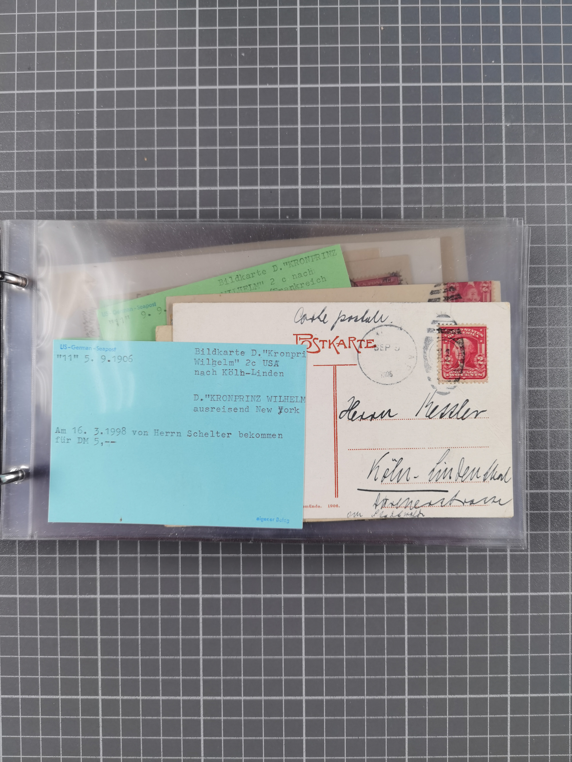 1892/1939, umfangreiche Sammlung “U.S. GERMAN SEA POST” mit ca. 400 Briefen, Karten und Ganzsachen, Schwerpunkt vor 1920 mit den Dublex-Stempeln mit Nr. 1-16, dabei verschiedene Verwendungen mit besseren (u.a. auf Briefen/Karten vom D. Reich), 1 R-GSU und weiteren Besonderheiten. Dazu noch einige Schiffs-Ansichtskarten, bei vielen Belegen mit Vermerken zu den Schiffen usw. und meist in guter Erhaltung. Eine in diesem Umfang seltene Sammlung in sechs Alben, ex Steinmeyer