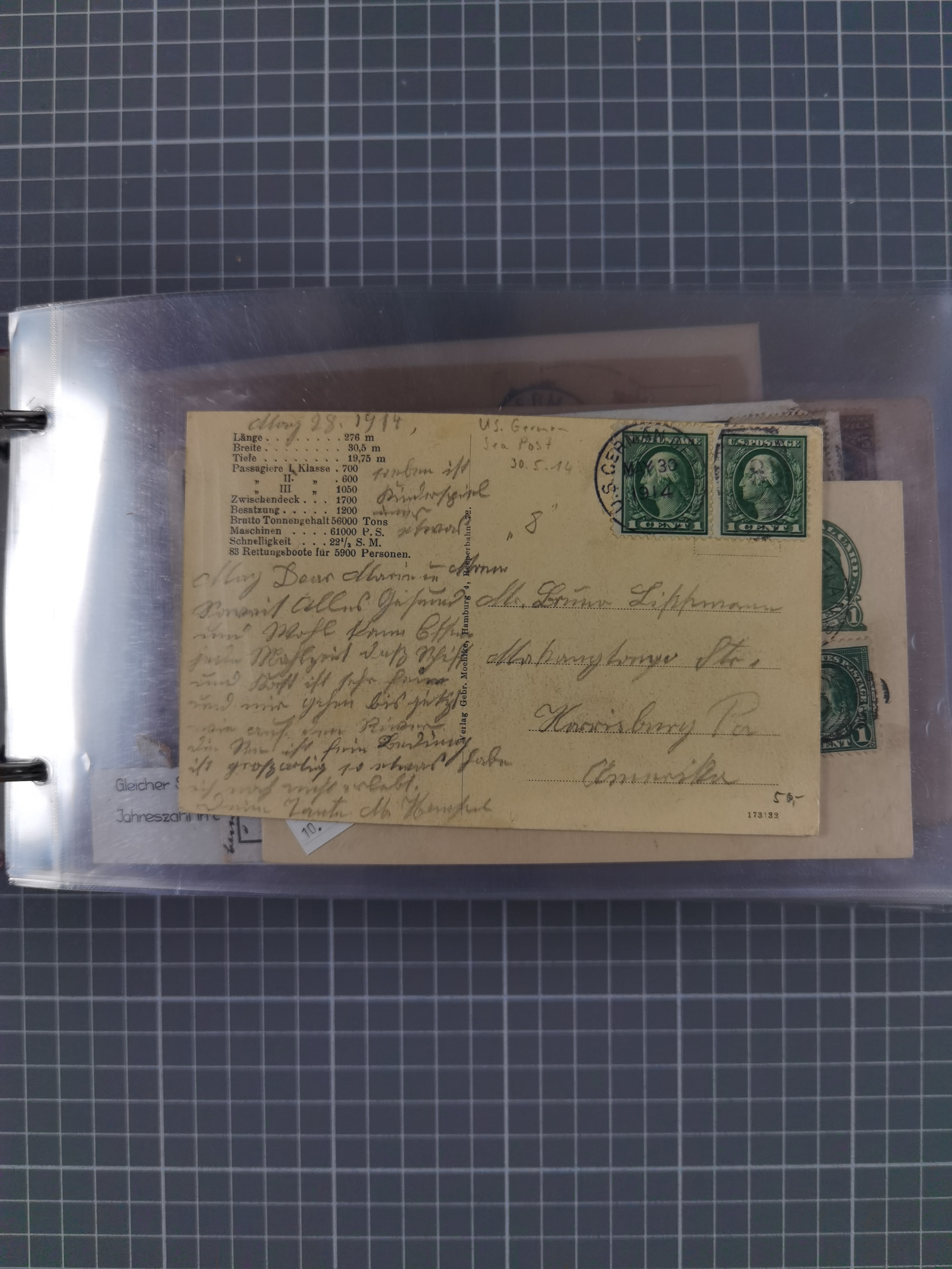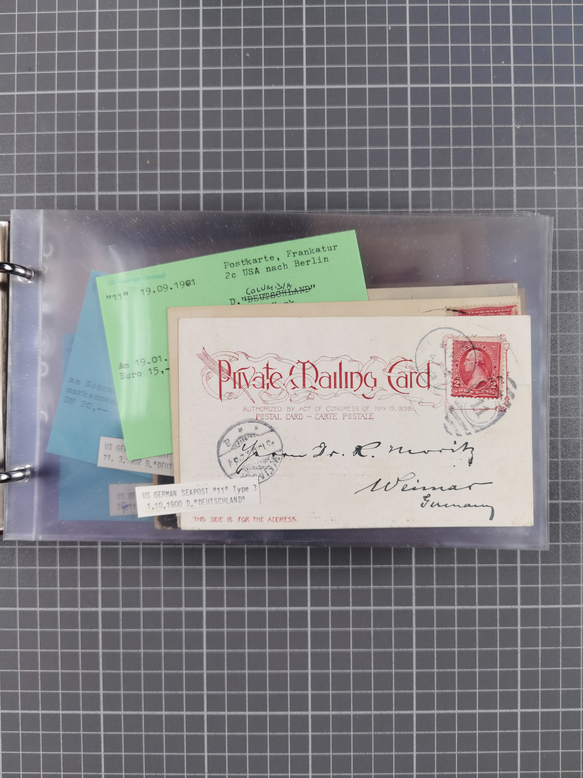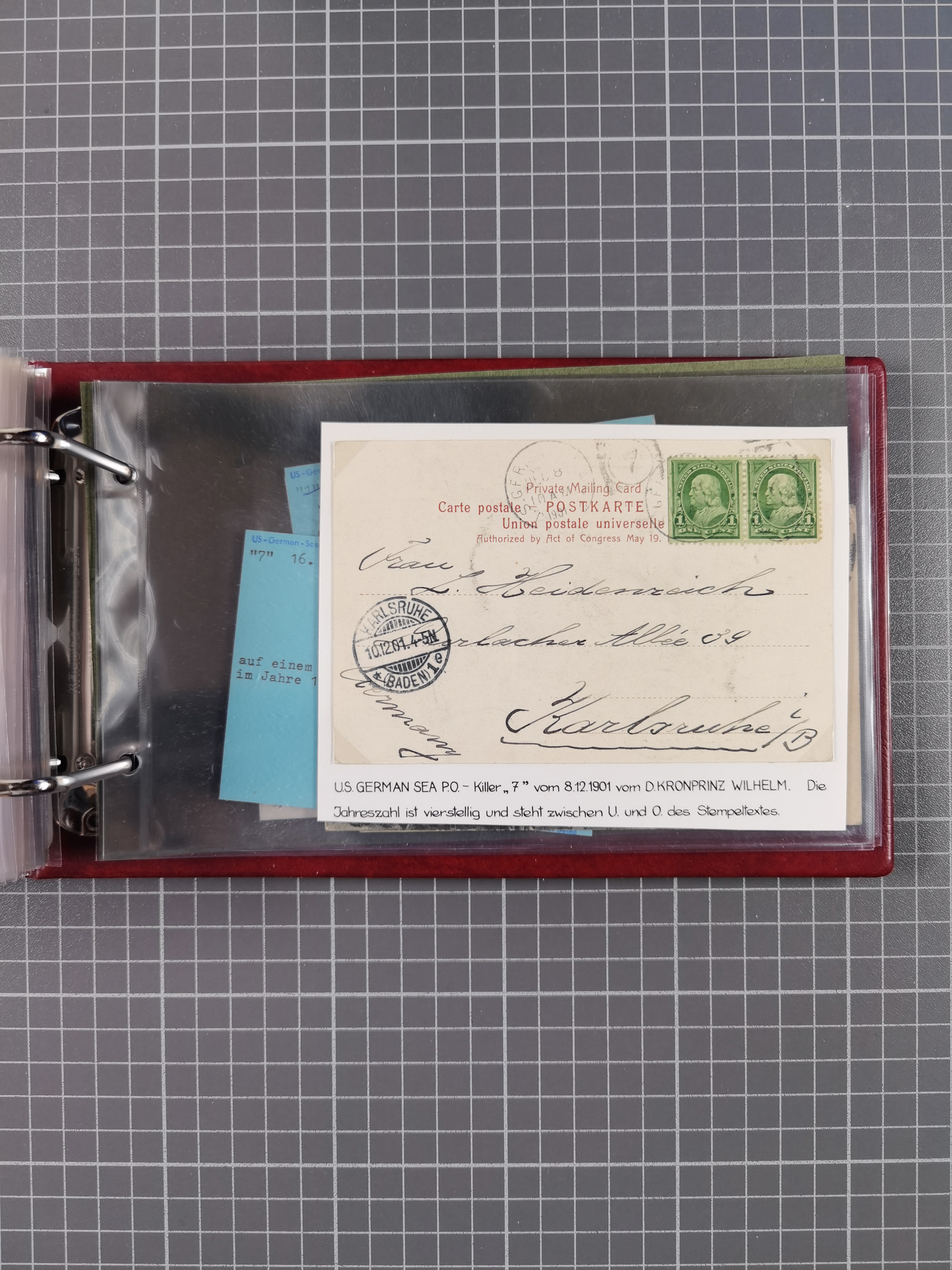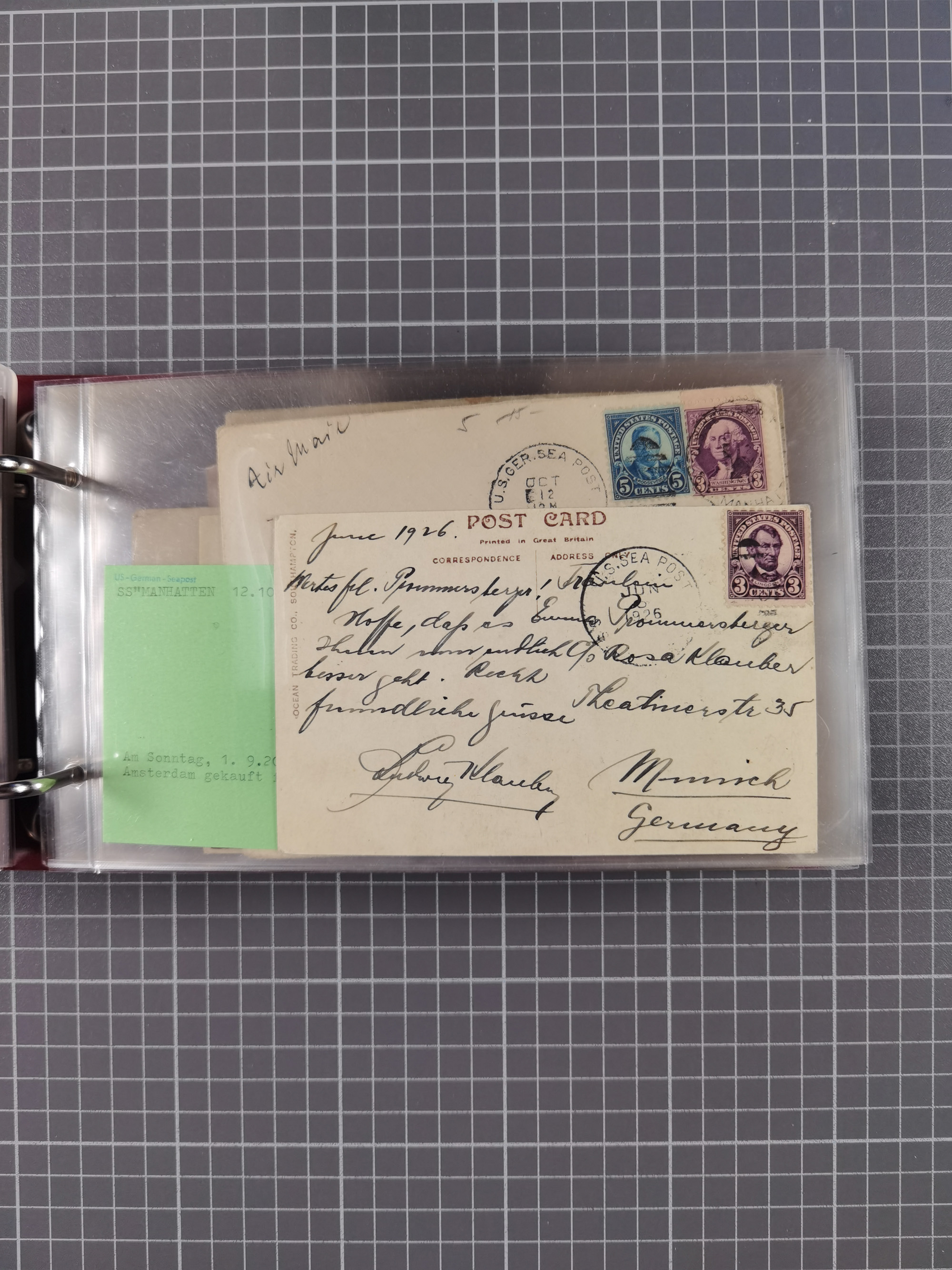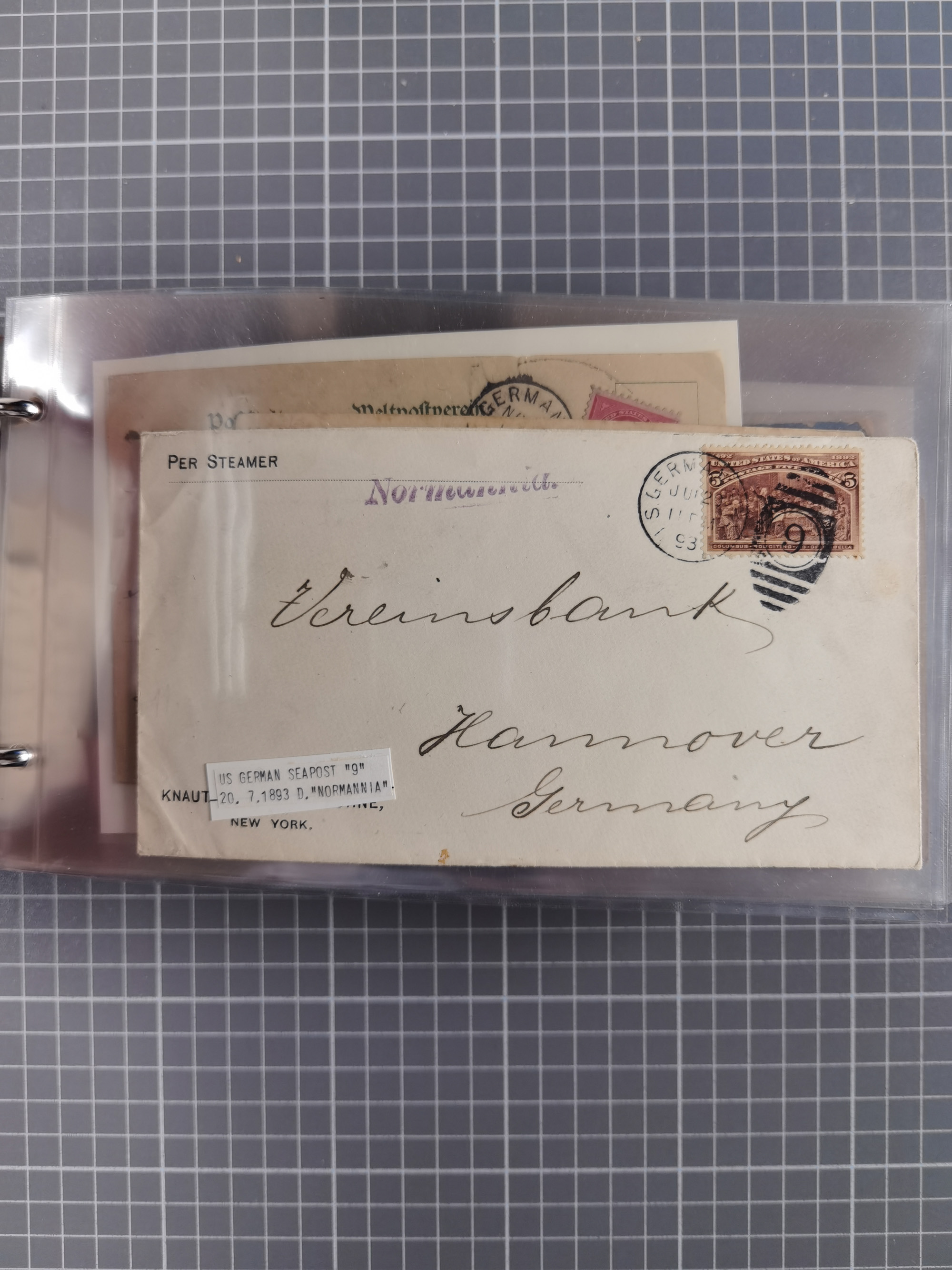 1892/1939, umfangreiche Sammlung “U.S. GERMAN SEA POST” mit ca. 400 Briefen, Karten und Ganzsachen, Schwerpunkt vor 1920 mit den Dublex-Stempeln mit Nr. 1-16, dabei verschiedene Verwendungen mit besseren (u.a. auf Briefen/Karten vom D. Reich), 1 R-GSU und weiteren Besonderheiten. Dazu noch einige Schiffs-Ansichtskarten, bei vielen Belegen mit Vermerken zu den Schiffen usw. und meist in guter Erhaltung. Eine in diesem Umfang seltene Sammlung in sechs Alben, ex Steinmeyer