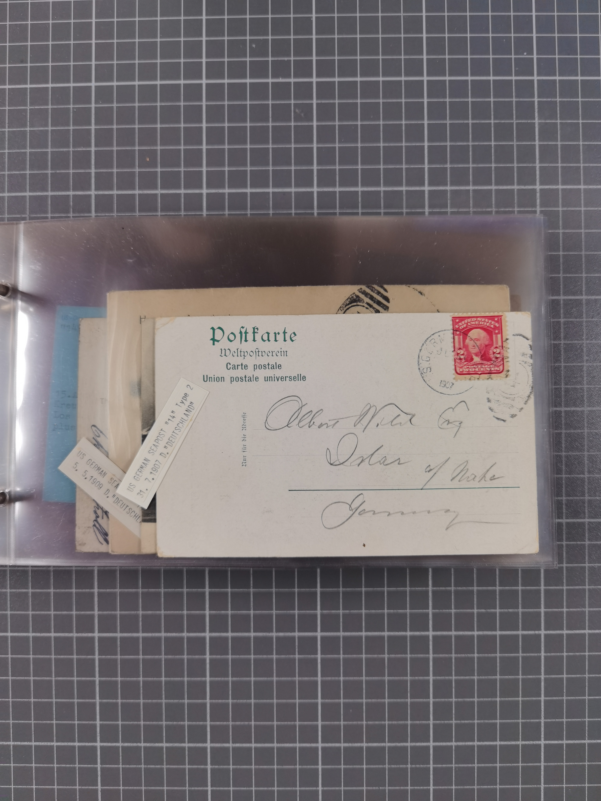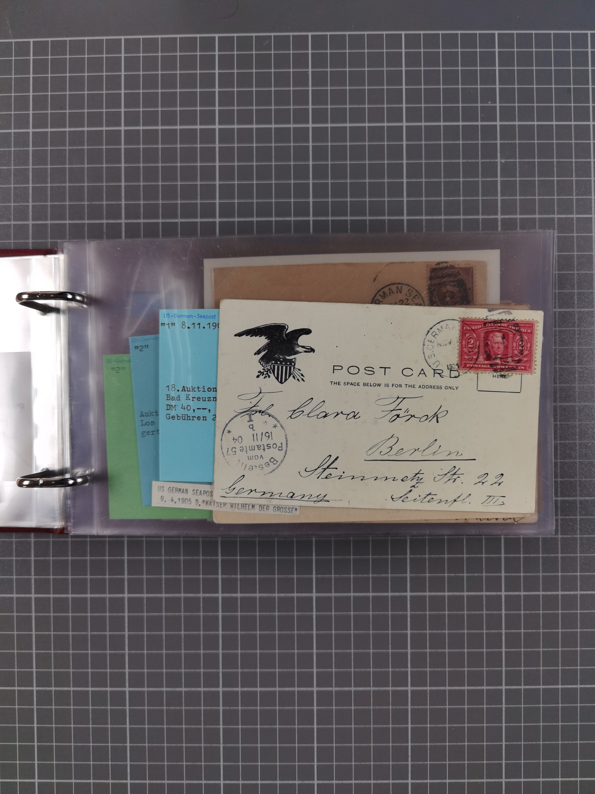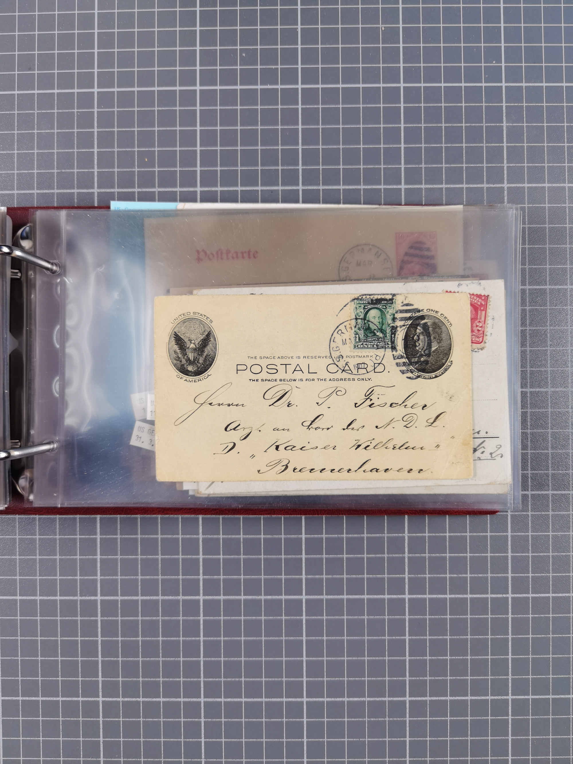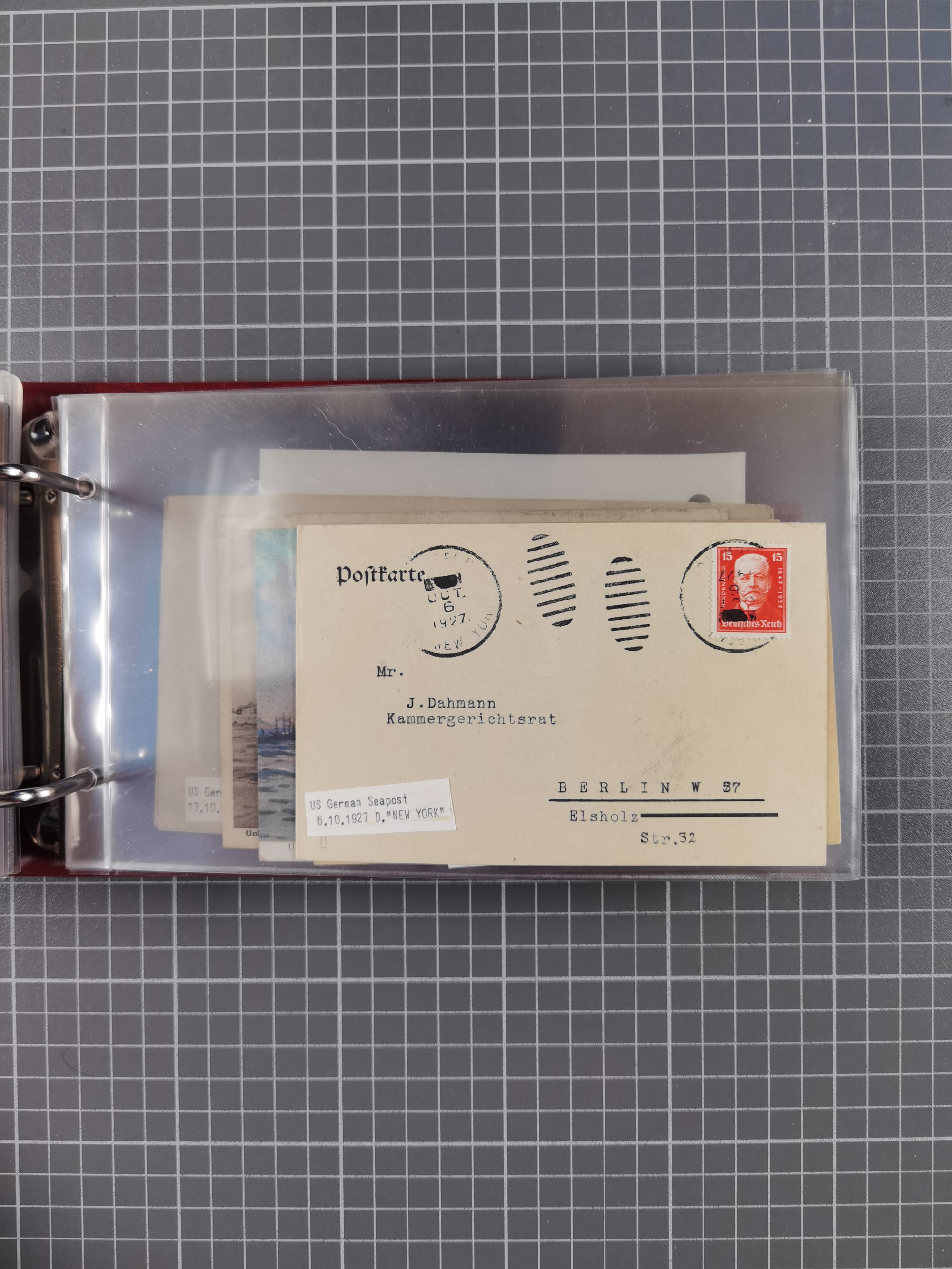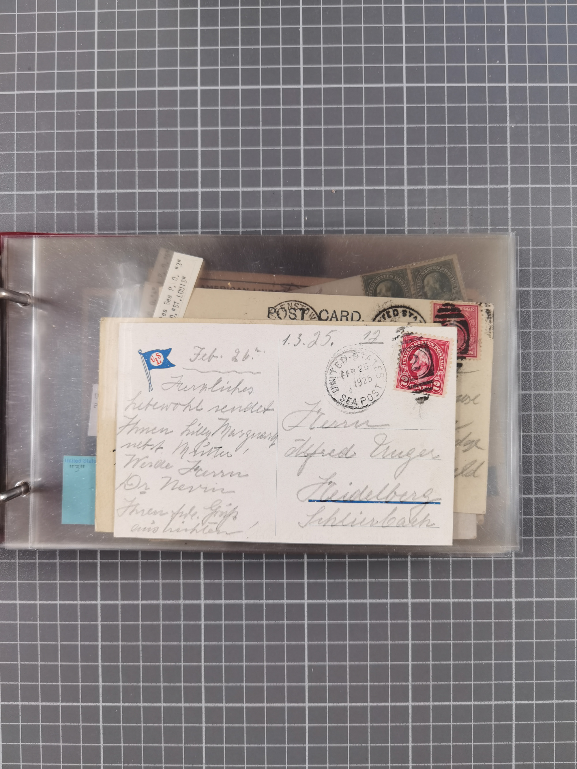 1892/1939, umfangreiche Sammlung “U.S. GERMAN SEA POST” mit ca. 400 Briefen, Karten und Ganzsachen, Schwerpunkt vor 1920 mit den Dublex-Stempeln mit Nr. 1-16, dabei verschiedene Verwendungen mit besseren (u.a. auf Briefen/Karten vom D. Reich), 1 R-GSU und weiteren Besonderheiten. Dazu noch einige Schiffs-Ansichtskarten, bei vielen Belegen mit Vermerken zu den Schiffen usw. und meist in guter Erhaltung. Eine in diesem Umfang seltene Sammlung in sechs Alben, ex Steinmeyer