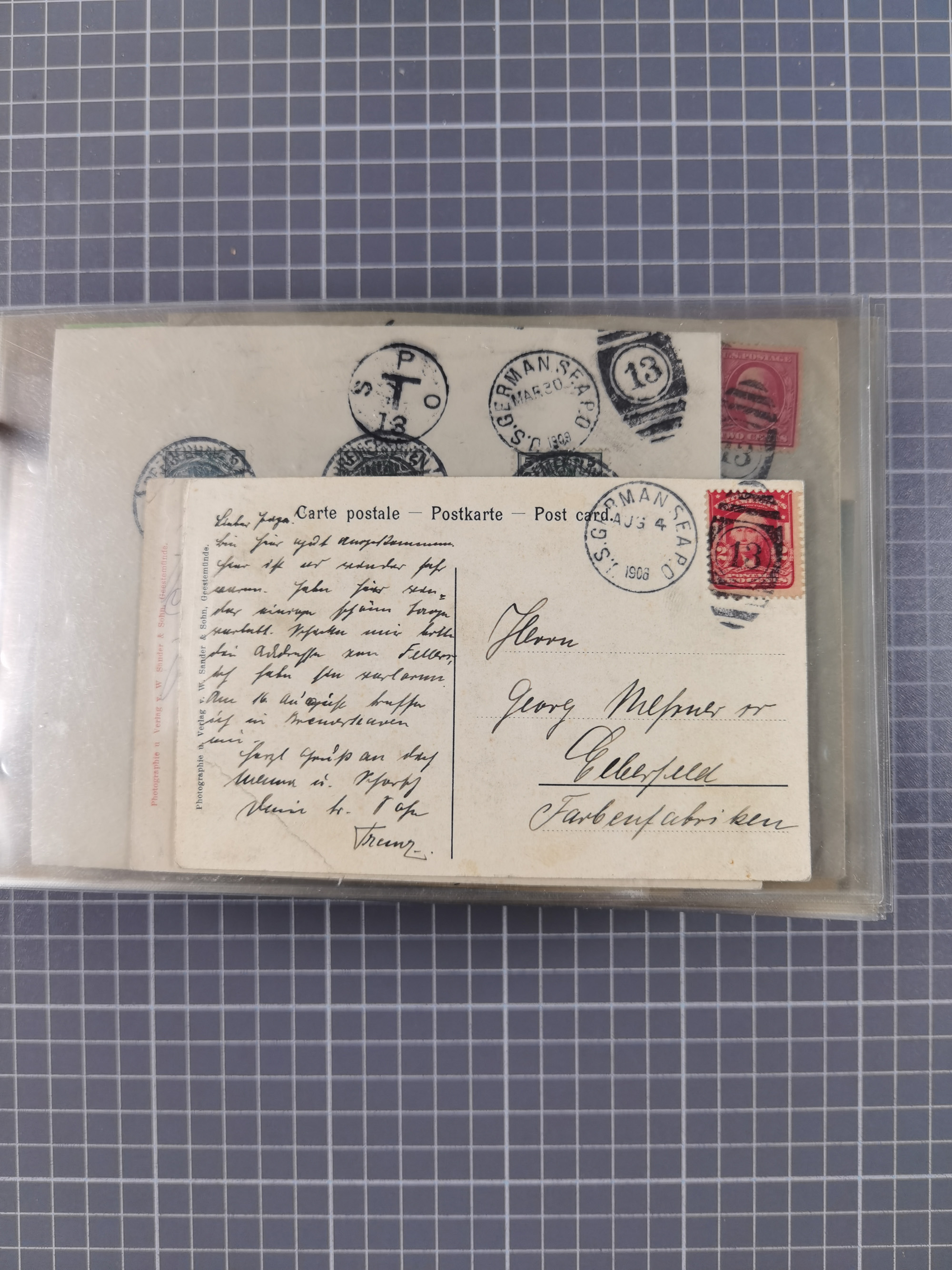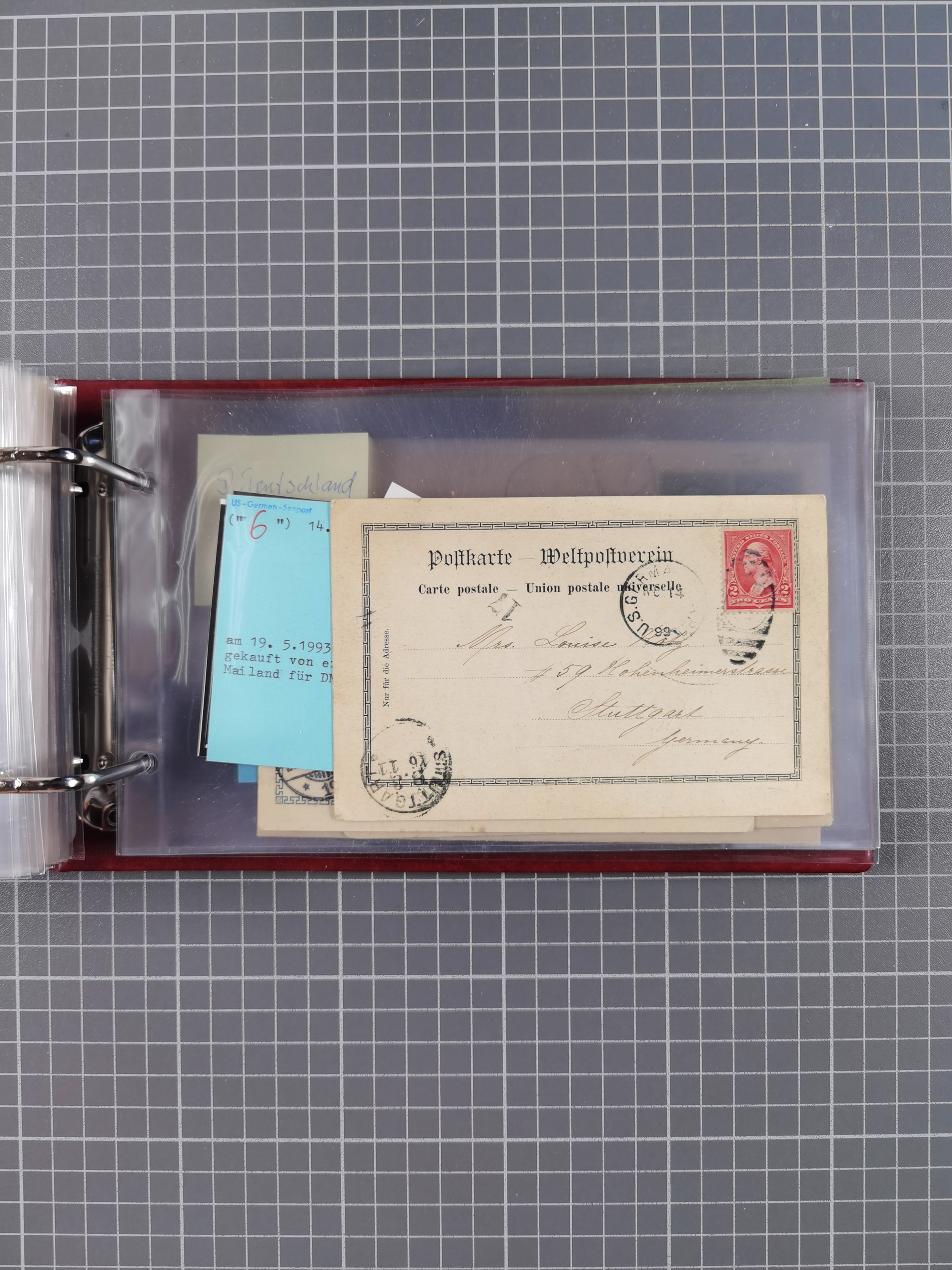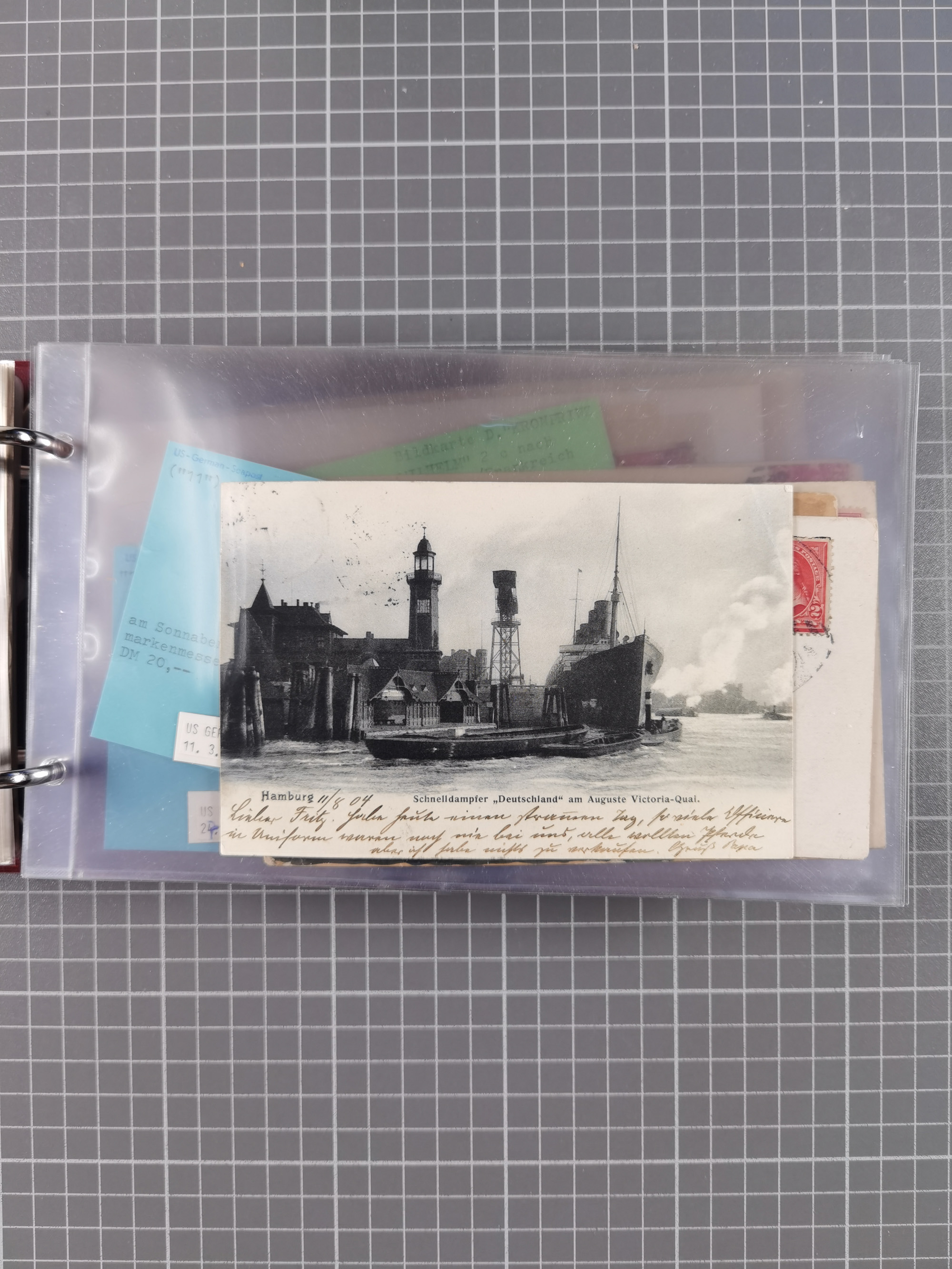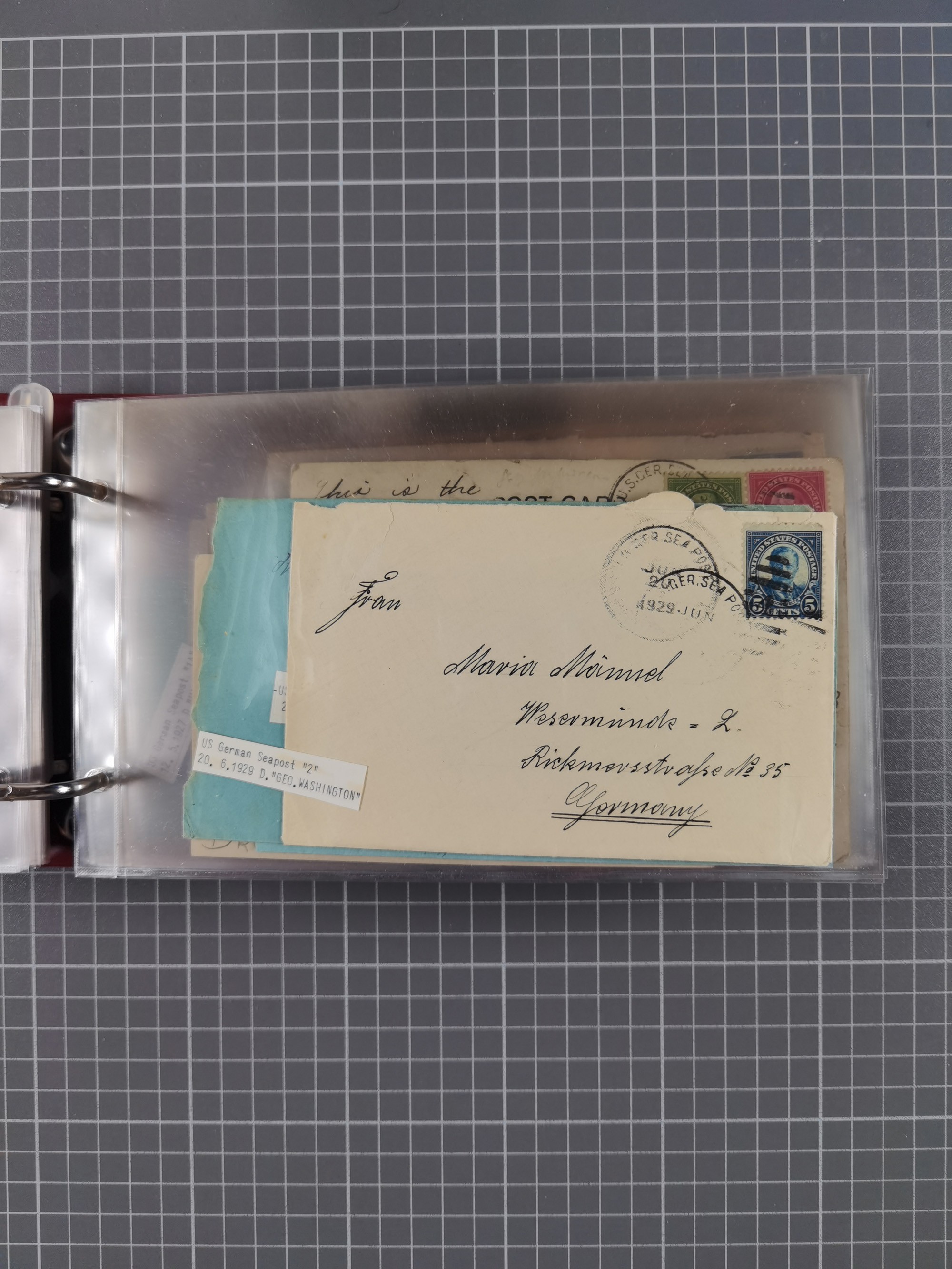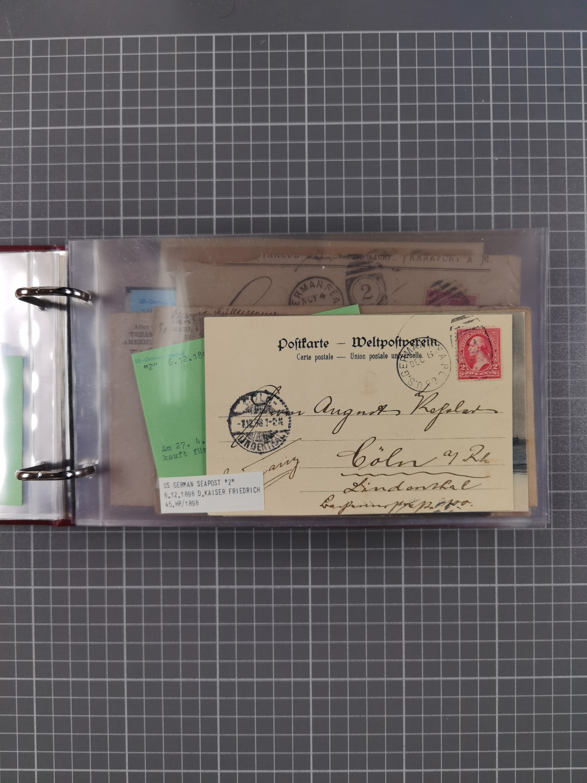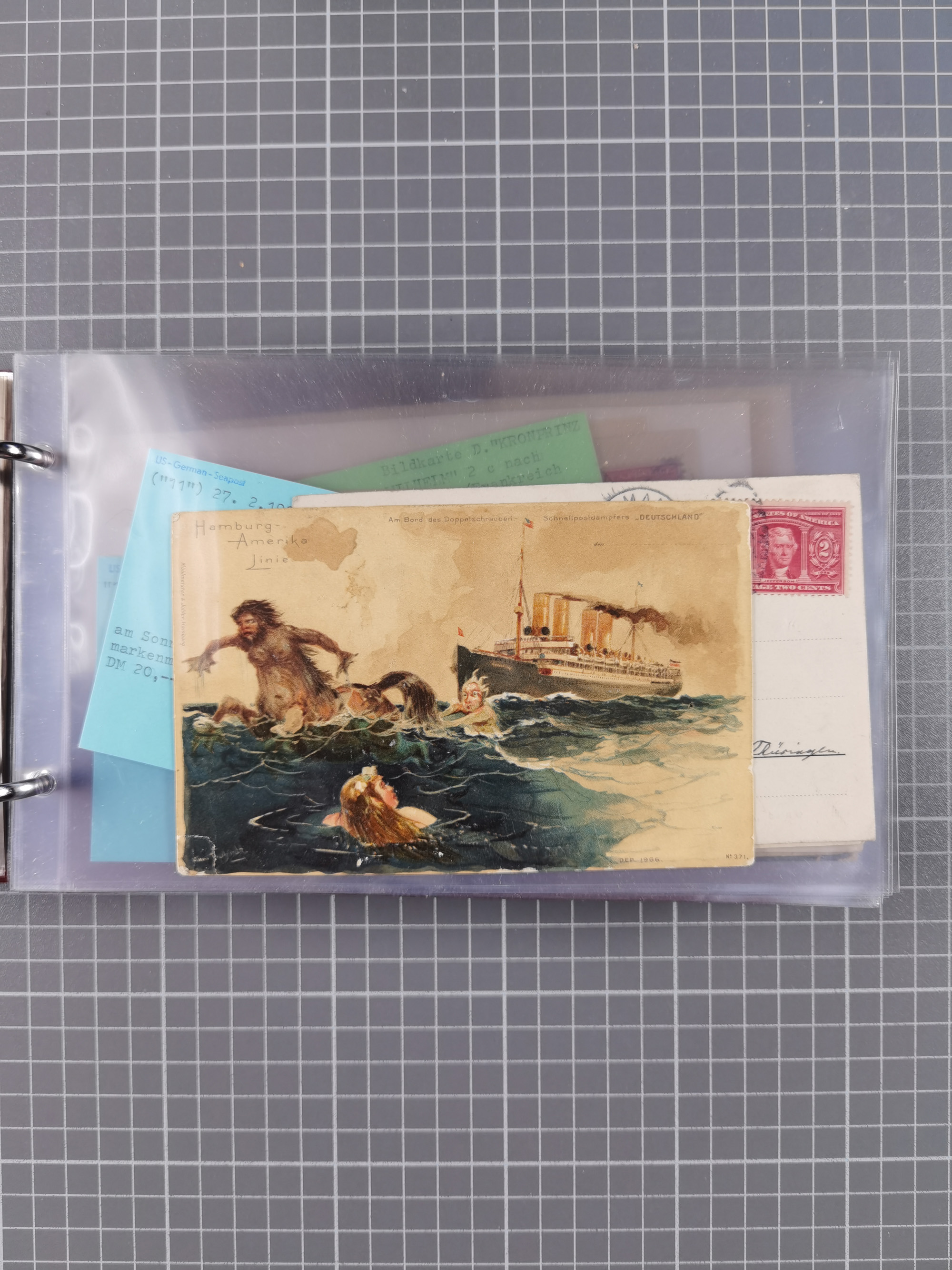 1892/1939, umfangreiche Sammlung “U.S. GERMAN SEA POST” mit ca. 400 Briefen, Karten und Ganzsachen, Schwerpunkt vor 1920 mit den Dublex-Stempeln mit Nr. 1-16, dabei verschiedene Verwendungen mit besseren (u.a. auf Briefen/Karten vom D. Reich), 1 R-GSU und weiteren Besonderheiten. Dazu noch einige Schiffs-Ansichtskarten, bei vielen Belegen mit Vermerken zu den Schiffen usw. und meist in guter Erhaltung. Eine in diesem Umfang seltene Sammlung in sechs Alben, ex Steinmeyer