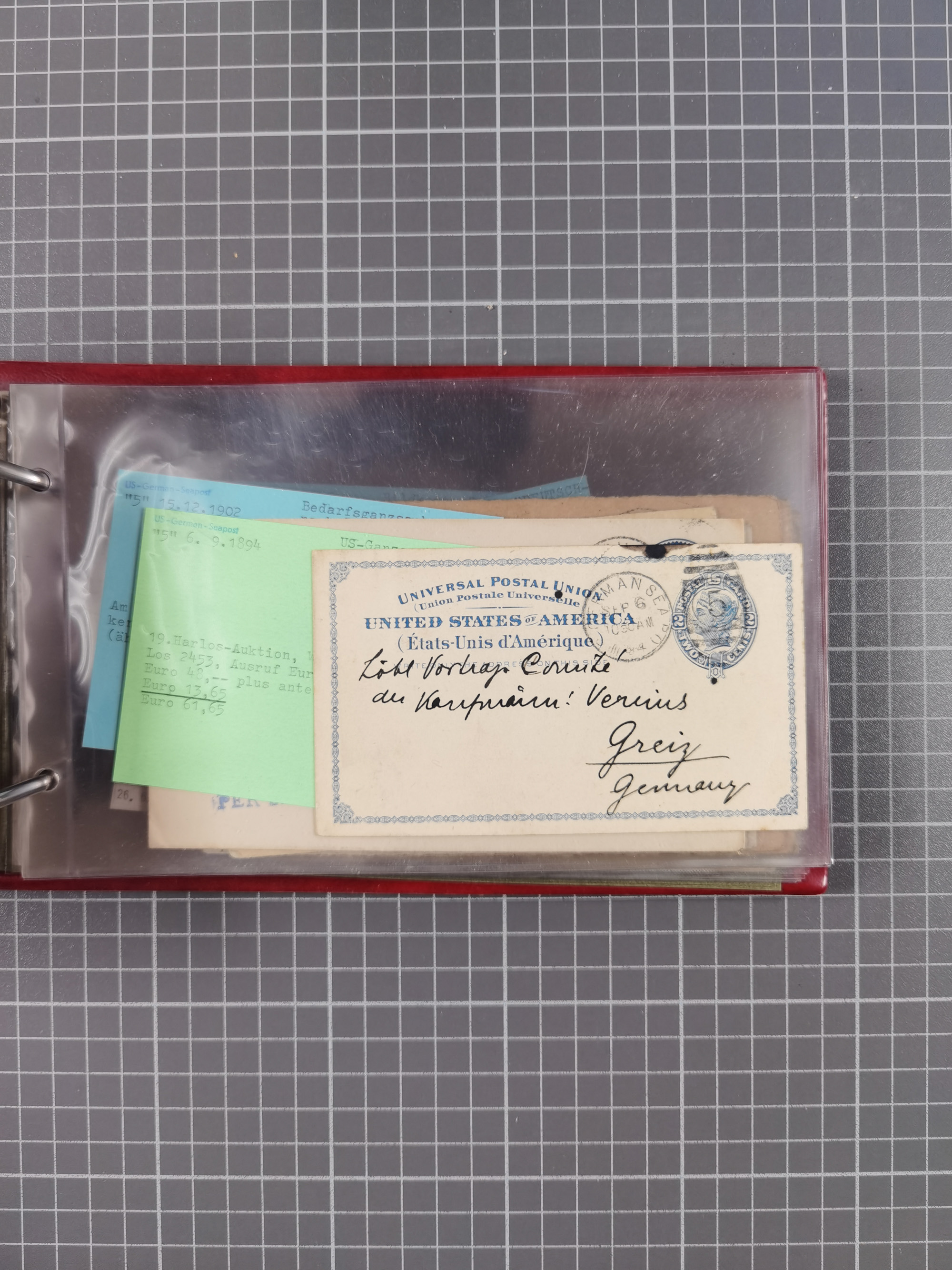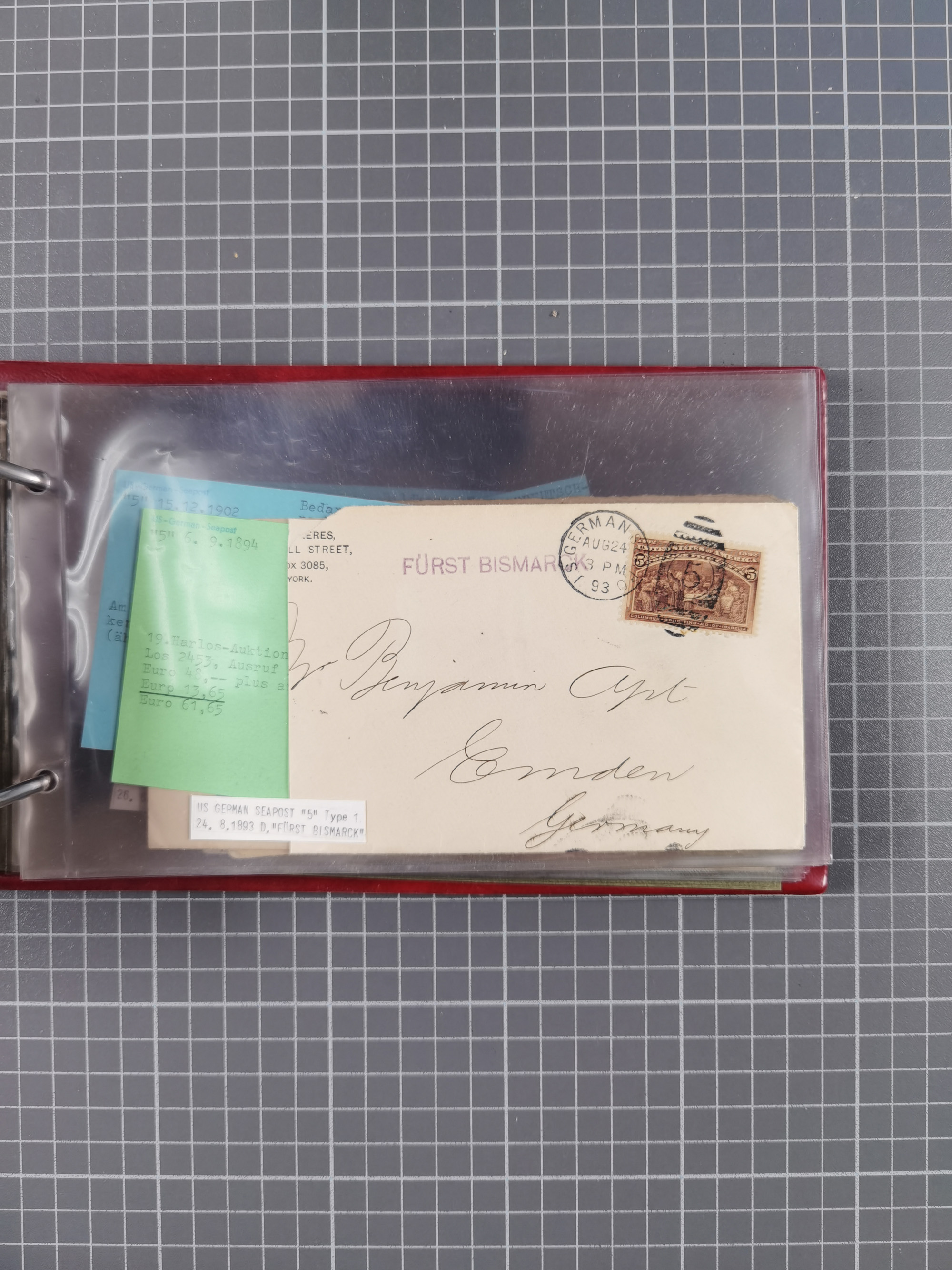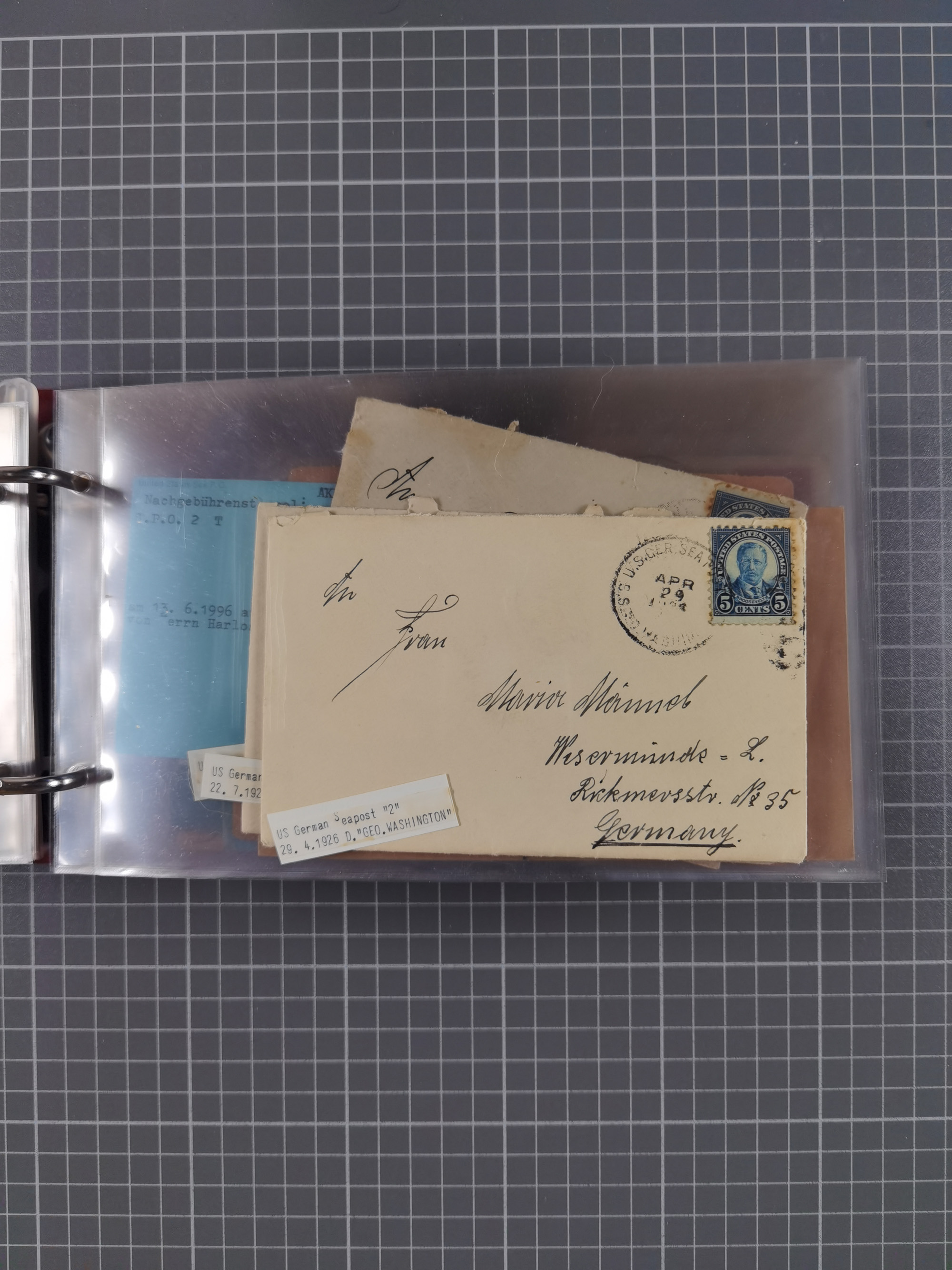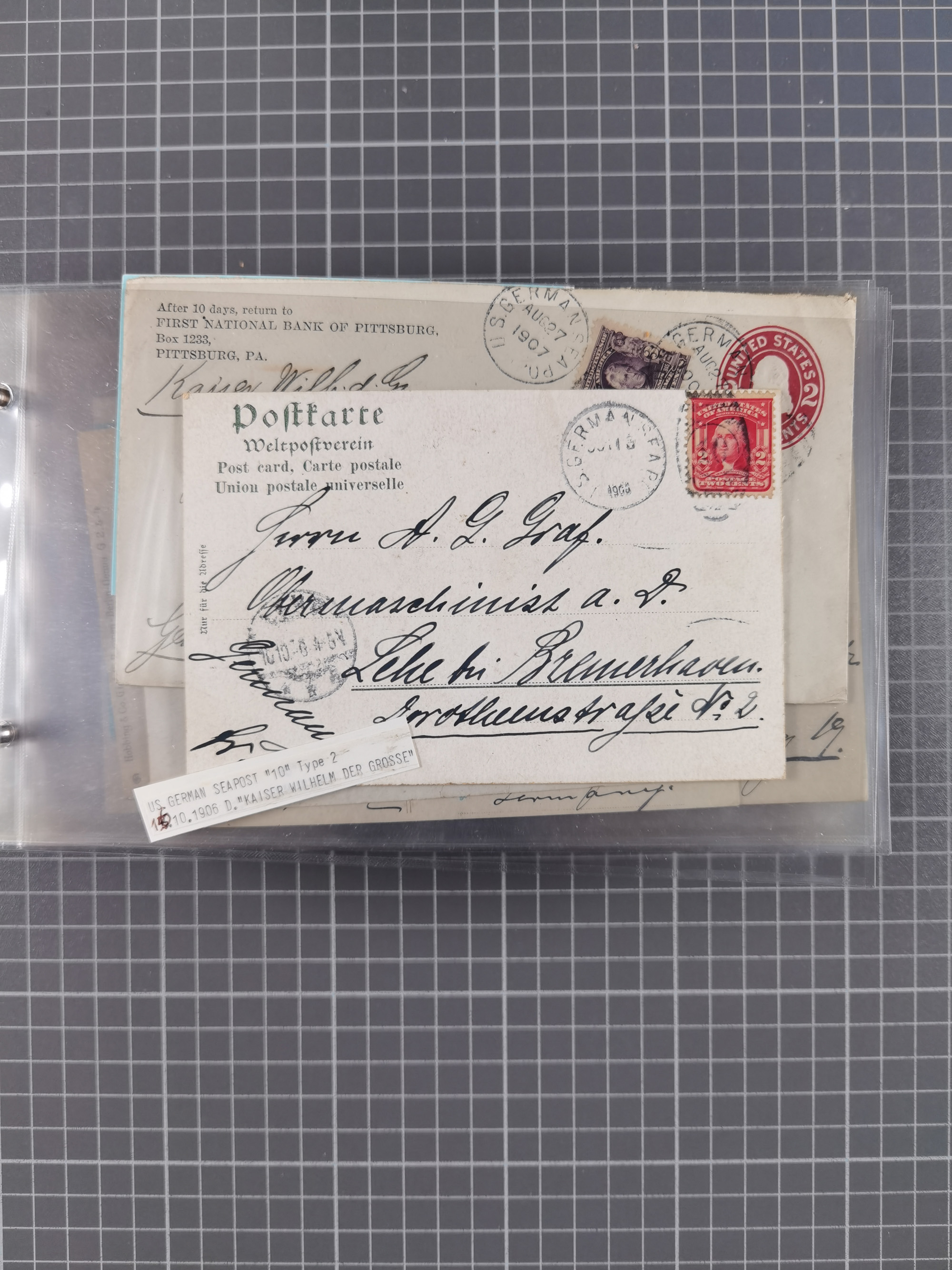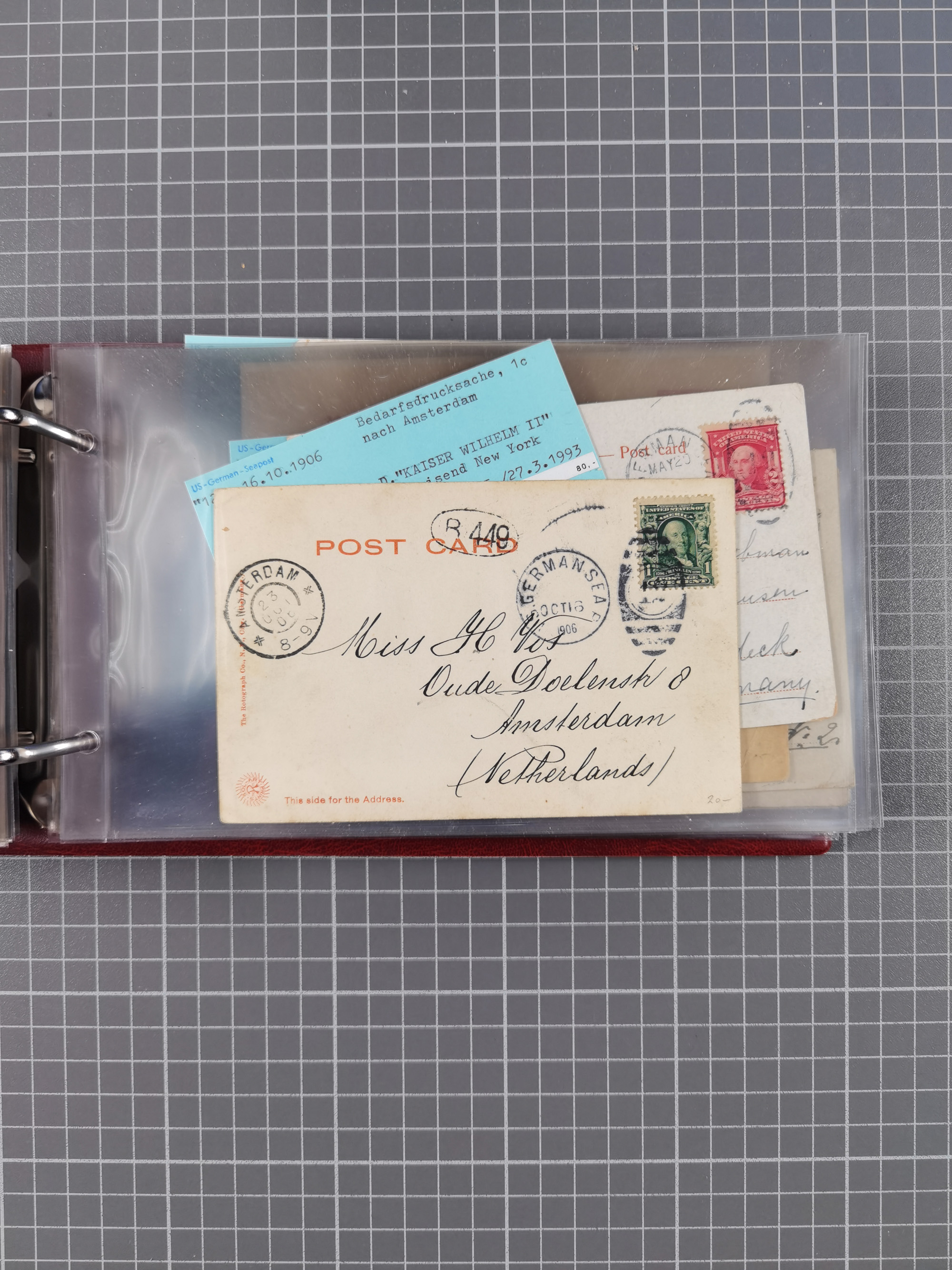 1892/1939, umfangreiche Sammlung “U.S. GERMAN SEA POST” mit ca. 400 Briefen, Karten und Ganzsachen, Schwerpunkt vor 1920 mit den Dublex-Stempeln mit Nr. 1-16, dabei verschiedene Verwendungen mit besseren (u.a. auf Briefen/Karten vom D. Reich), 1 R-GSU und weiteren Besonderheiten. Dazu noch einige Schiffs-Ansichtskarten, bei vielen Belegen mit Vermerken zu den Schiffen usw. und meist in guter Erhaltung. Eine in diesem Umfang seltene Sammlung in sechs Alben, ex Steinmeyer