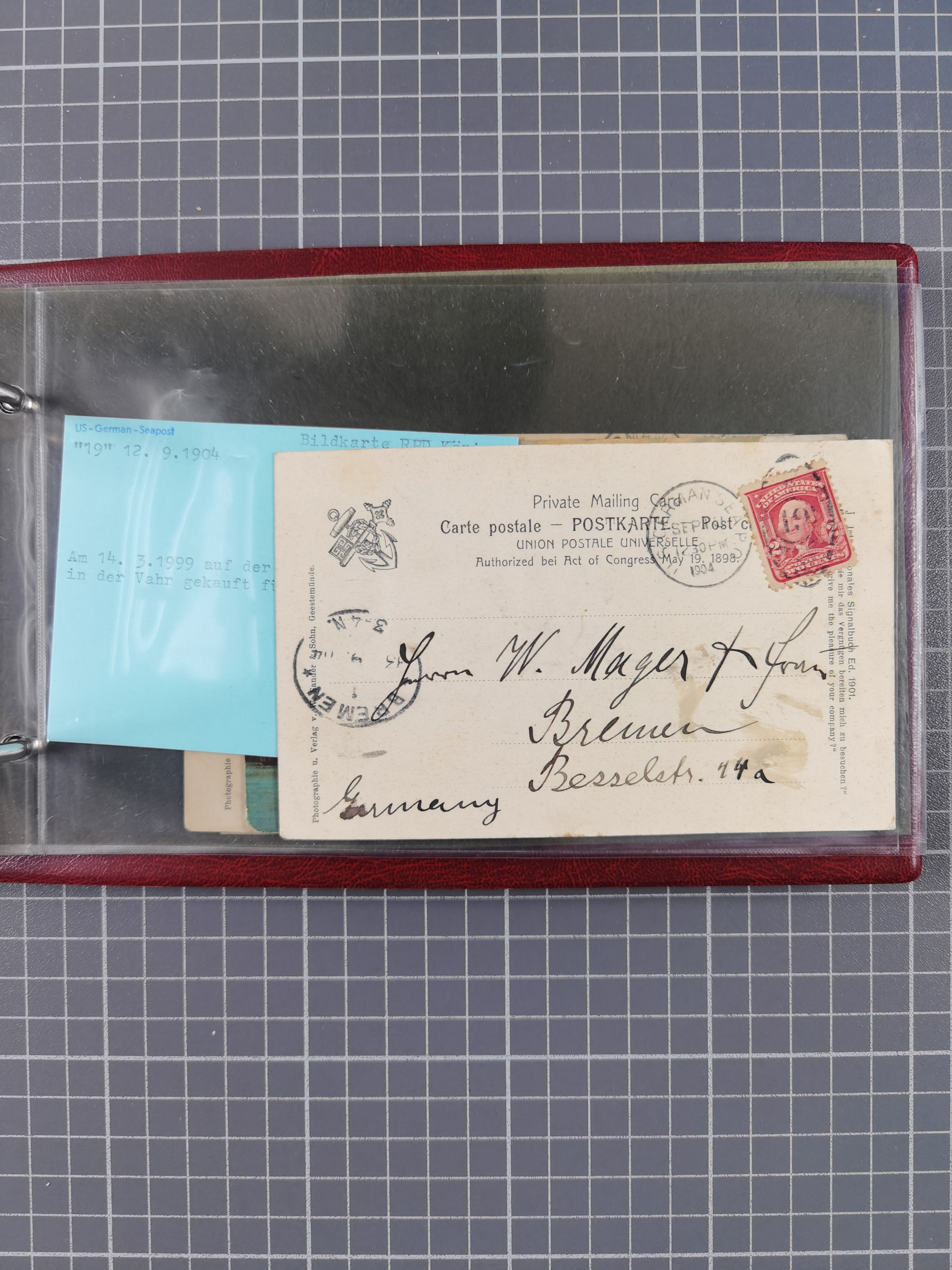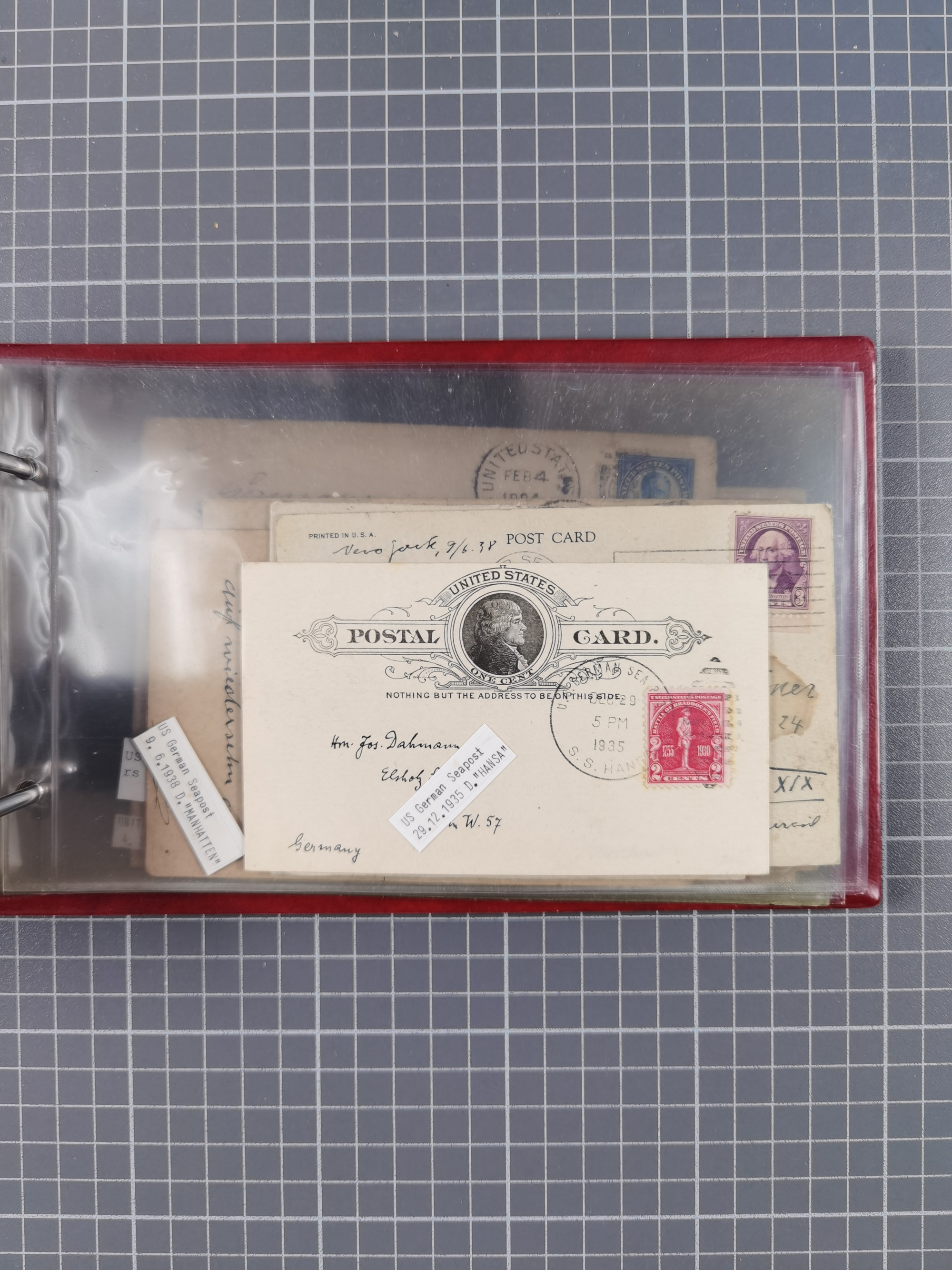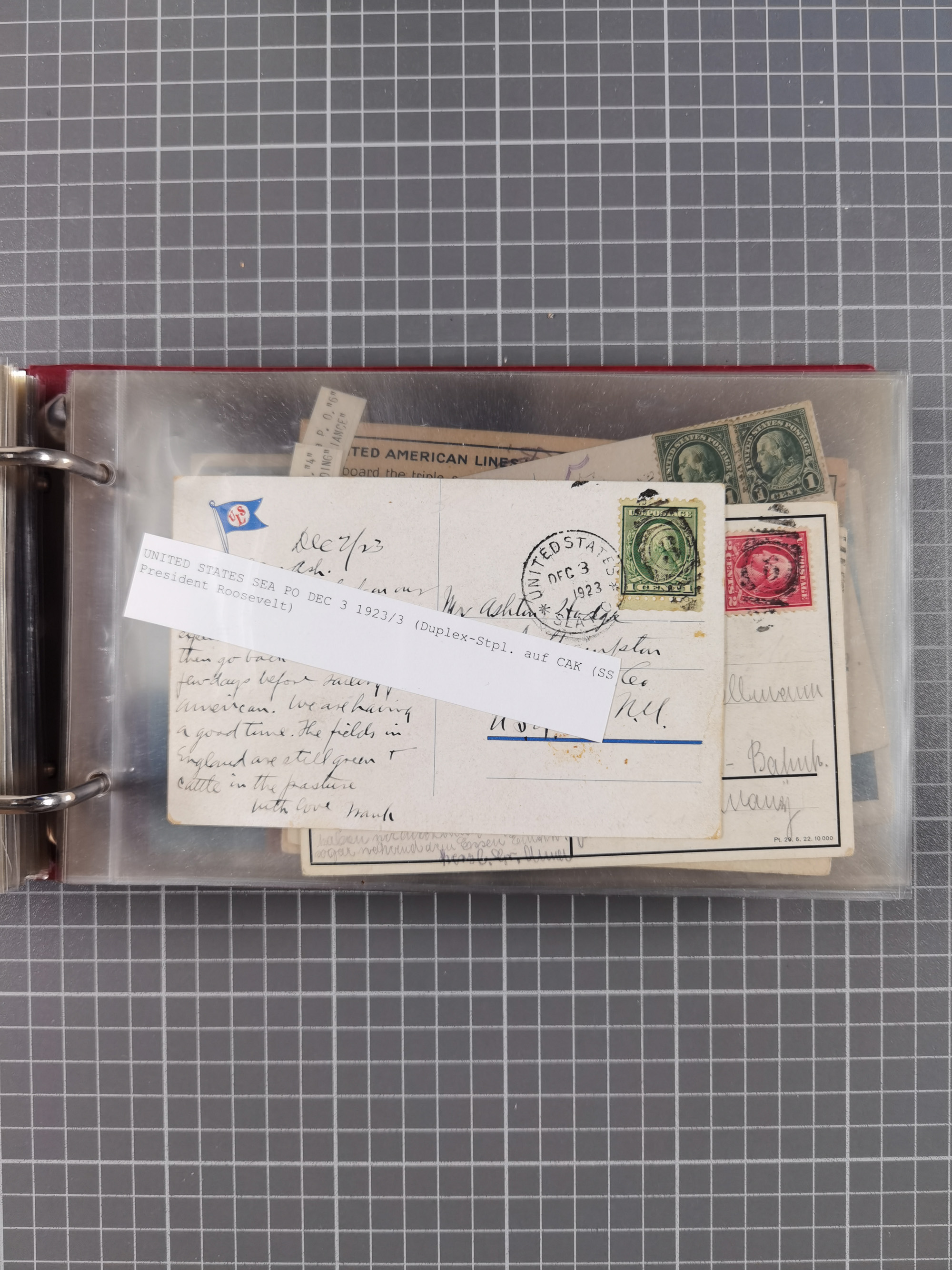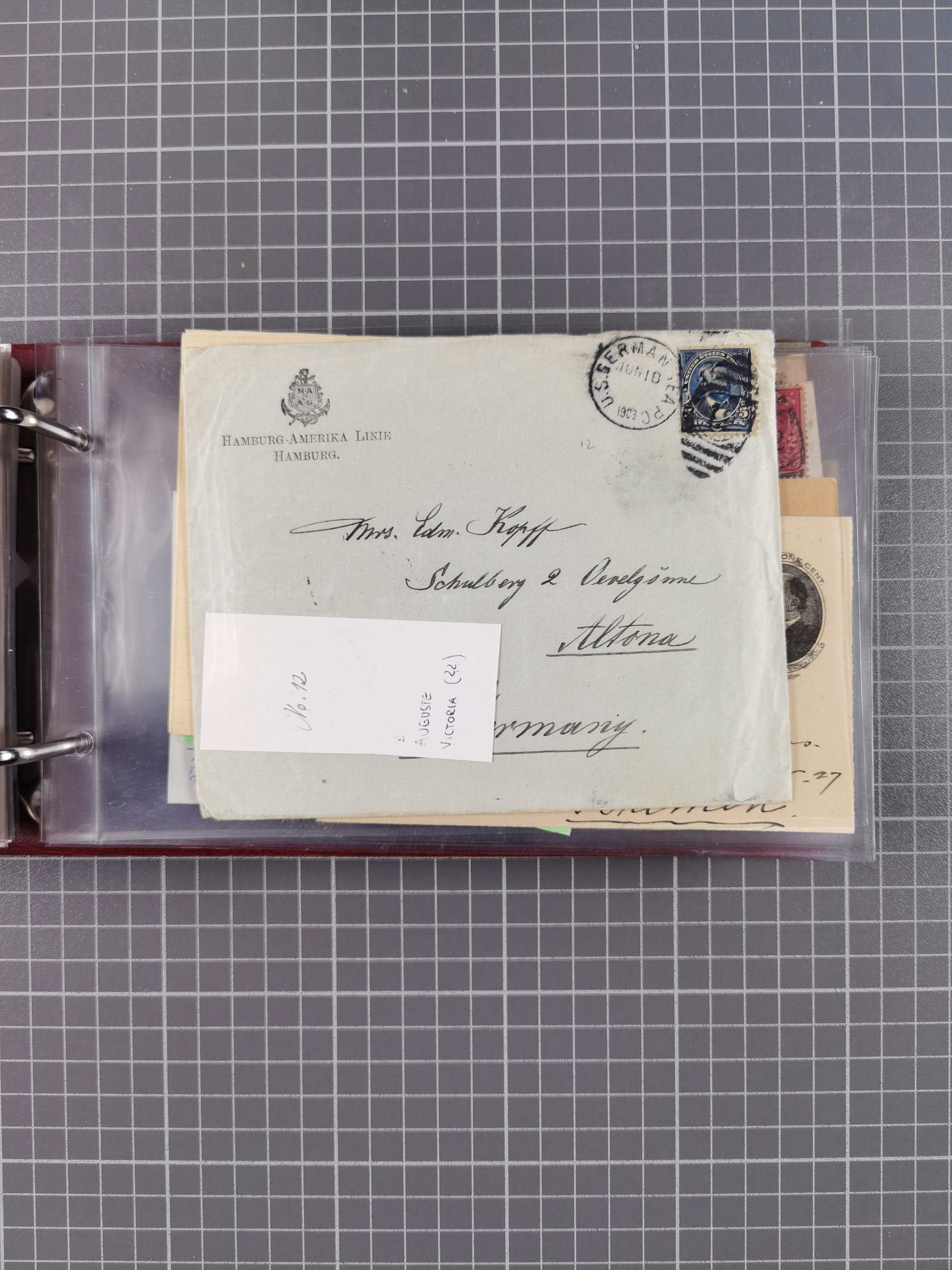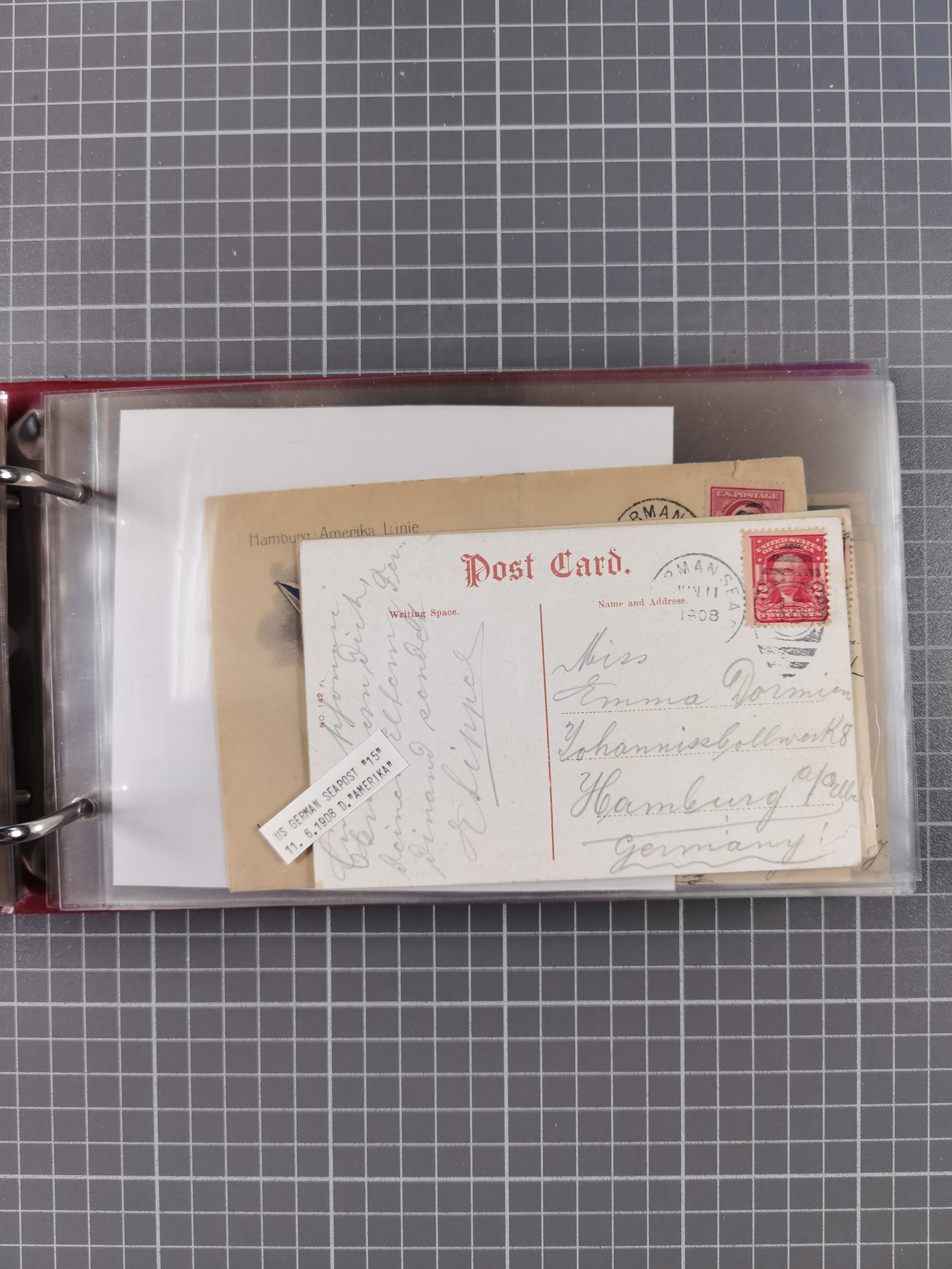 1892/1939, umfangreiche Sammlung “U.S. GERMAN SEA POST” mit ca. 400 Briefen, Karten und Ganzsachen, Schwerpunkt vor 1920 mit den Dublex-Stempeln mit Nr. 1-16, dabei verschiedene Verwendungen mit besseren (u.a. auf Briefen/Karten vom D. Reich), 1 R-GSU und weiteren Besonderheiten. Dazu noch einige Schiffs-Ansichtskarten, bei vielen Belegen mit Vermerken zu den Schiffen usw. und meist in guter Erhaltung. Eine in diesem Umfang seltene Sammlung in sechs Alben, ex Steinmeyer
