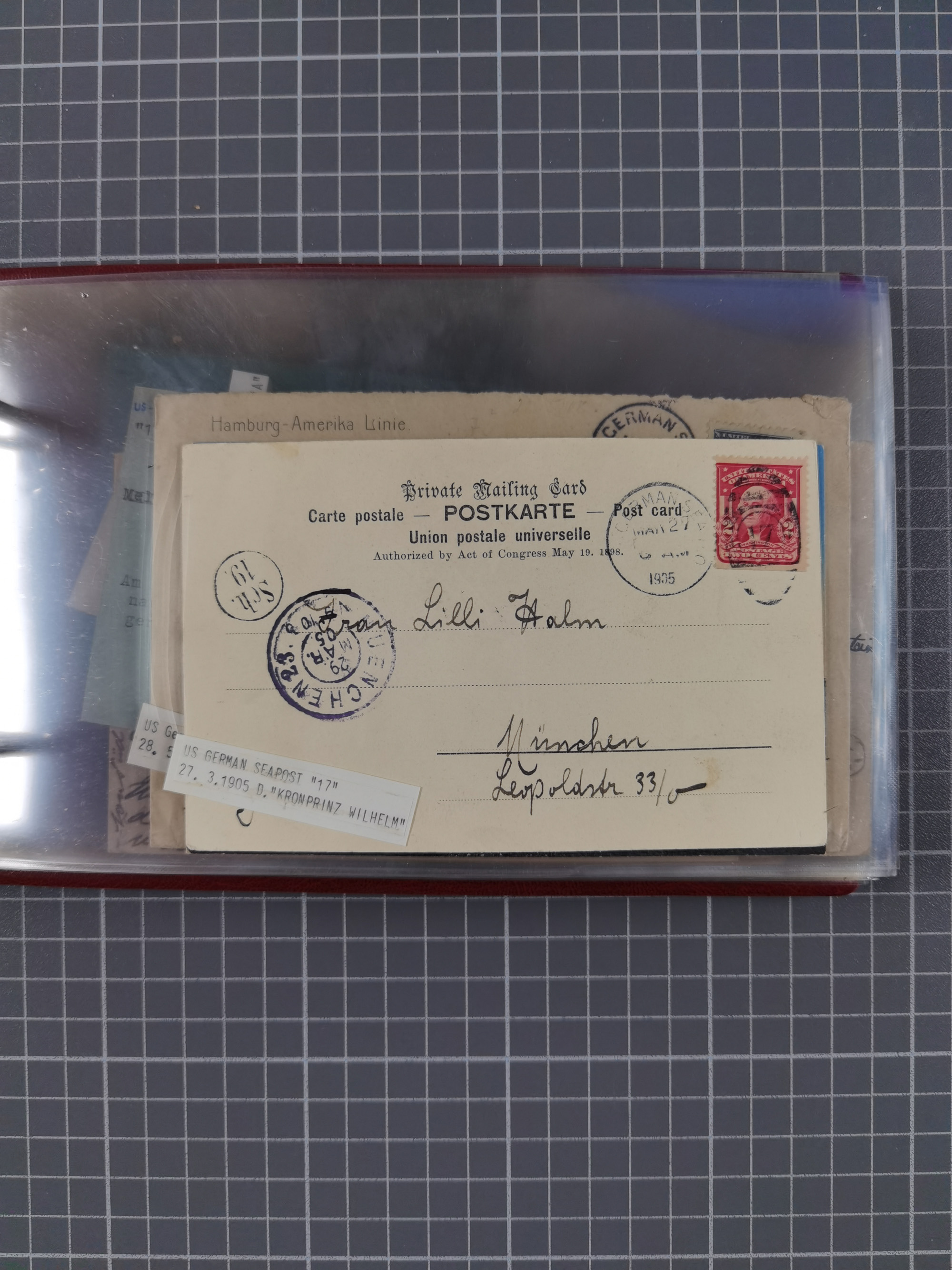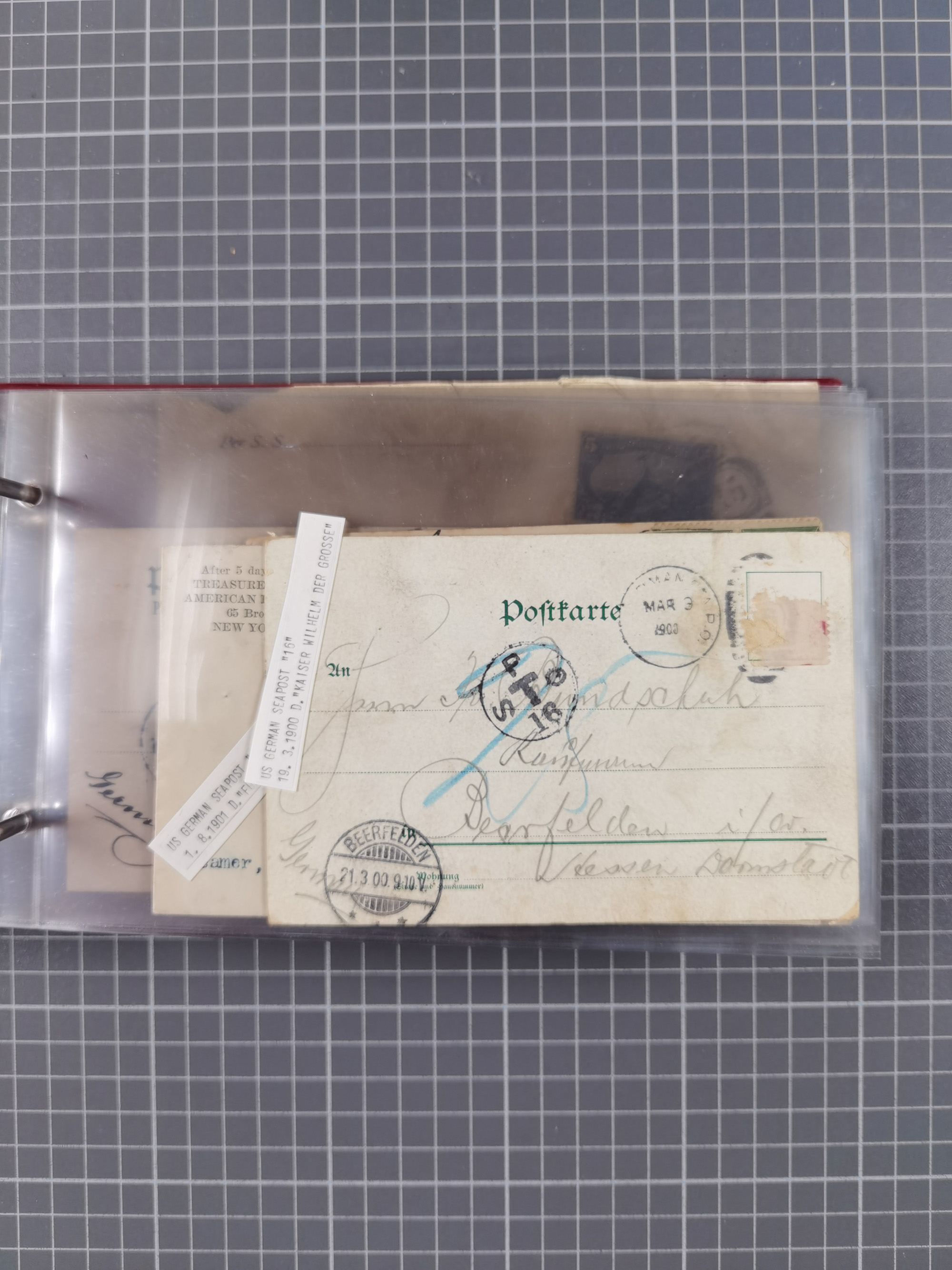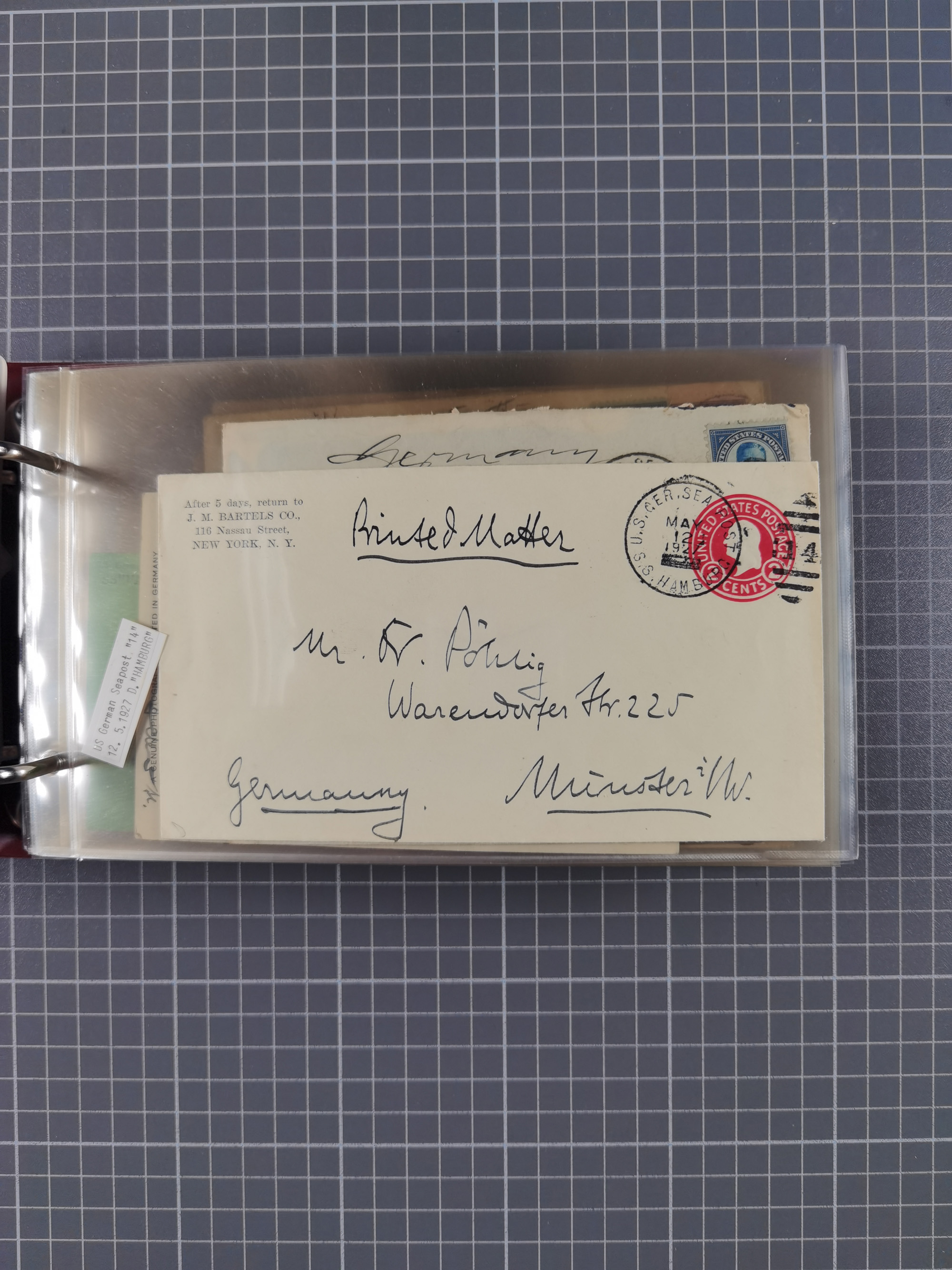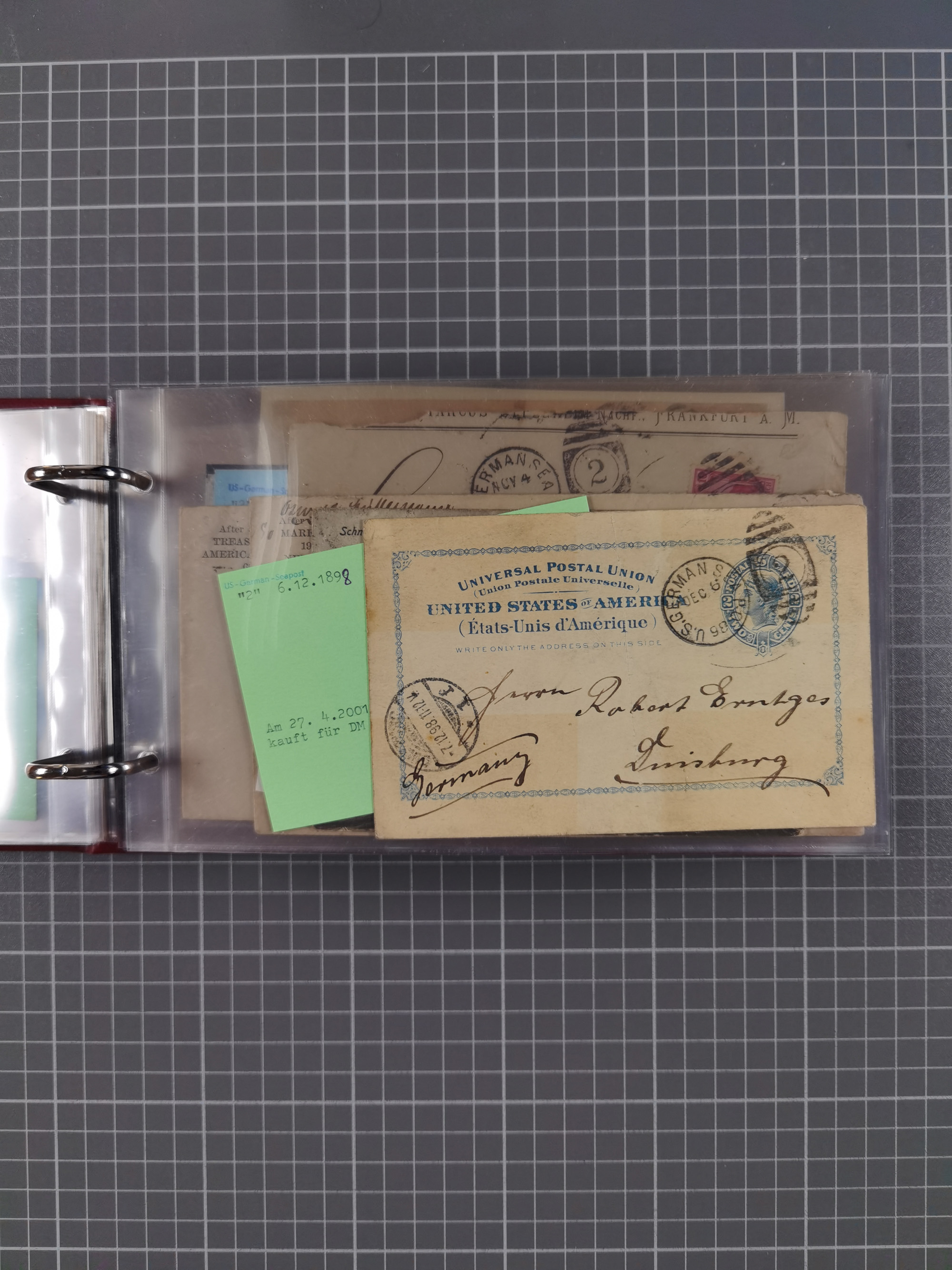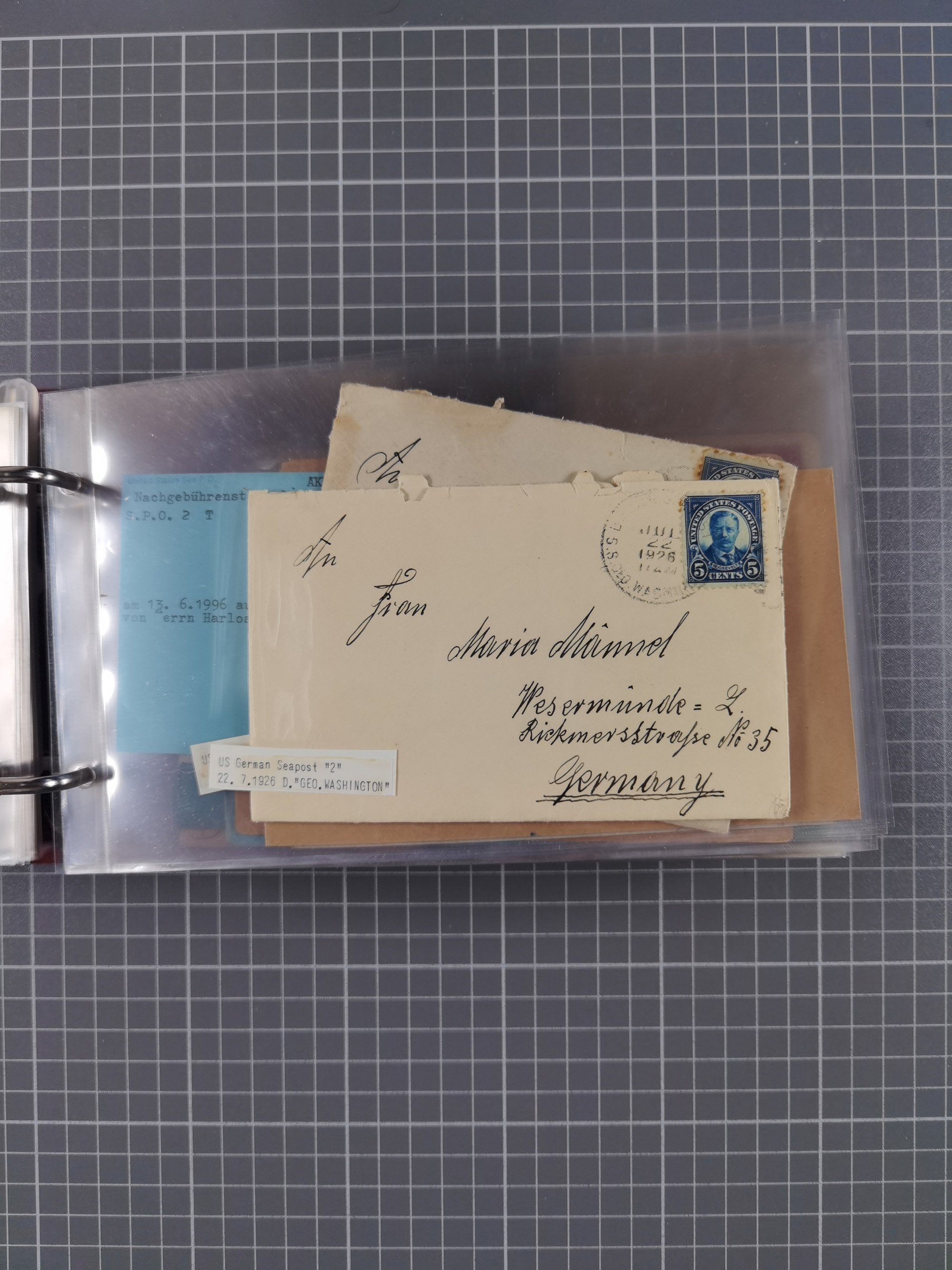 1892/1939, umfangreiche Sammlung “U.S. GERMAN SEA POST” mit ca. 400 Briefen, Karten und Ganzsachen, Schwerpunkt vor 1920 mit den Dublex-Stempeln mit Nr. 1-16, dabei verschiedene Verwendungen mit besseren (u.a. auf Briefen/Karten vom D. Reich), 1 R-GSU und weiteren Besonderheiten. Dazu noch einige Schiffs-Ansichtskarten, bei vielen Belegen mit Vermerken zu den Schiffen usw. und meist in guter Erhaltung. Eine in diesem Umfang seltene Sammlung in sechs Alben, ex Steinmeyer
