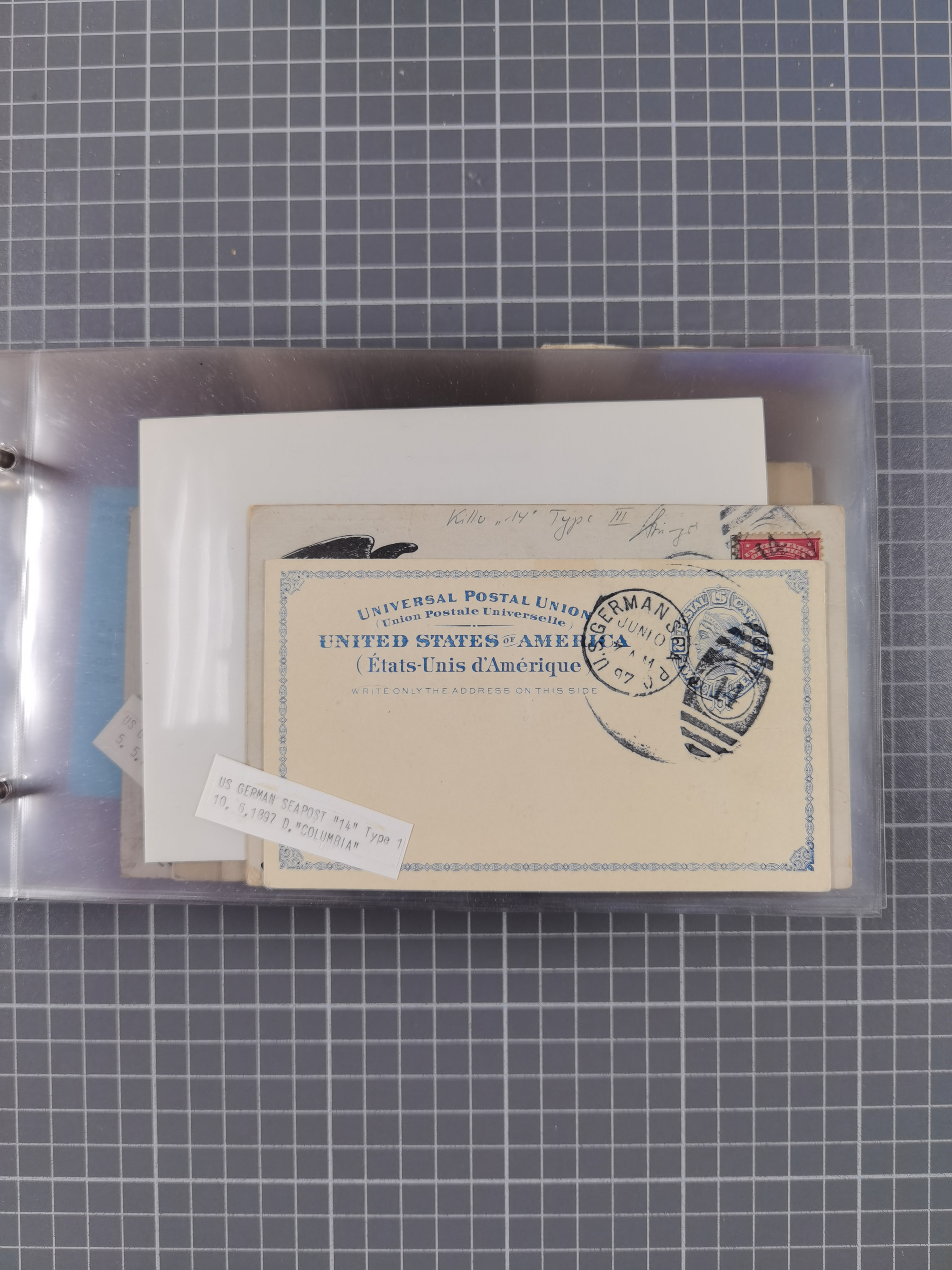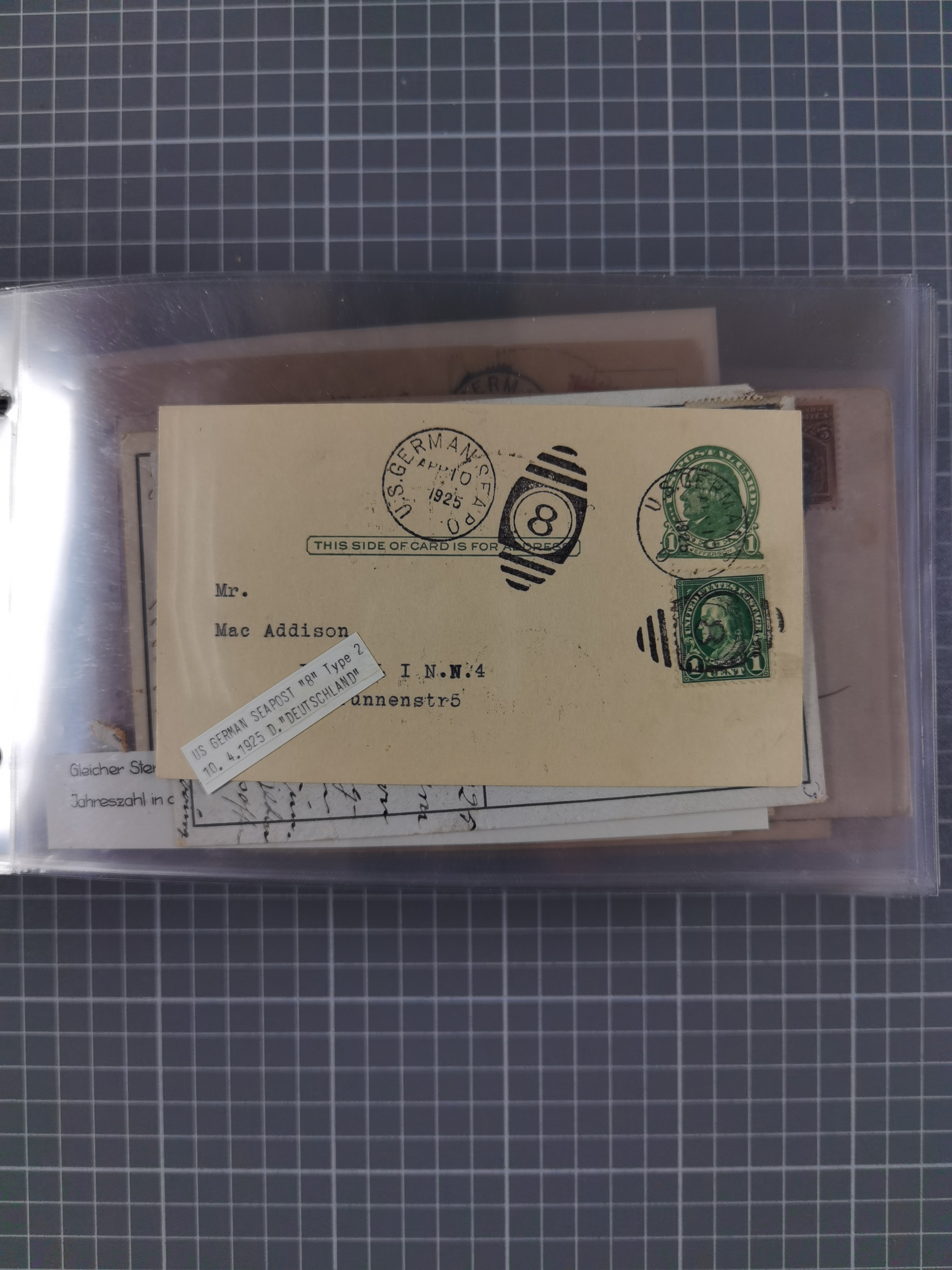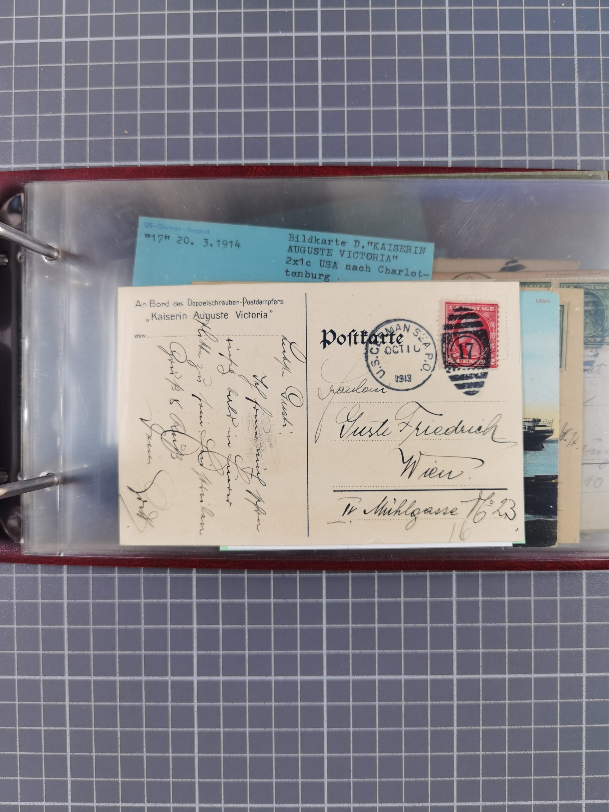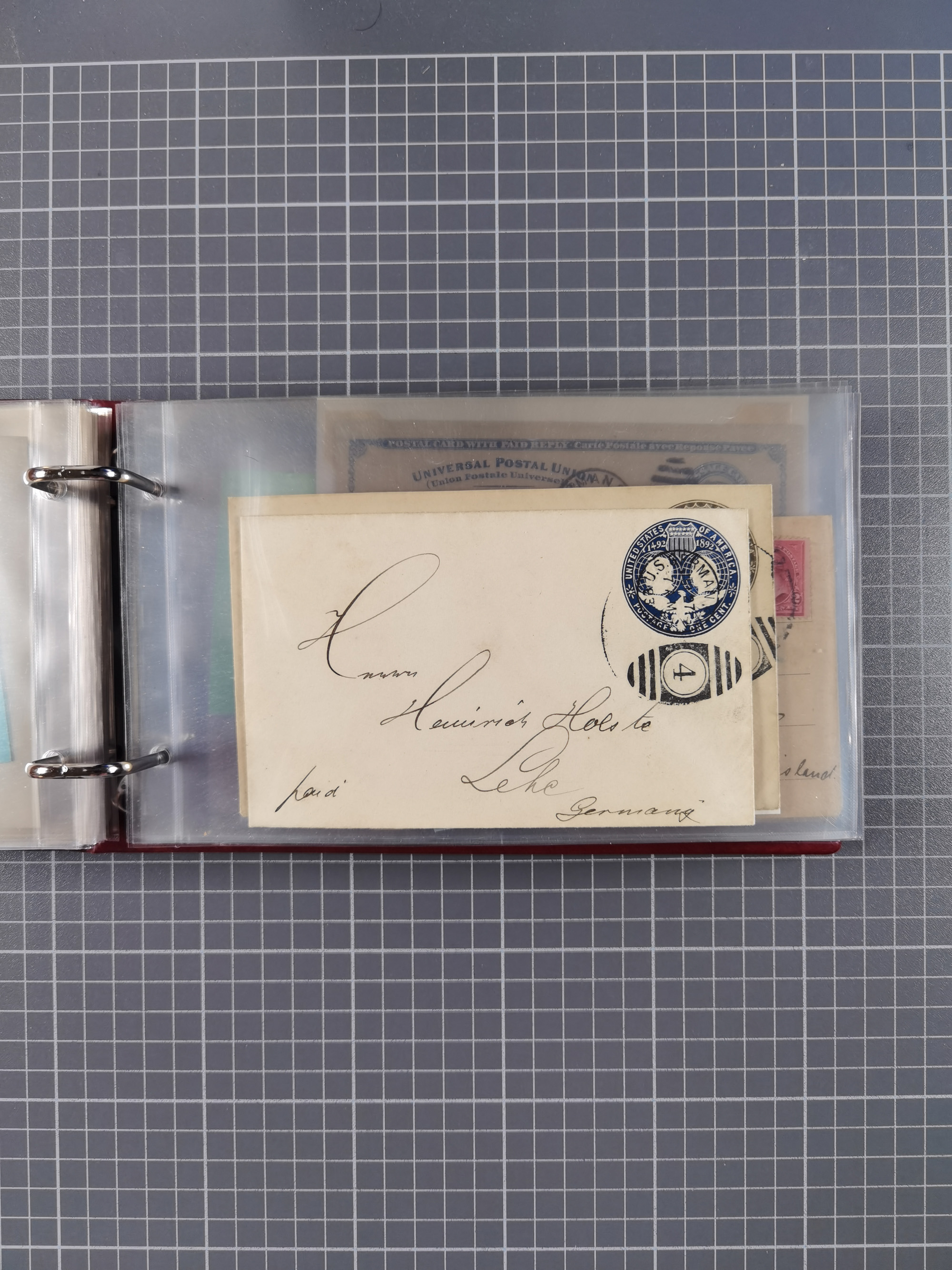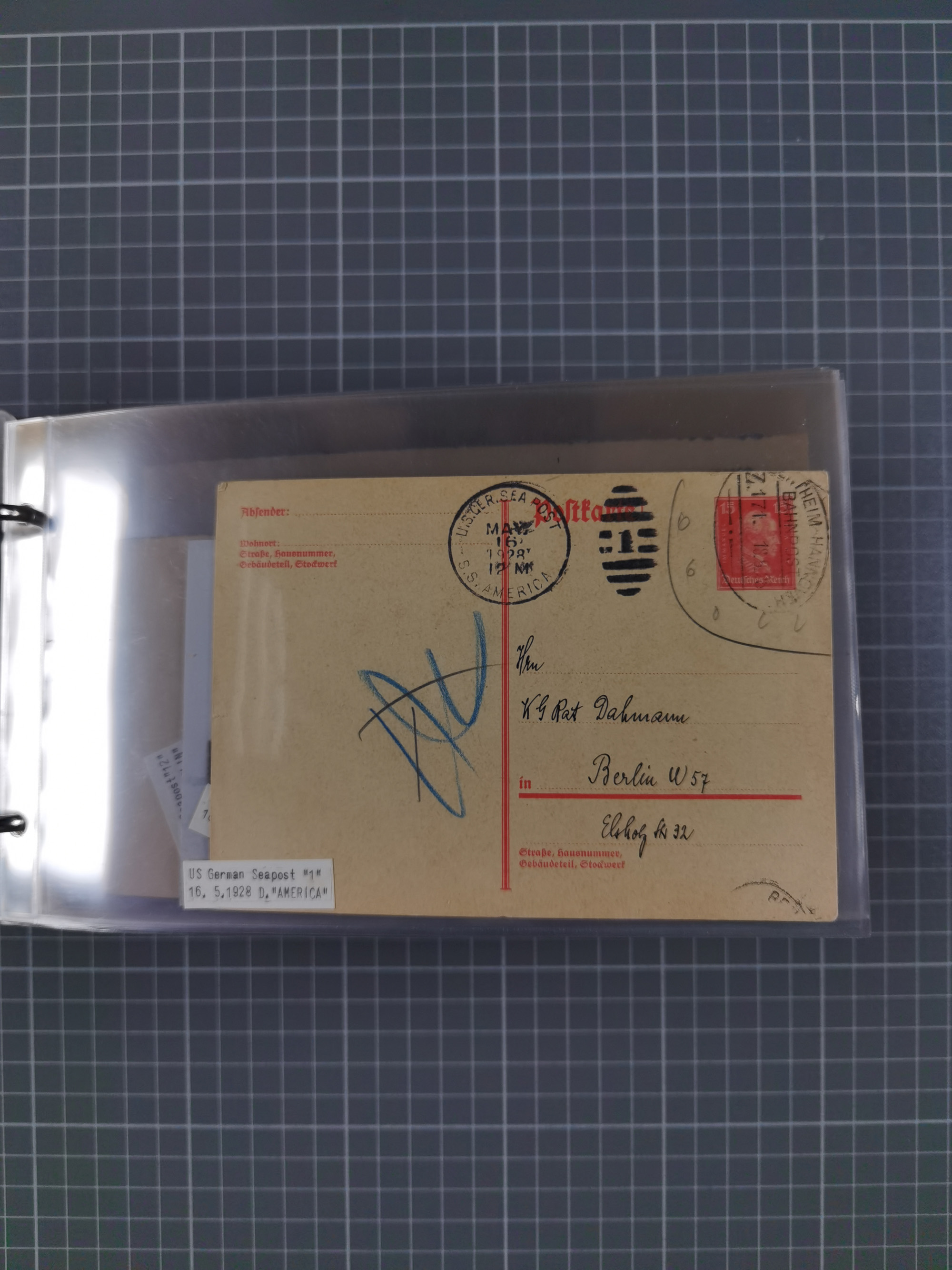1892/1939, umfangreiche Sammlung “U.S. GERMAN SEA POST” mit ca. 400 Briefen, Karten und Ganzsachen, Schwerpunkt vor 1920 mit den Dublex-Stempeln mit Nr. 1-16, dabei verschiedene Verwendungen mit besseren (u.a. auf Briefen/Karten vom D. Reich), 1 R-GSU und weiteren Besonderheiten. Dazu noch einige Schiffs-Ansichtskarten, bei vielen Belegen mit Vermerken zu den Schiffen usw. und meist in guter Erhaltung. Eine in diesem Umfang seltene Sammlung in sechs Alben, ex Steinmeyer