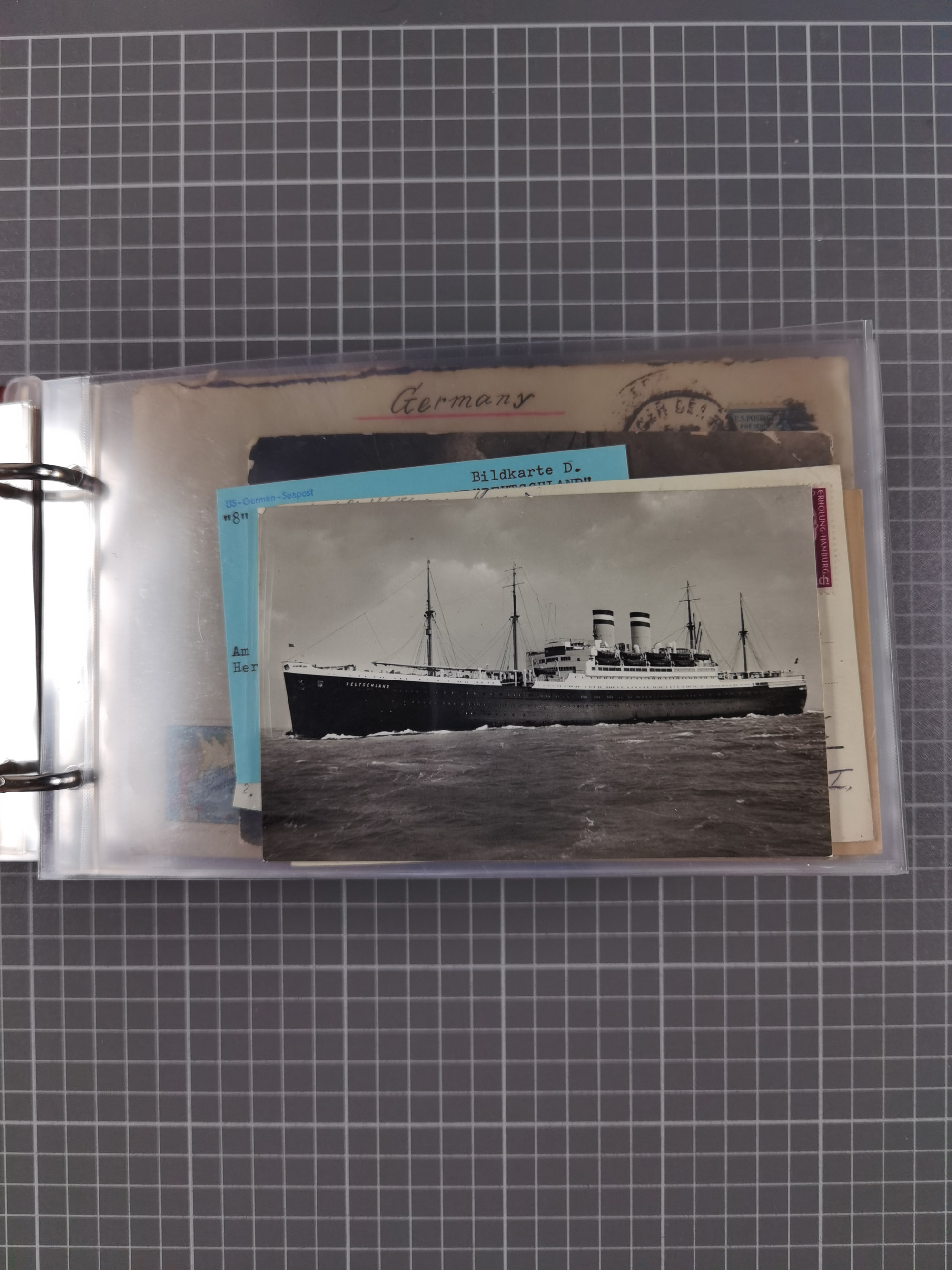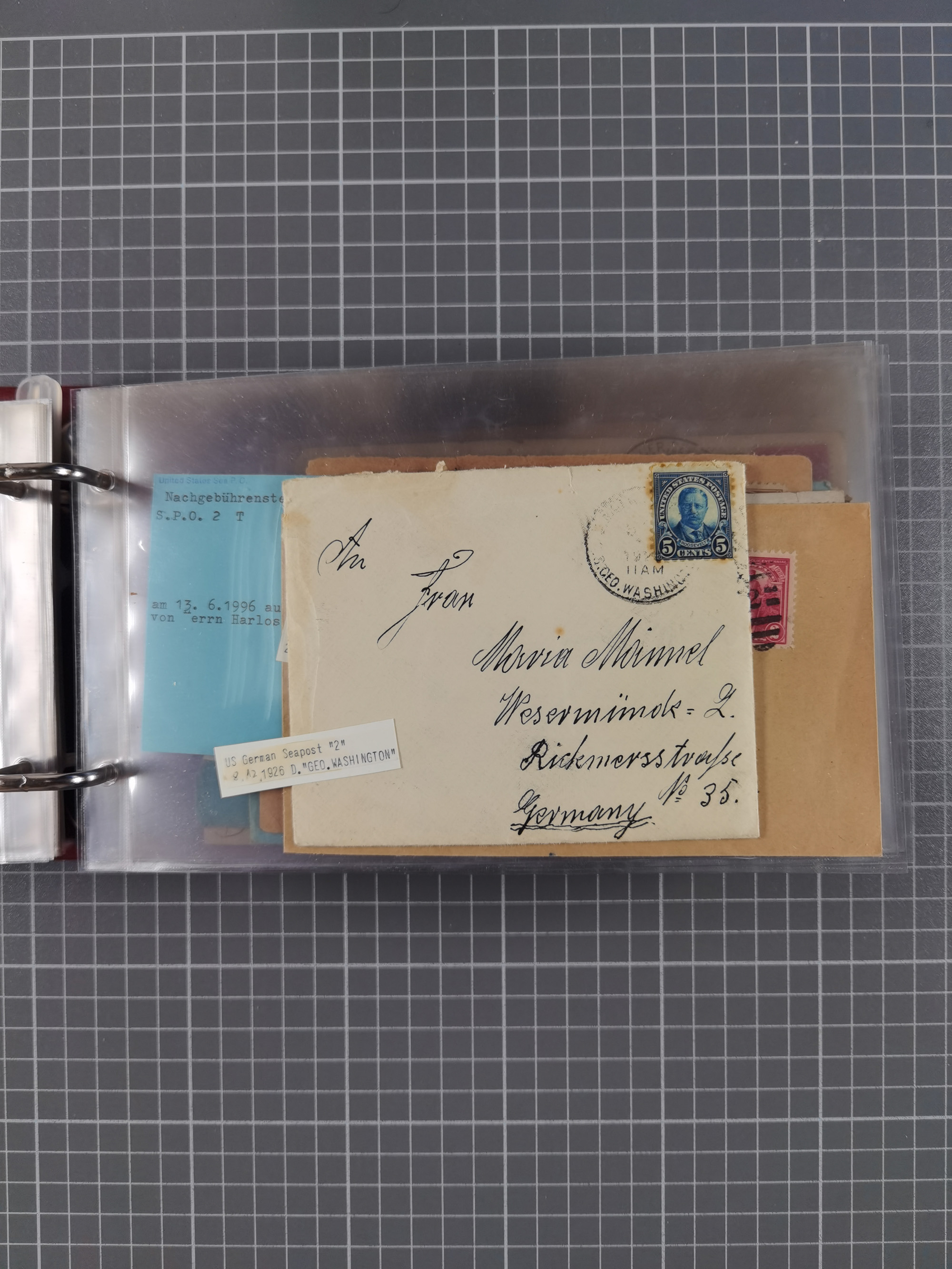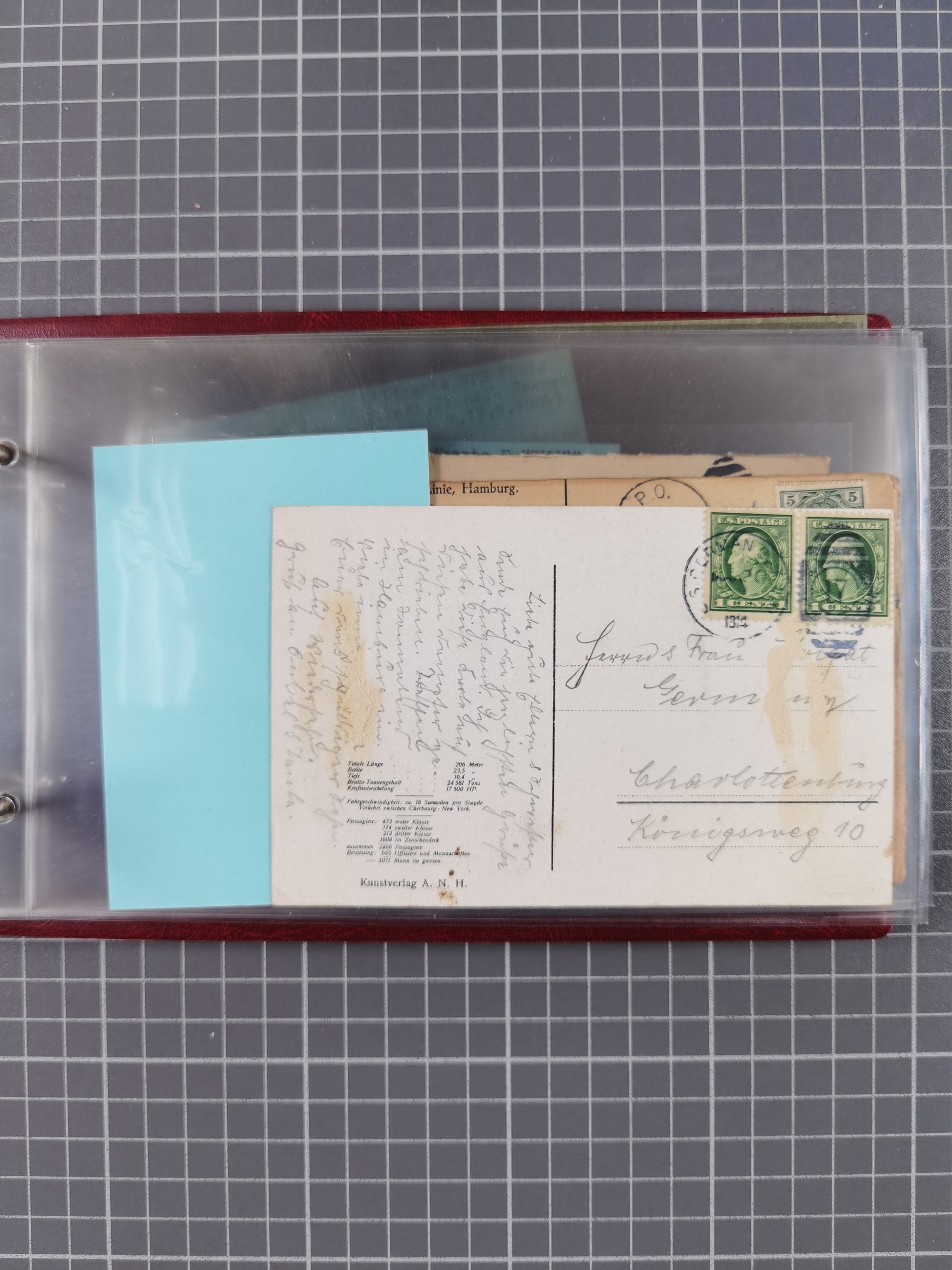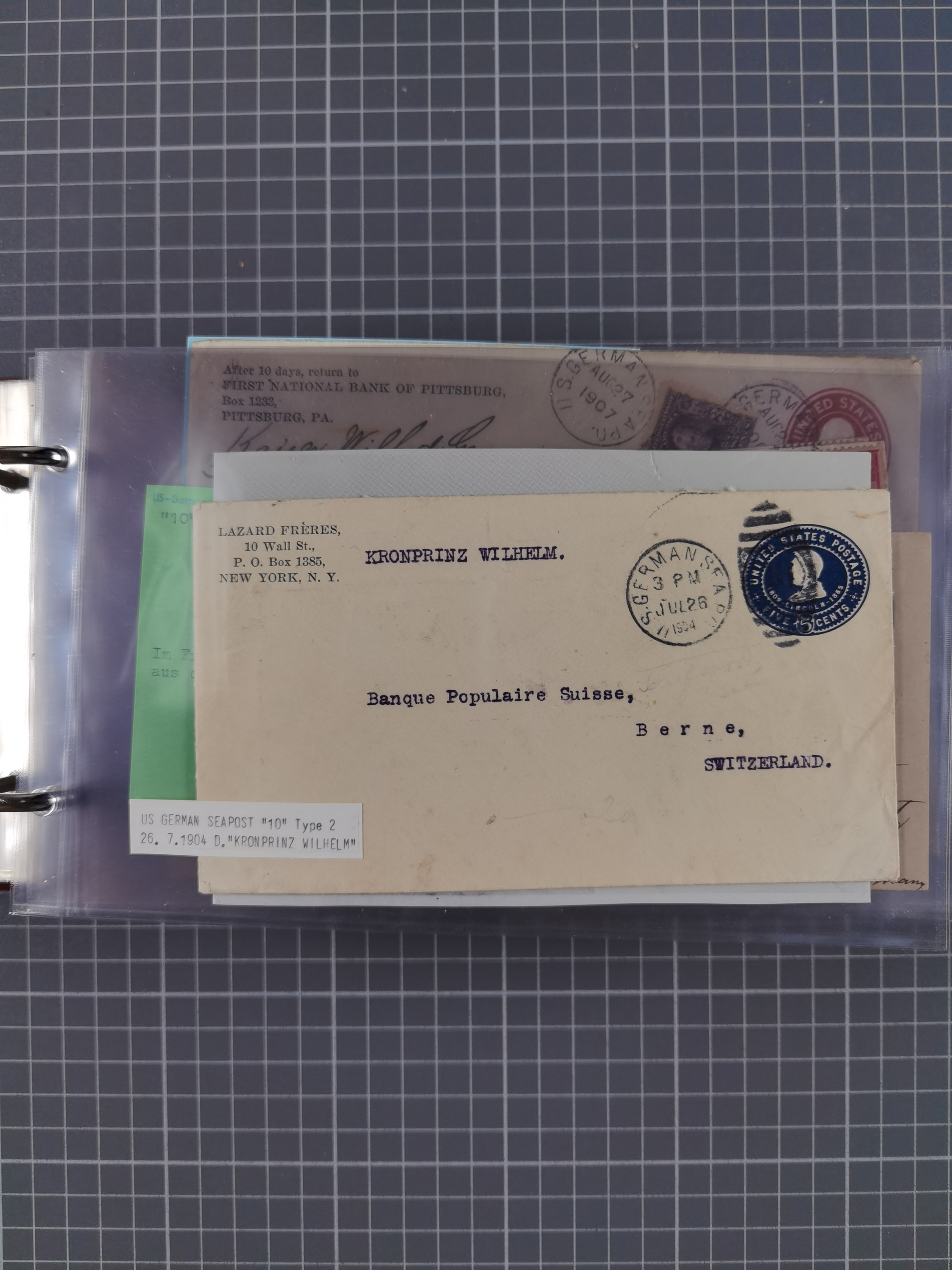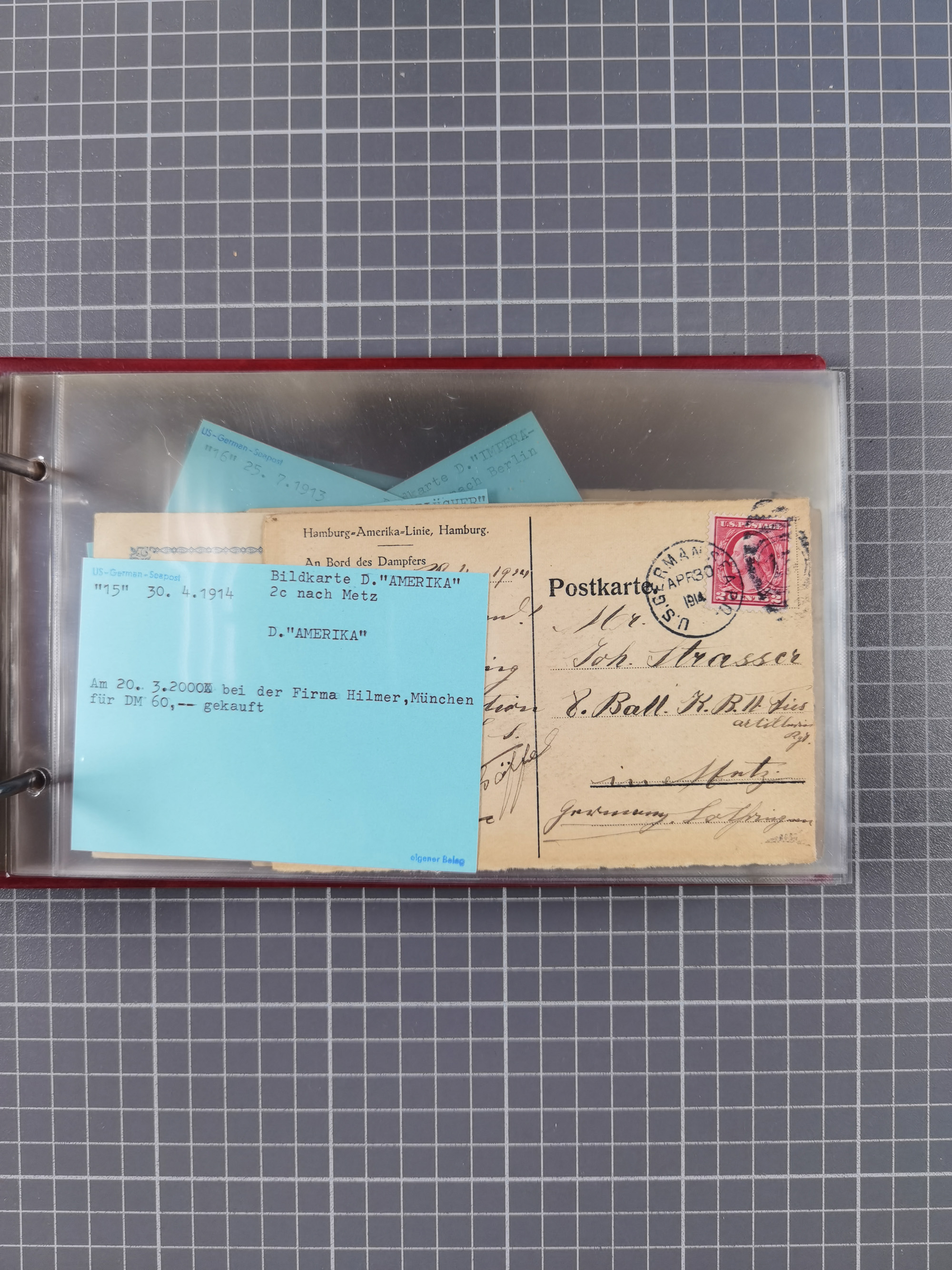1892/1939, umfangreiche Sammlung “U.S. GERMAN SEA POST” mit ca. 400 Briefen, Karten und Ganzsachen, Schwerpunkt vor 1920 mit den Dublex-Stempeln mit Nr. 1-16, dabei verschiedene Verwendungen mit besseren (u.a. auf Briefen/Karten vom D. Reich), 1 R-GSU und weiteren Besonderheiten. Dazu noch einige Schiffs-Ansichtskarten, bei vielen Belegen mit Vermerken zu den Schiffen usw. und meist in guter Erhaltung. Eine in diesem Umfang seltene Sammlung in sechs Alben, ex Steinmeyer