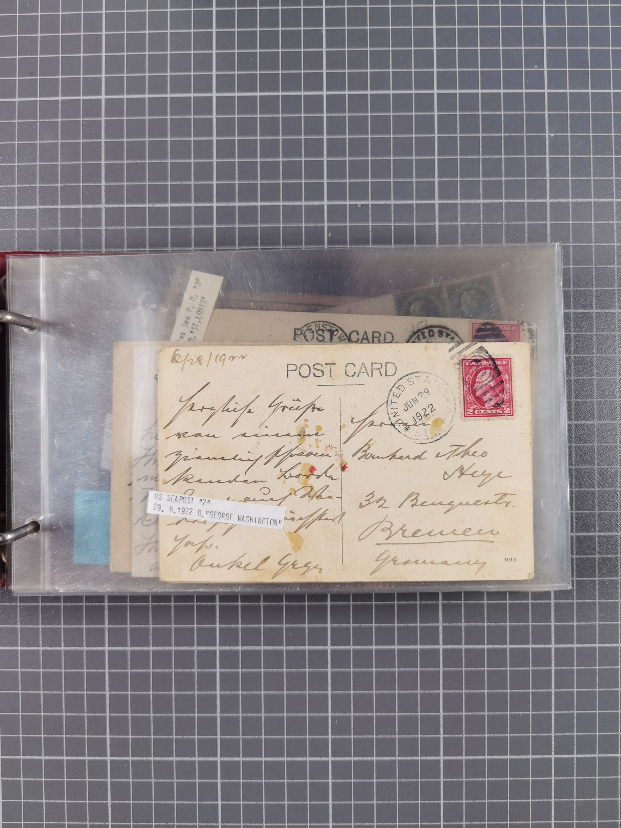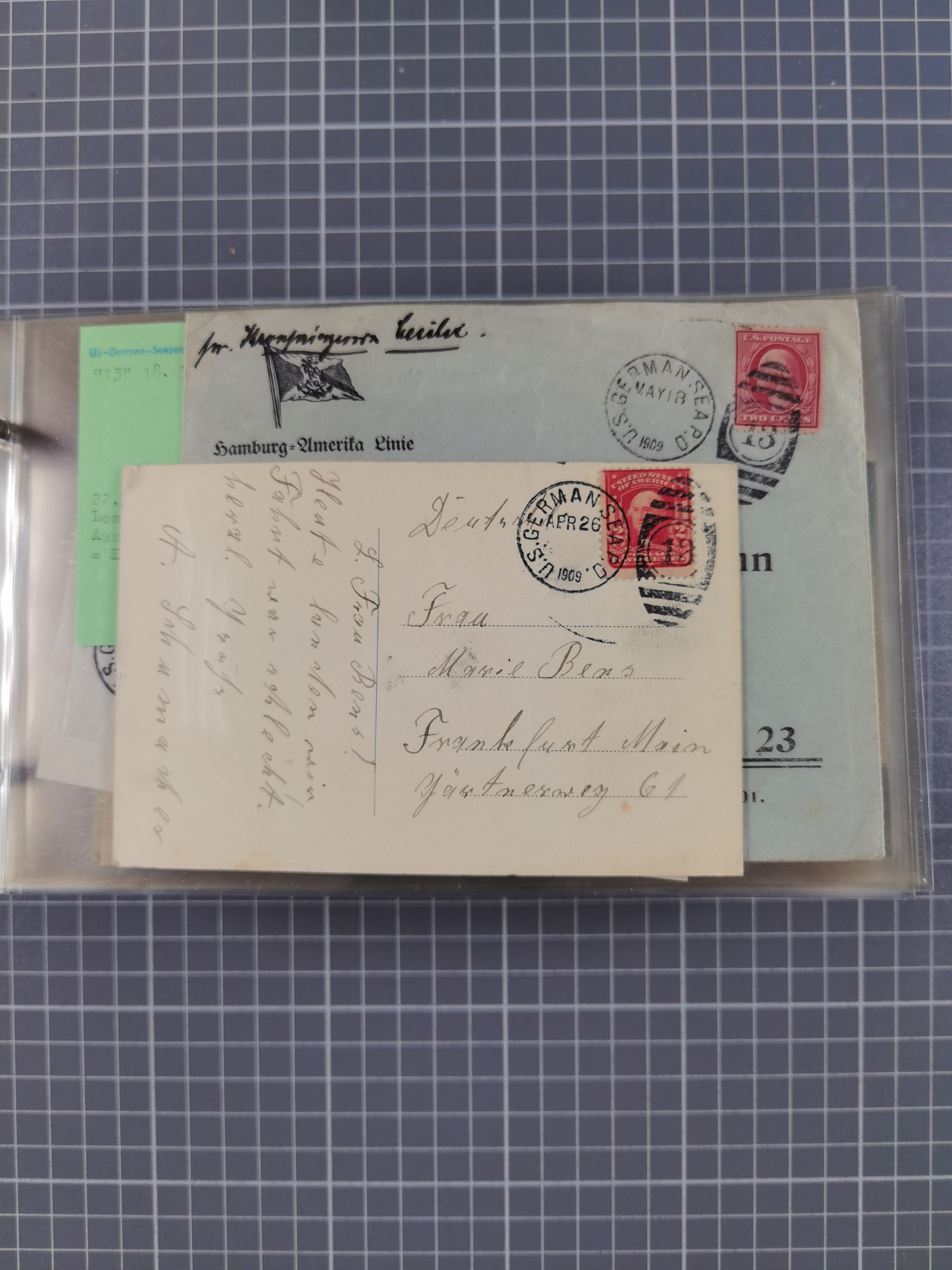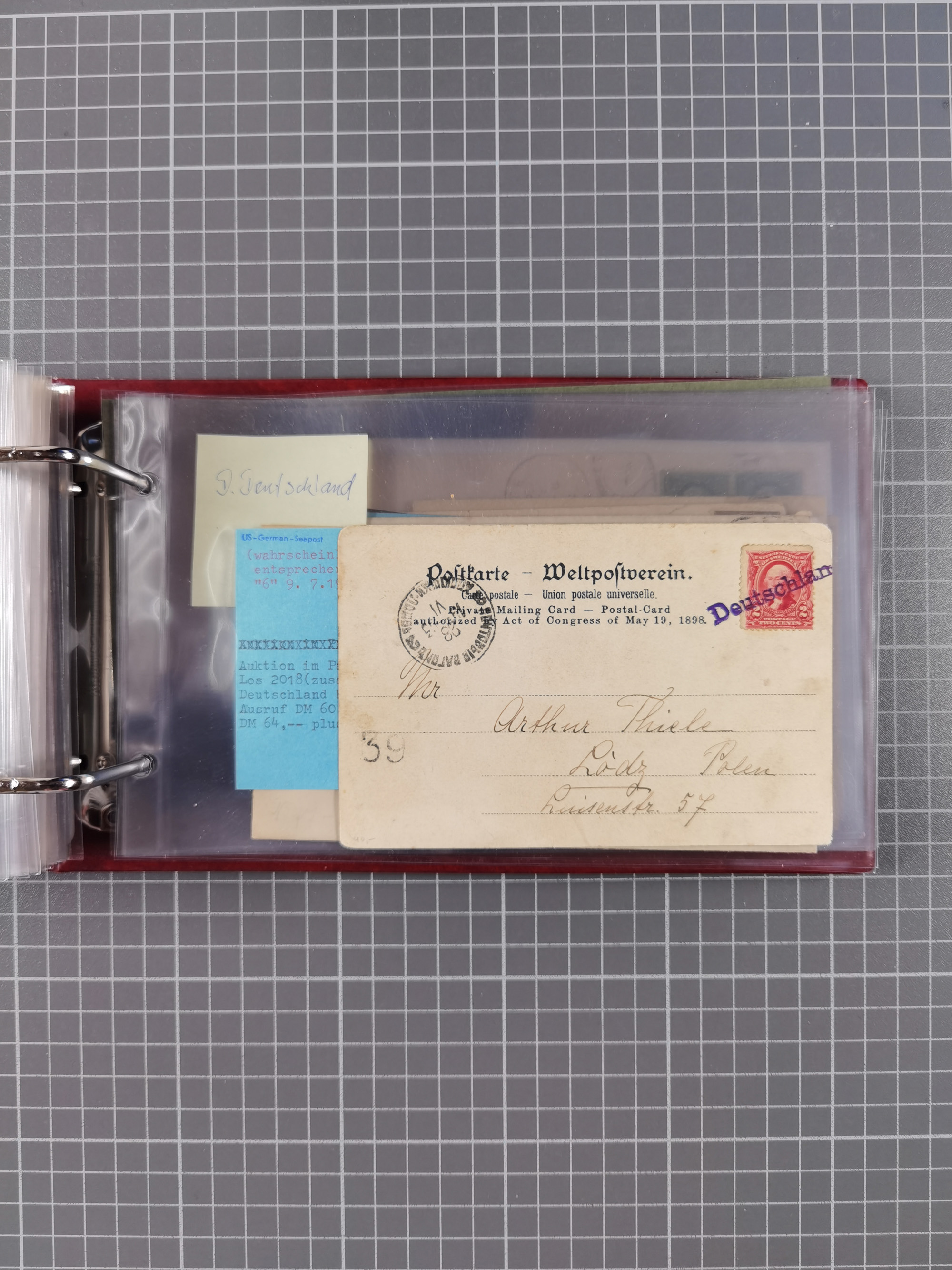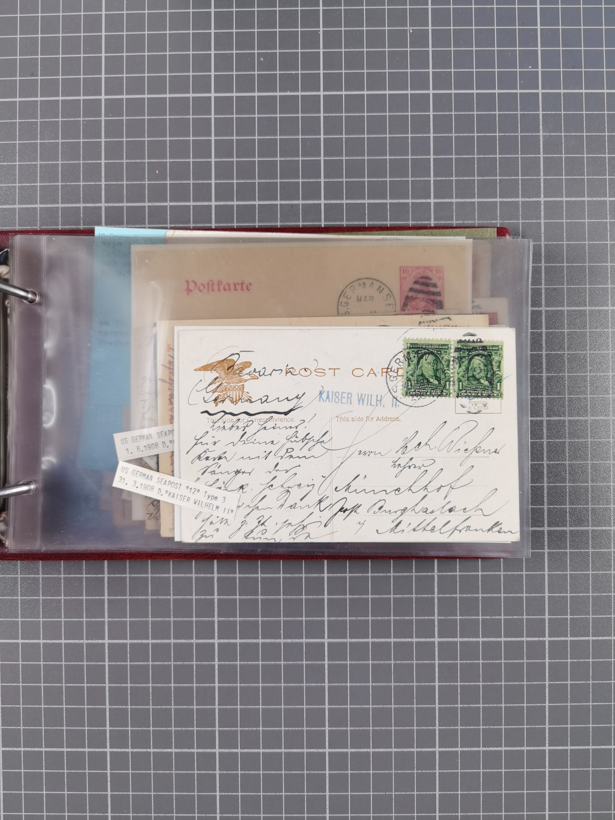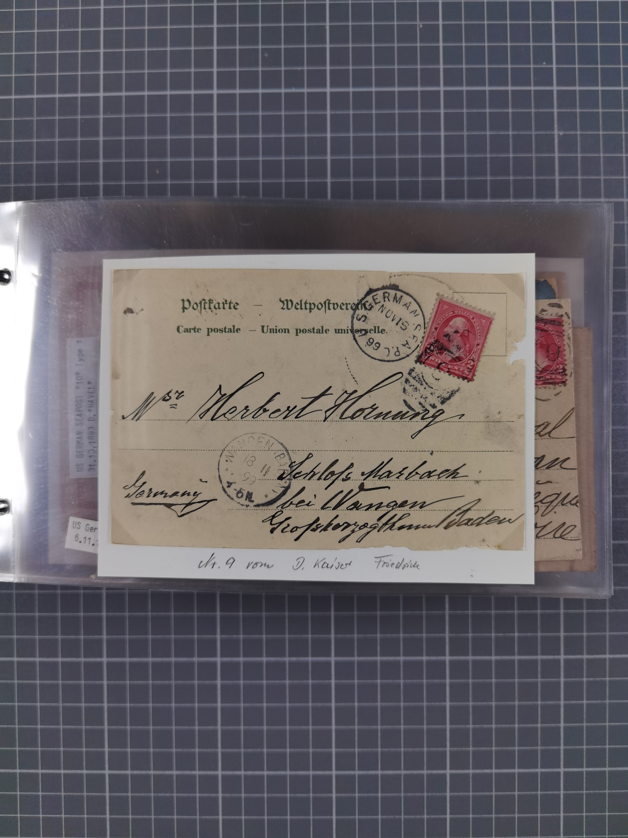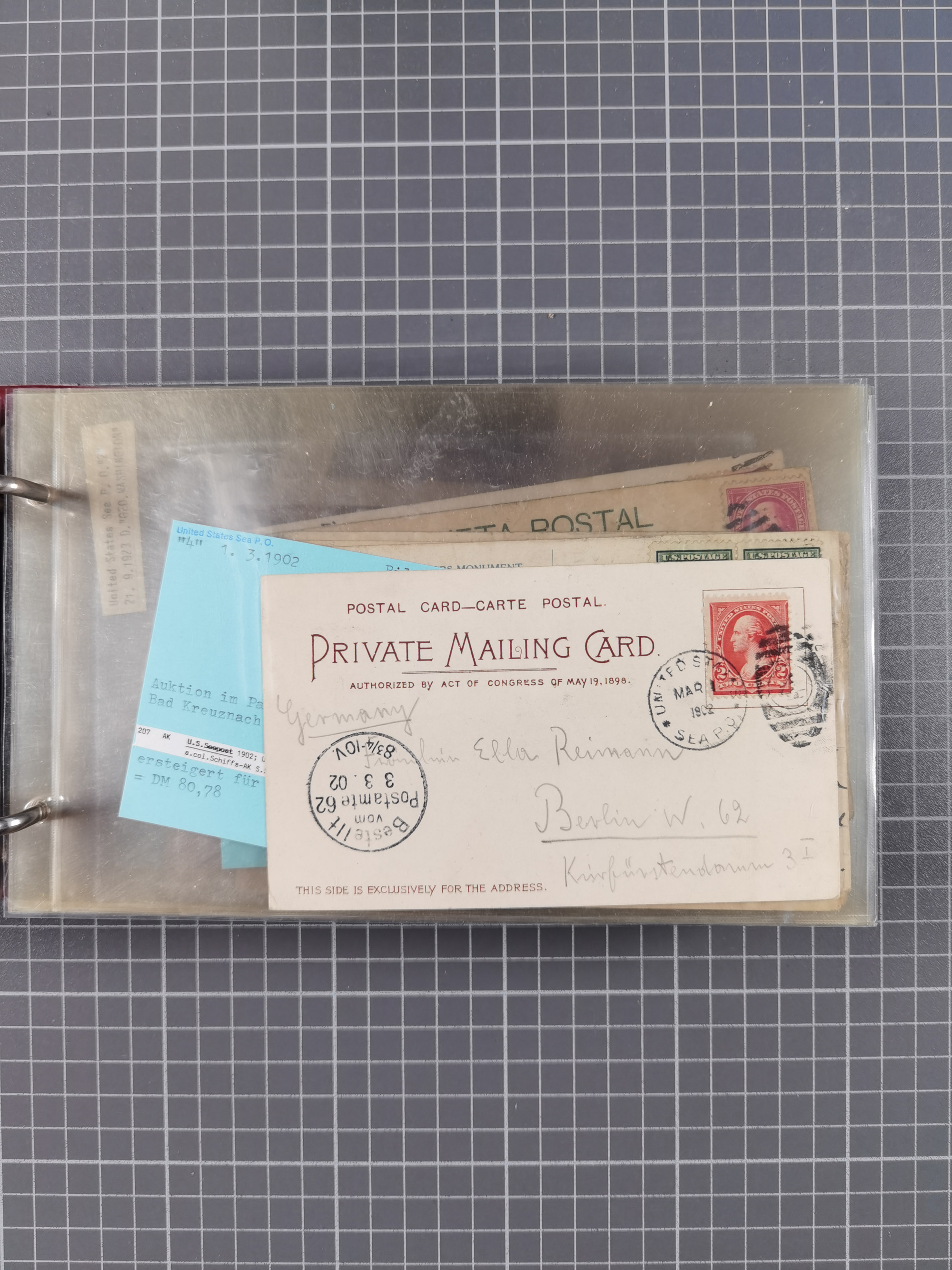 1892/1939, umfangreiche Sammlung “U.S. GERMAN SEA POST” mit ca. 400 Briefen, Karten und Ganzsachen, Schwerpunkt vor 1920 mit den Dublex-Stempeln mit Nr. 1-16, dabei verschiedene Verwendungen mit besseren (u.a. auf Briefen/Karten vom D. Reich), 1 R-GSU und weiteren Besonderheiten. Dazu noch einige Schiffs-Ansichtskarten, bei vielen Belegen mit Vermerken zu den Schiffen usw. und meist in guter Erhaltung. Eine in diesem Umfang seltene Sammlung in sechs Alben, ex Steinmeyer