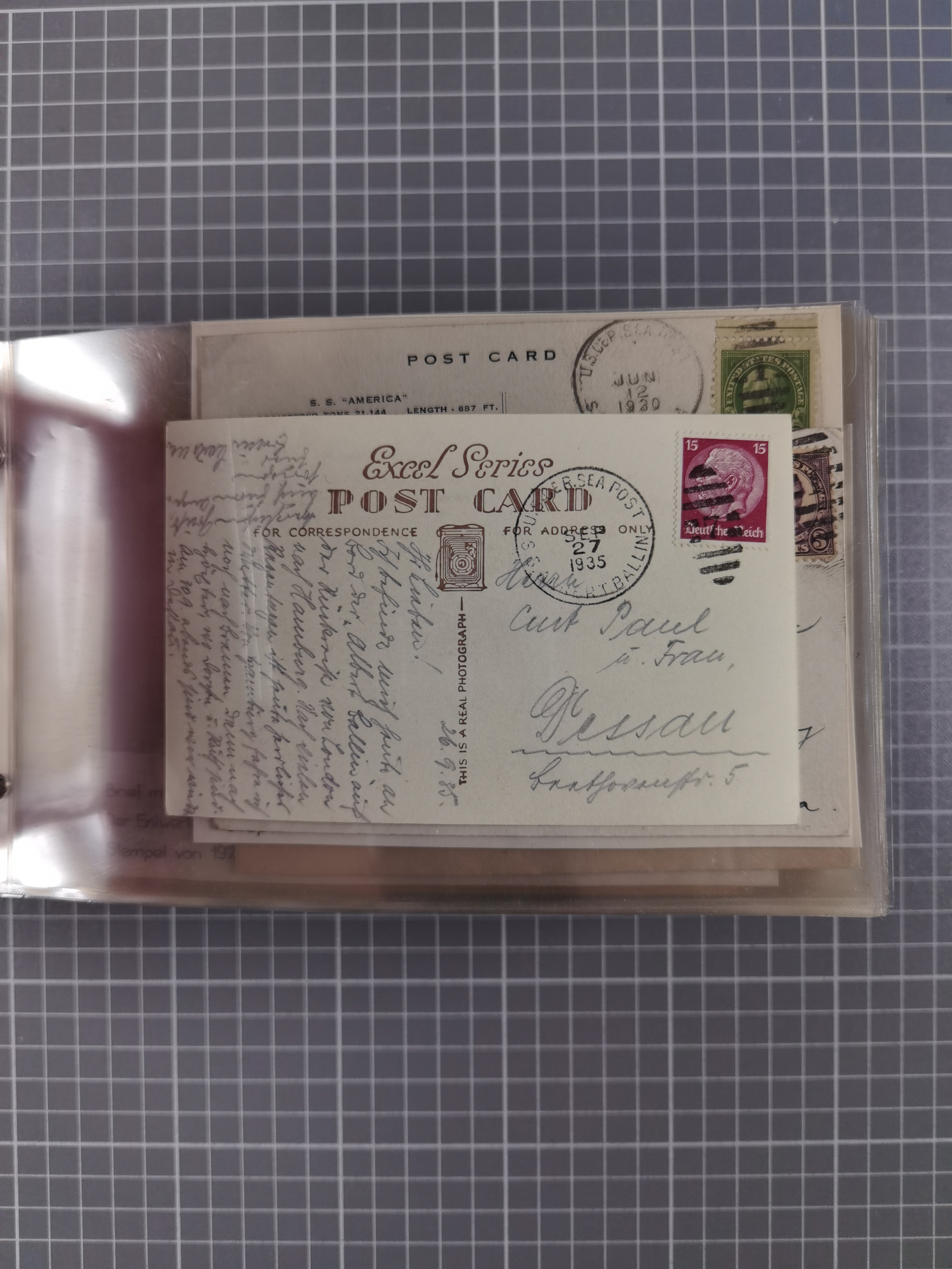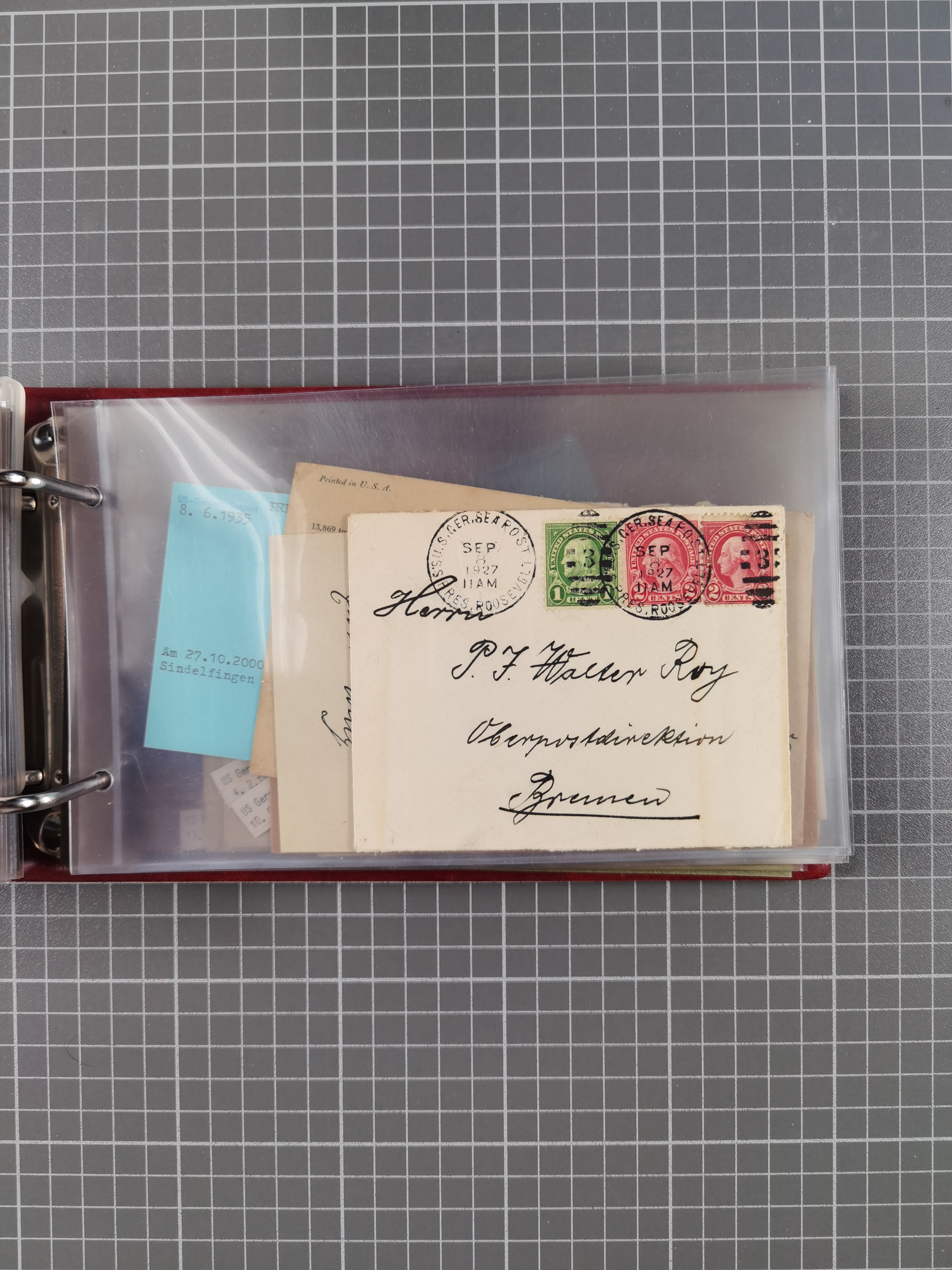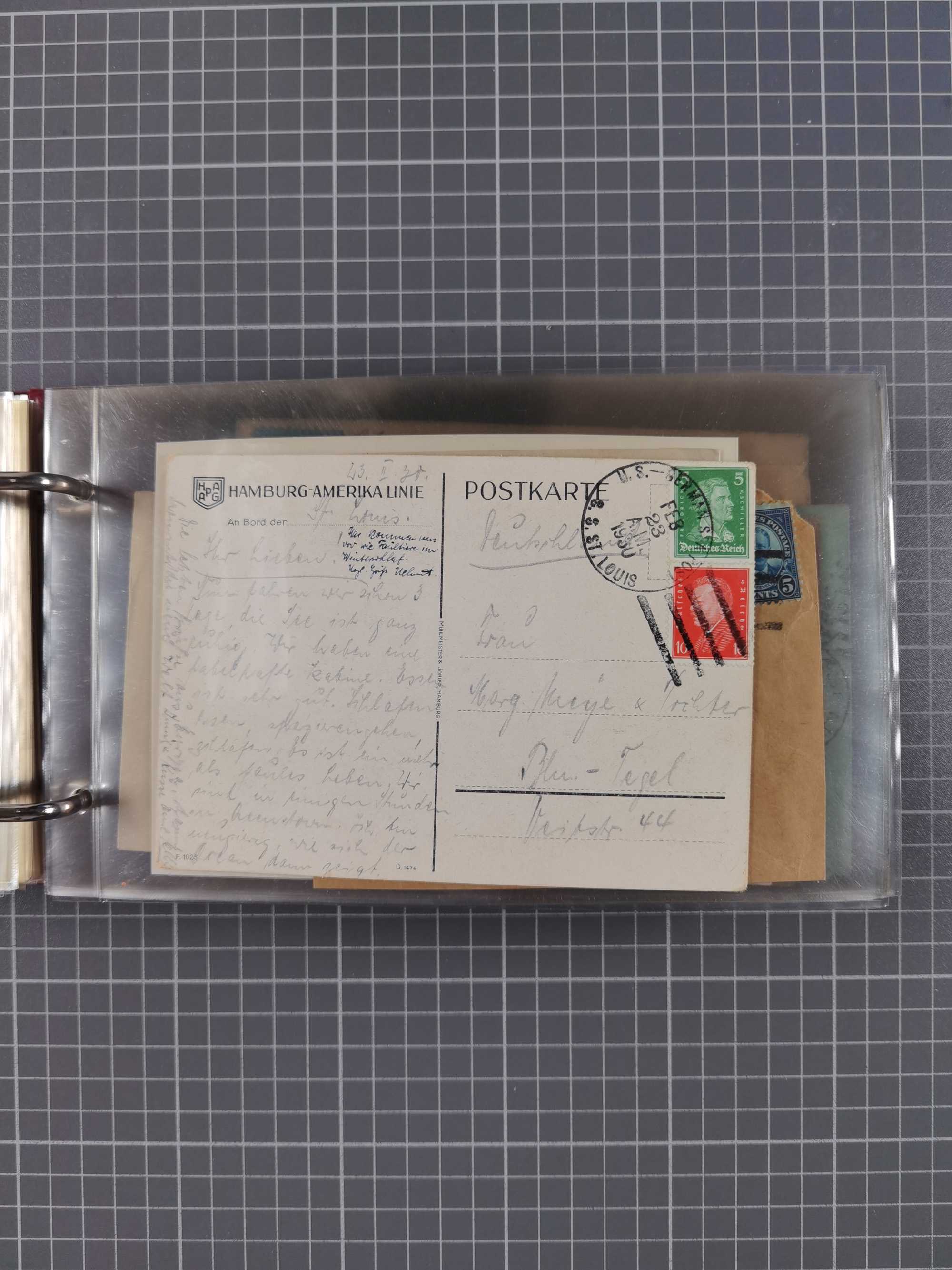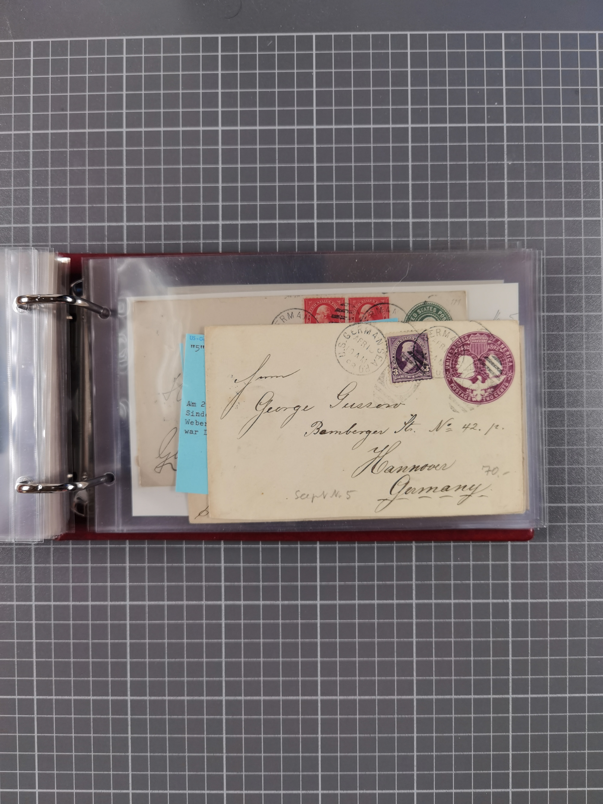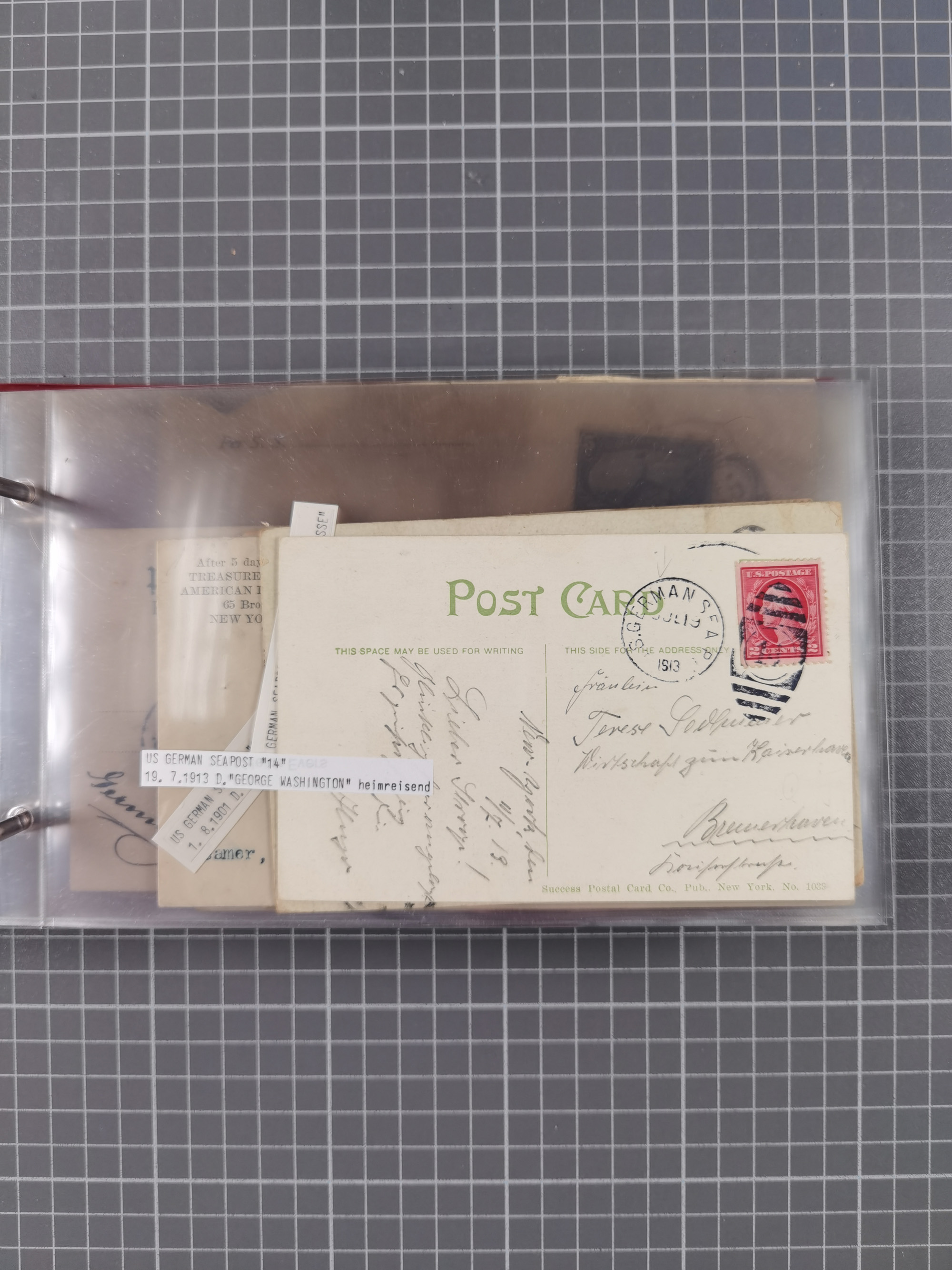 1892/1939, umfangreiche Sammlung “U.S. GERMAN SEA POST” mit ca. 400 Briefen, Karten und Ganzsachen, Schwerpunkt vor 1920 mit den Dublex-Stempeln mit Nr. 1-16, dabei verschiedene Verwendungen mit besseren (u.a. auf Briefen/Karten vom D. Reich), 1 R-GSU und weiteren Besonderheiten. Dazu noch einige Schiffs-Ansichtskarten, bei vielen Belegen mit Vermerken zu den Schiffen usw. und meist in guter Erhaltung. Eine in diesem Umfang seltene Sammlung in sechs Alben, ex Steinmeyer