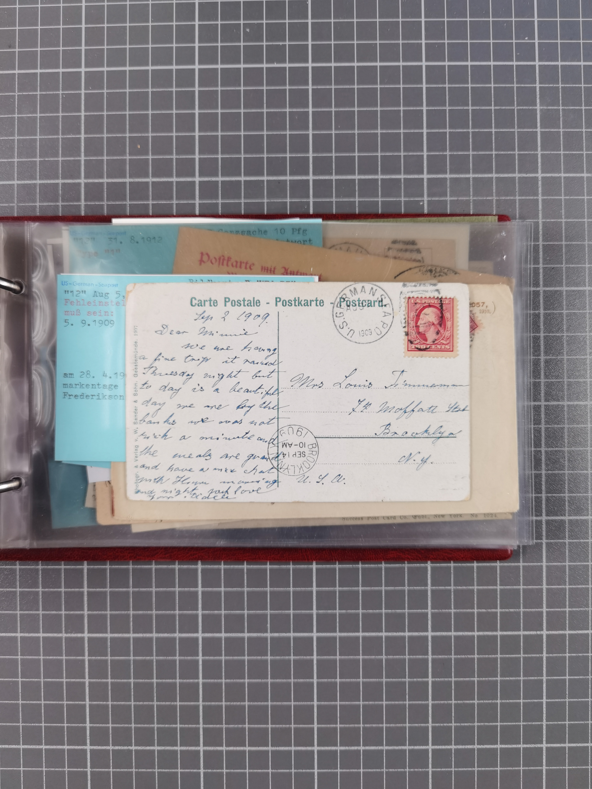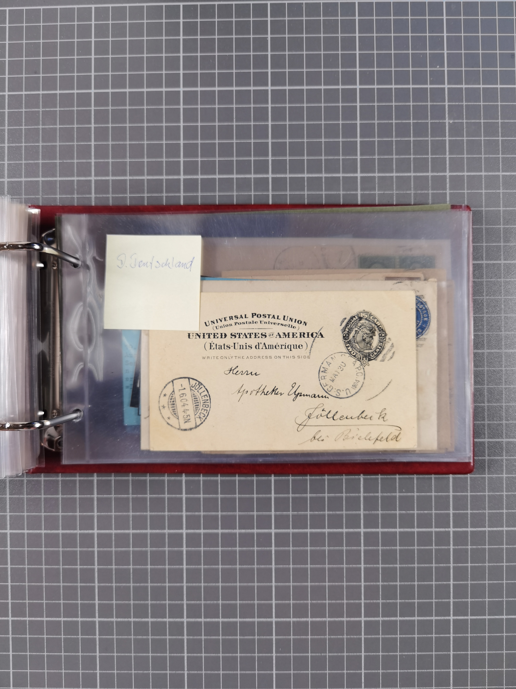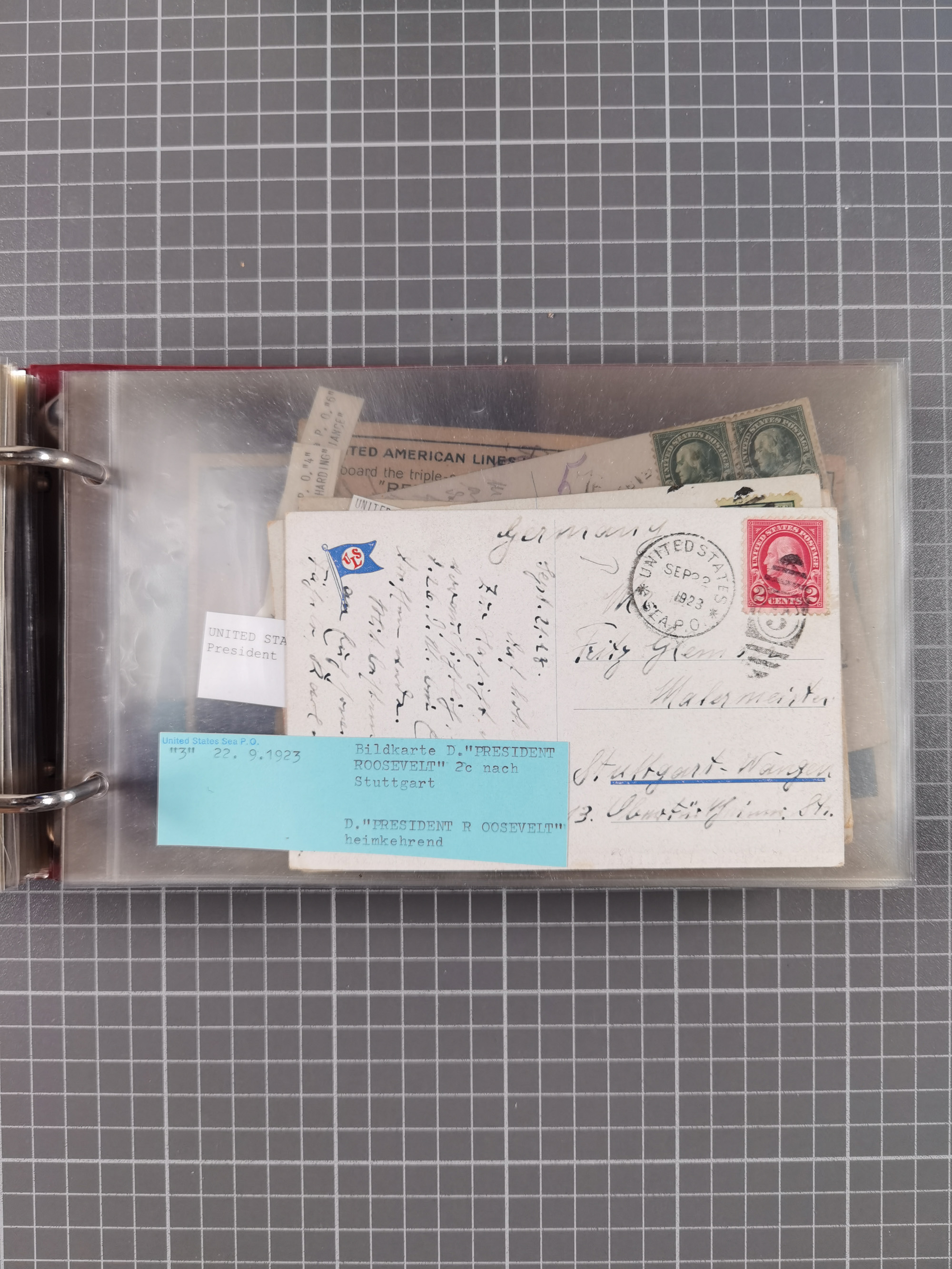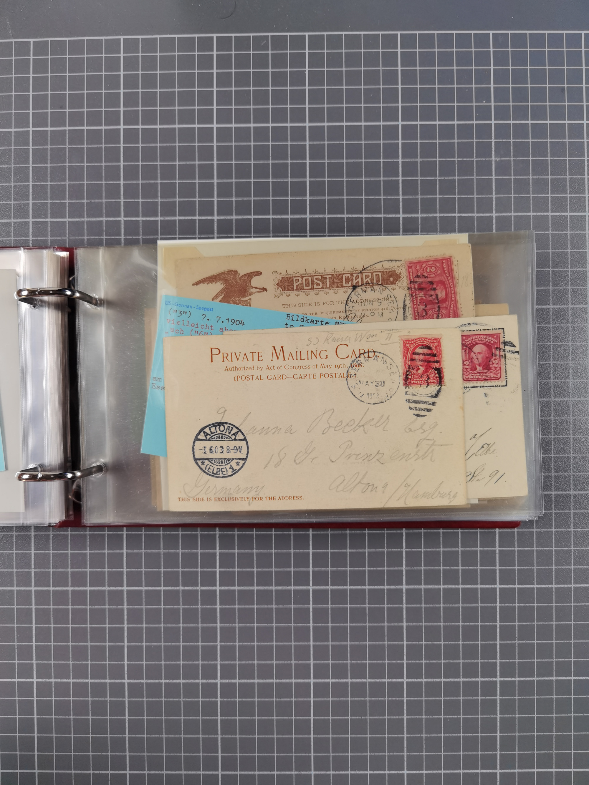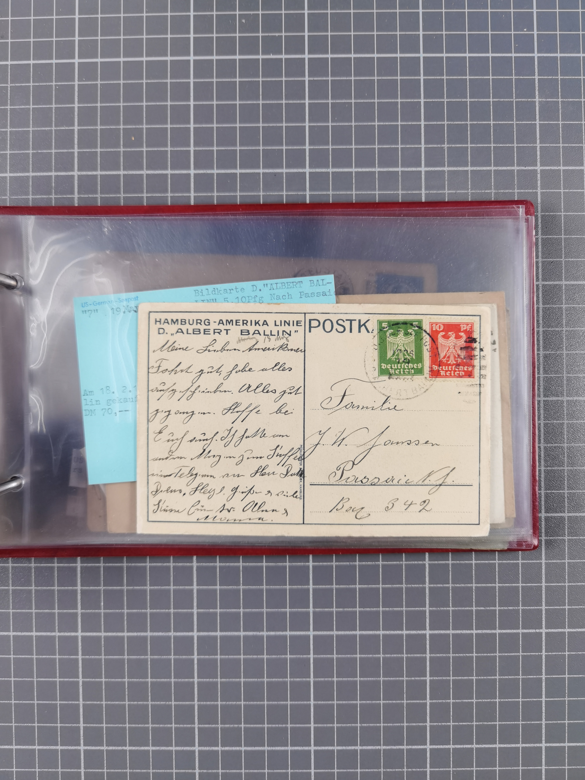 1892/1939, umfangreiche Sammlung “U.S. GERMAN SEA POST” mit ca. 400 Briefen, Karten und Ganzsachen, Schwerpunkt vor 1920 mit den Dublex-Stempeln mit Nr. 1-16, dabei verschiedene Verwendungen mit besseren (u.a. auf Briefen/Karten vom D. Reich), 1 R-GSU und weiteren Besonderheiten. Dazu noch einige Schiffs-Ansichtskarten, bei vielen Belegen mit Vermerken zu den Schiffen usw. und meist in guter Erhaltung. Eine in diesem Umfang seltene Sammlung in sechs Alben, ex Steinmeyer