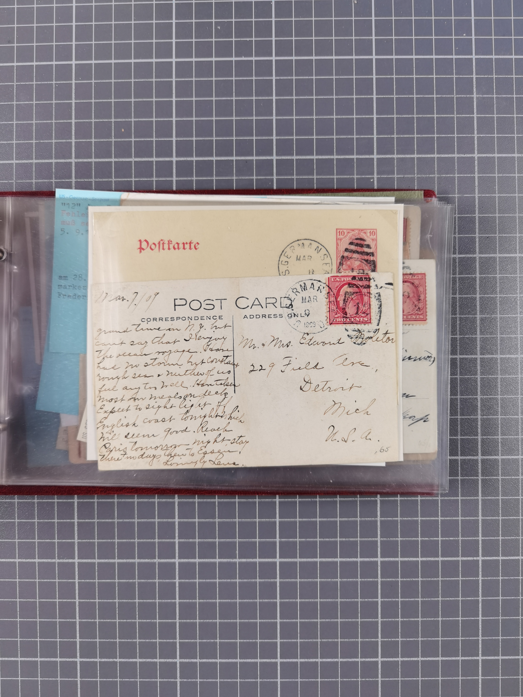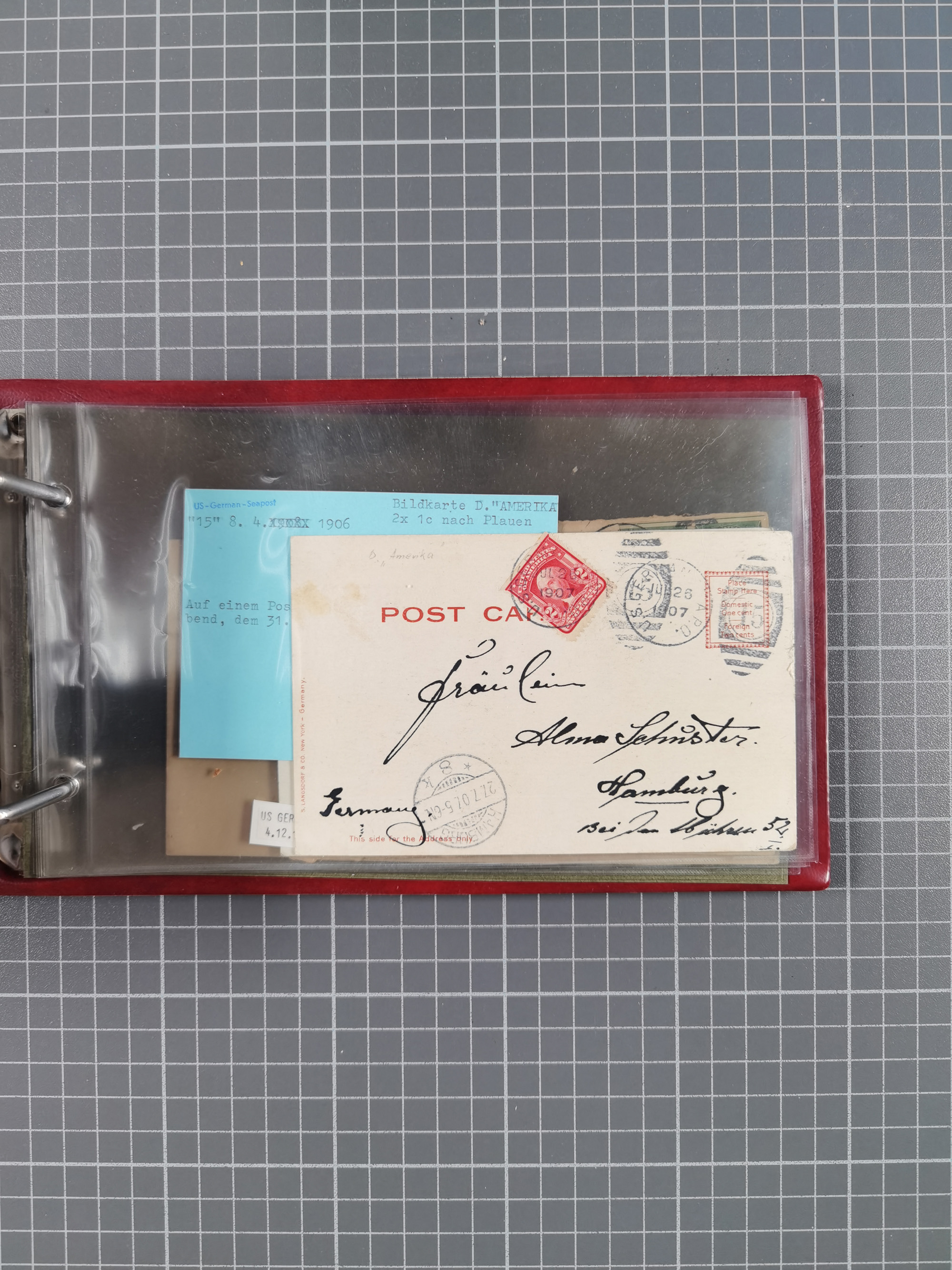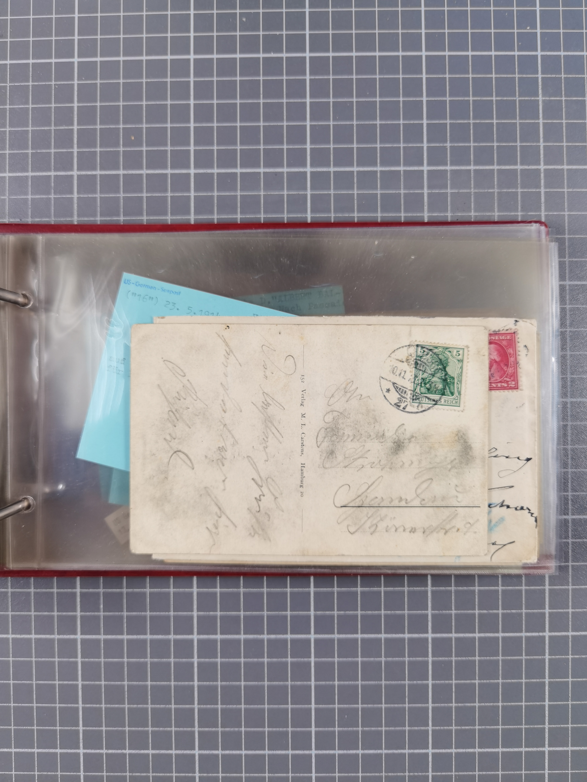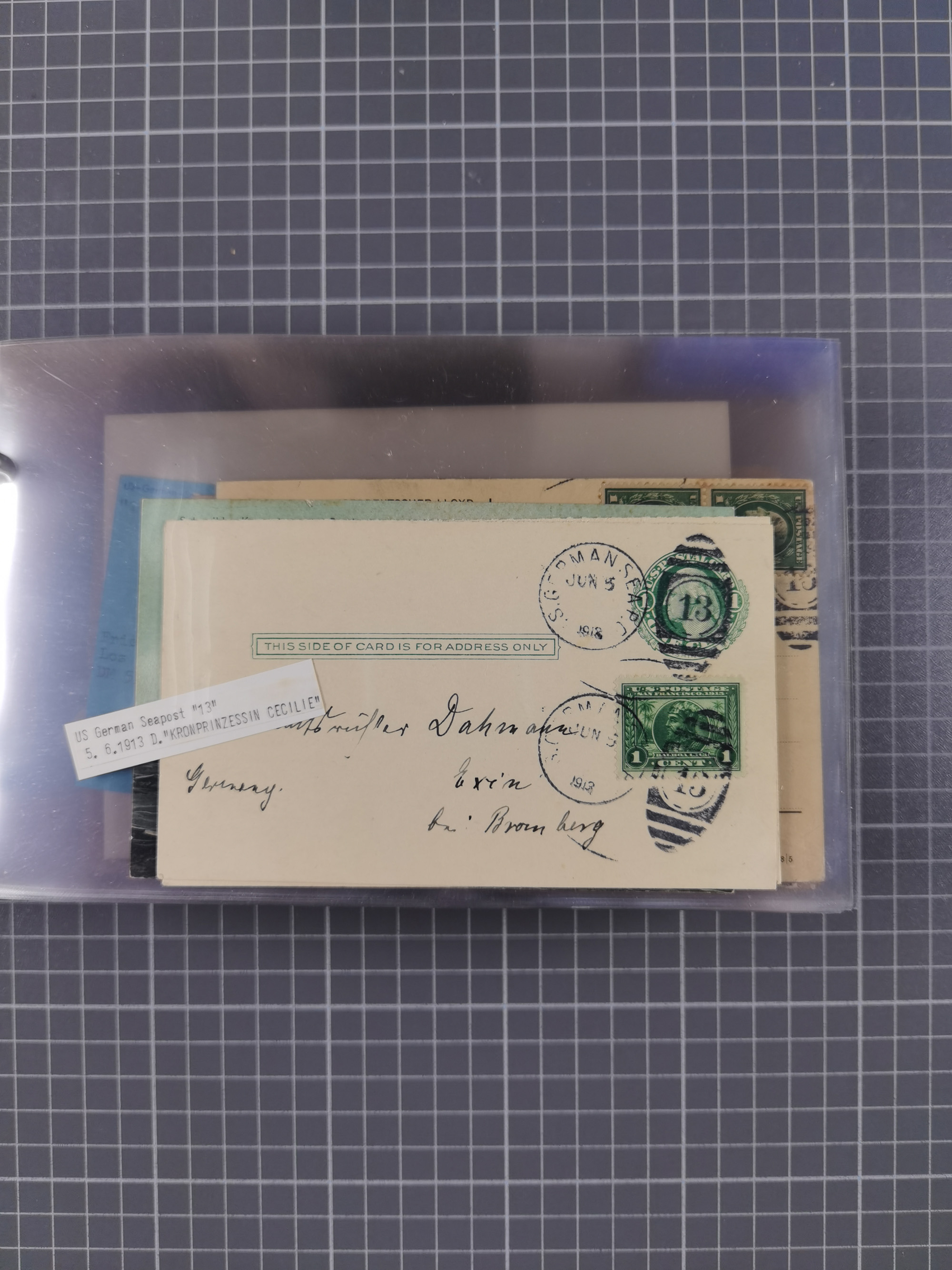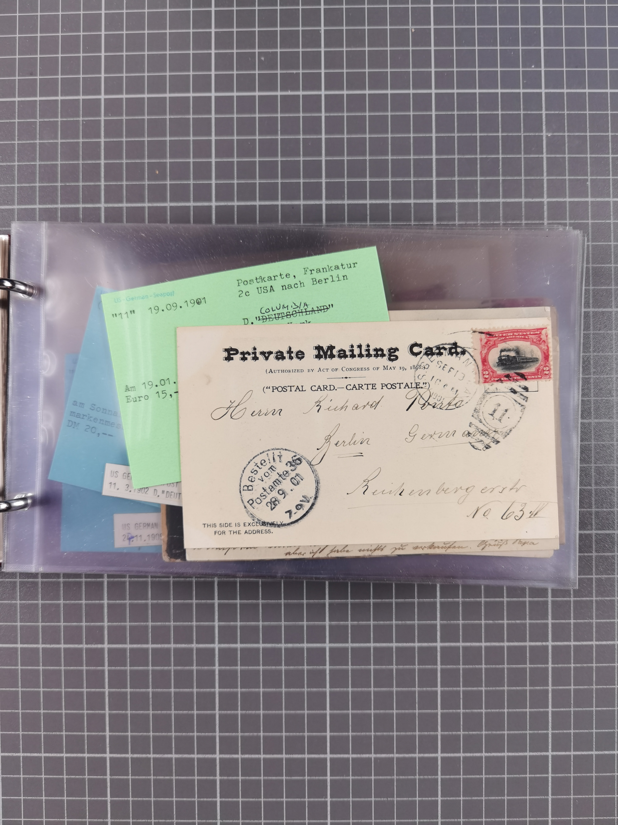 1892/1939, umfangreiche Sammlung “U.S. GERMAN SEA POST” mit ca. 400 Briefen, Karten und Ganzsachen, Schwerpunkt vor 1920 mit den Dublex-Stempeln mit Nr. 1-16, dabei verschiedene Verwendungen mit besseren (u.a. auf Briefen/Karten vom D. Reich), 1 R-GSU und weiteren Besonderheiten. Dazu noch einige Schiffs-Ansichtskarten, bei vielen Belegen mit Vermerken zu den Schiffen usw. und meist in guter Erhaltung. Eine in diesem Umfang seltene Sammlung in sechs Alben, ex Steinmeyer