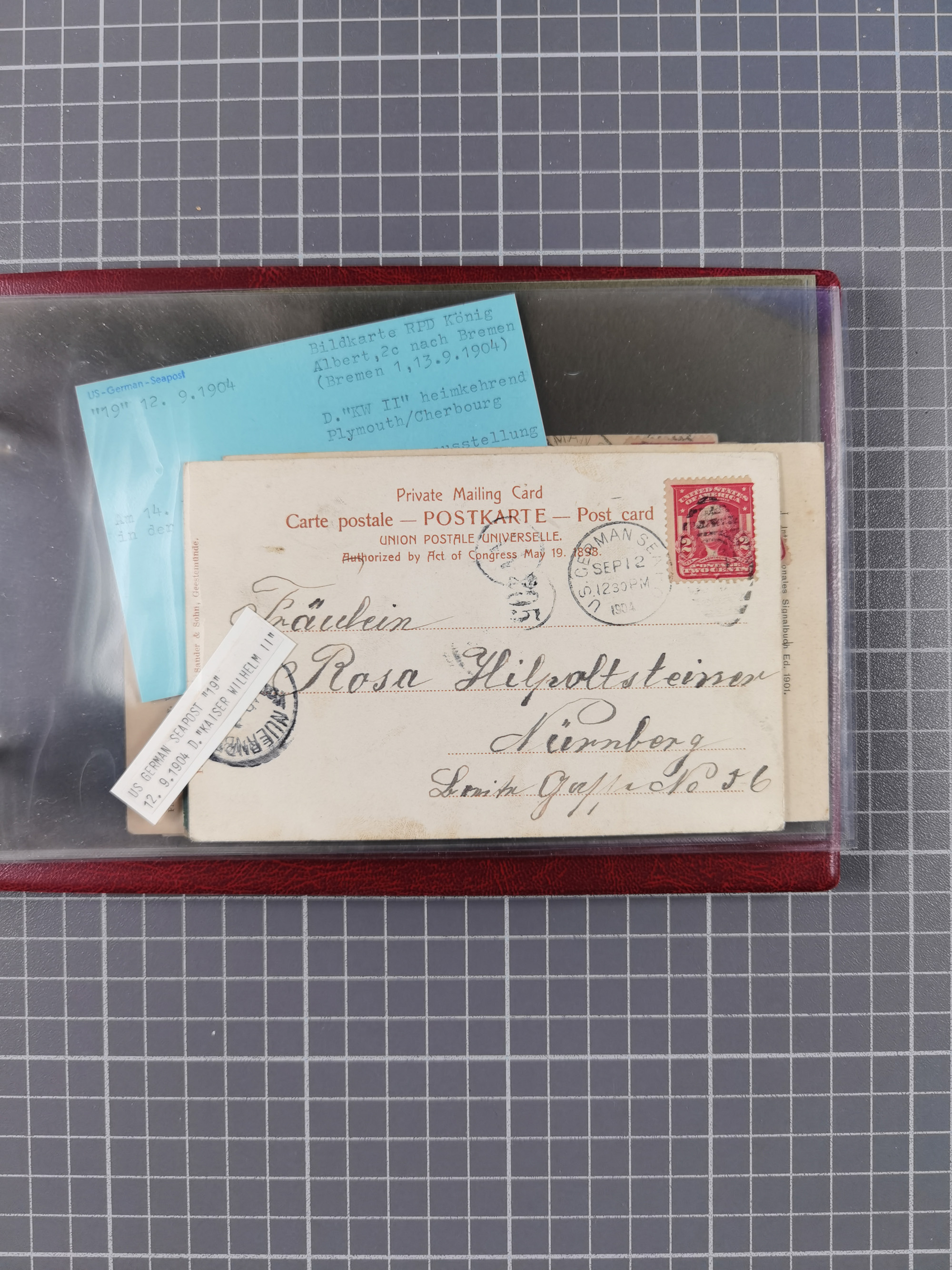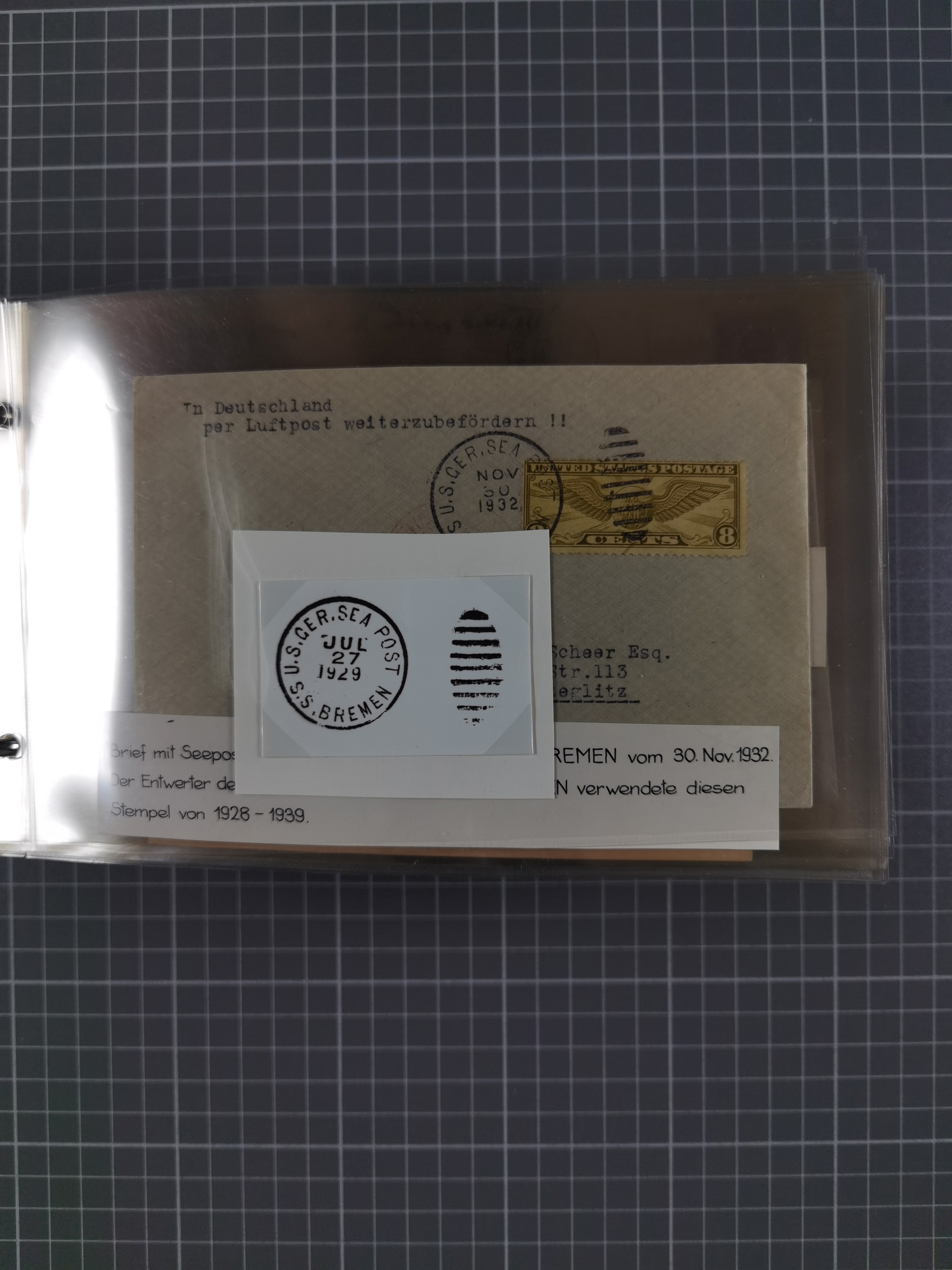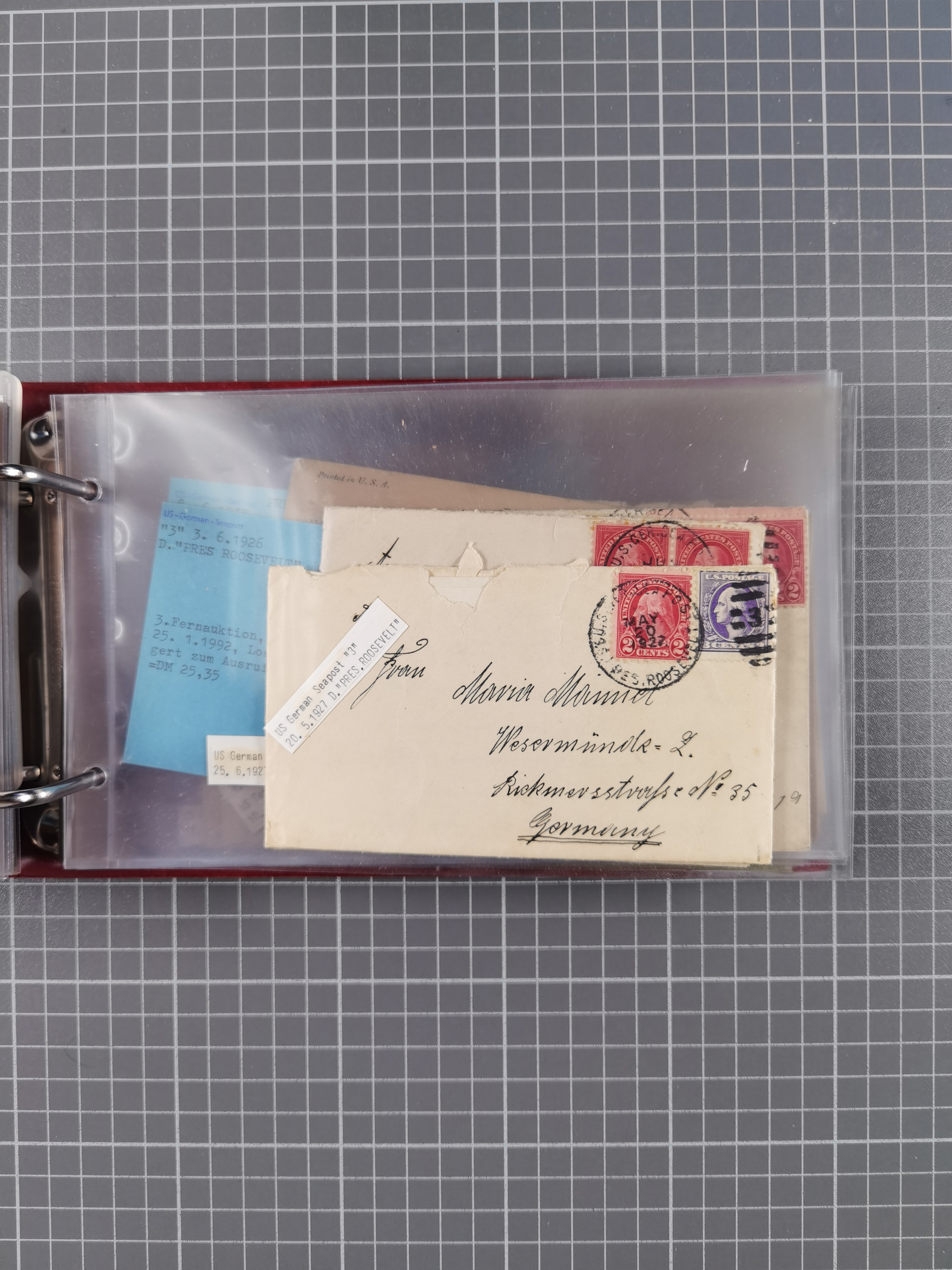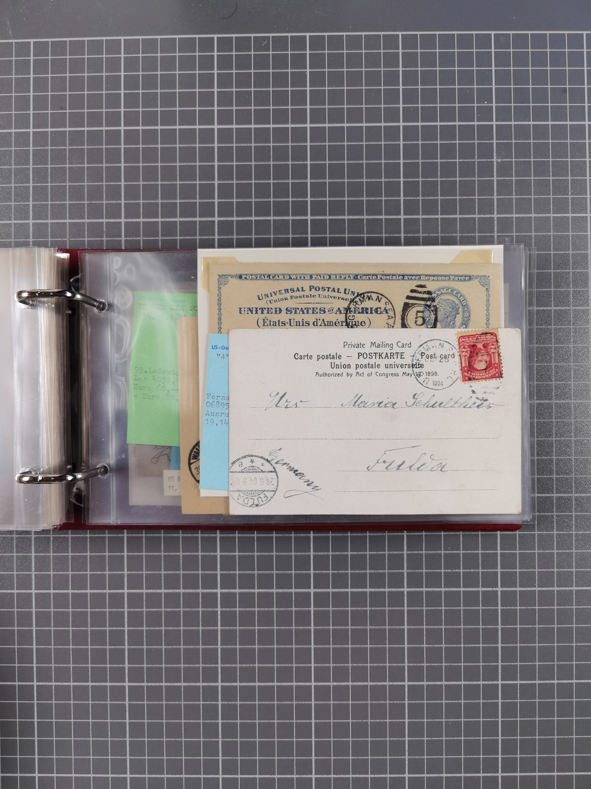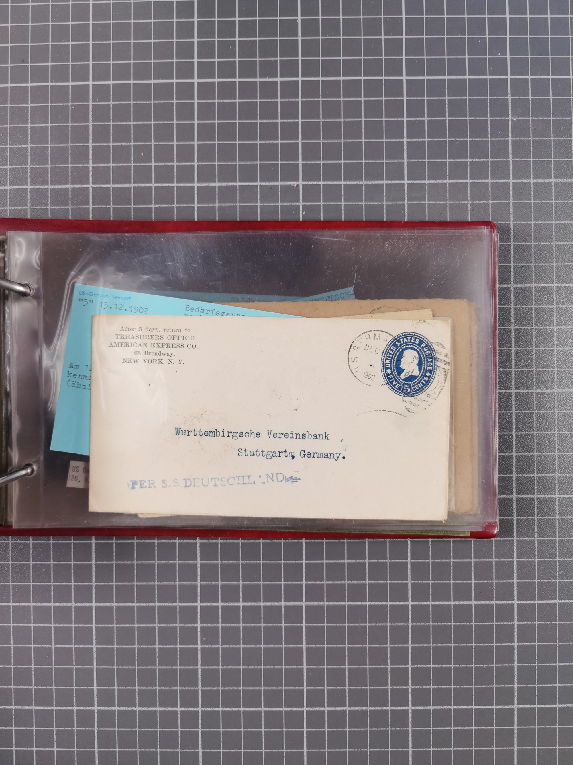 1892/1939, umfangreiche Sammlung “U.S. GERMAN SEA POST” mit ca. 400 Briefen, Karten und Ganzsachen, Schwerpunkt vor 1920 mit den Dublex-Stempeln mit Nr. 1-16, dabei verschiedene Verwendungen mit besseren (u.a. auf Briefen/Karten vom D. Reich), 1 R-GSU und weiteren Besonderheiten. Dazu noch einige Schiffs-Ansichtskarten, bei vielen Belegen mit Vermerken zu den Schiffen usw. und meist in guter Erhaltung. Eine in diesem Umfang seltene Sammlung in sechs Alben, ex Steinmeyer