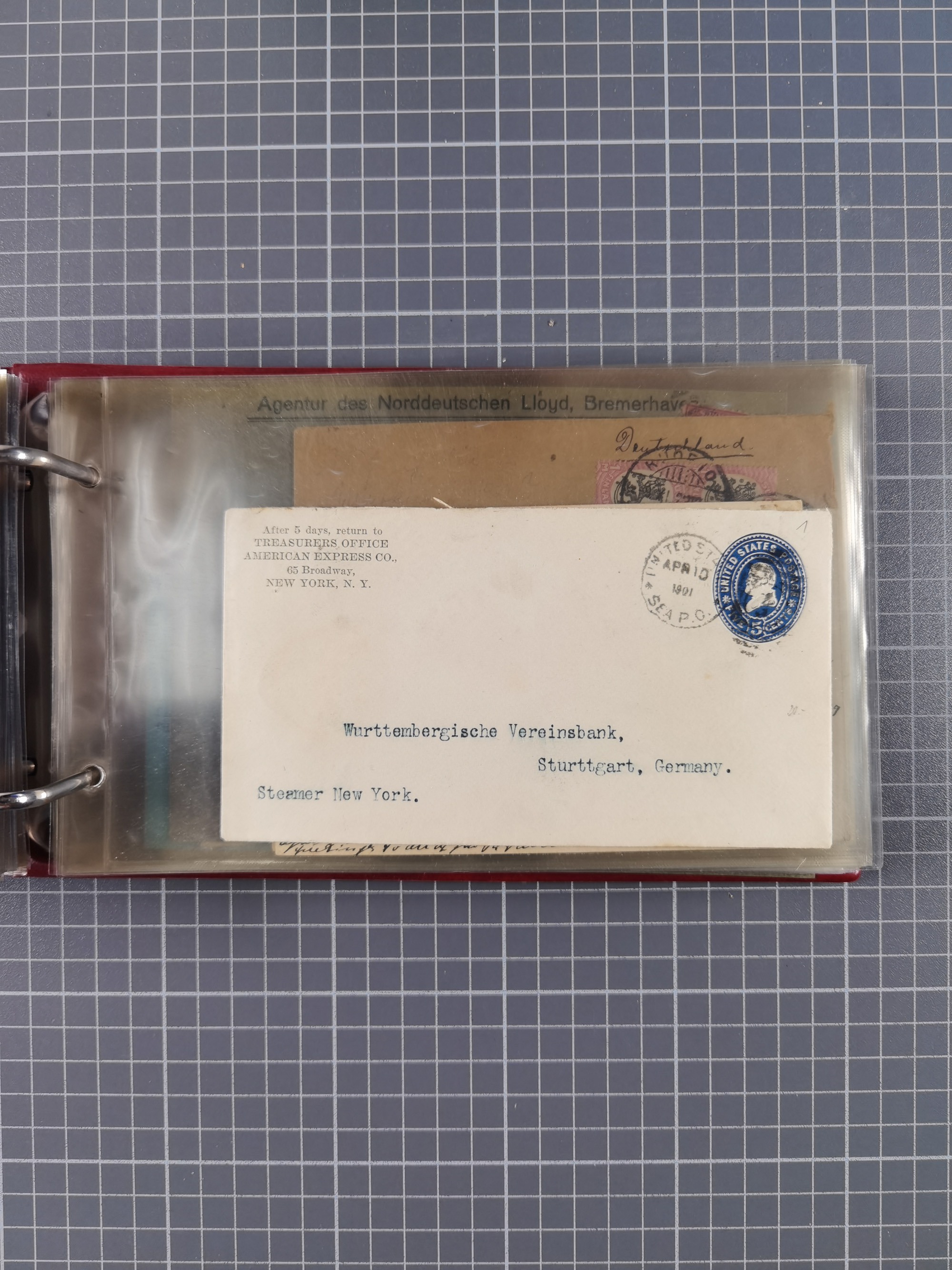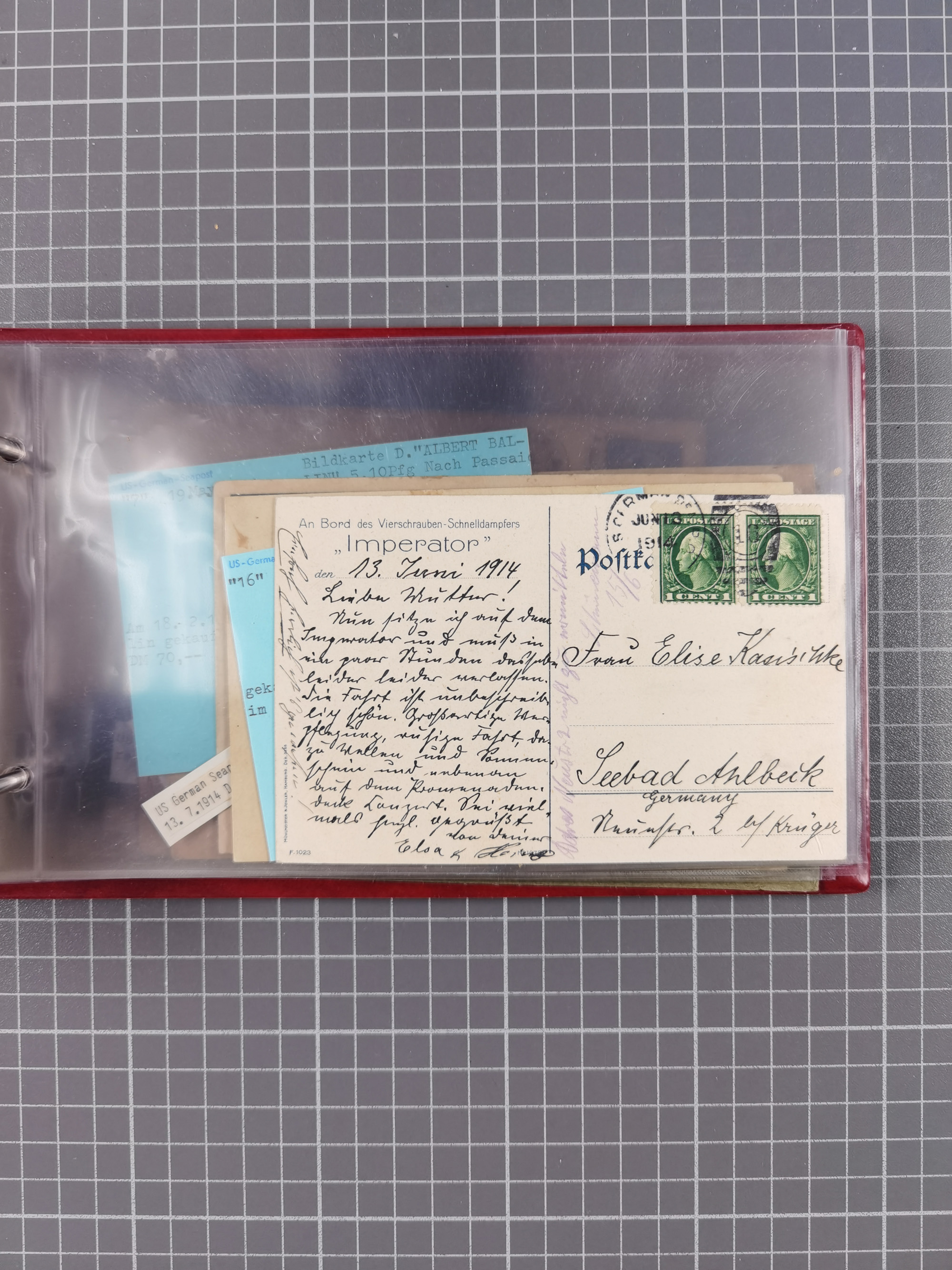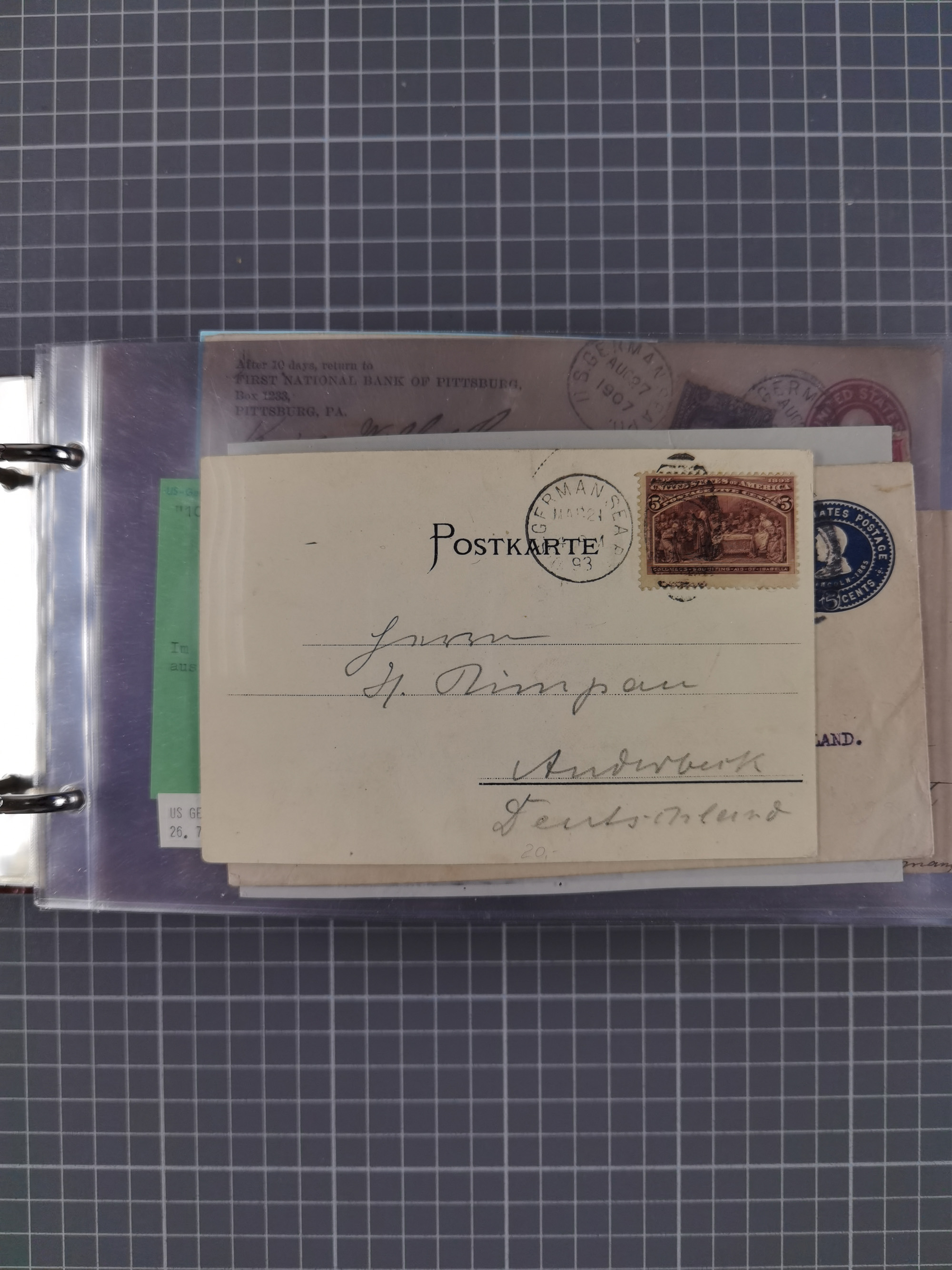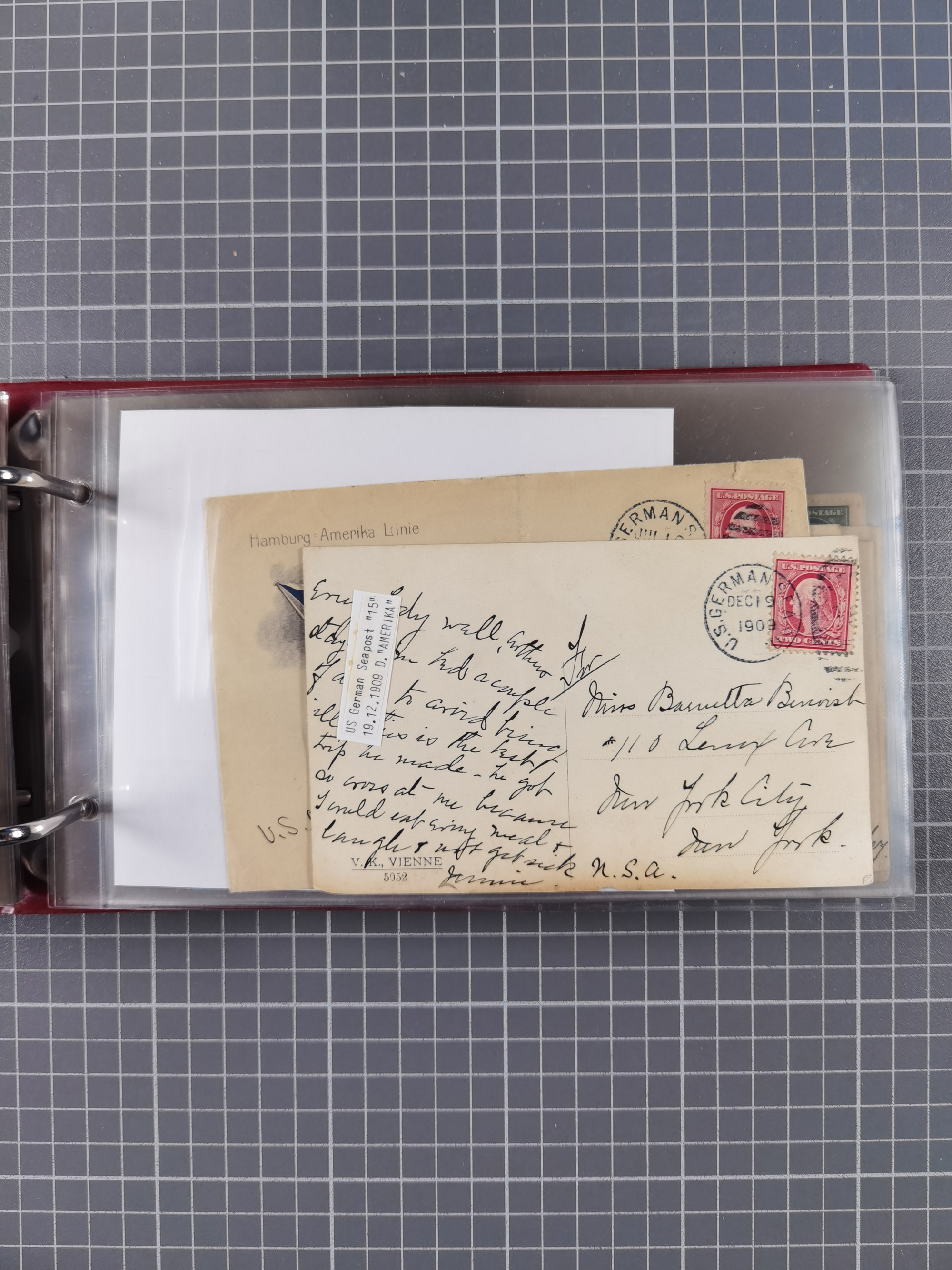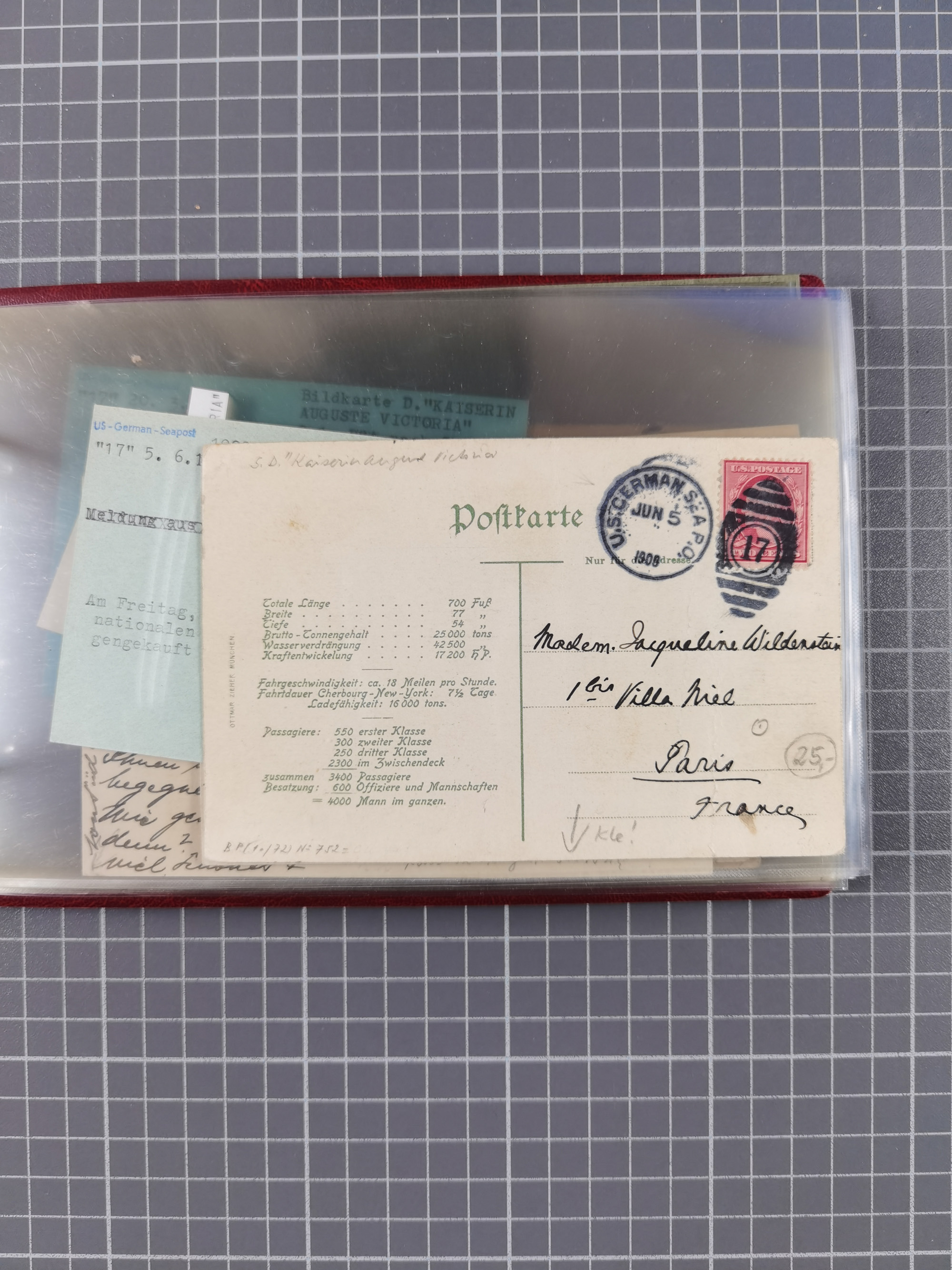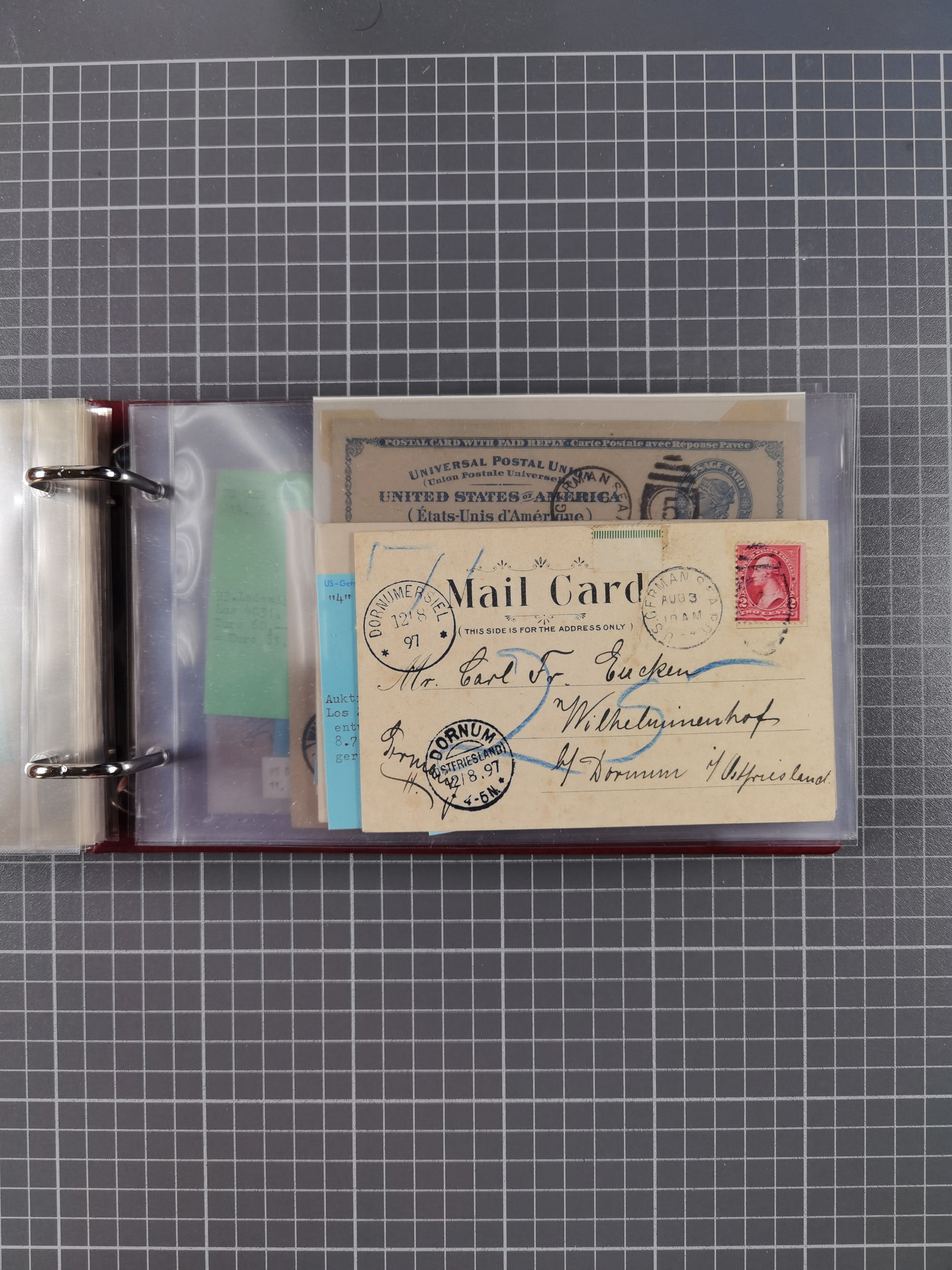 1892/1939, umfangreiche Sammlung “U.S. GERMAN SEA POST” mit ca. 400 Briefen, Karten und Ganzsachen, Schwerpunkt vor 1920 mit den Dublex-Stempeln mit Nr. 1-16, dabei verschiedene Verwendungen mit besseren (u.a. auf Briefen/Karten vom D. Reich), 1 R-GSU und weiteren Besonderheiten. Dazu noch einige Schiffs-Ansichtskarten, bei vielen Belegen mit Vermerken zu den Schiffen usw. und meist in guter Erhaltung. Eine in diesem Umfang seltene Sammlung in sechs Alben, ex Steinmeyer