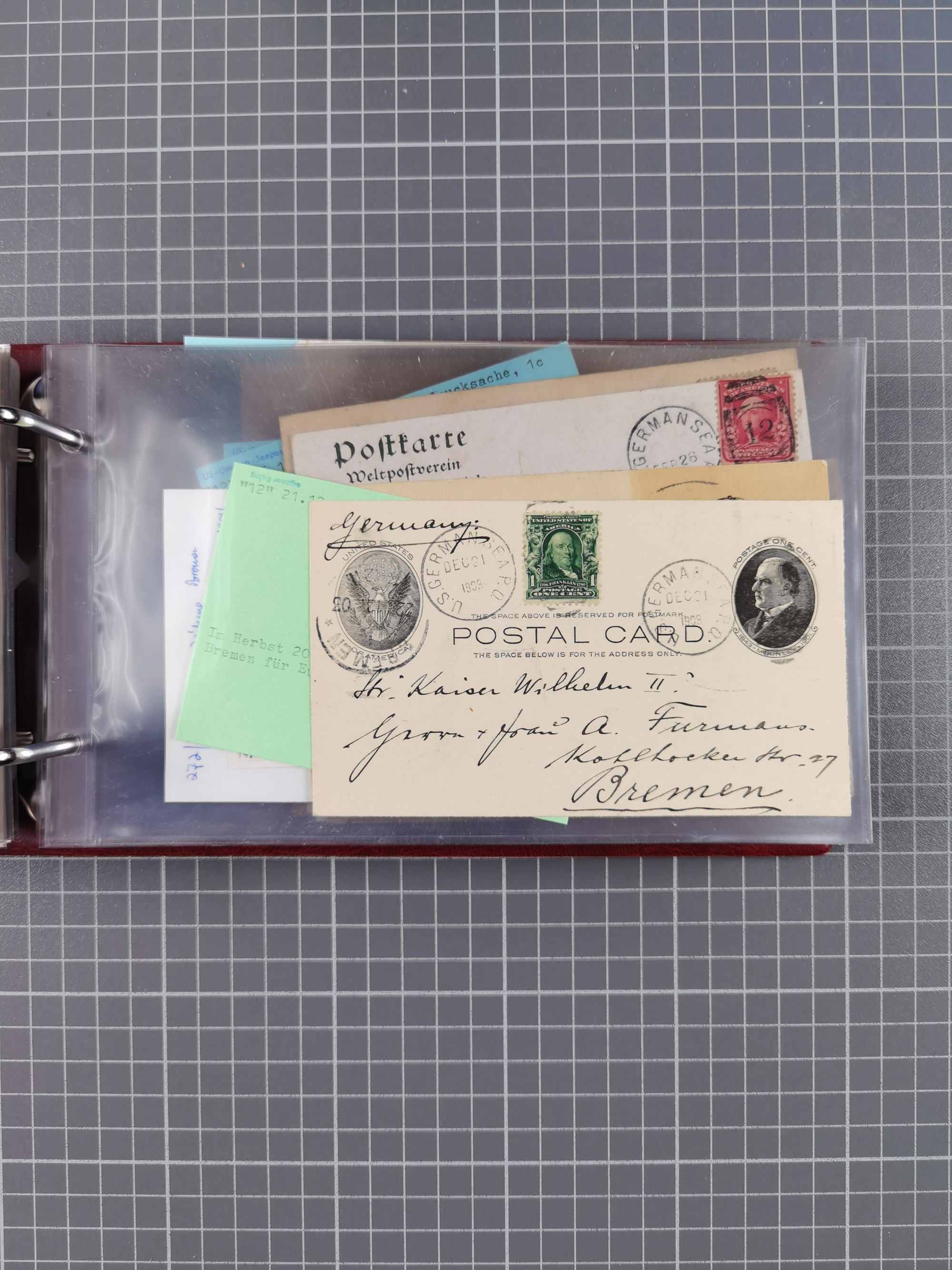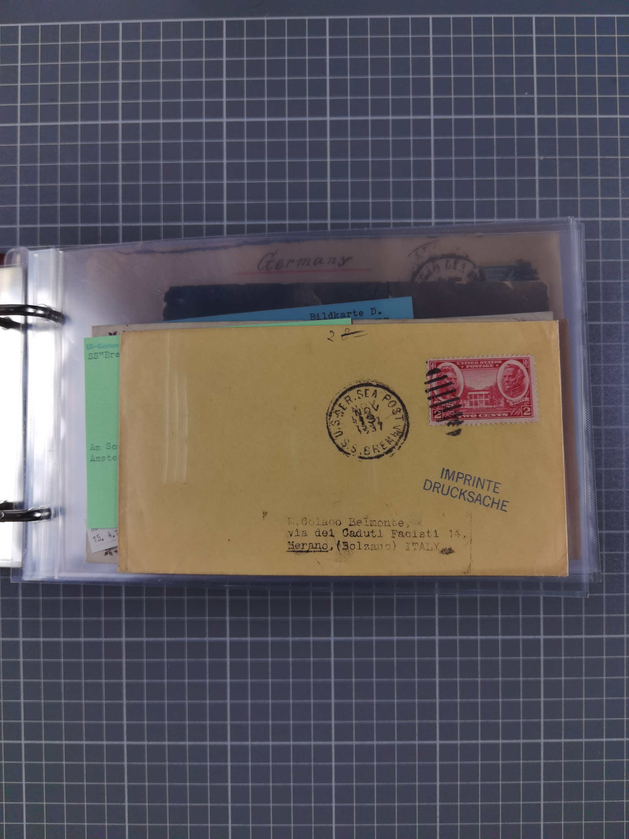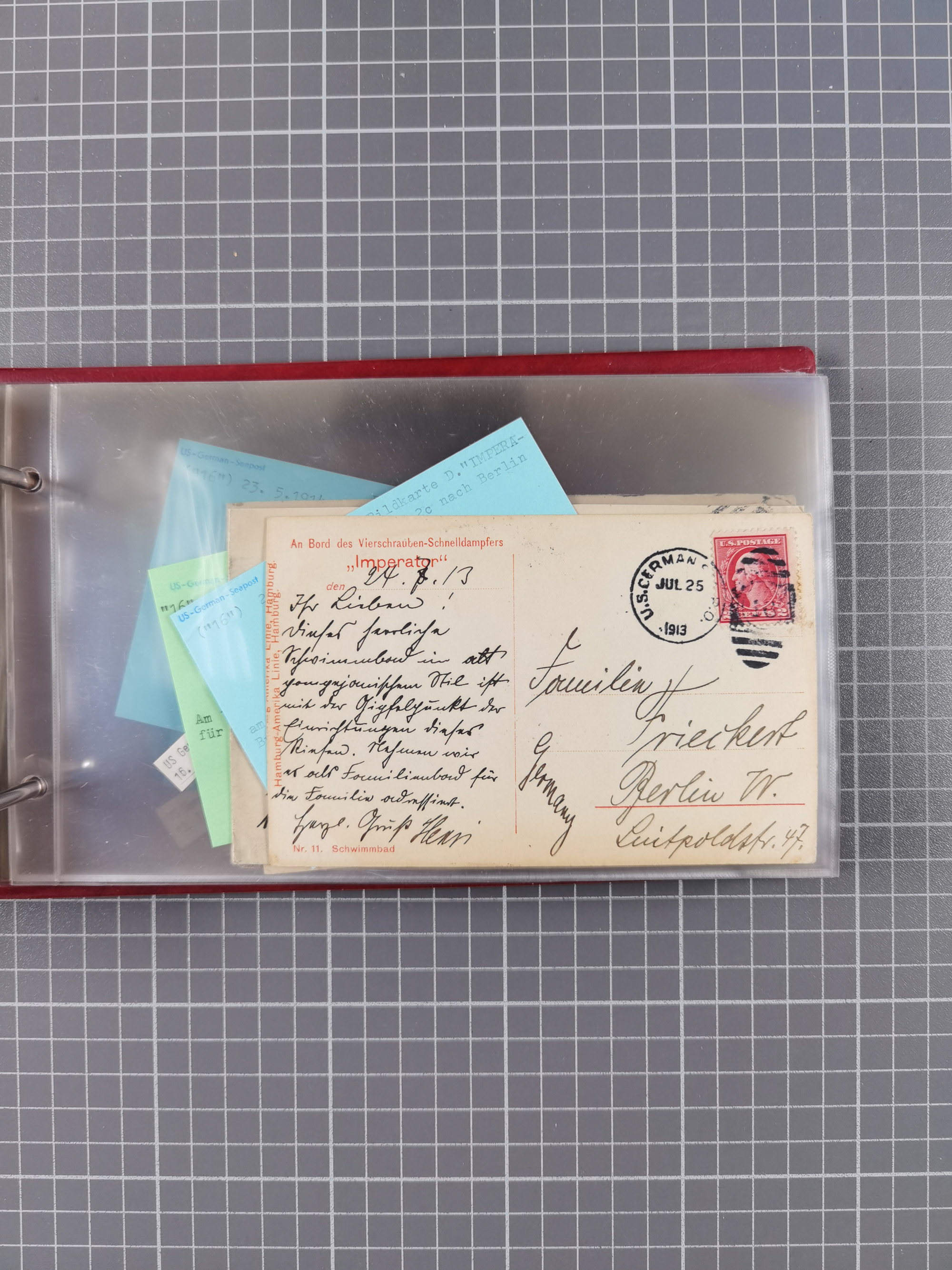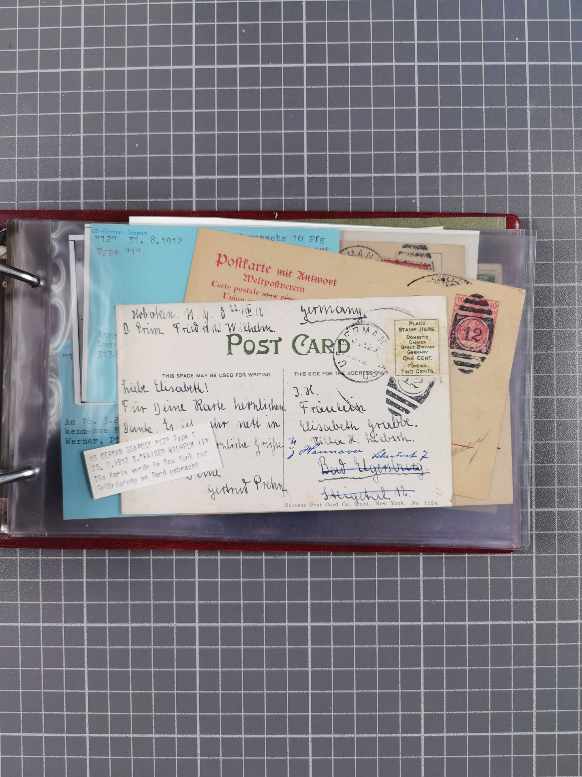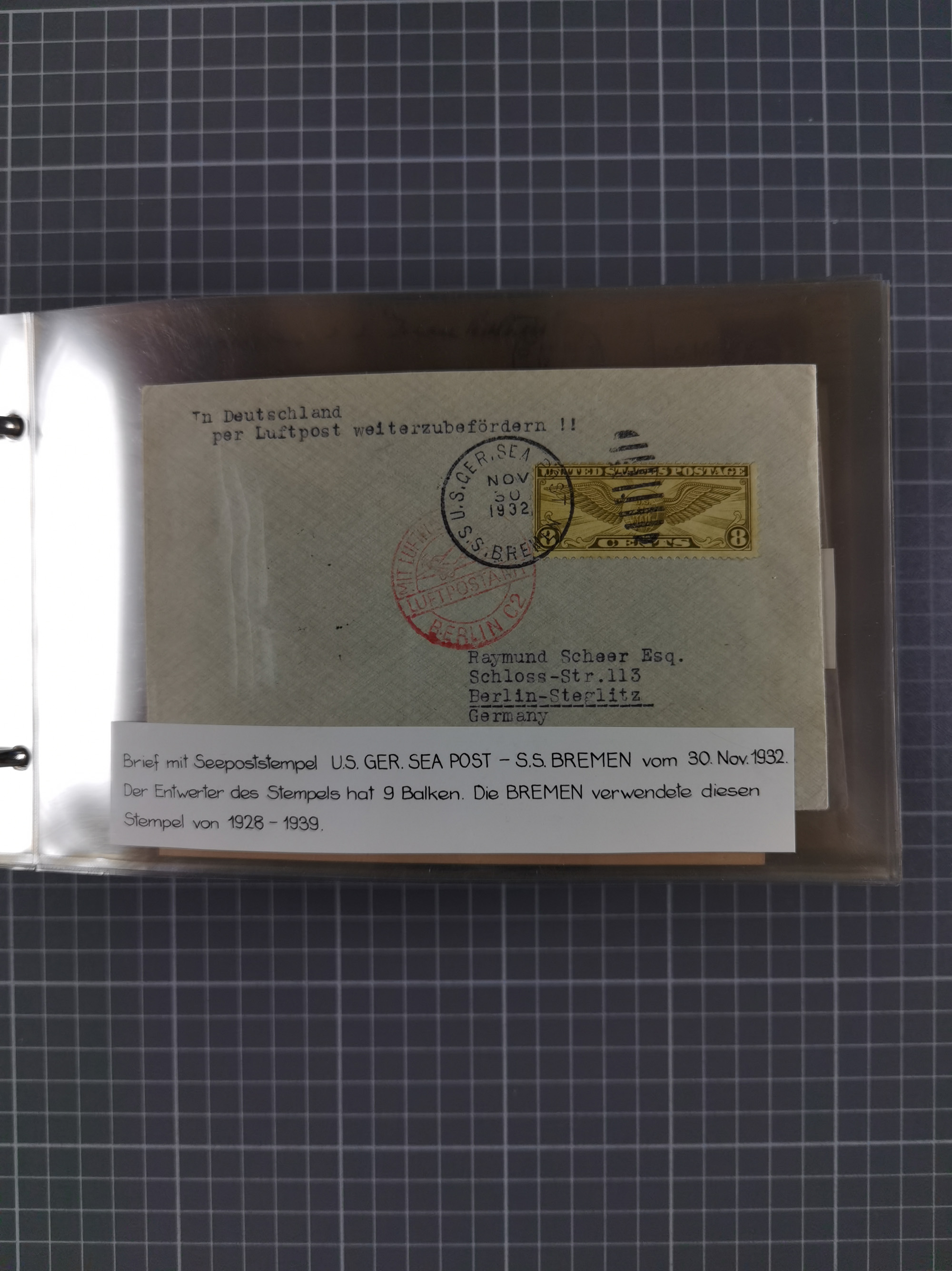 1892/1939, umfangreiche Sammlung “U.S. GERMAN SEA POST” mit ca. 400 Briefen, Karten und Ganzsachen, Schwerpunkt vor 1920 mit den Dublex-Stempeln mit Nr. 1-16, dabei verschiedene Verwendungen mit besseren (u.a. auf Briefen/Karten vom D. Reich), 1 R-GSU und weiteren Besonderheiten. Dazu noch einige Schiffs-Ansichtskarten, bei vielen Belegen mit Vermerken zu den Schiffen usw. und meist in guter Erhaltung. Eine in diesem Umfang seltene Sammlung in sechs Alben, ex Steinmeyer