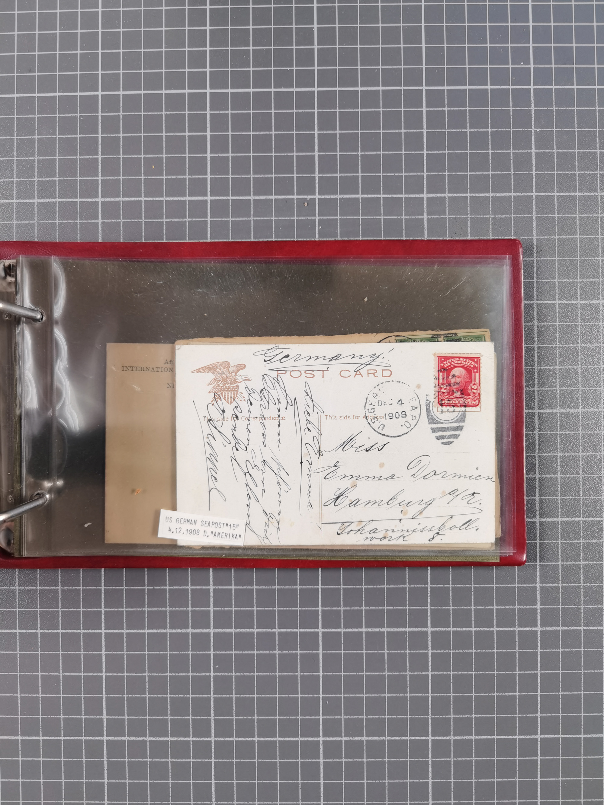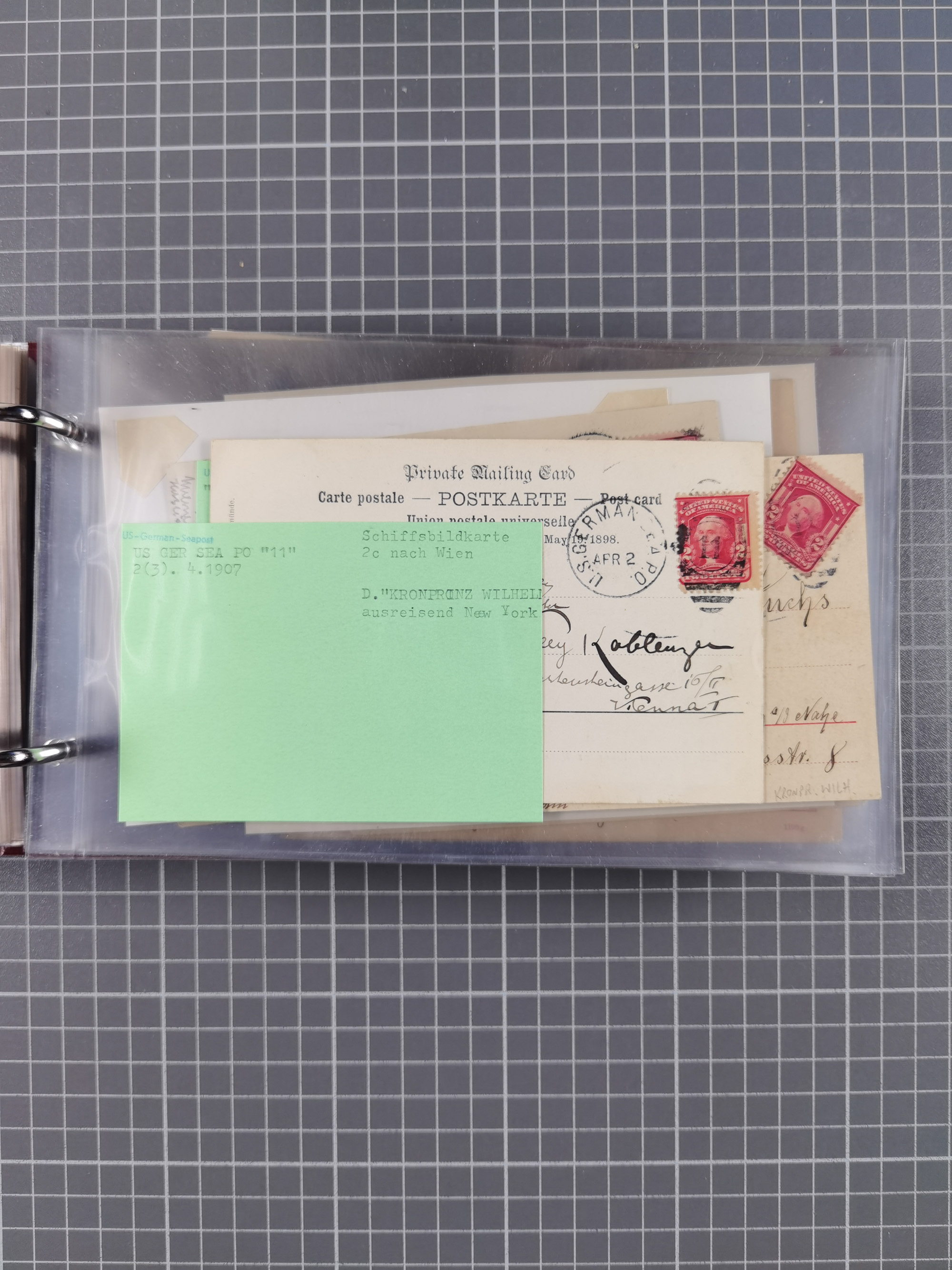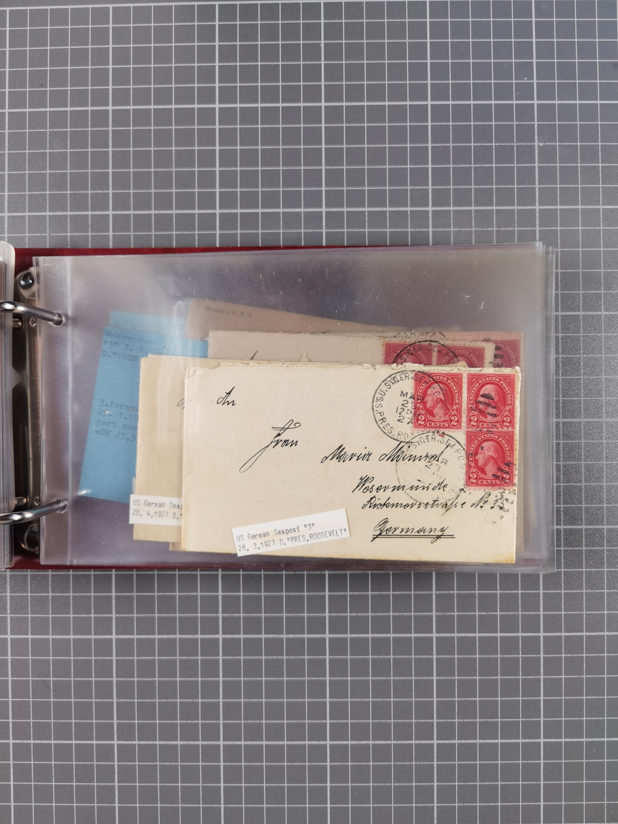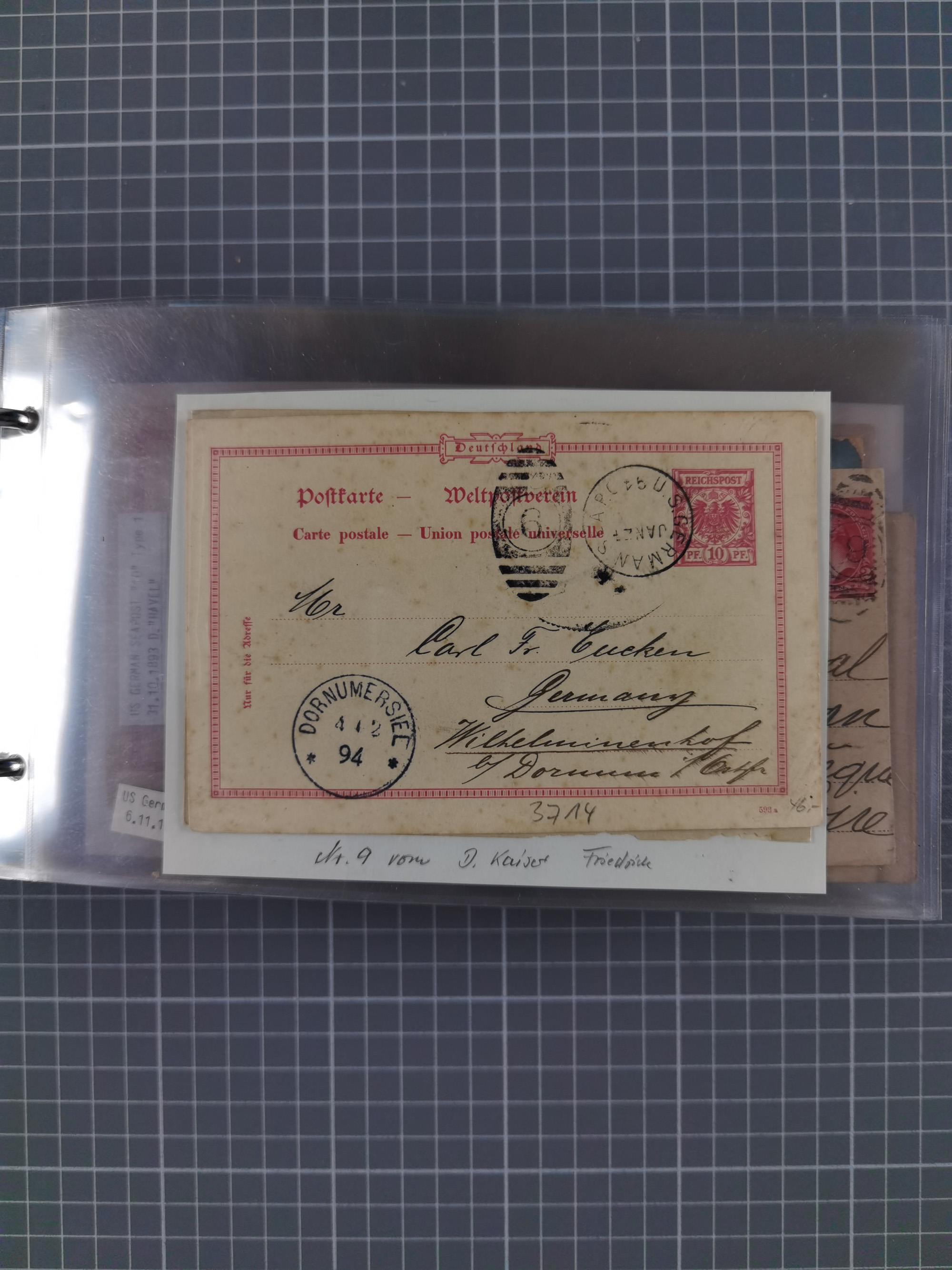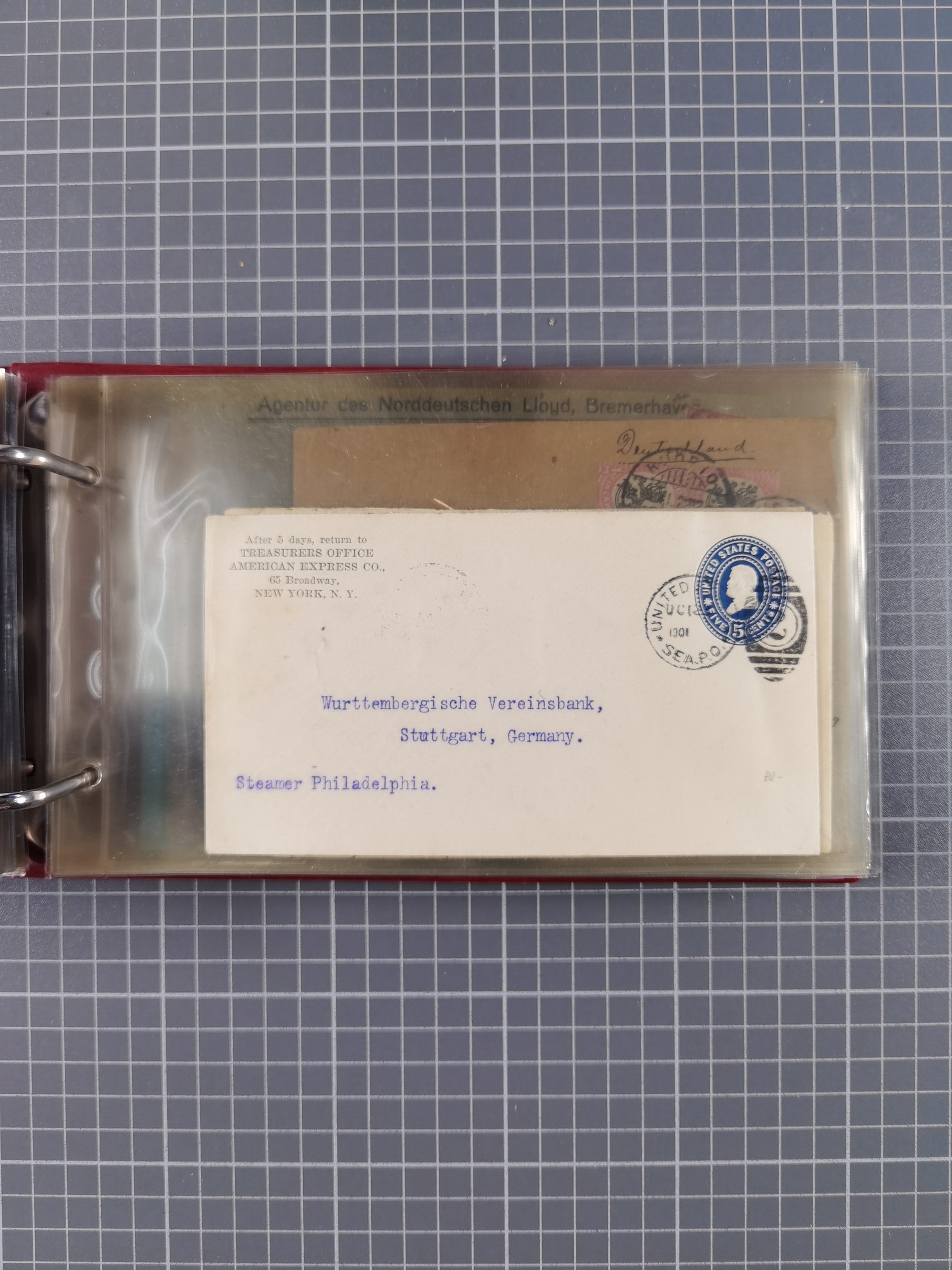 1892/1939, umfangreiche Sammlung “U.S. GERMAN SEA POST” mit ca. 400 Briefen, Karten und Ganzsachen, Schwerpunkt vor 1920 mit den Dublex-Stempeln mit Nr. 1-16, dabei verschiedene Verwendungen mit besseren (u.a. auf Briefen/Karten vom D. Reich), 1 R-GSU und weiteren Besonderheiten. Dazu noch einige Schiffs-Ansichtskarten, bei vielen Belegen mit Vermerken zu den Schiffen usw. und meist in guter Erhaltung. Eine in diesem Umfang seltene Sammlung in sechs Alben, ex Steinmeyer