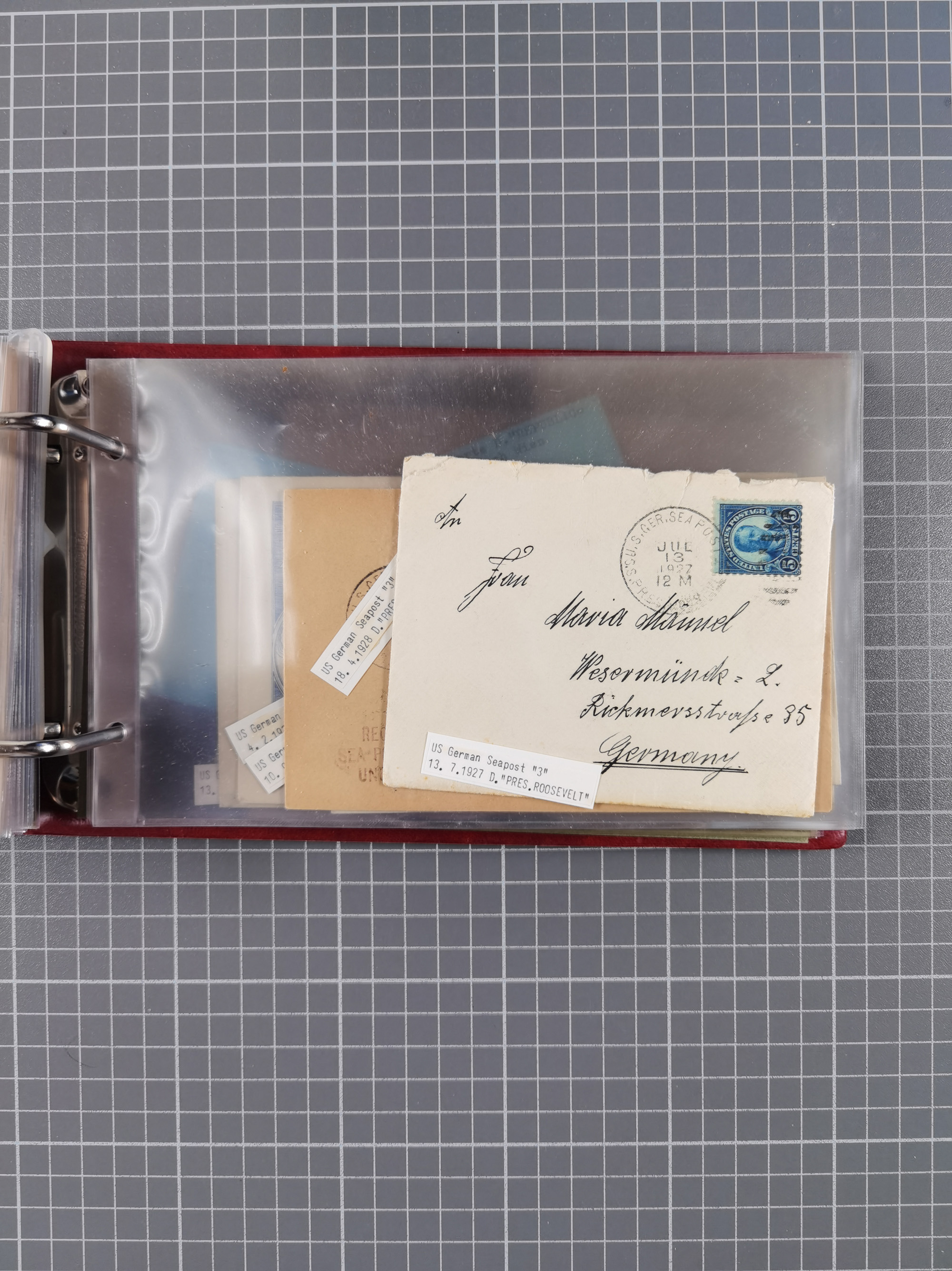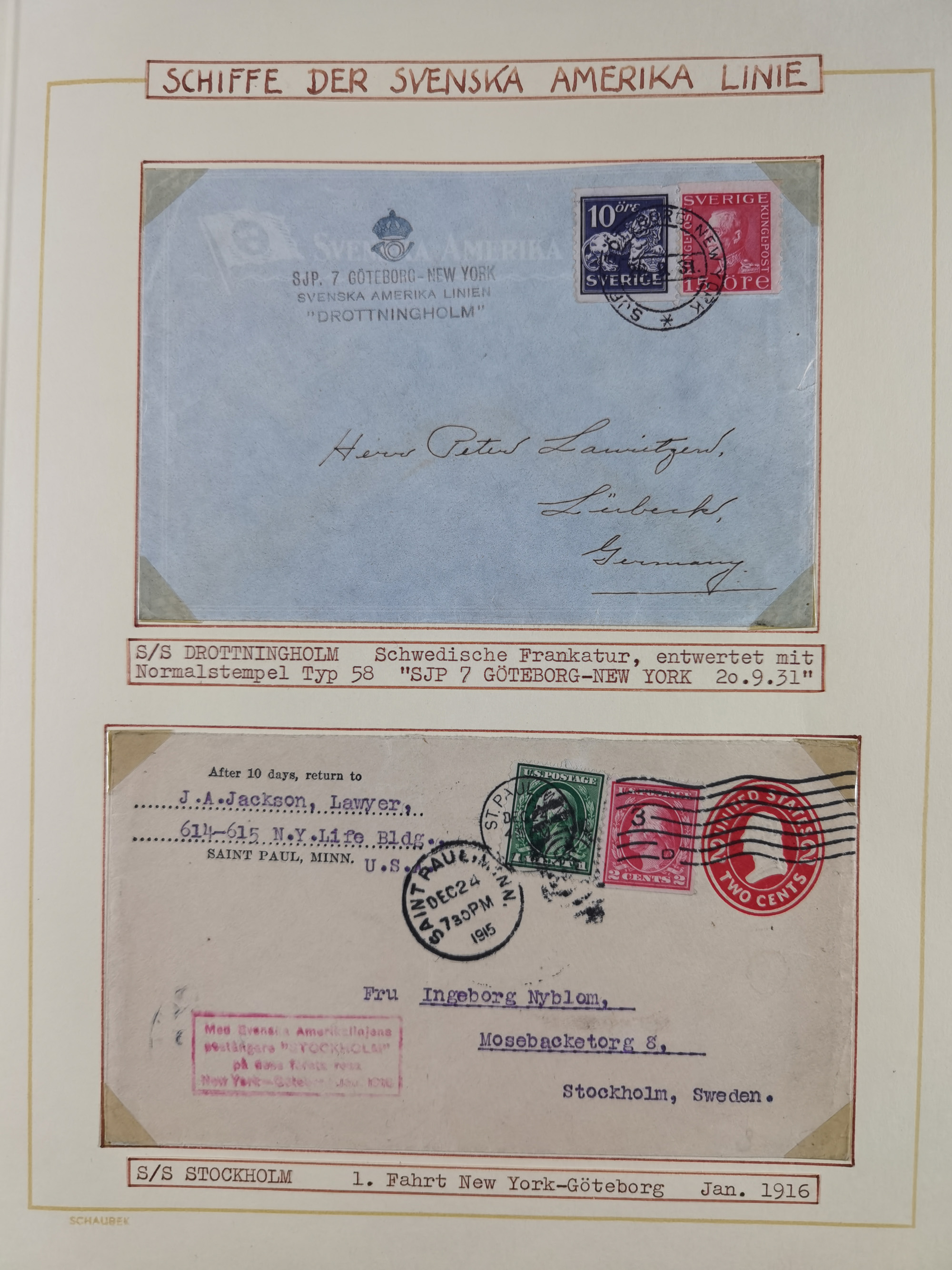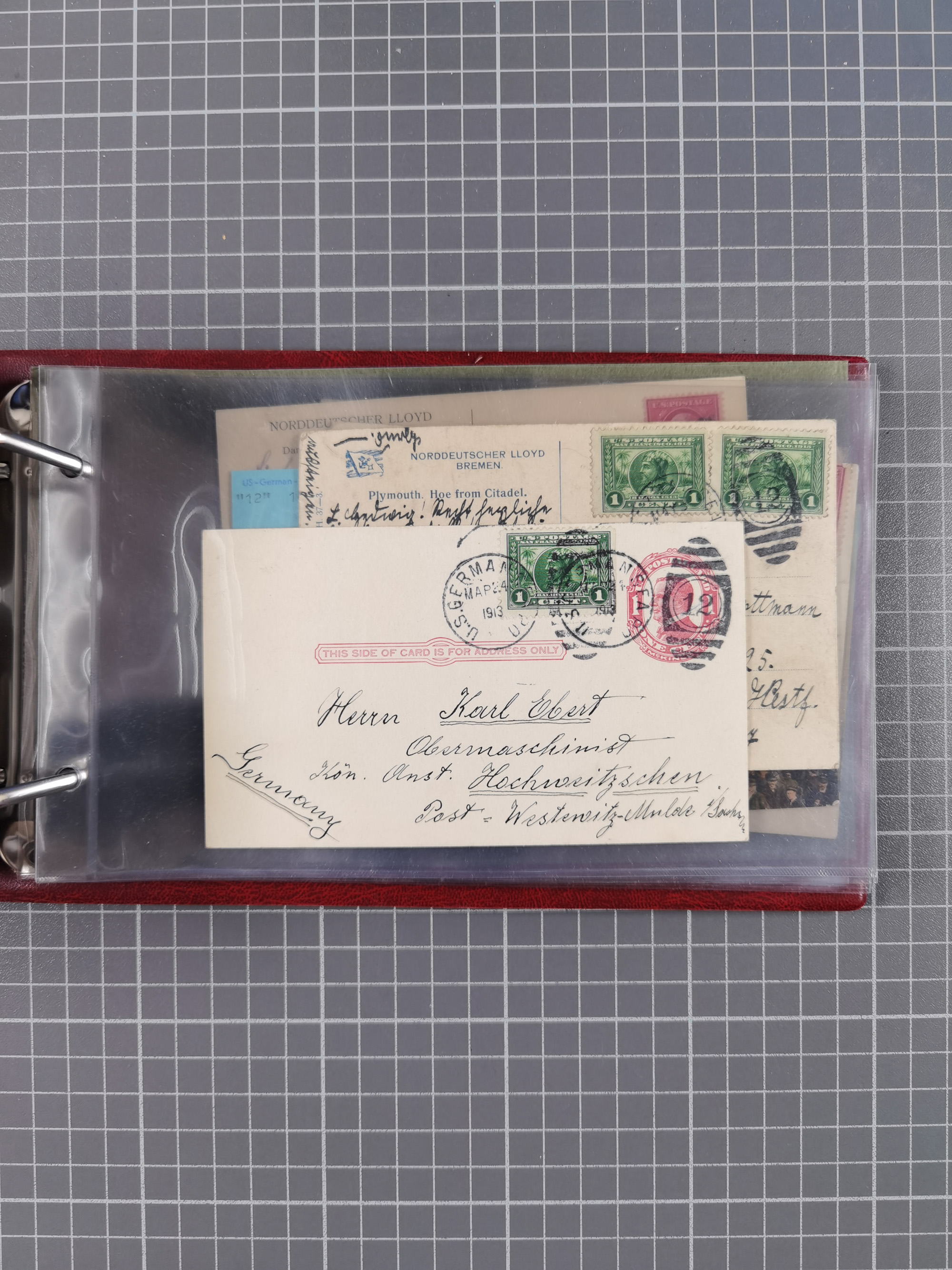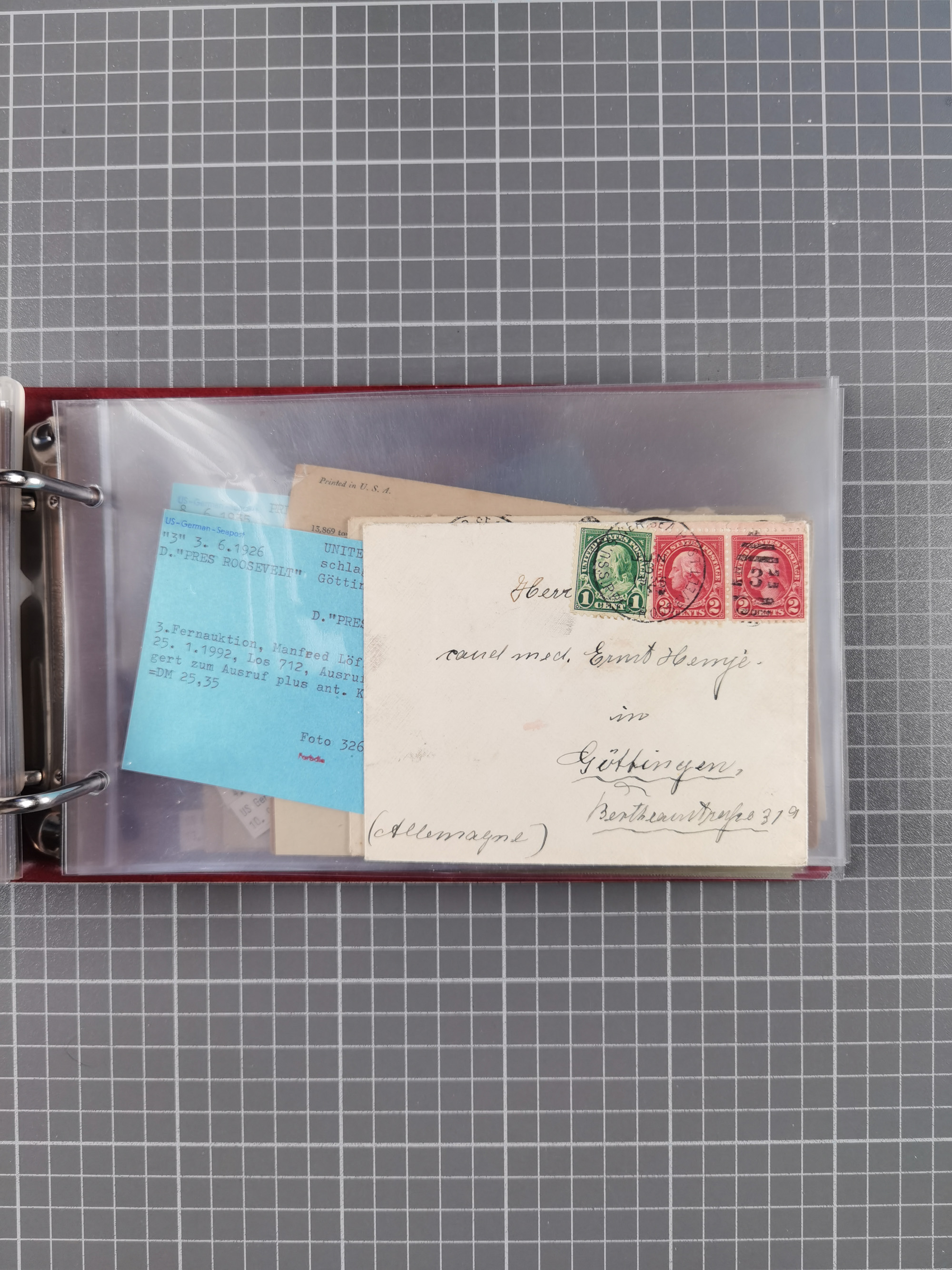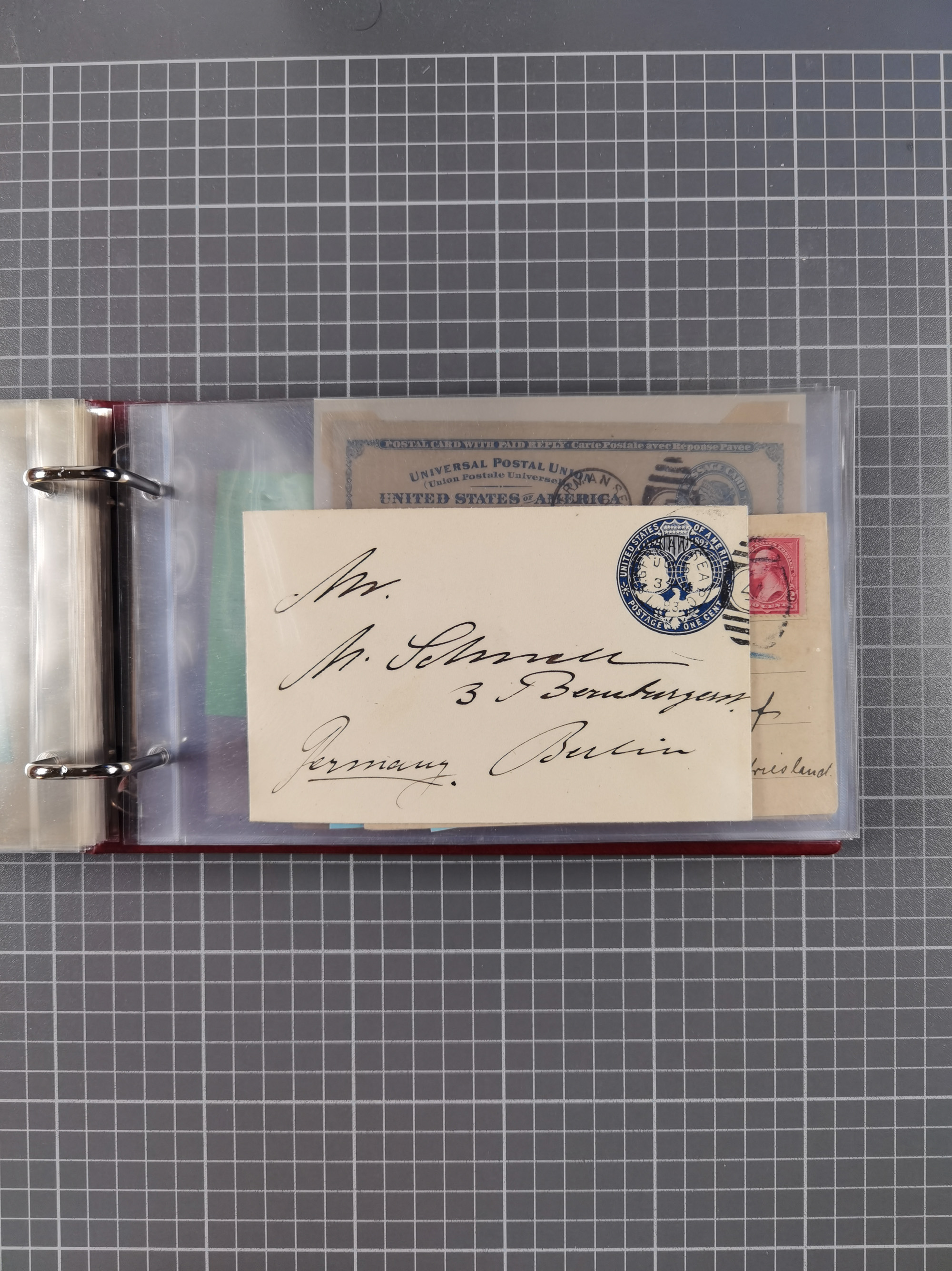 1892/1939, umfangreiche Sammlung “U.S. GERMAN SEA POST” mit ca. 400 Briefen, Karten und Ganzsachen, Schwerpunkt vor 1920 mit den Dublex-Stempeln mit Nr. 1-16, dabei verschiedene Verwendungen mit besseren (u.a. auf Briefen/Karten vom D. Reich), 1 R-GSU und weiteren Besonderheiten. Dazu noch einige Schiffs-Ansichtskarten, bei vielen Belegen mit Vermerken zu den Schiffen usw. und meist in guter Erhaltung. Eine in diesem Umfang seltene Sammlung in sechs Alben, ex Steinmeyer