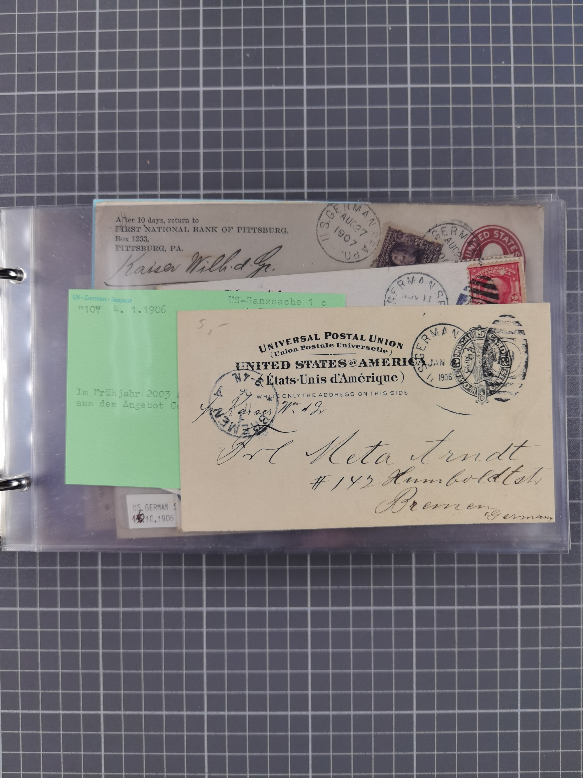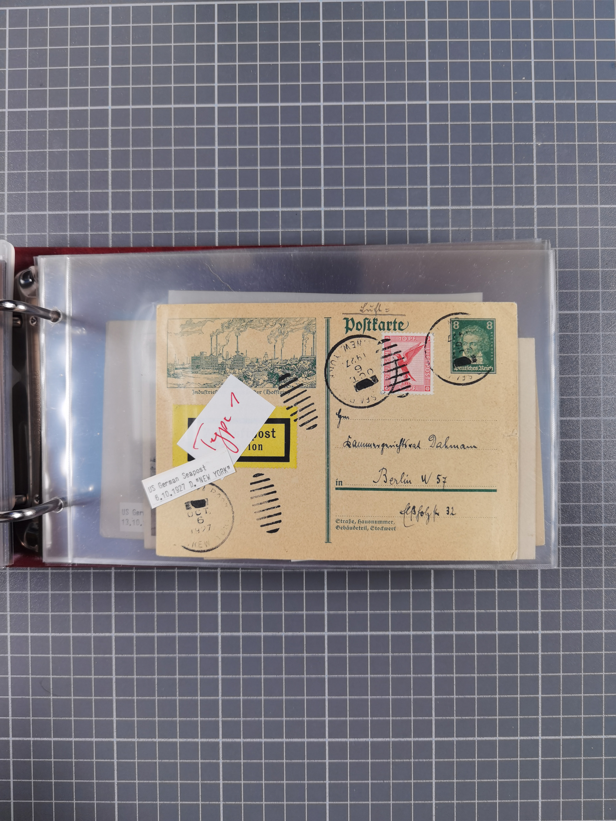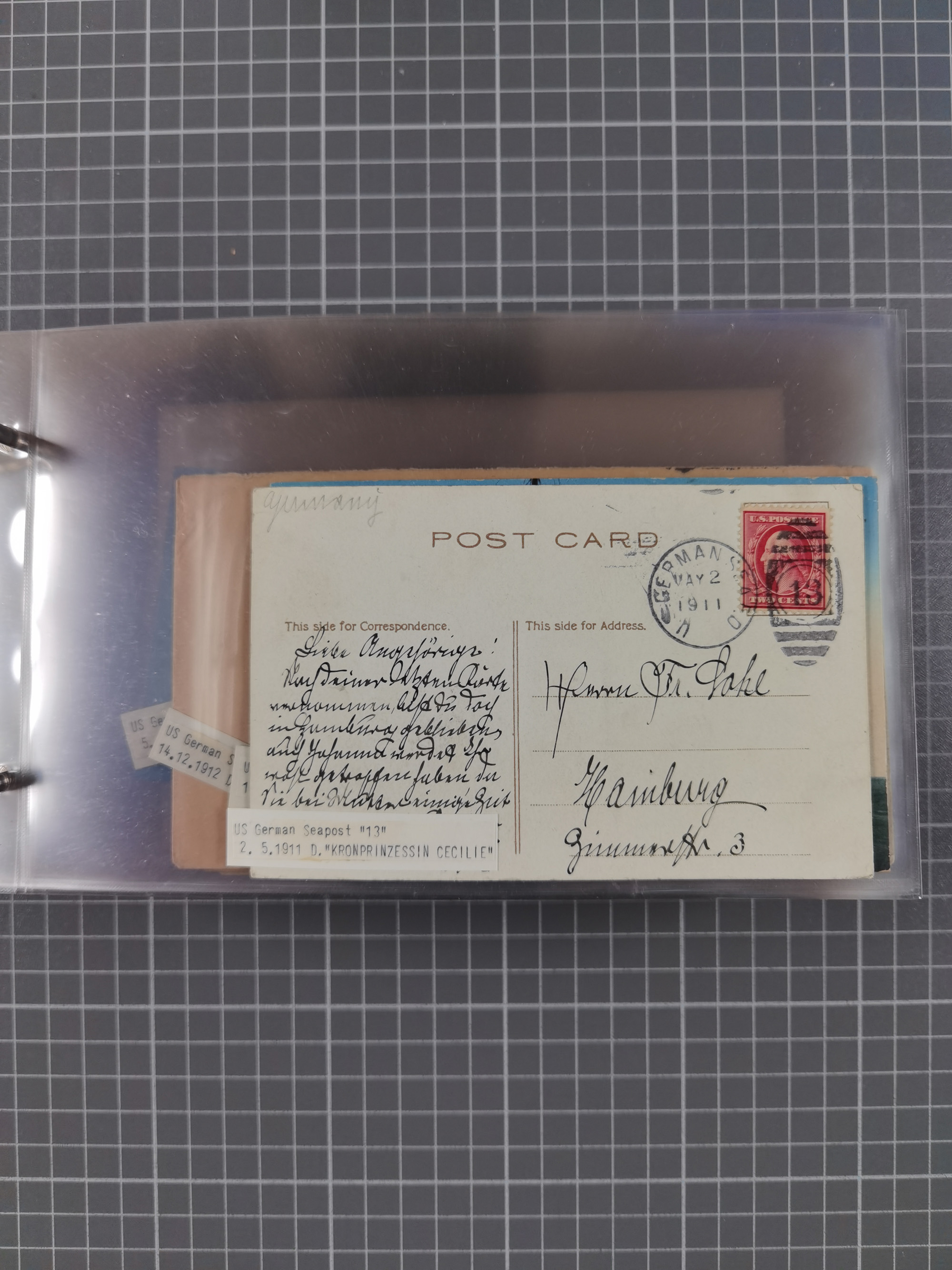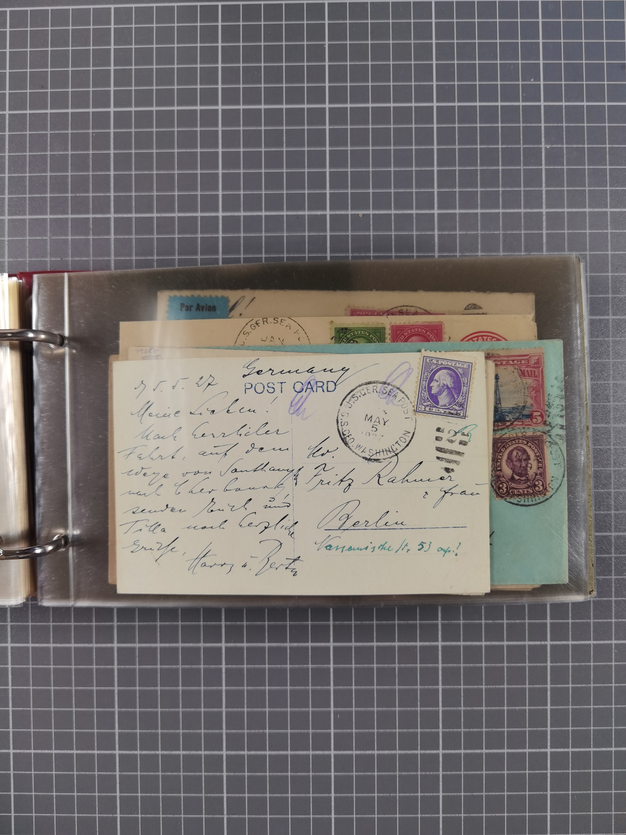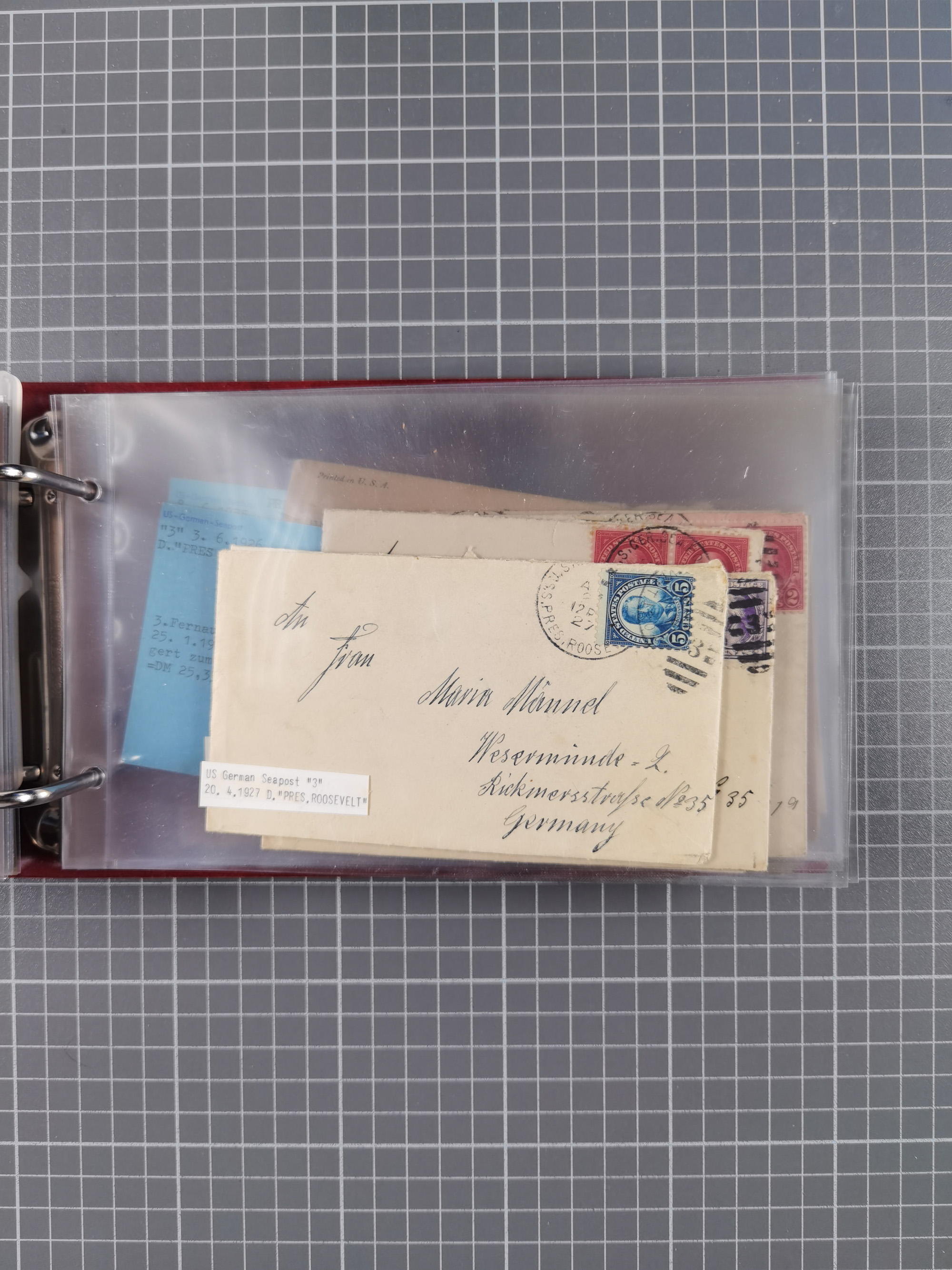 1892/1939, umfangreiche Sammlung “U.S. GERMAN SEA POST” mit ca. 400 Briefen, Karten und Ganzsachen, Schwerpunkt vor 1920 mit den Dublex-Stempeln mit Nr. 1-16, dabei verschiedene Verwendungen mit besseren (u.a. auf Briefen/Karten vom D. Reich), 1 R-GSU und weiteren Besonderheiten. Dazu noch einige Schiffs-Ansichtskarten, bei vielen Belegen mit Vermerken zu den Schiffen usw. und meist in guter Erhaltung. Eine in diesem Umfang seltene Sammlung in sechs Alben, ex Steinmeyer