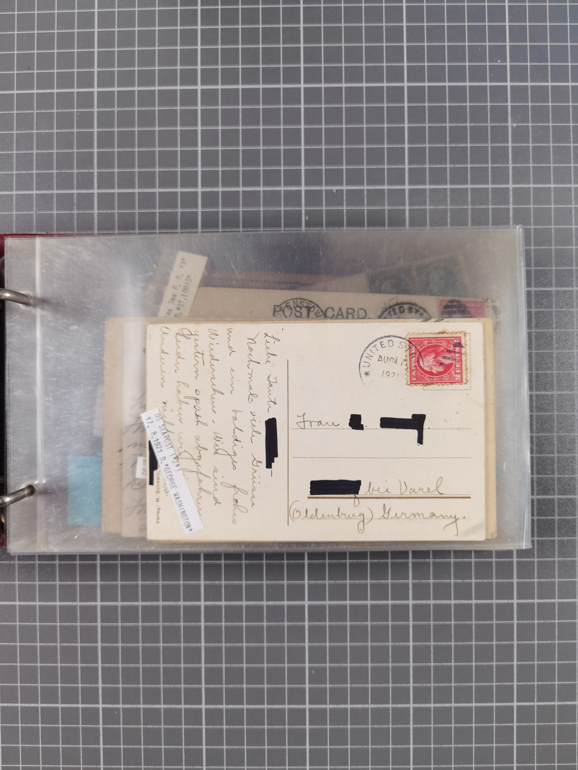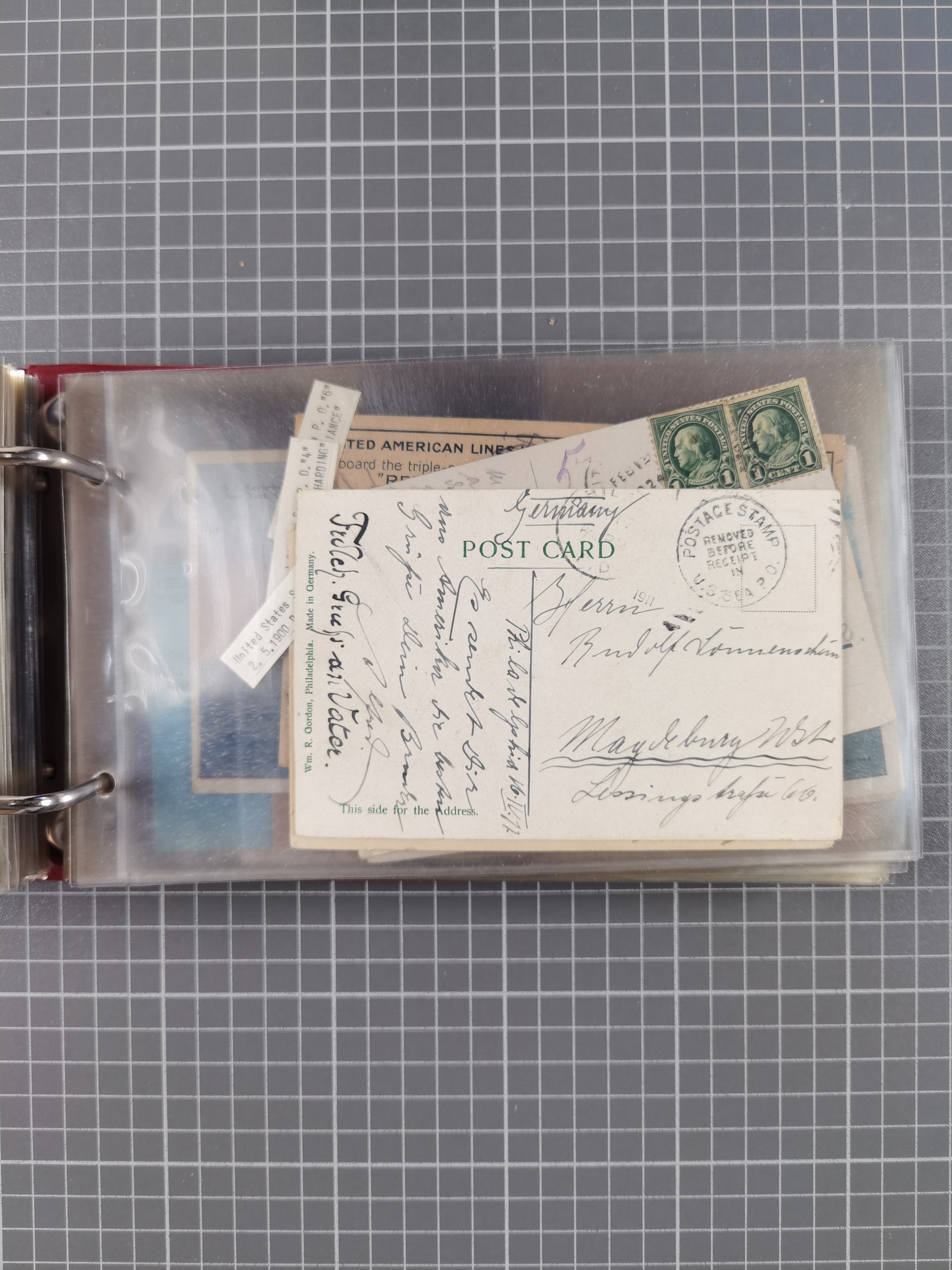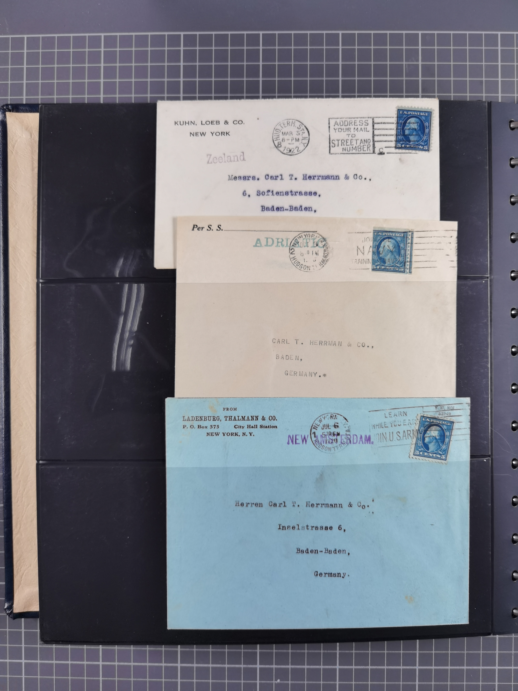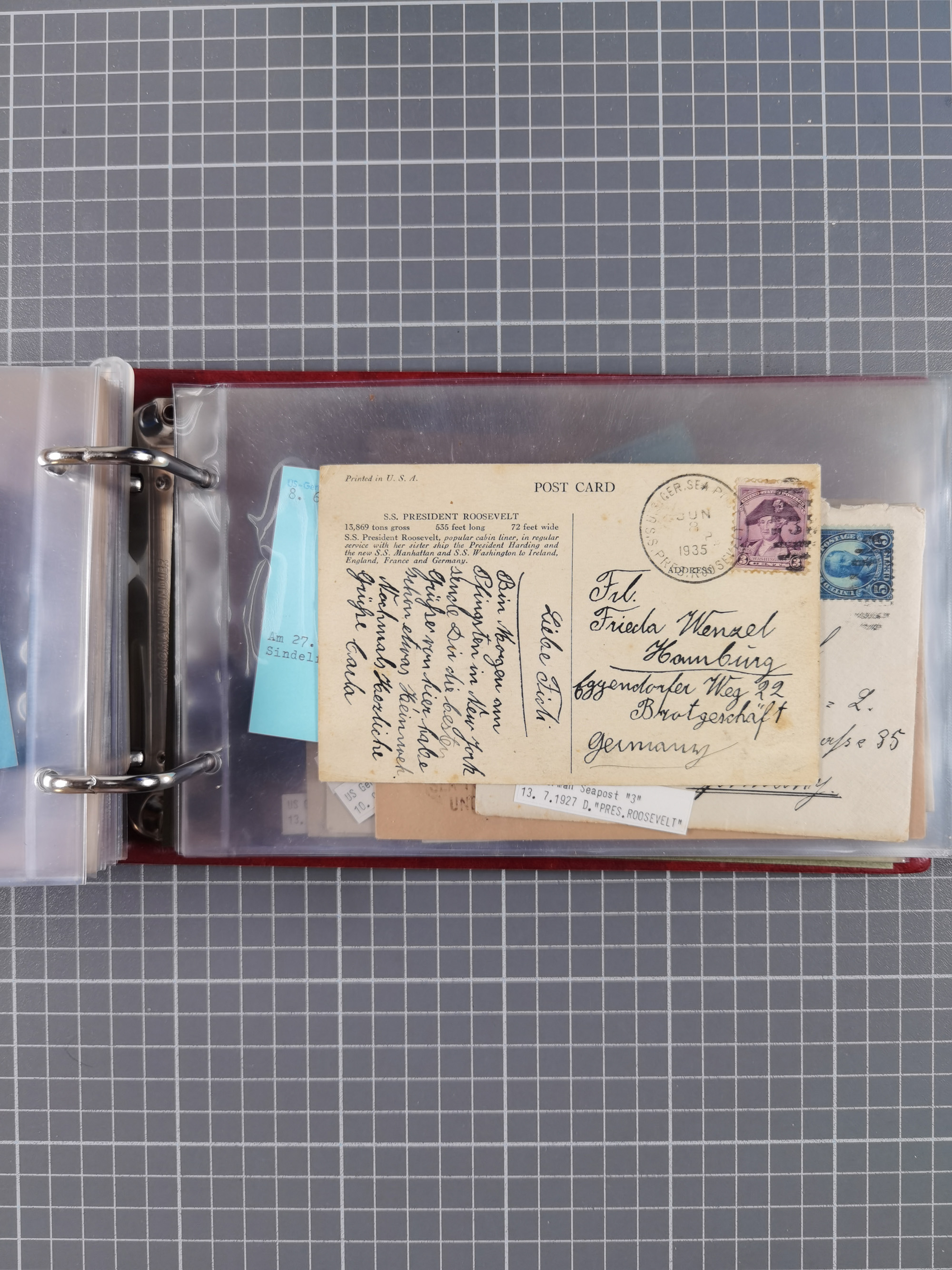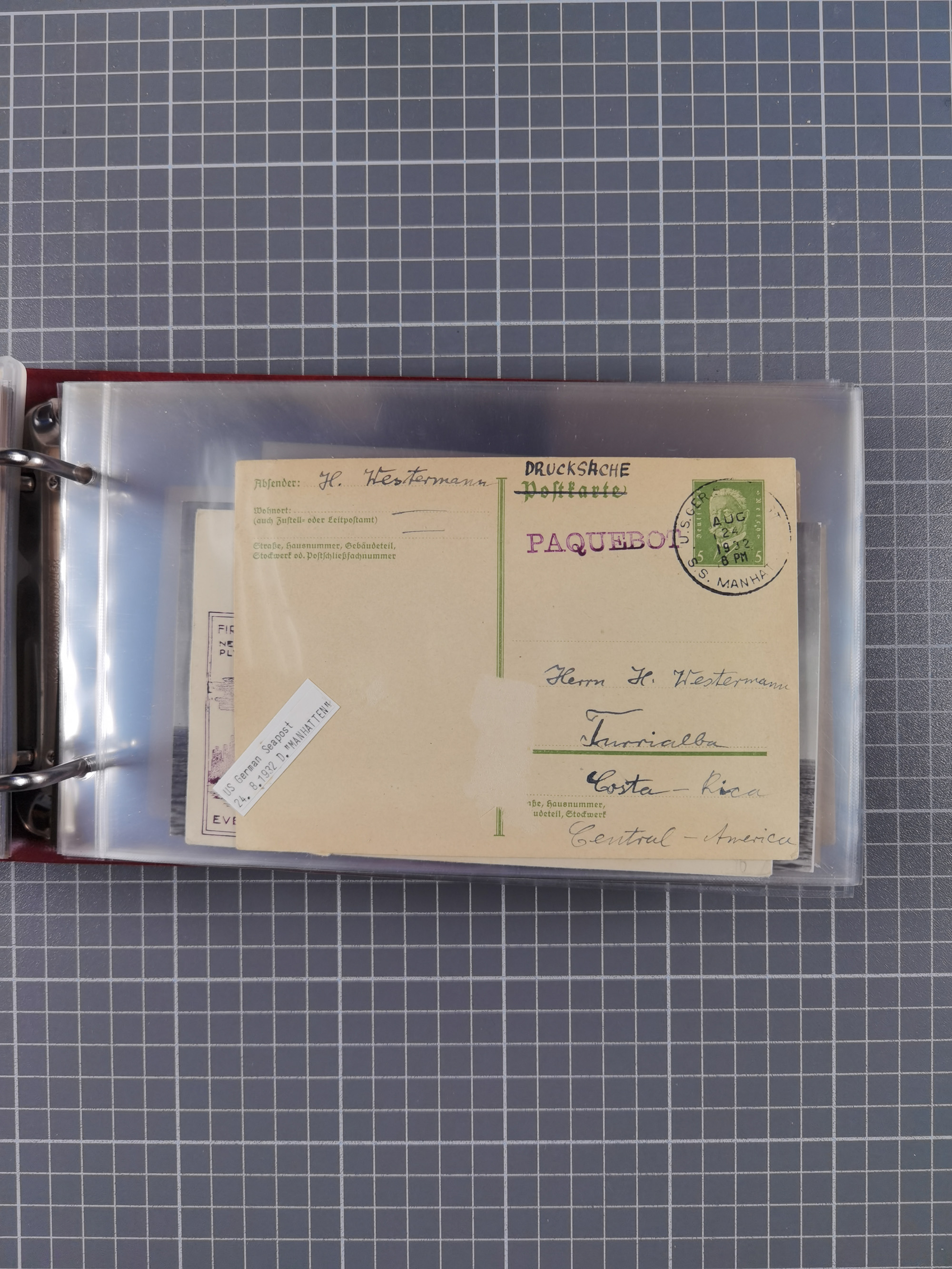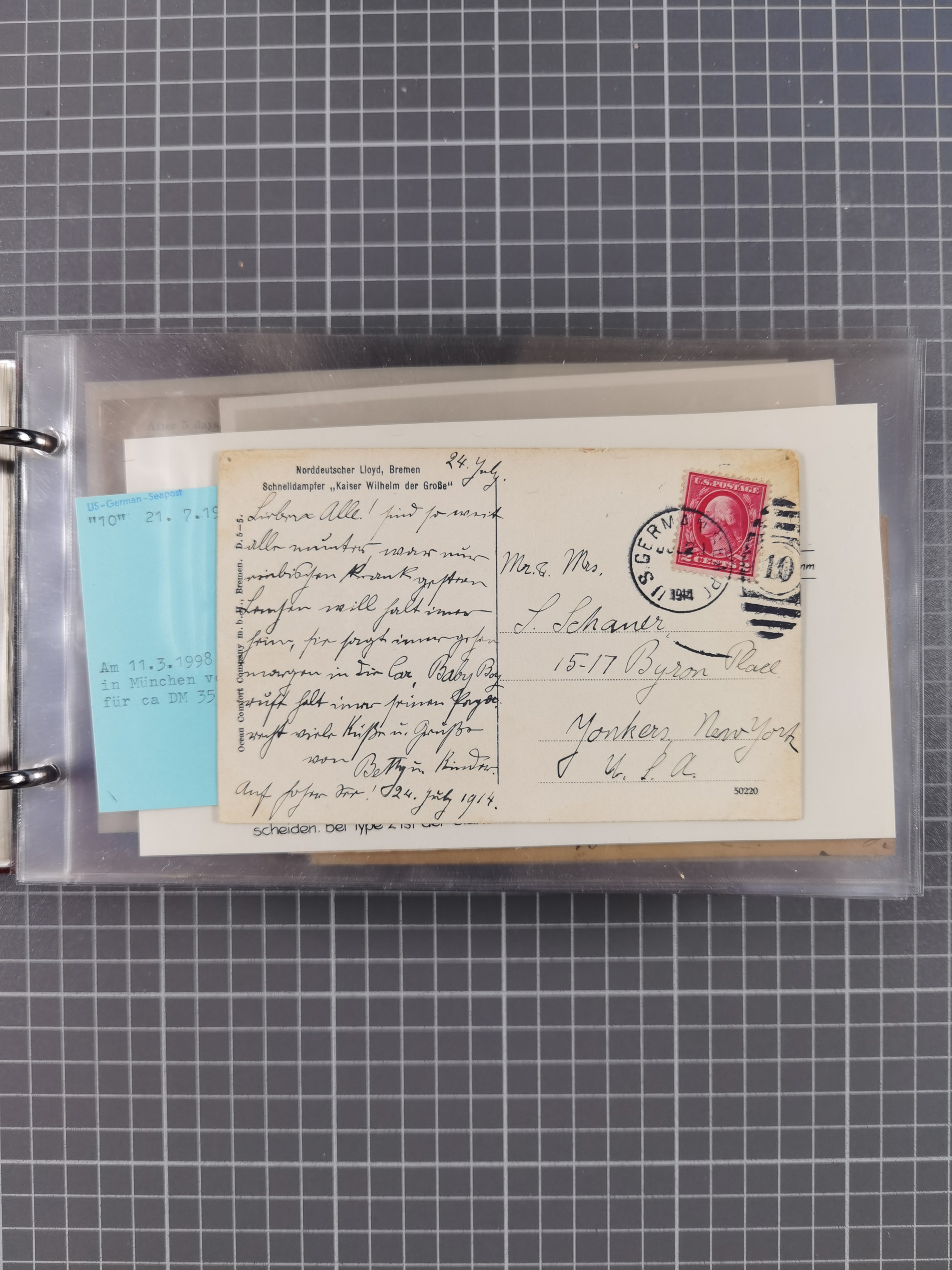 1892/1939, umfangreiche Sammlung “U.S. GERMAN SEA POST” mit ca. 400 Briefen, Karten und Ganzsachen, Schwerpunkt vor 1920 mit den Dublex-Stempeln mit Nr. 1-16, dabei verschiedene Verwendungen mit besseren (u.a. auf Briefen/Karten vom D. Reich), 1 R-GSU und weiteren Besonderheiten. Dazu noch einige Schiffs-Ansichtskarten, bei vielen Belegen mit Vermerken zu den Schiffen usw. und meist in guter Erhaltung. Eine in diesem Umfang seltene Sammlung in sechs Alben, ex Steinmeyer